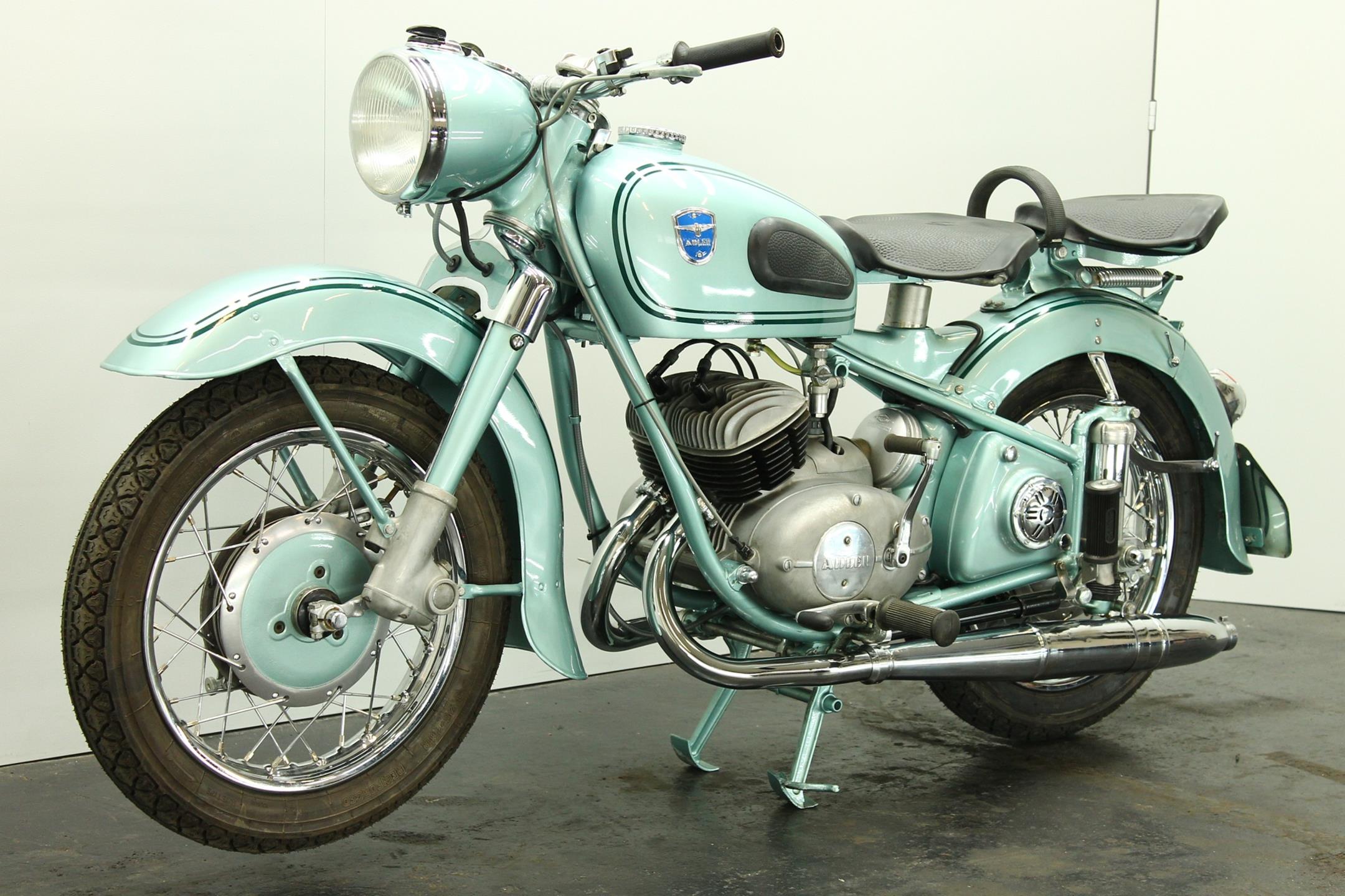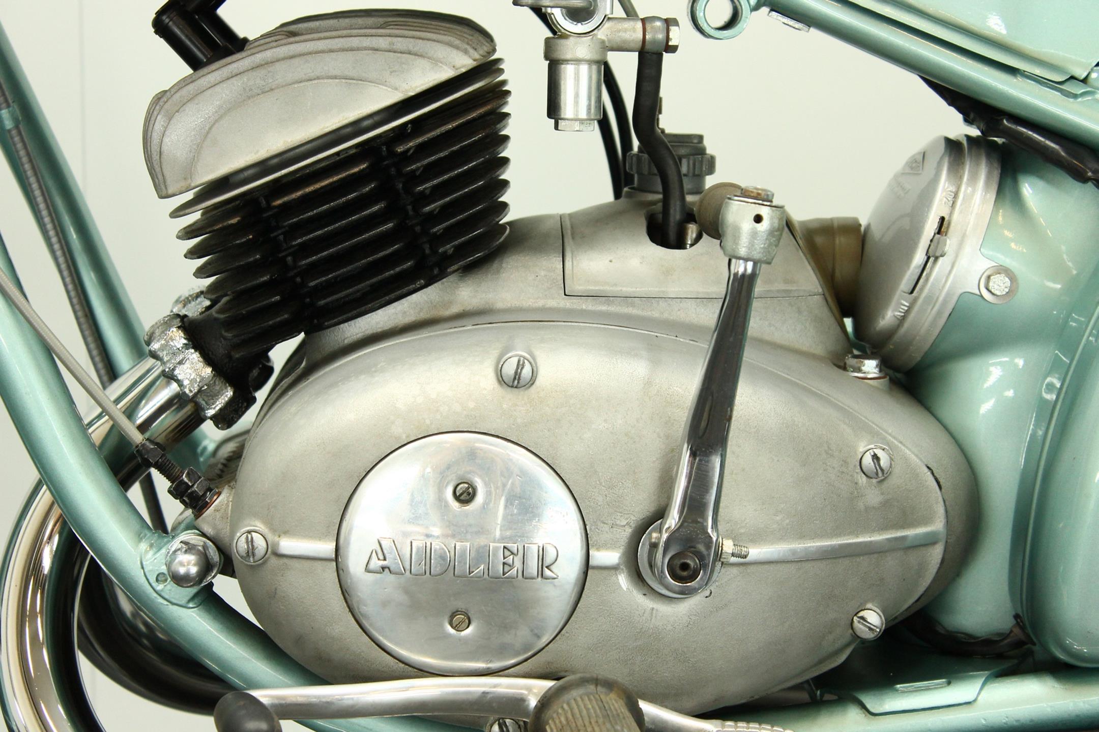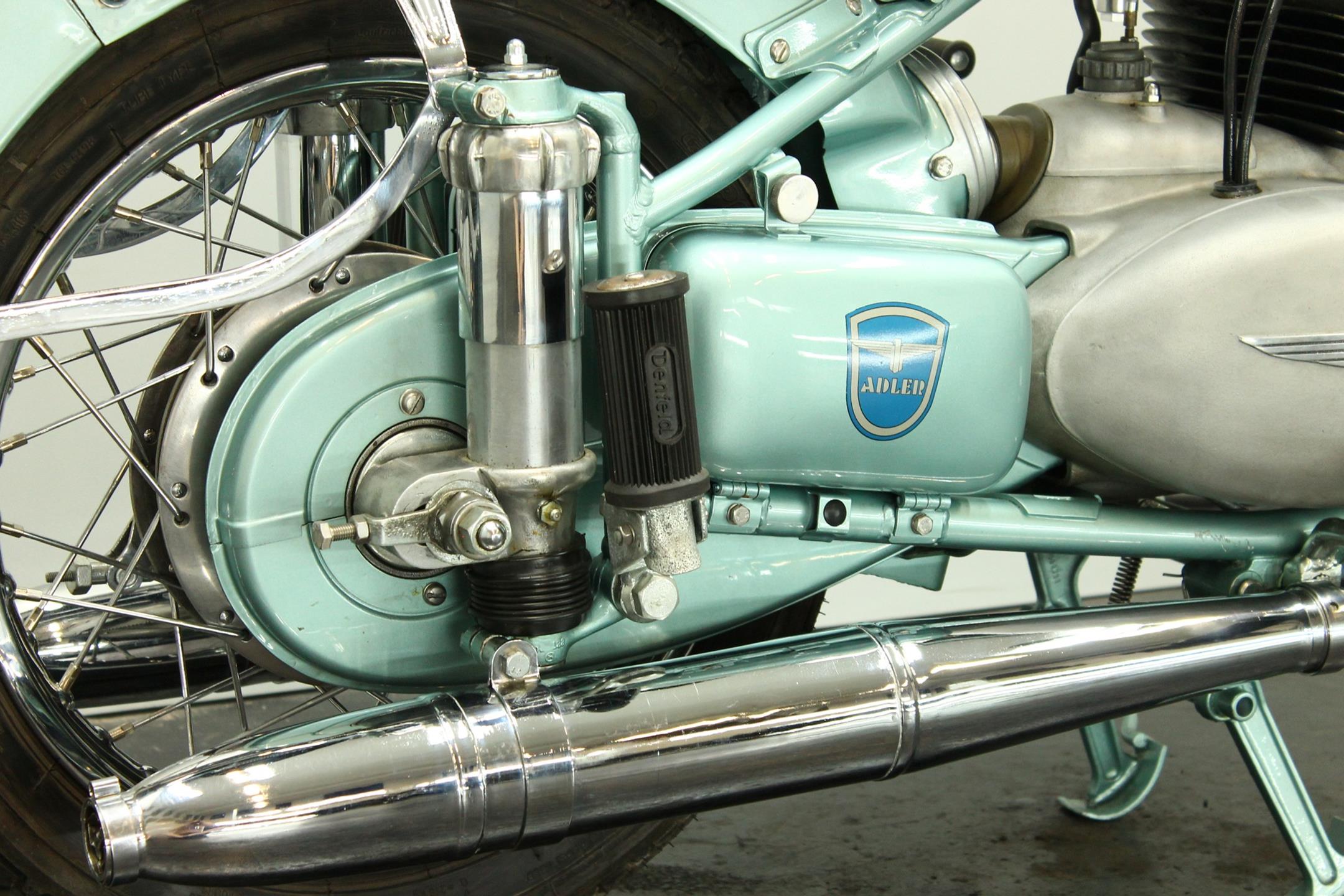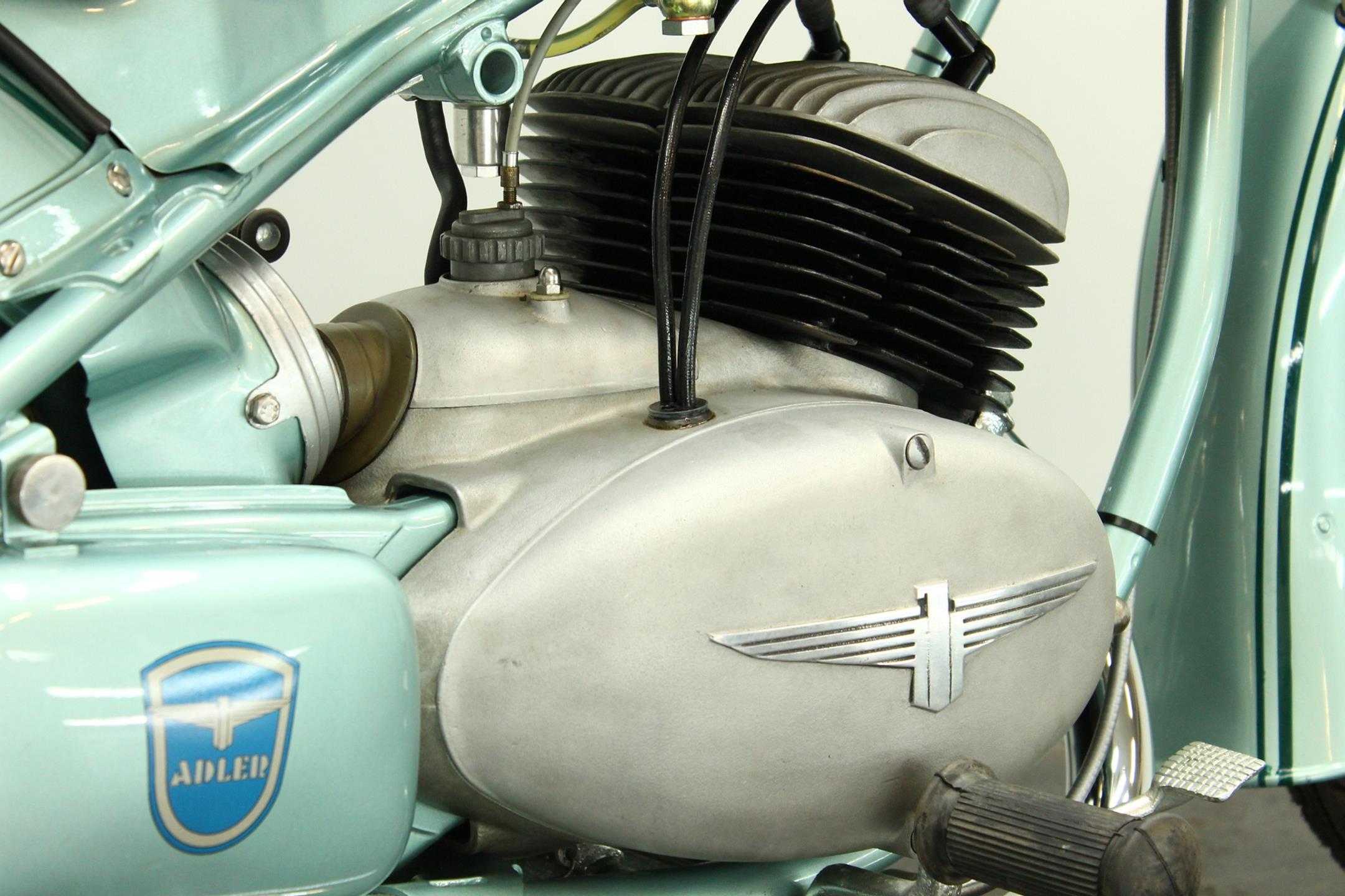 Heinrich Kleyer was the first to manufacture typewriters in Germany. He started in 1898 in Frankfurt and eventually built his Adler company – German for eagle – into something of an engineering powerhouse. Adler followed typewriters – his revolutionary Model No. 7 acquired legendary status before the word digital ever reached a dictionary - with bicycles, automobiles and motorcycles. Post WW II motor car manufacture was not resumed but in 1949 motorcycle production restarted which soon led to the Adler MB250, a high quality, two-stroke machine whose design features were then given to BSA as part of the Allies' war reparations program; BSA used some of the Adler design concepts in the Ariel Arrow and Leader models. Soon Suzuki and Yamaha took notice, too. Meanwhile Adler focused on all kinds of other office equipment, too is bought by Grundig, merged with the (German) Triumph typewriter company to form Trumf-Adler, then taken over by Olivetti. Motorcycle manufacture ends in 1956.