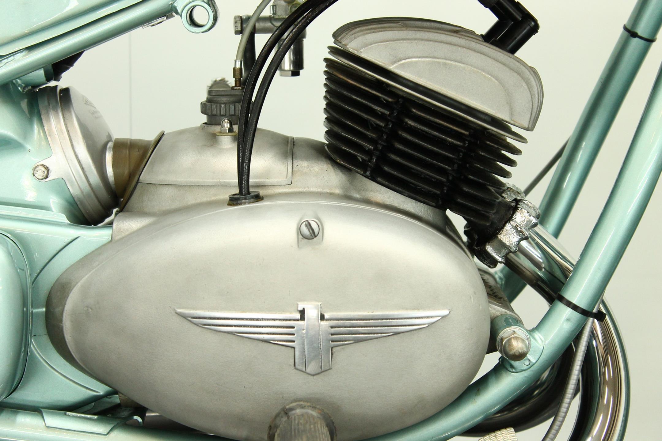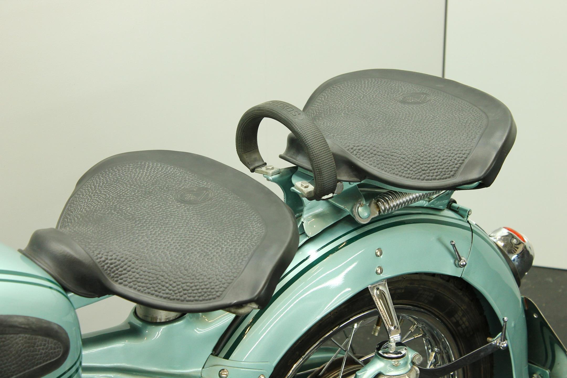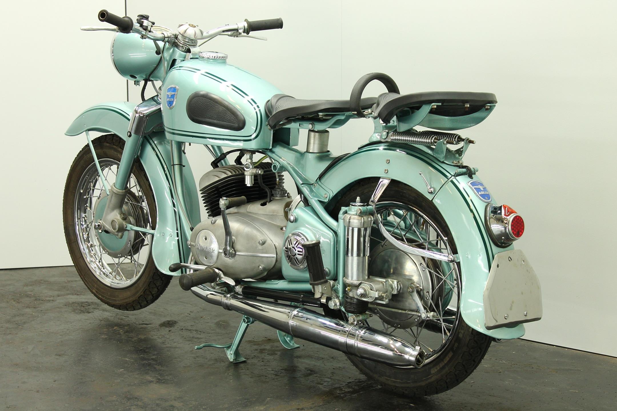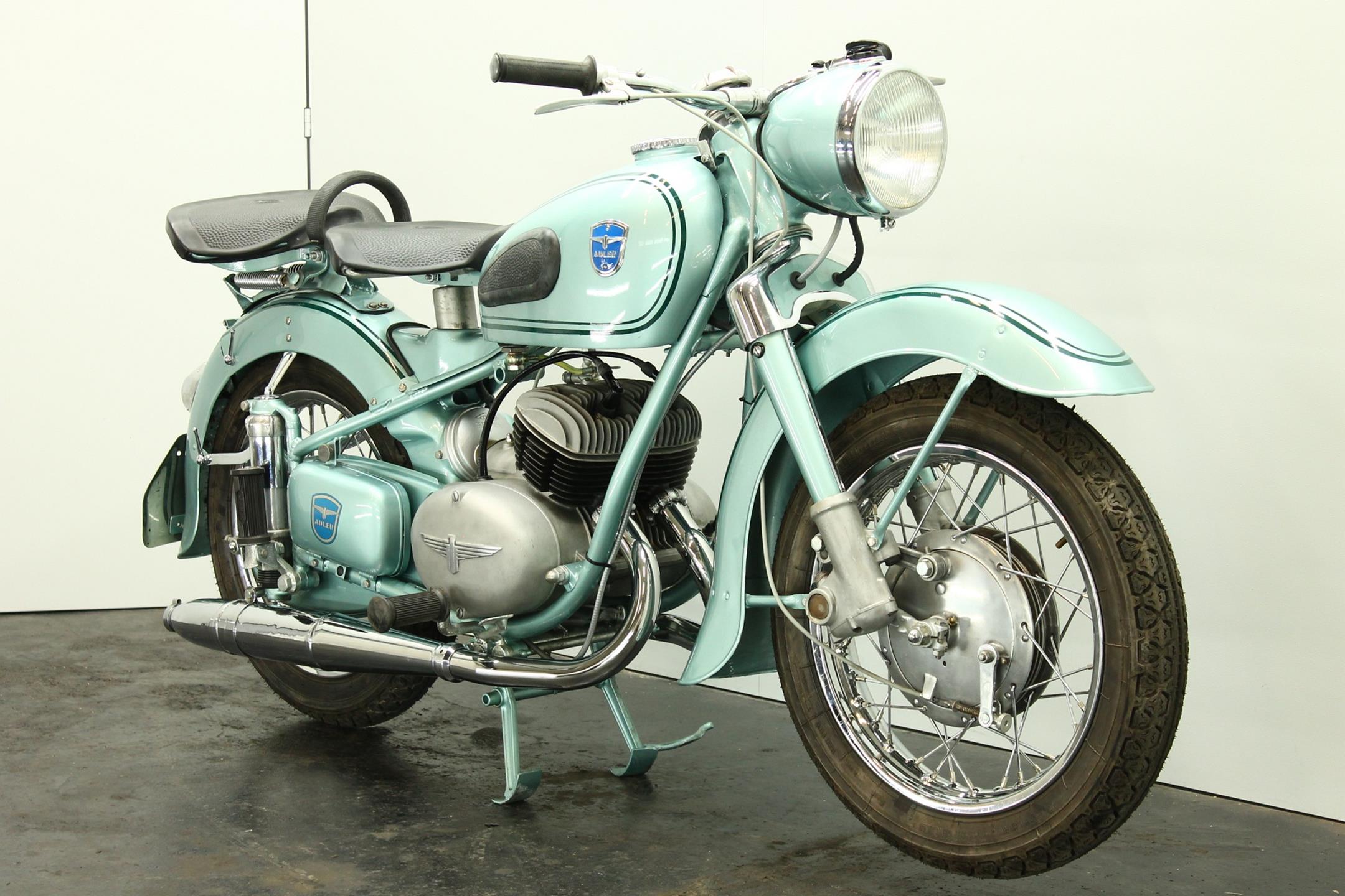 Heinrich Kleyer was the first to manufacture typewriters in Germany. He started in 1898 in Frankfurt and eventually built his Adler company – German for eagle – into something of an engineering powerhouse. Adler followed typewriters – his revolutionary Model No. 7 acquired legendary status before the word digital ever reached a dictionary - with bicycles, automobiles and motorcycles. Post WW II motor car manufacture was not resumed but in 1949 motorcycle production restarted which soon led to the Adler MB250, a high quality, two-stroke machine whose design features were then given to BSA as part of the Allies' war reparations program; BSA used some of the Adler design concepts in the Ariel Arrow and Leader models. Soon Suzuki and Yamaha took notice, too. Meanwhile Adler focused on all kinds of other office equipment, too is bought by Grundig, merged with the (German) Triumph typewriter company to form Trumf-Adler, then taken over by Olivetti. Motorcycle manufacture ends in 1956.