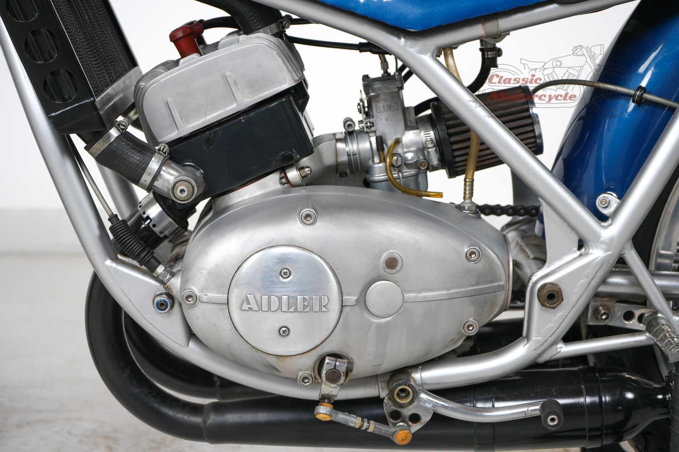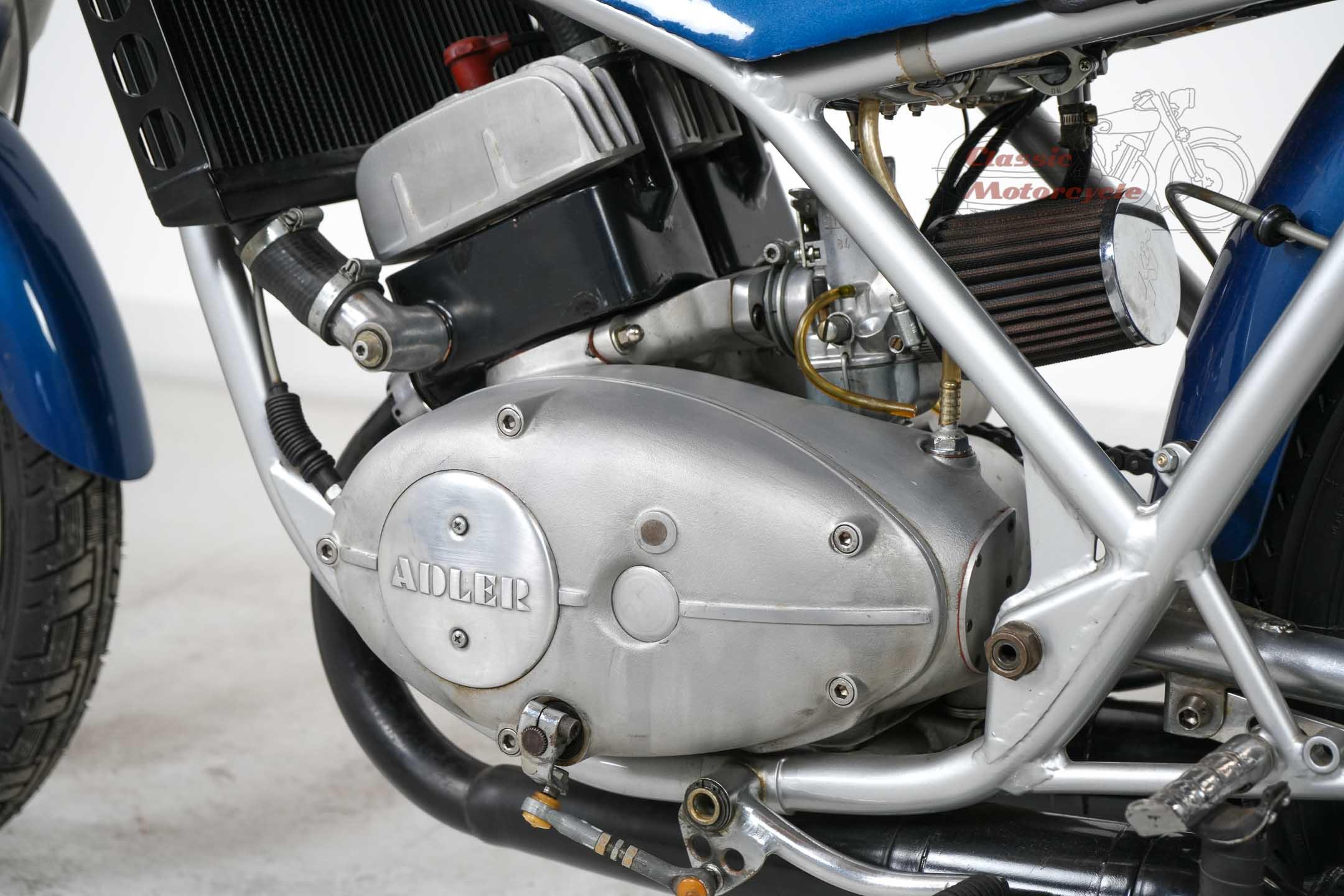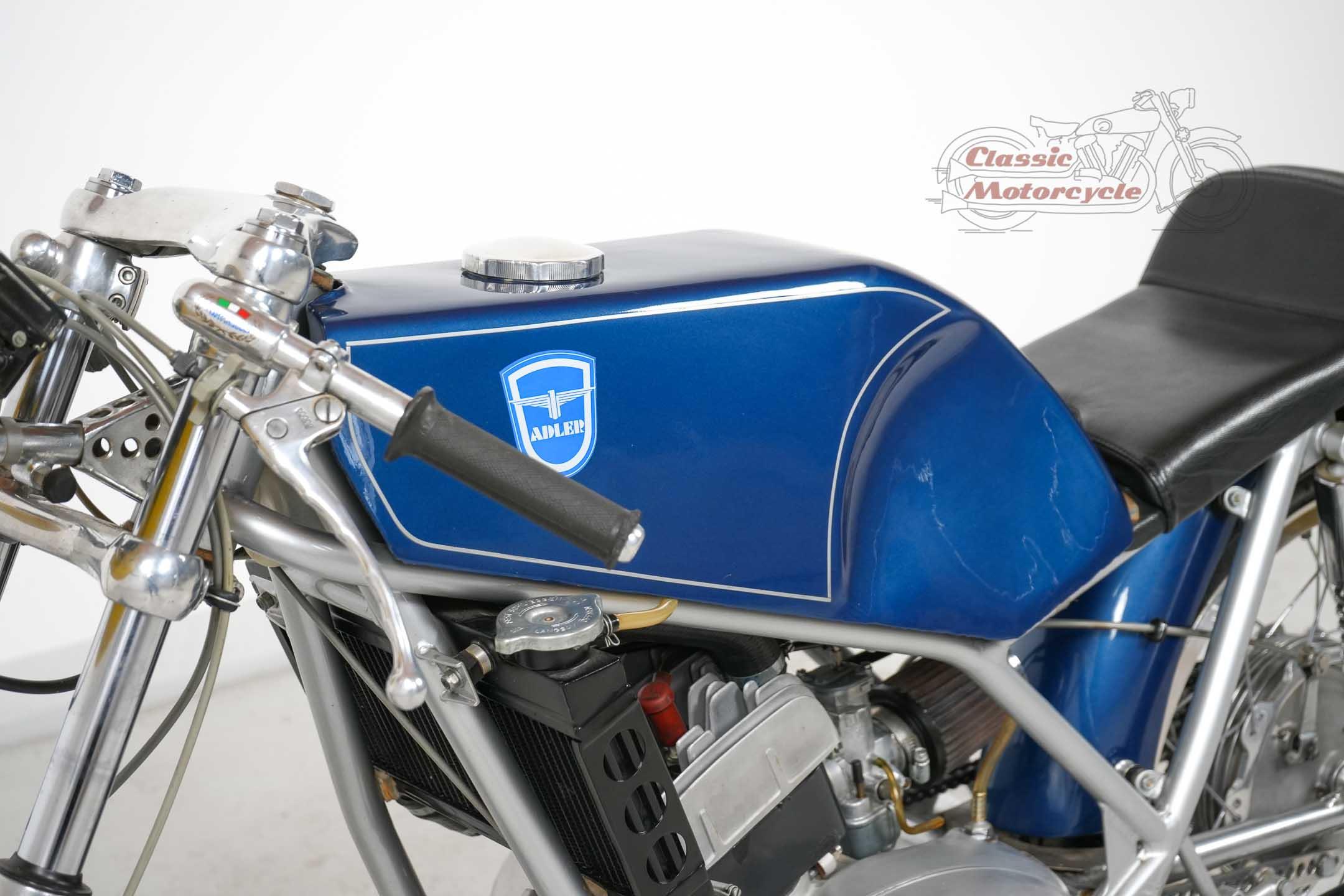 Willi Klee, born on December 13th, 1922, was responsible for the Adler RS 250 as a factory racing mechanic. After the closure of Adler motorcycle production in 1957, "little Willi" continued to look after his RS models and was able to achieve numerous best times and victories. Around ten years after production ended, Klee was still so convinced of the machine's potential that he built and homologated the RS 250 described here on his own. The first very dominant Yamaha Twins were a 1:1 copy of the Adler 250, which spurred Klee all the more on to implement his knowledge and experience in his project. Not least thanks to the efforts of Reinhard Scholtis (the flying pencil), the project was completed and the RS was successfully used by former factory drivers, among others. In the 1980s, Klee sold the RS to a racing friend from Germany who, as an expert on these motorcycles, maintained the Adler and used it at historic racing events. The Adler has an impressive 38 hp at the rear wheel. It has a number of racing trophies, a whole folder of old correspondence, maintenance records from the 1980s and a VFV vehicle passport with the REG. No.: -824- LFD-No.: 00207. A special highlight is the old photo of Wili Klee with this machine.