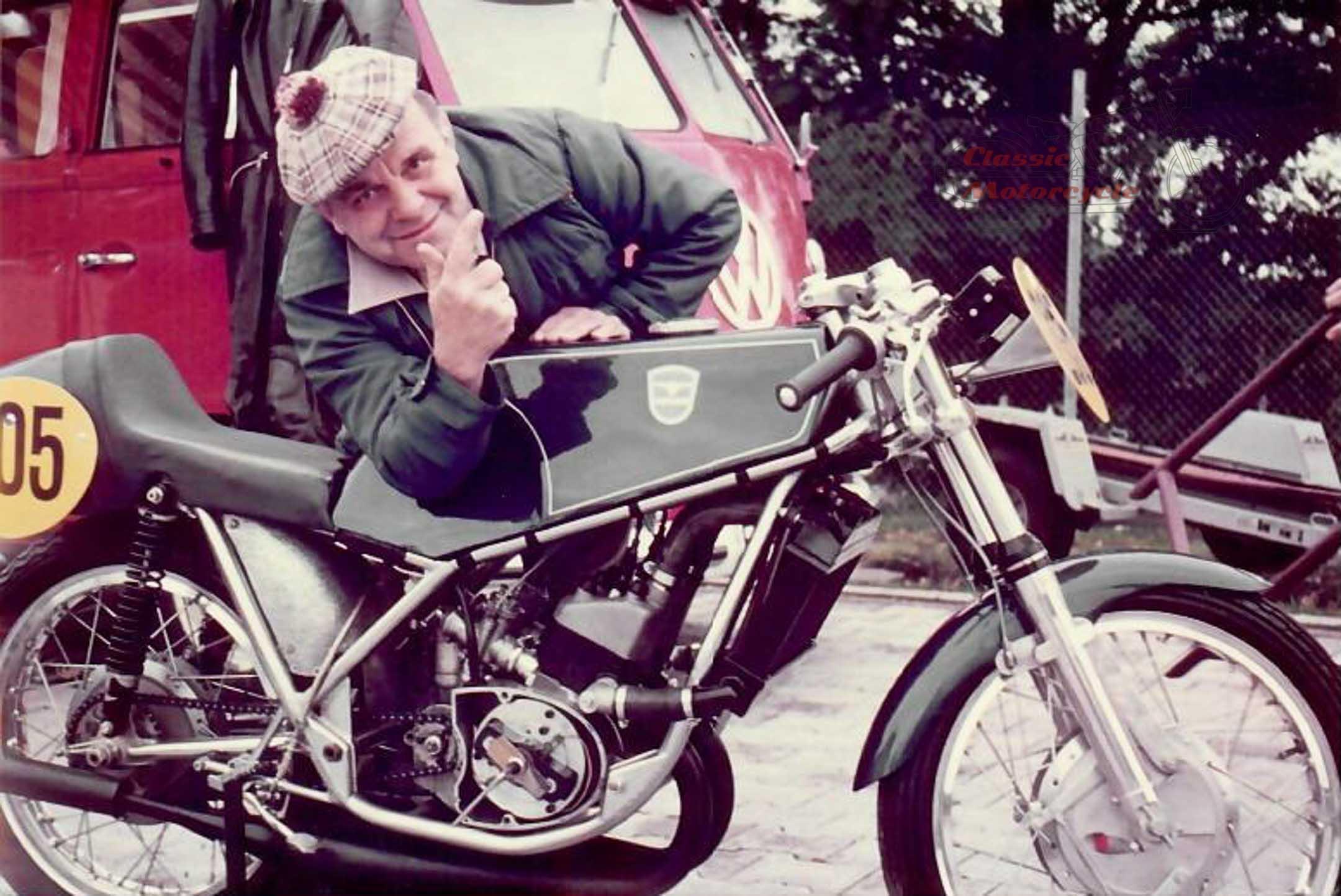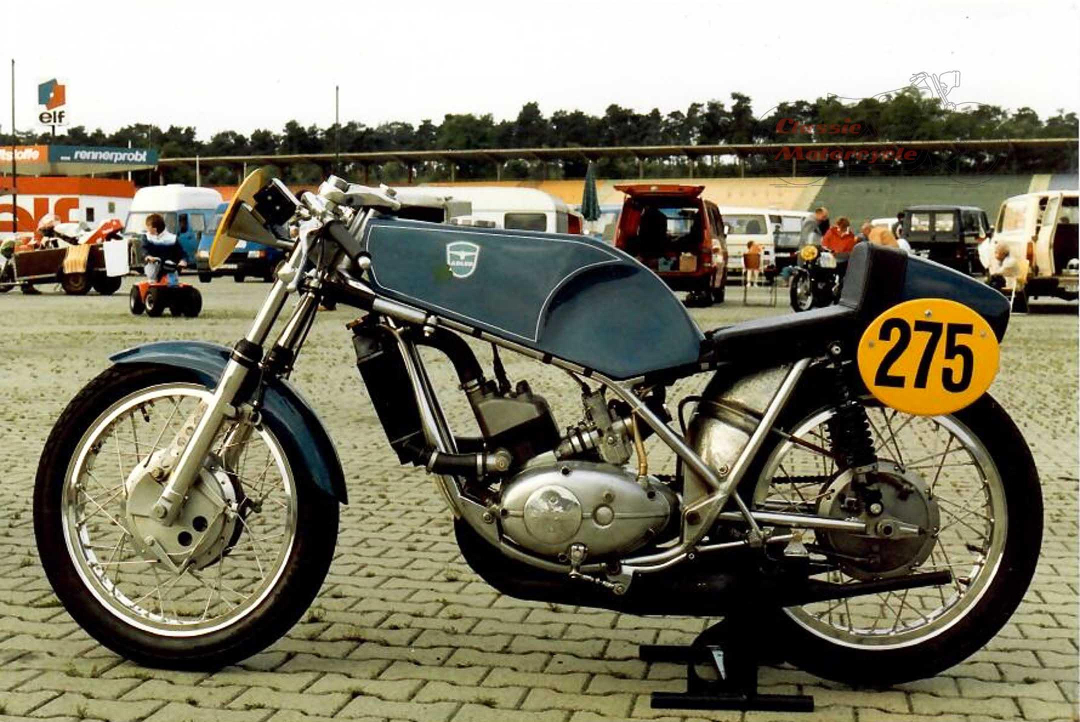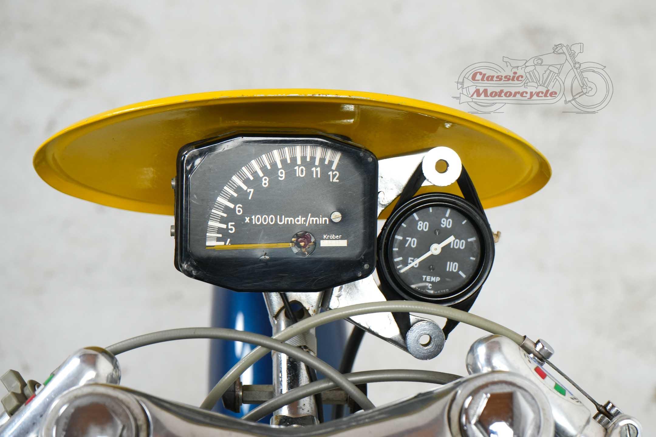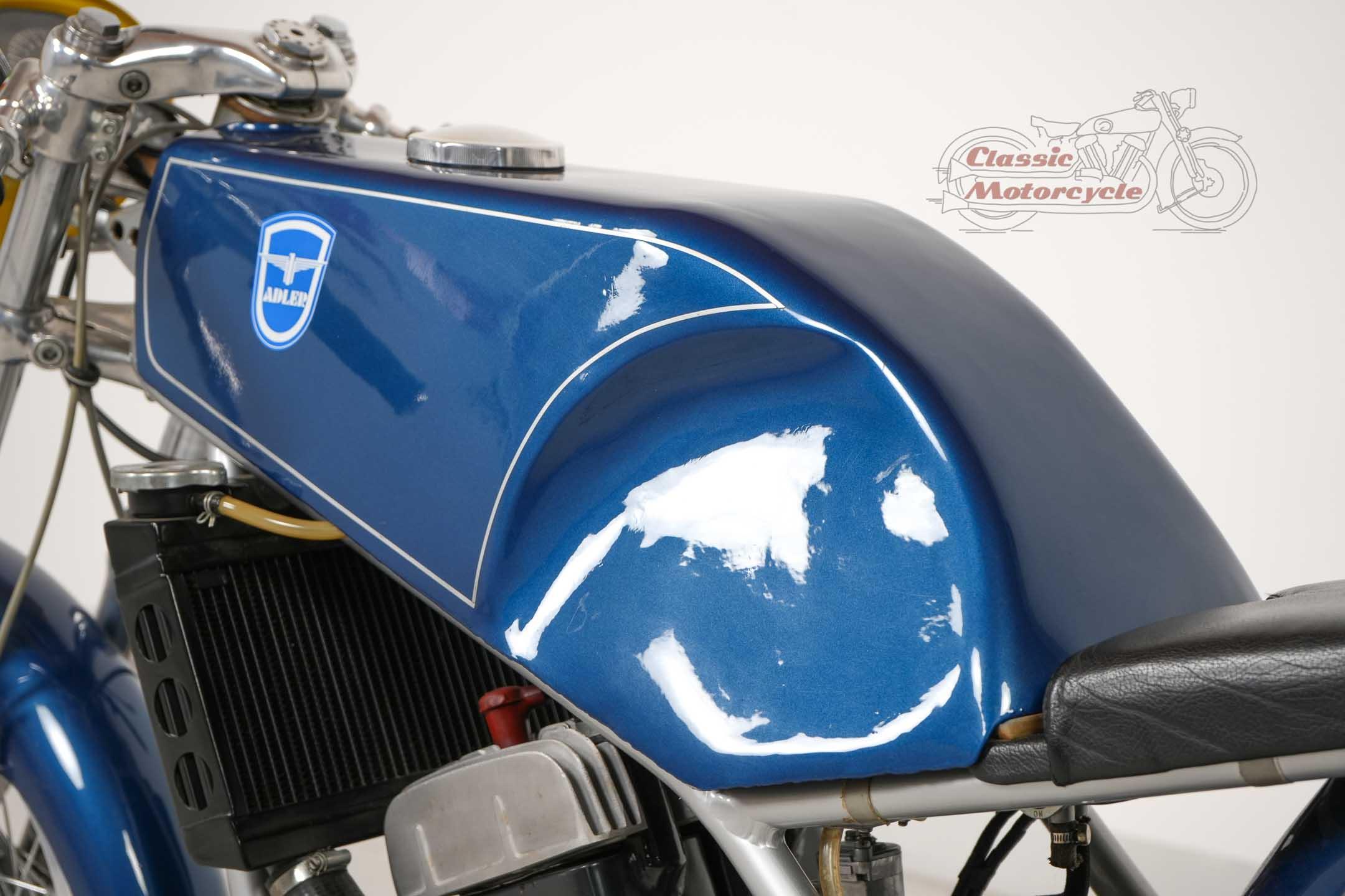 Willi Klee, born on December 13th, 1922, was responsible for the Adler RS 250 as a factory racing mechanic. After the closure of Adler motorcycle production in 1957, "little Willi" continued to look after his RS models and was able to achieve numerous best times and victories. Around ten years after production ended, Klee was still so convinced of the machine's potential that he built and homologated the RS 250 described here on his own. The first very dominant Yamaha Twins were a 1:1 copy of the Adler 250, which spurred Klee all the more on to implement his knowledge and experience in his project. Not least thanks to the efforts of Reinhard Scholtis (the flying pencil), the project was completed and the RS was successfully used by former factory drivers, among others. In the 1980s, Klee sold the RS to a racing friend from Germany who, as an expert on these motorcycles, maintained the Adler and used it at historic racing events. The Adler has an impressive 38 hp at the rear wheel. It has a number of racing trophies, a whole folder of old correspondence, maintenance records from the 1980s and a VFV vehicle passport with the REG. No.: -824- LFD-No.: 00207. A special highlight is the old photo of Wili Klee with this machine.