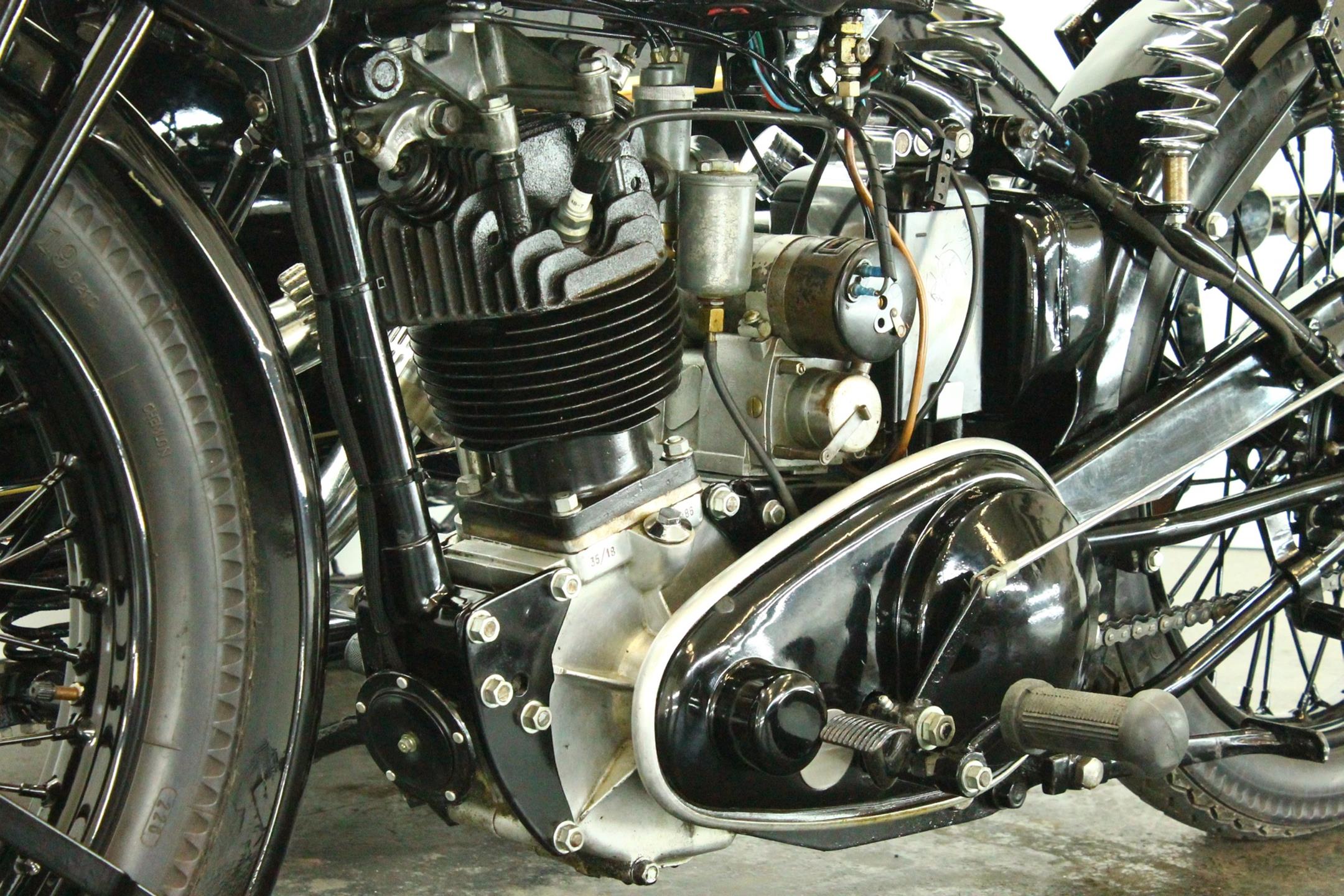 The A.J.Stevens Company was founded in 1909 by the four Stevens brothers, with motorcycle production commencing the following year. In the Twenties, AJS made a name for itself with a new OHV single-cylinder engine that helped the Wolverhampton outfit score wins in the 1921 and 1922 Junior TTs. Despite expanding into light cars and other products, AJS were struggling by the late Twenties and the manufacturing rights for their motorcycle production passed to Matchless in 1931 before becoming part of the Associated Motor Cycles group in 1938. In 1935 a large variety of models are available. The model range reached from 250cc single to 1000cc V-twin.