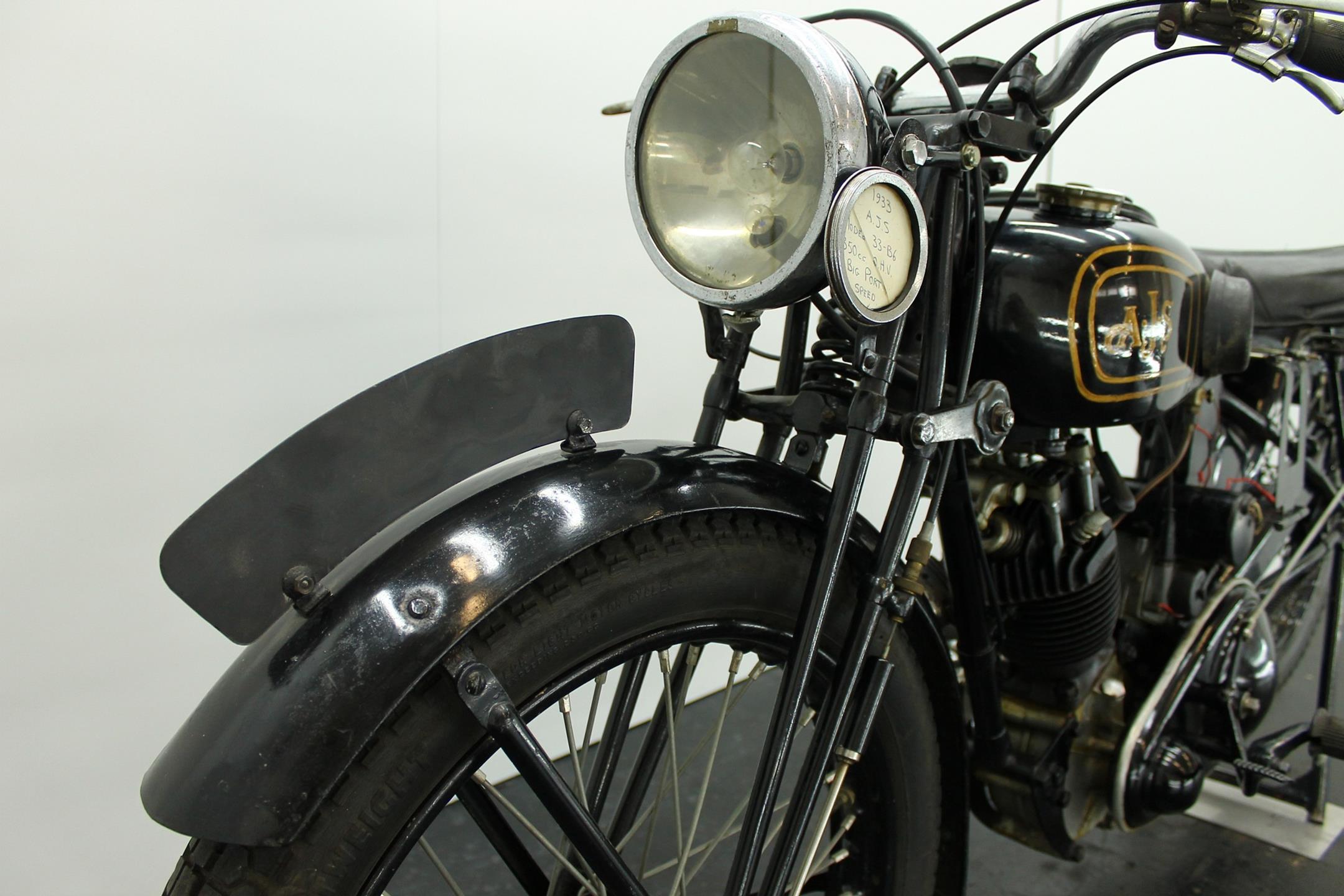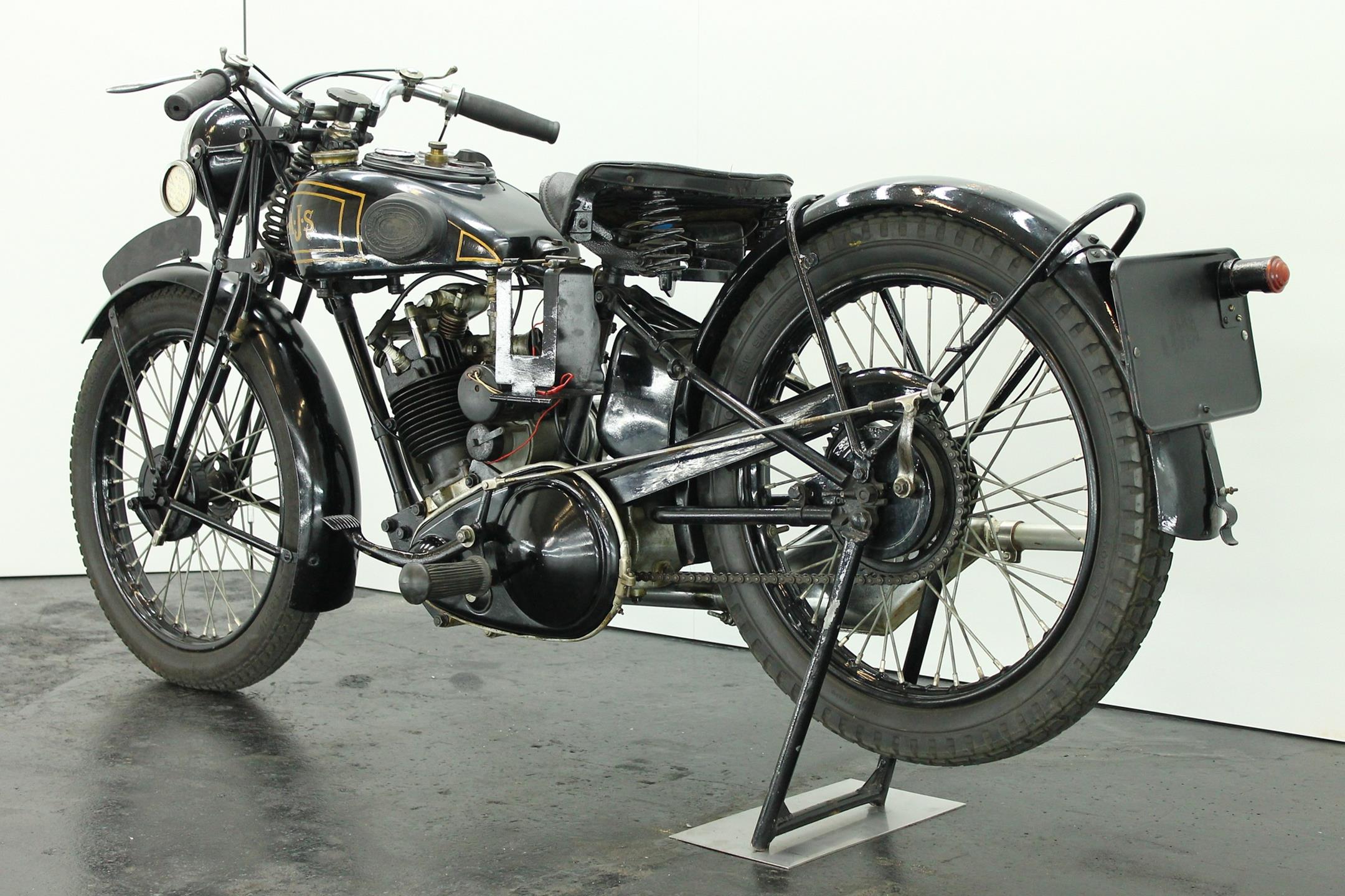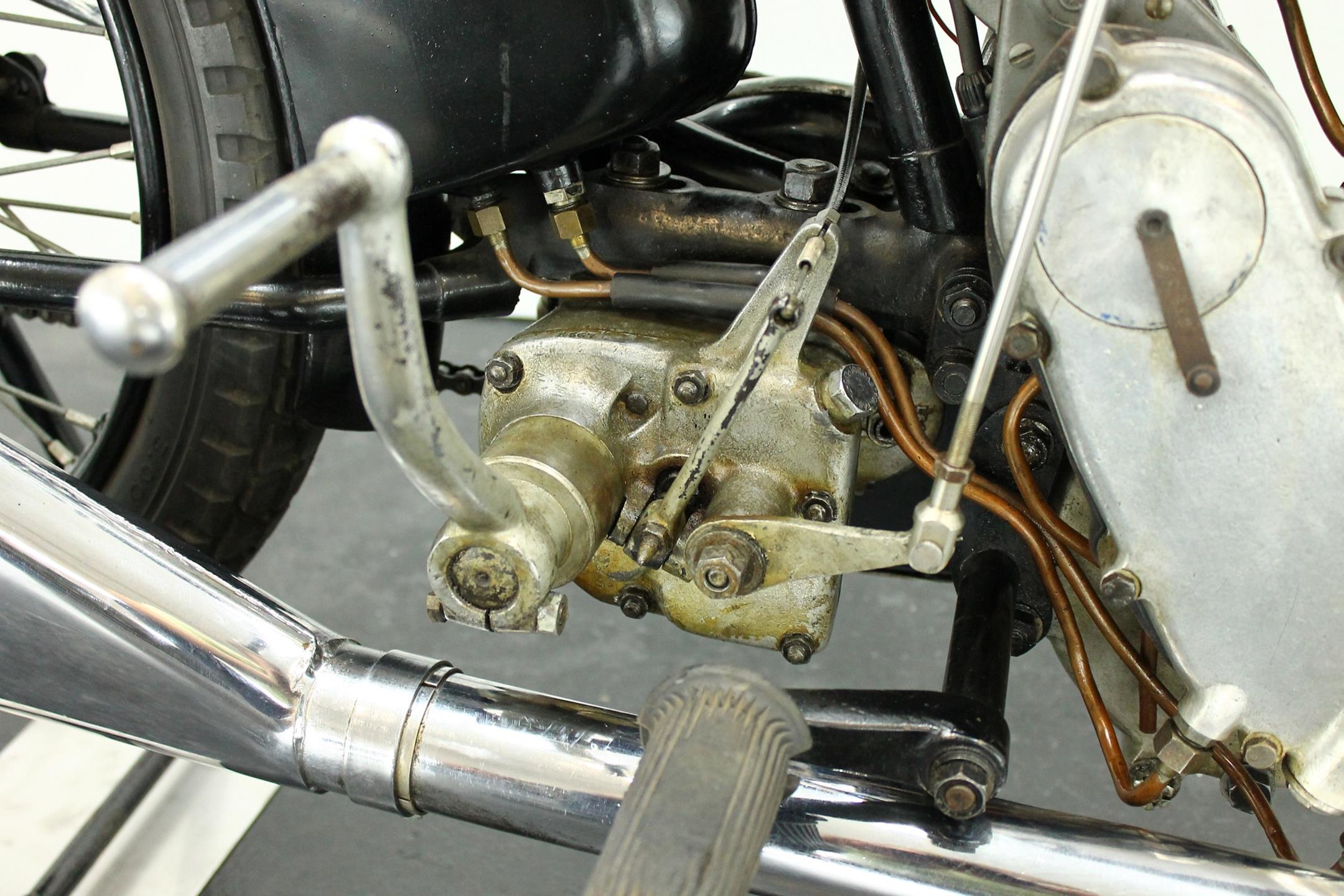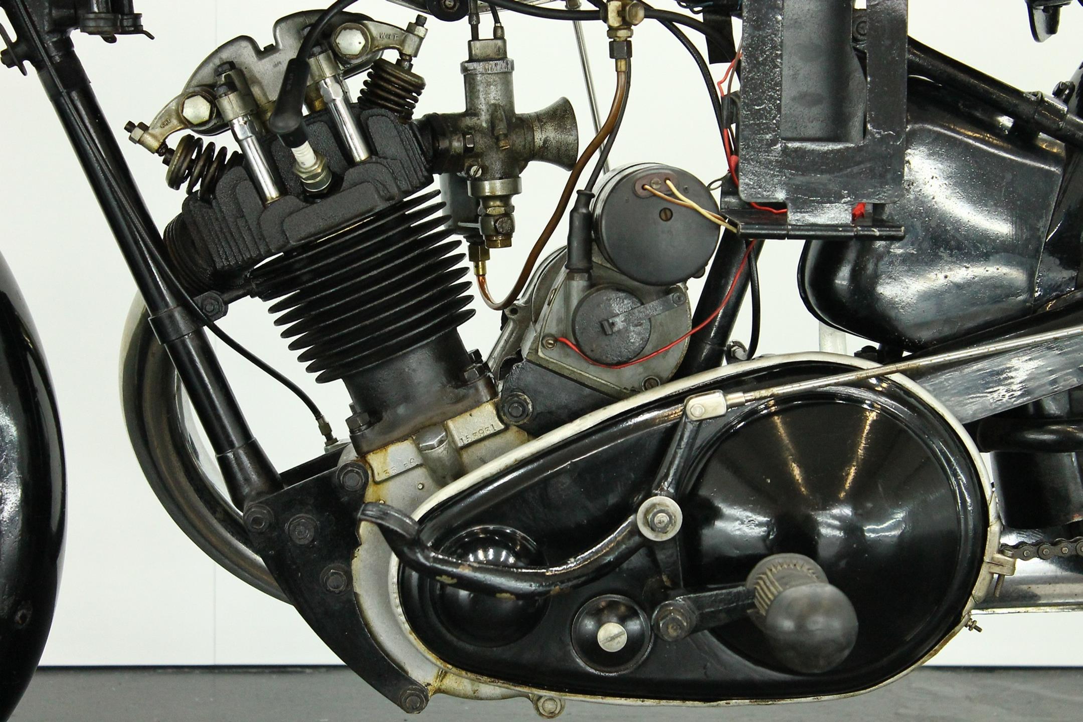 In 1931, during economic stagnation, The Matchless Company took over AJS Motorcycles and moved production from Wolverhampton to London. In 1933, the assortment consisted of 10 models, ranging from a 250cc ohv to a 990cc sv V-twin. This AJS B6 ohv has a displacement of 349cc and bore 74mm, stroke 81mm. The 33-6 Series included two models, this 33-B6 with one port and the 33-6 with two ports. It´s equipped with electrical lighting and magneto ignition. This solidly built 33-B6 has a 4 speed gearbox.