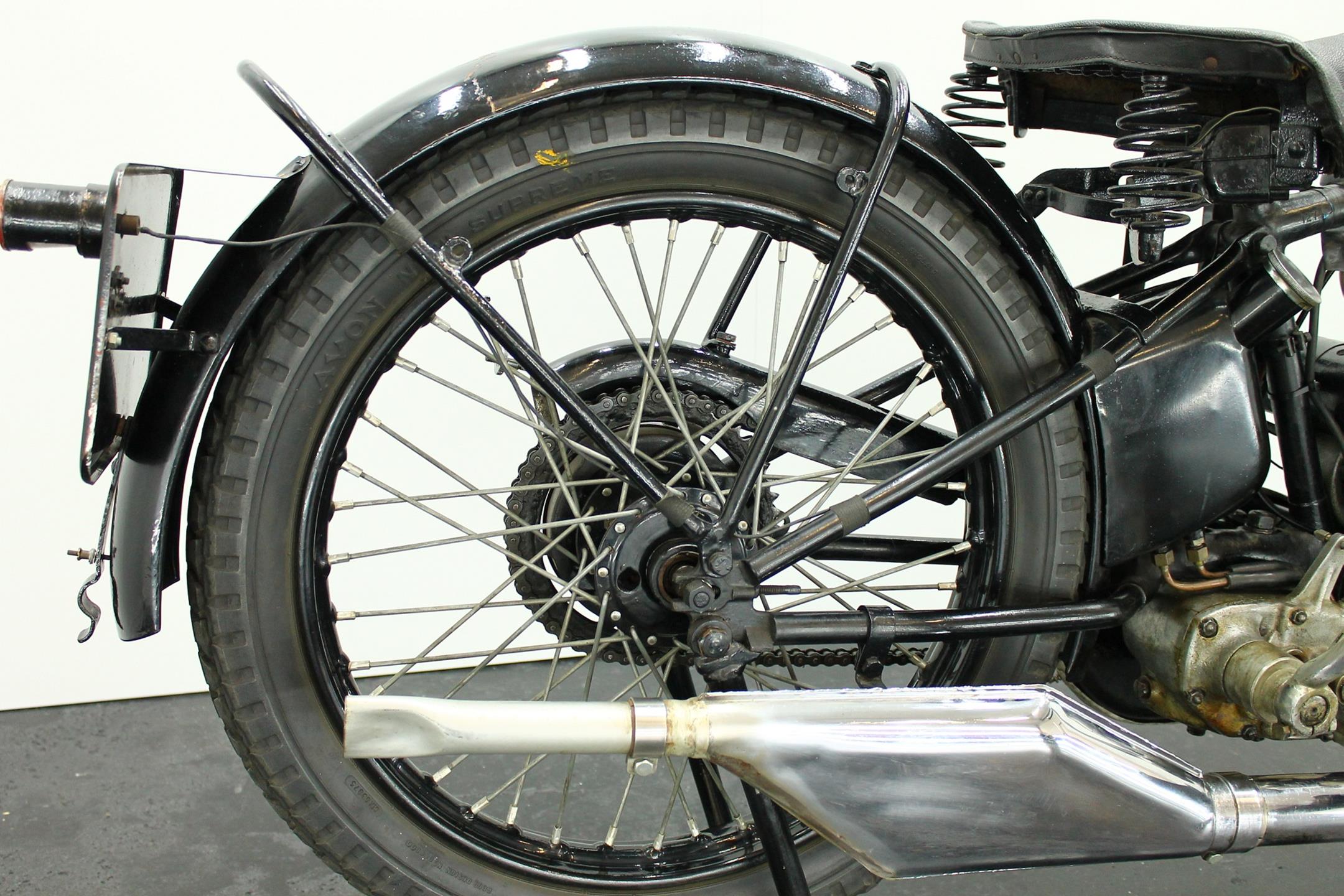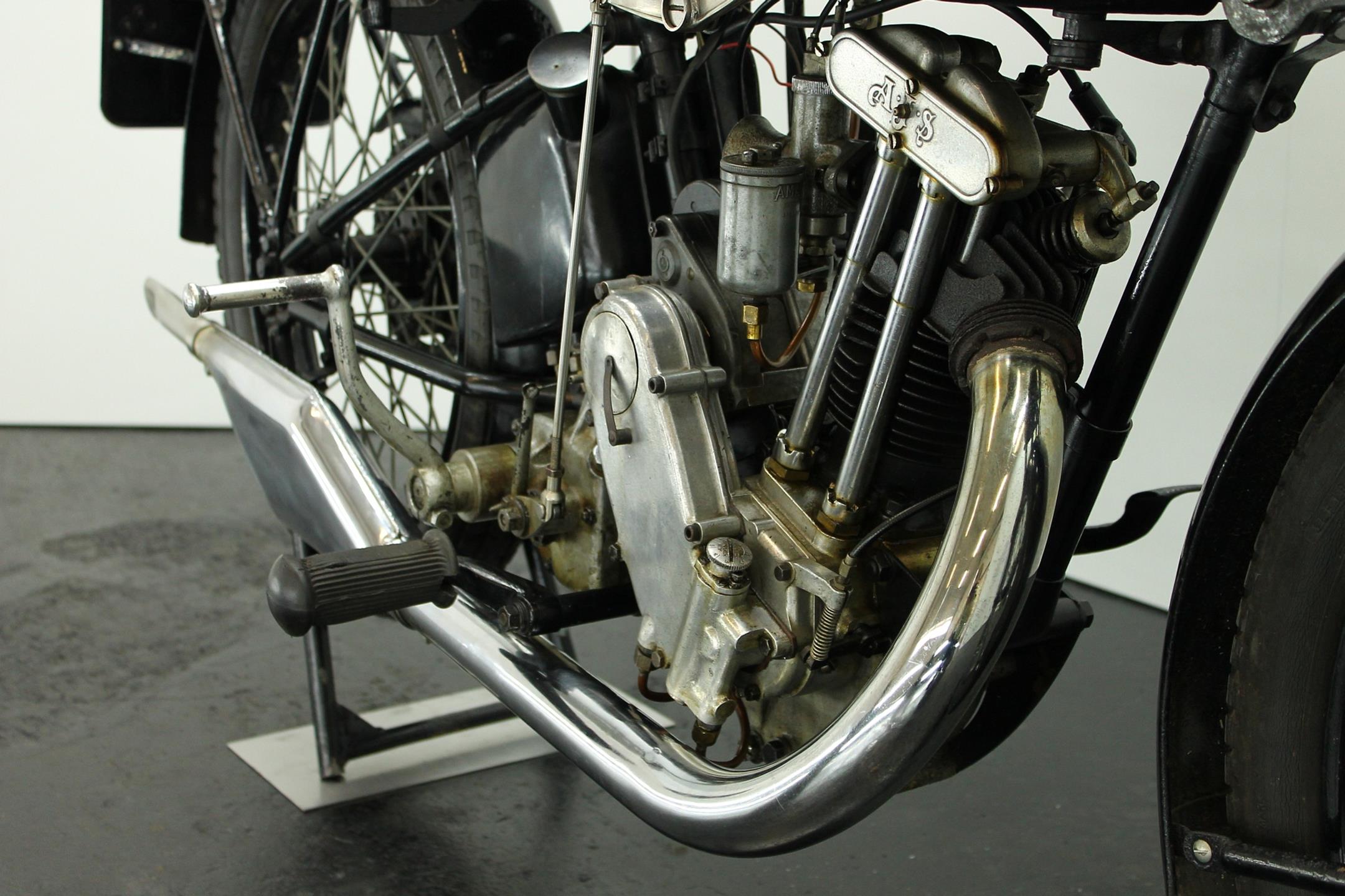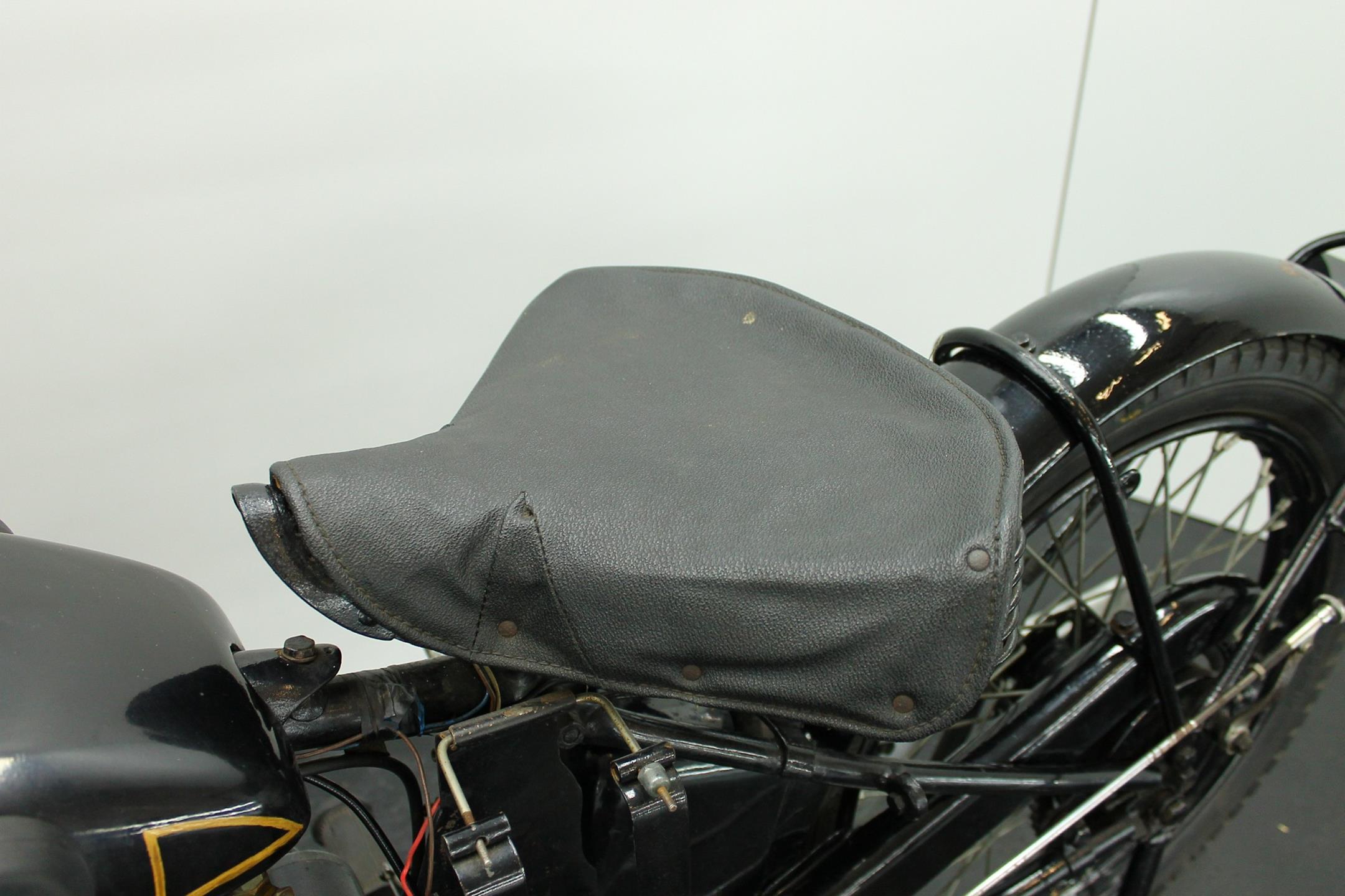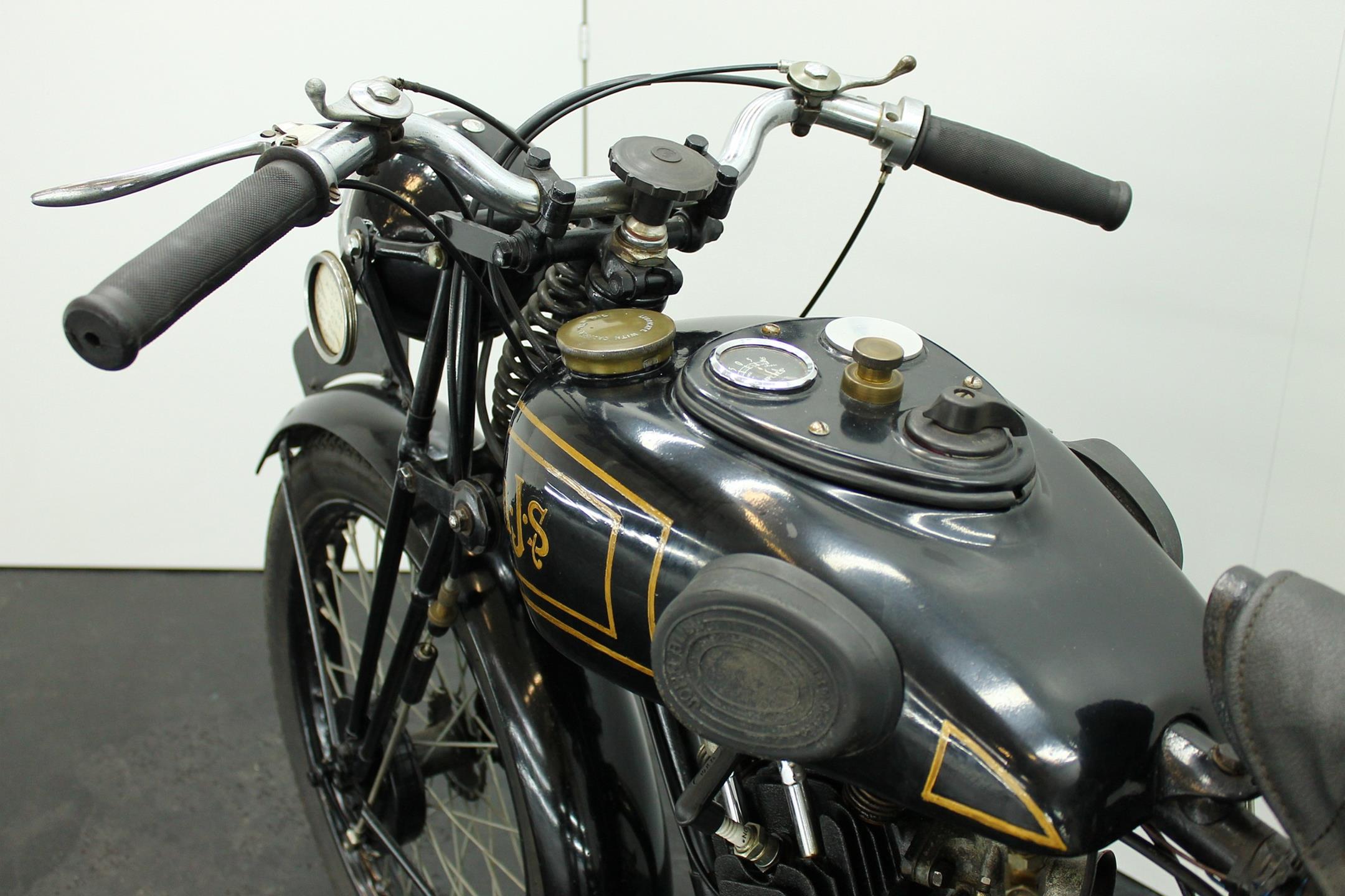 In 1931, during economic stagnation, The Matchless Company took over AJS Motorcycles and moved production from Wolverhampton to London. In 1933, the assortment consisted of 10 models, ranging from a 250cc ohv to a 990cc sv V-twin. This AJS B6 ohv has a displacement of 349cc and bore 74mm, stroke 81mm. The 33-6 Series included two models, this 33-B6 with one port and the 33-6 with two ports. It´s equipped with electrical lighting and magneto ignition. This solidly built 33-B6 has a 4 speed gearbox.