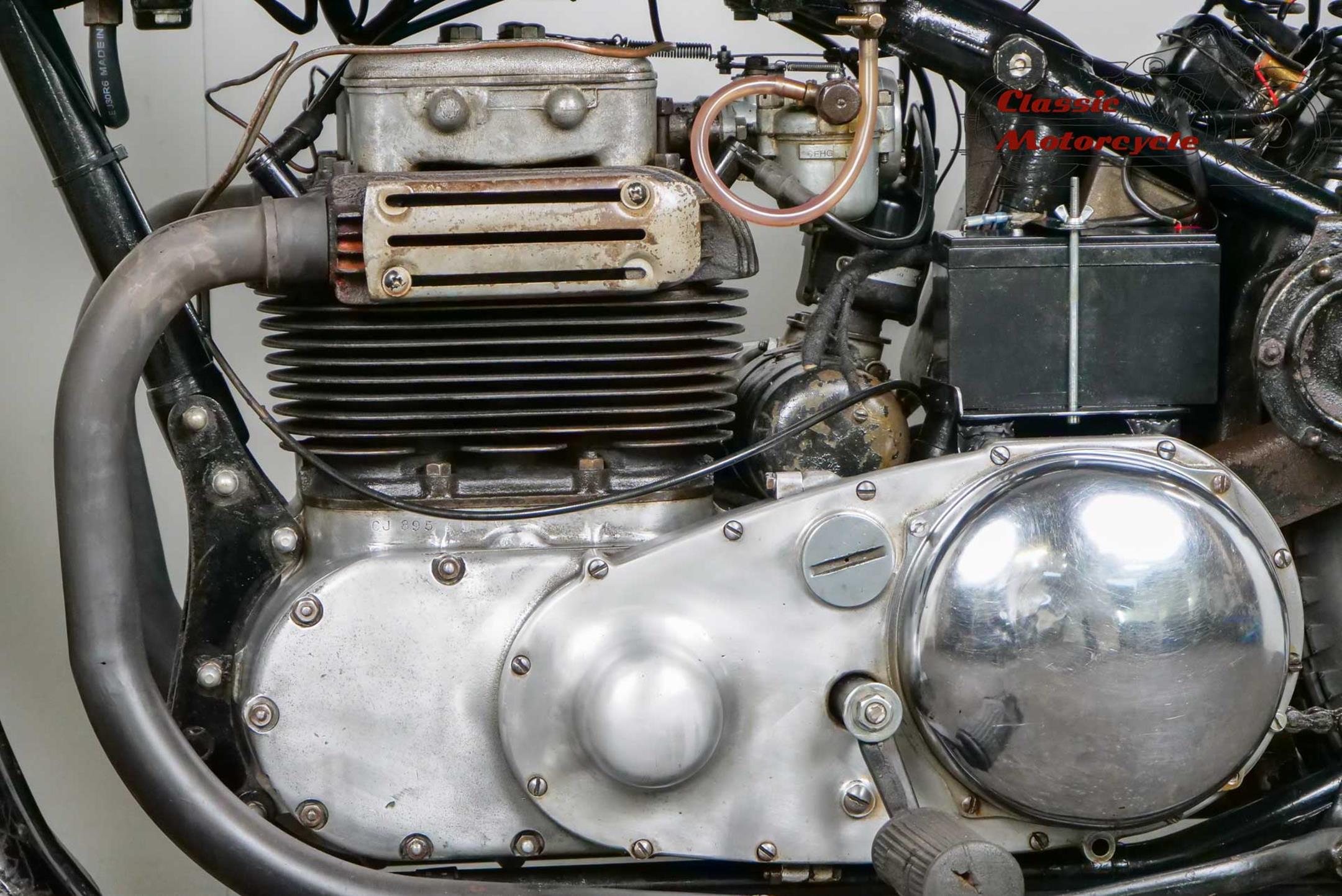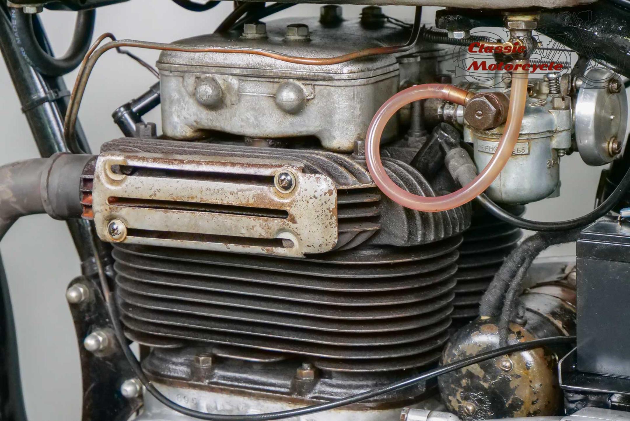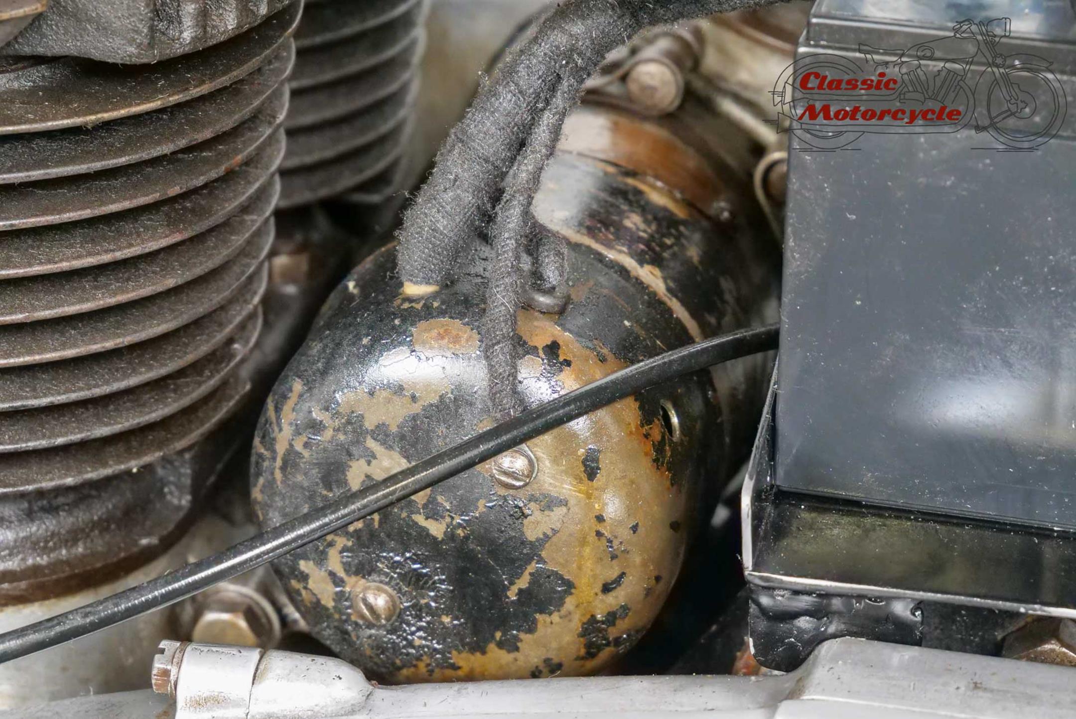This is a rare specification, telescopic front fork and rigid rear end. Only a few bikes left the Ariel work with this specification. The most paint of this bike bears its lovely original paint. This bike is a great runner.