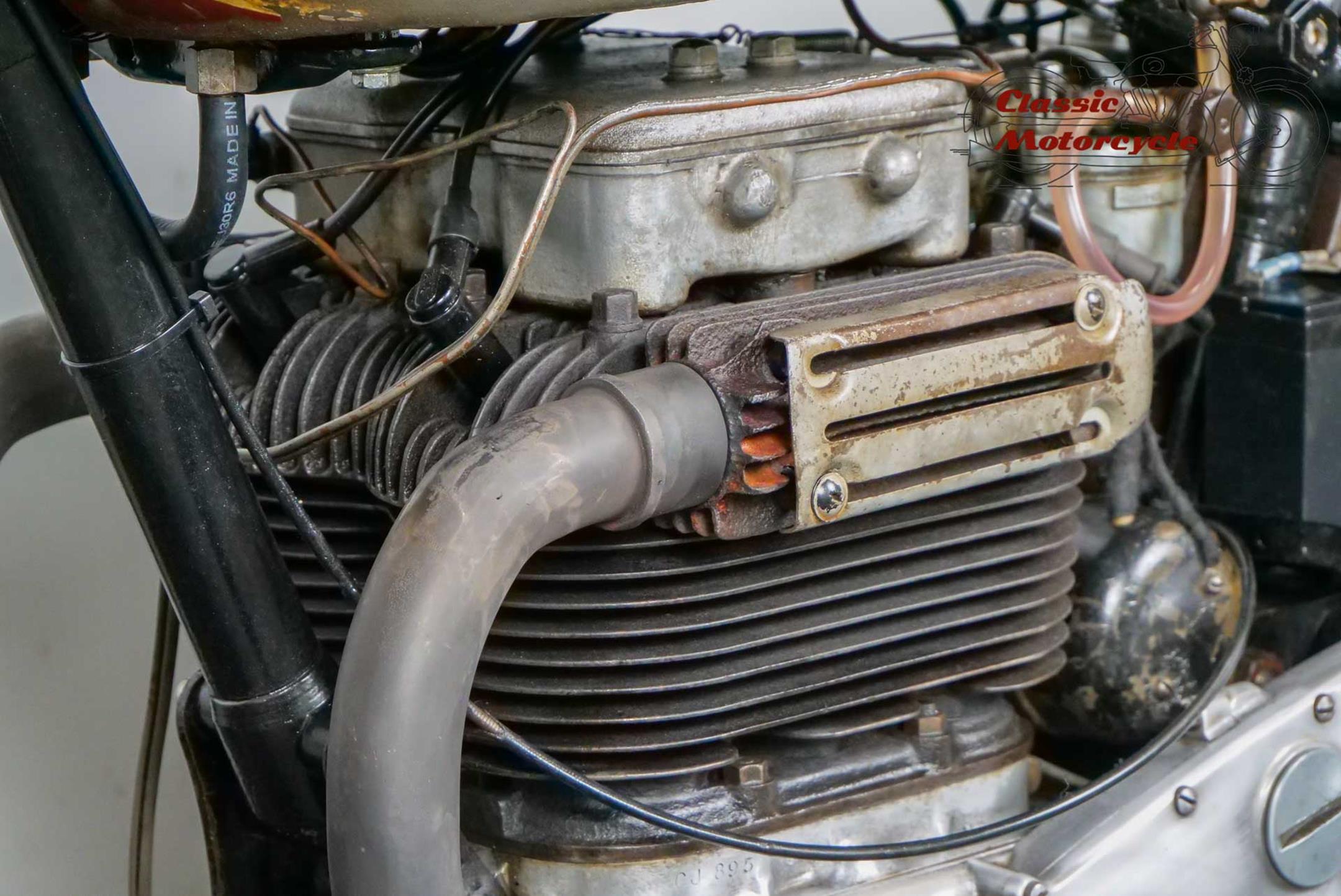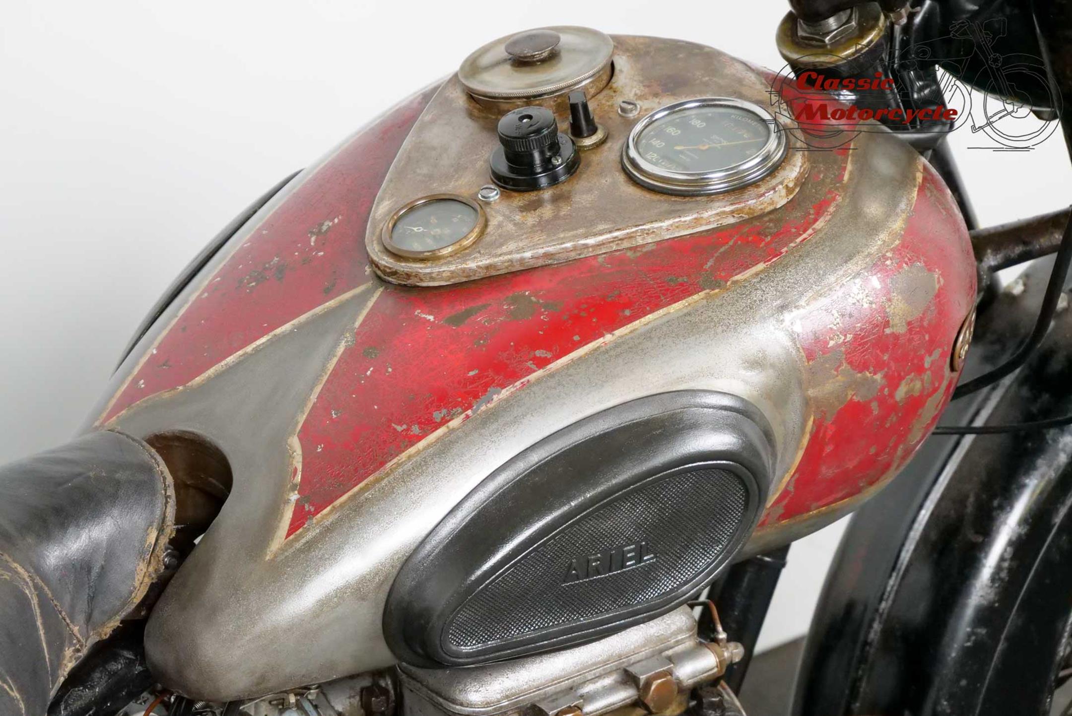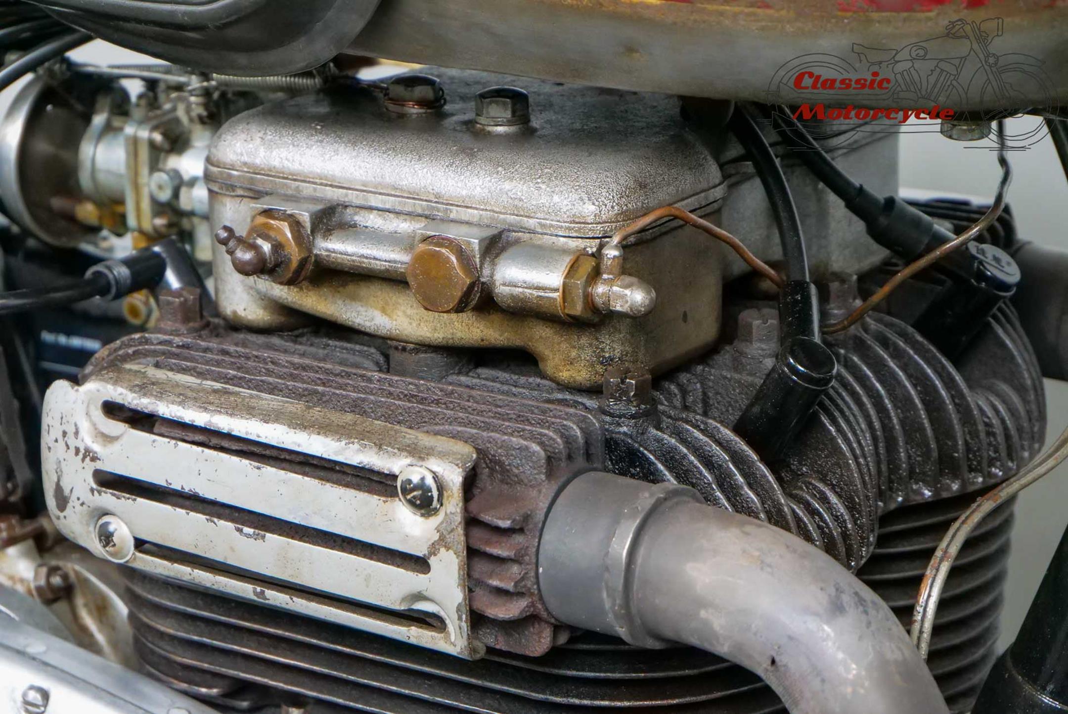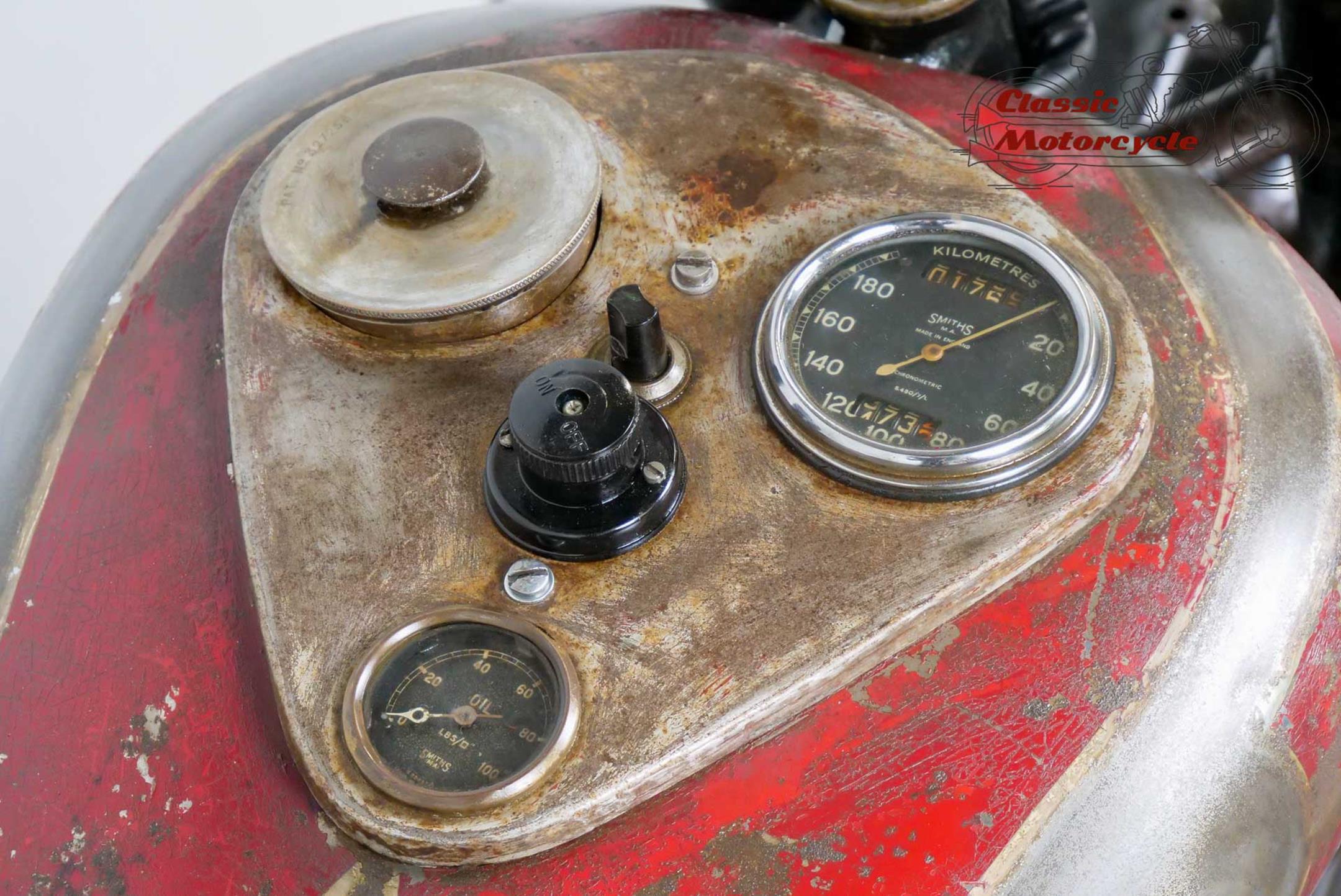 This is a rare specification, telescopic front fork and rigid rear end. Only a few bikes left the Ariel work with this specification. The most paint of this bike bears its lovely original paint. This bike is a great runner.