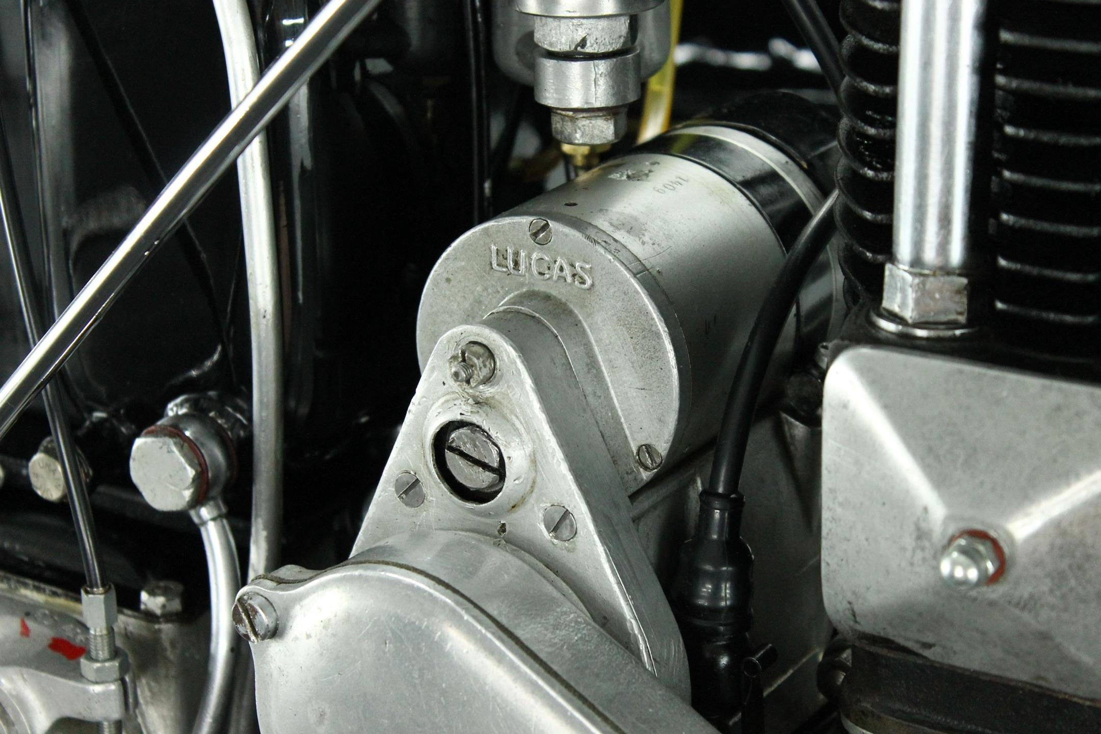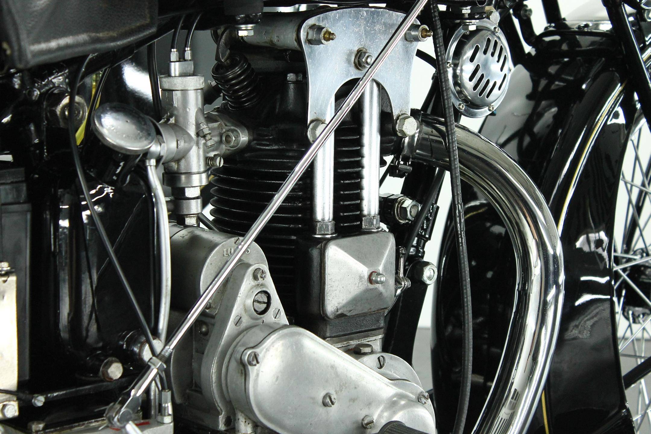 Ariel's design department was blessed with a surfeit of talent as the Selly Oak firm entered the 1930s, Chief Designer Val Page having under his wing both Edward Turner and Bert Hopwood. The Ariel range at this time encompassed a dazzling variety of models: vertical engines, sloping engines, side valves, overhead valves - two or four per cylinder - all were represented along with Turner's revolutionary Square Four. It was Page though, who had laid down the basics of Ariel's four-stroke singles range in 1926, moved the magneto behind the engine for '27 and thus established the form in which the engine would survive for the next 30 years. There were 5 models in 1927 A,B,C,D and E. The models A and B were 557 cc side valves, C was an ohv Standard machine, D was the De Luxe version of the C and E was a Super Sports machine.