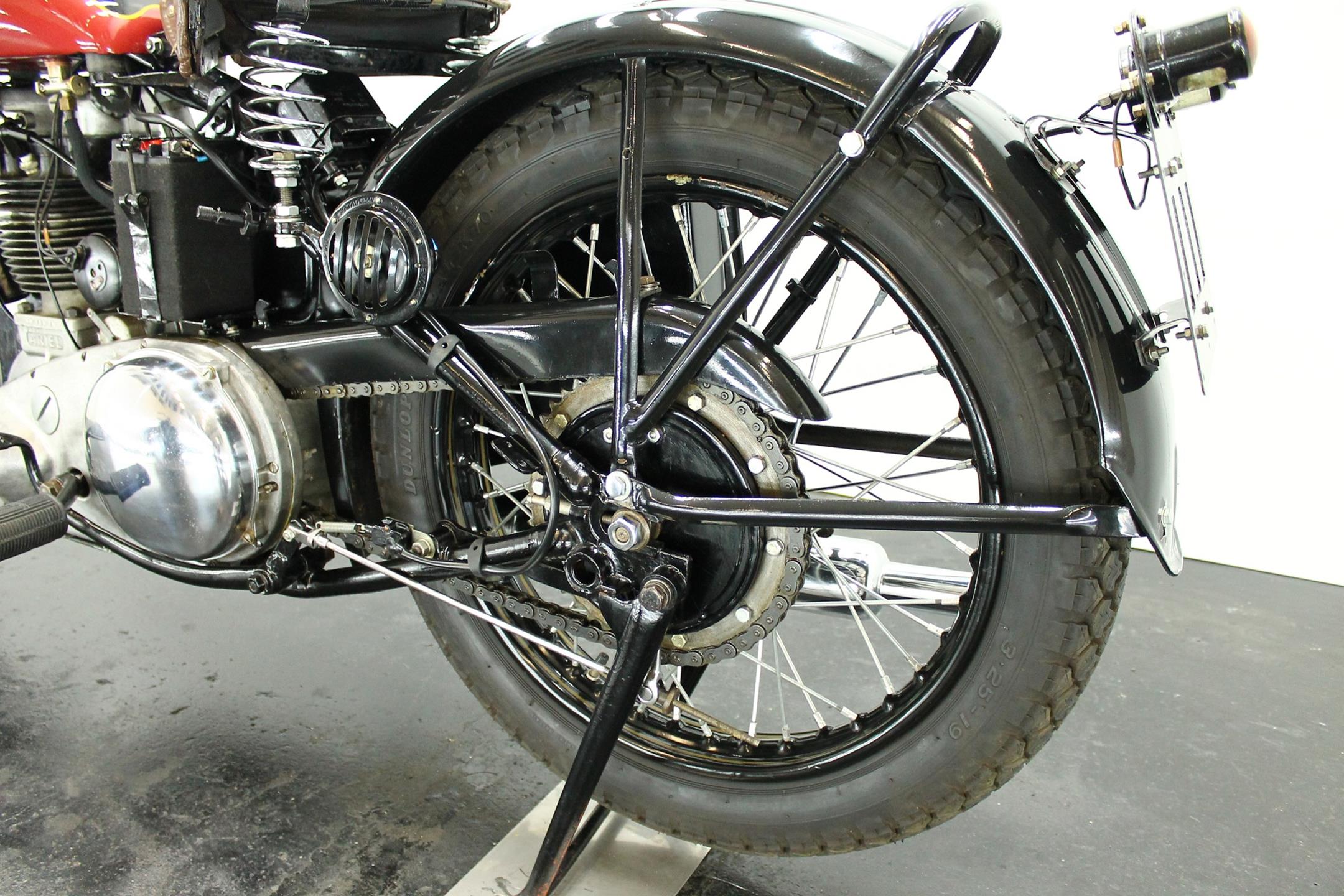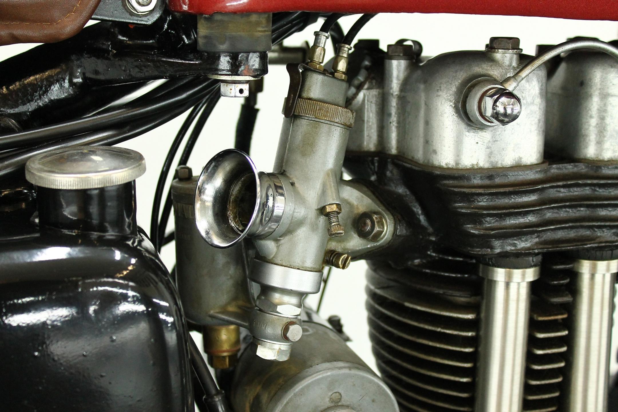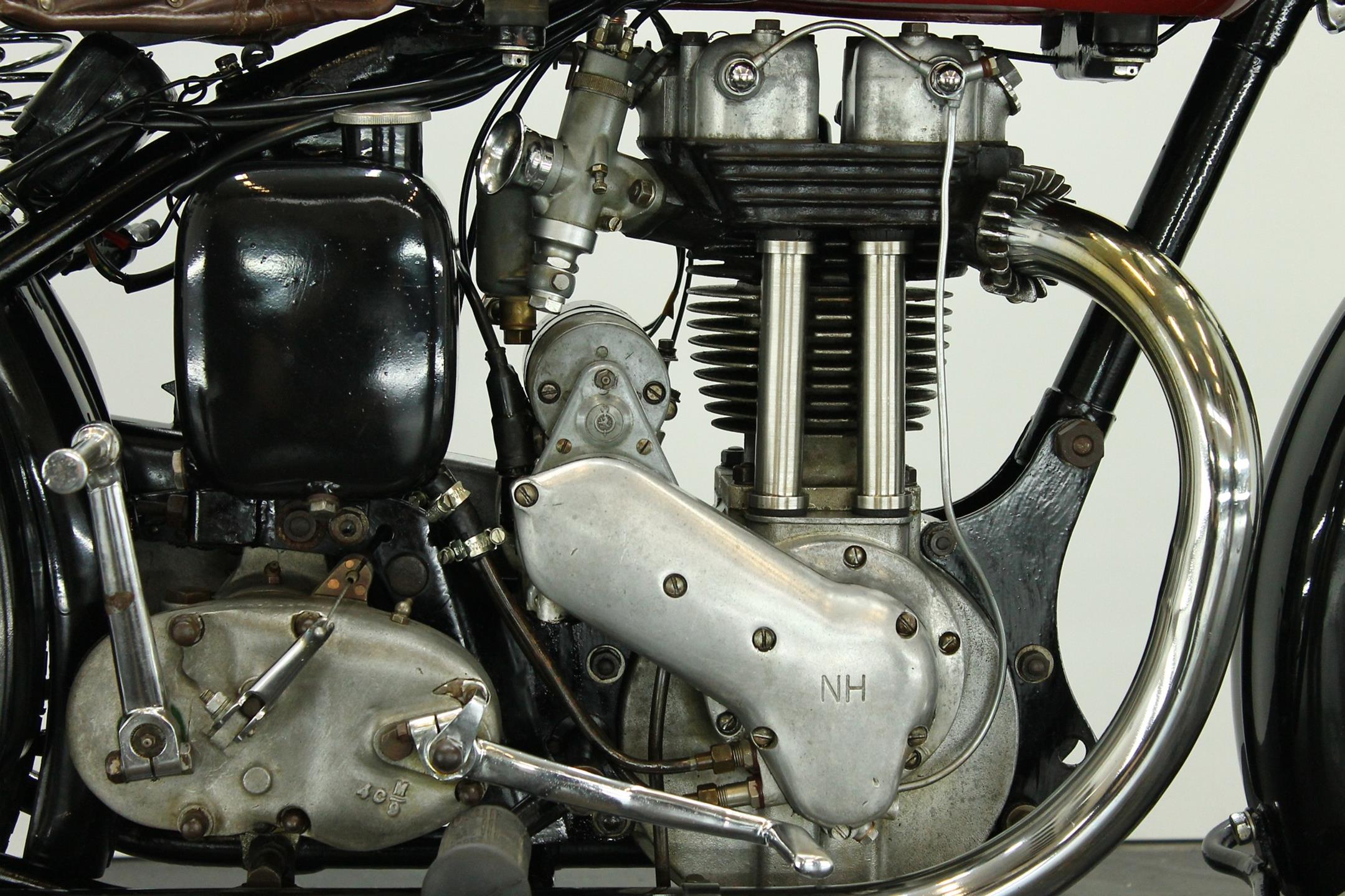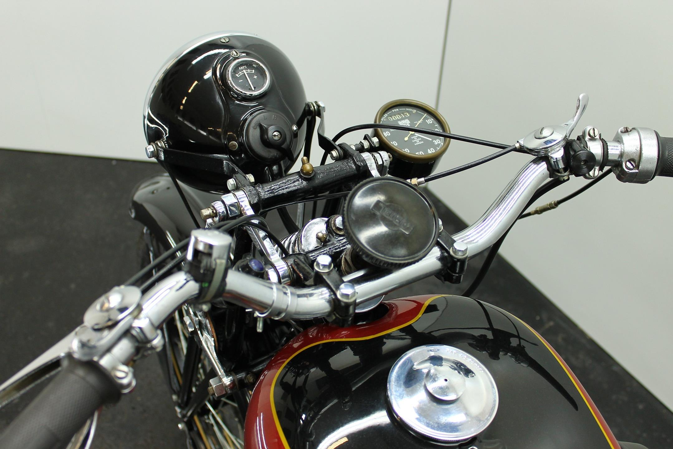 This attractive maschine is equipped with an Smiths Speedo, Lucas electrical system and a 4 speed gearbox. The maschine runs well and has been restored some years ago.