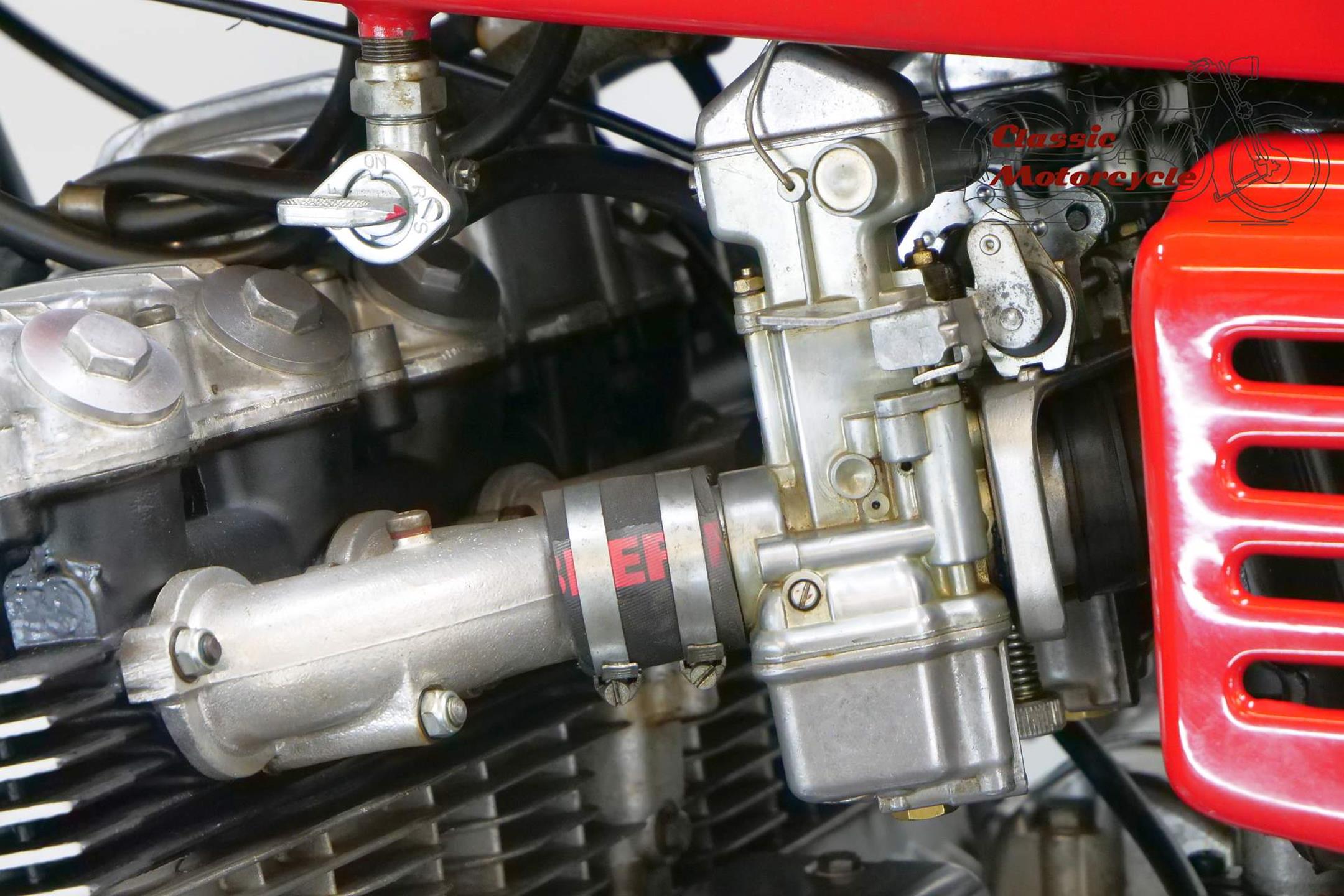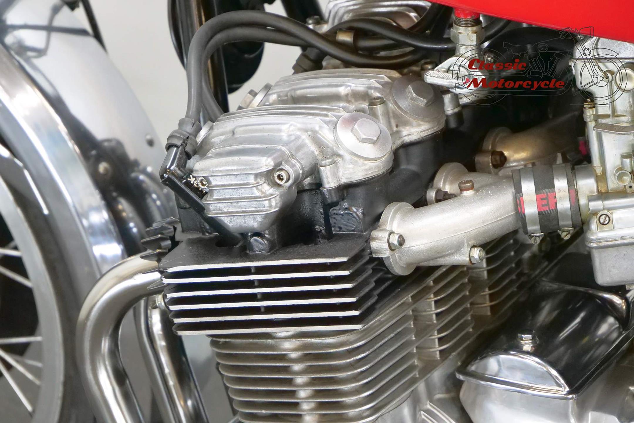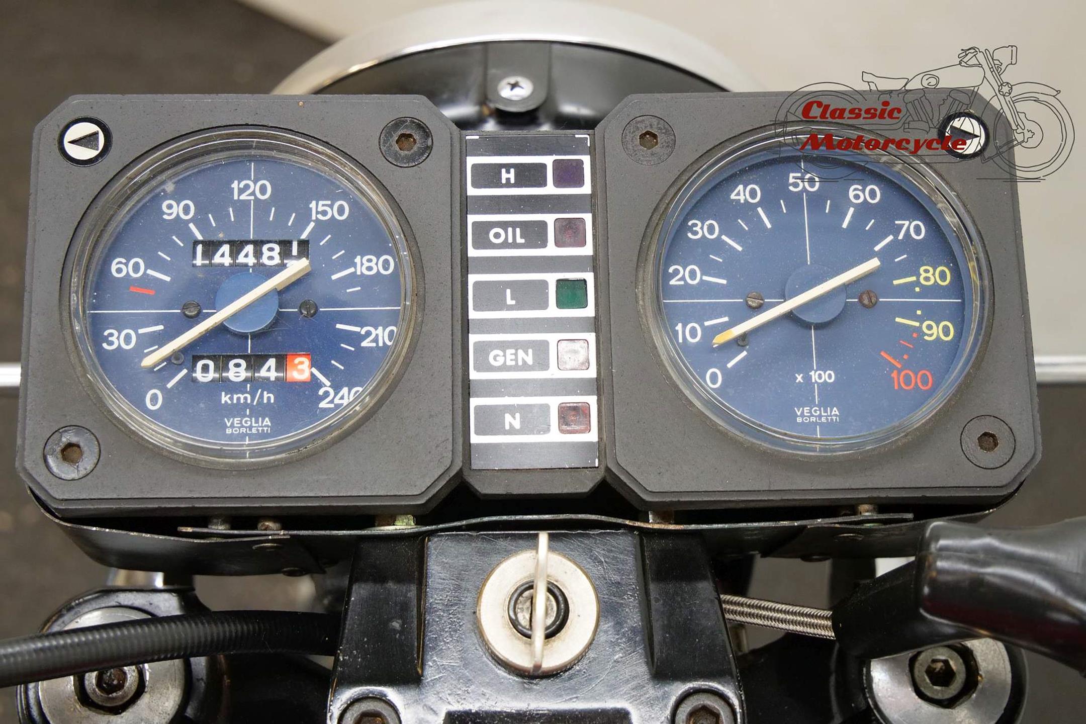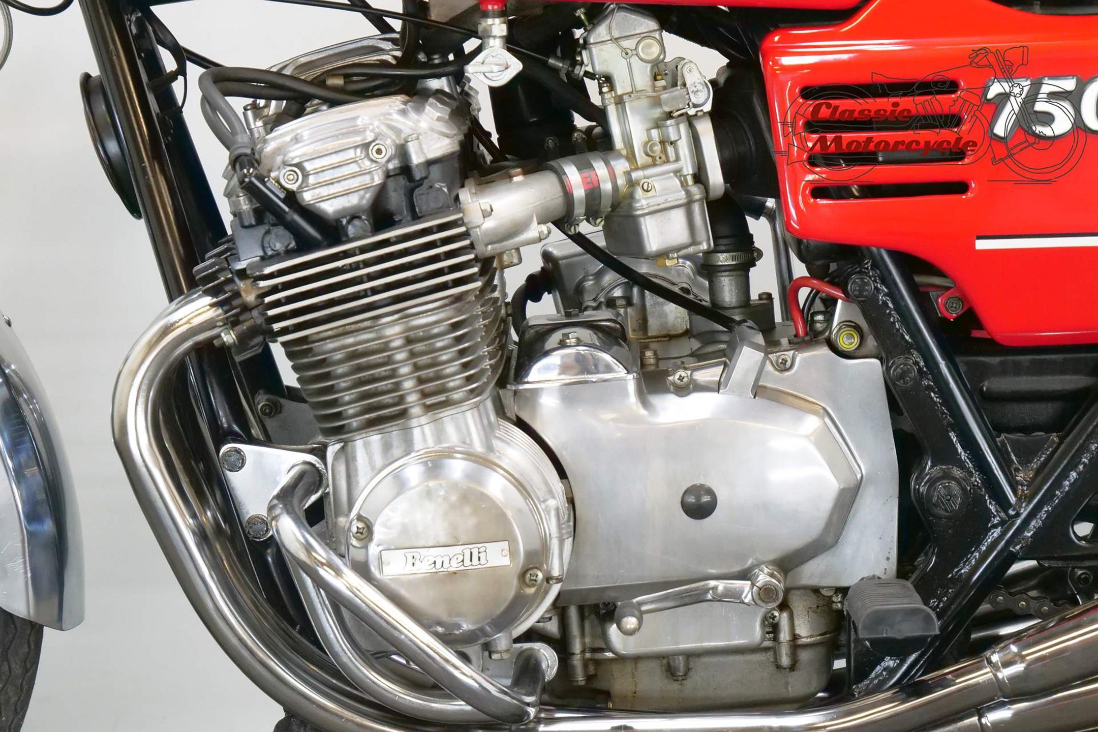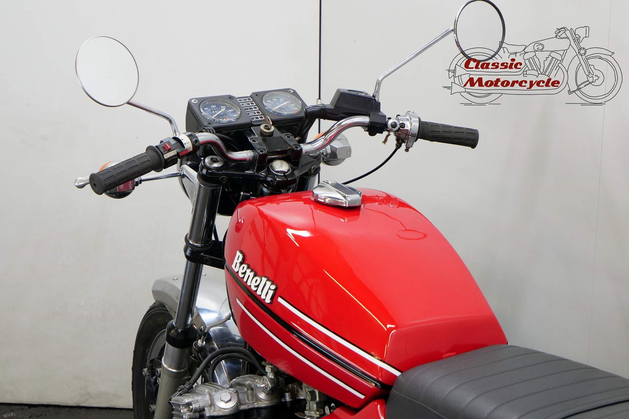 6 cylinder sound on a motorcycle? With this motorcycle it is possible. Benelli did well. This machine is an Austrian first delivery and was part of a well-known motorcycle museum for many years. Under the seat is an old oil change card with the date and mileage. Based on this information, it can be assumed that the mileage is original at 14,481km. The Benelli has complete papers from Austria and is ready to drive.