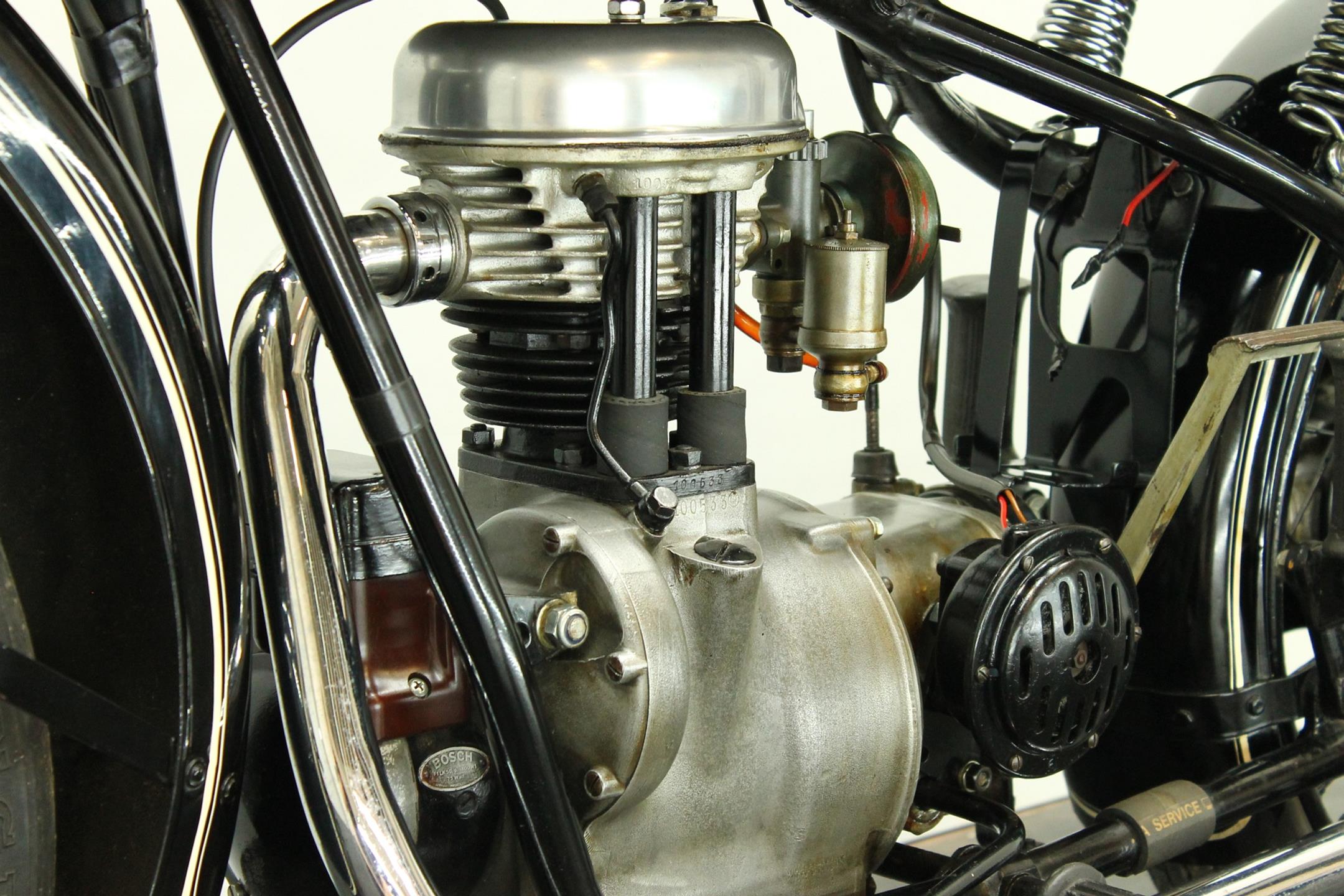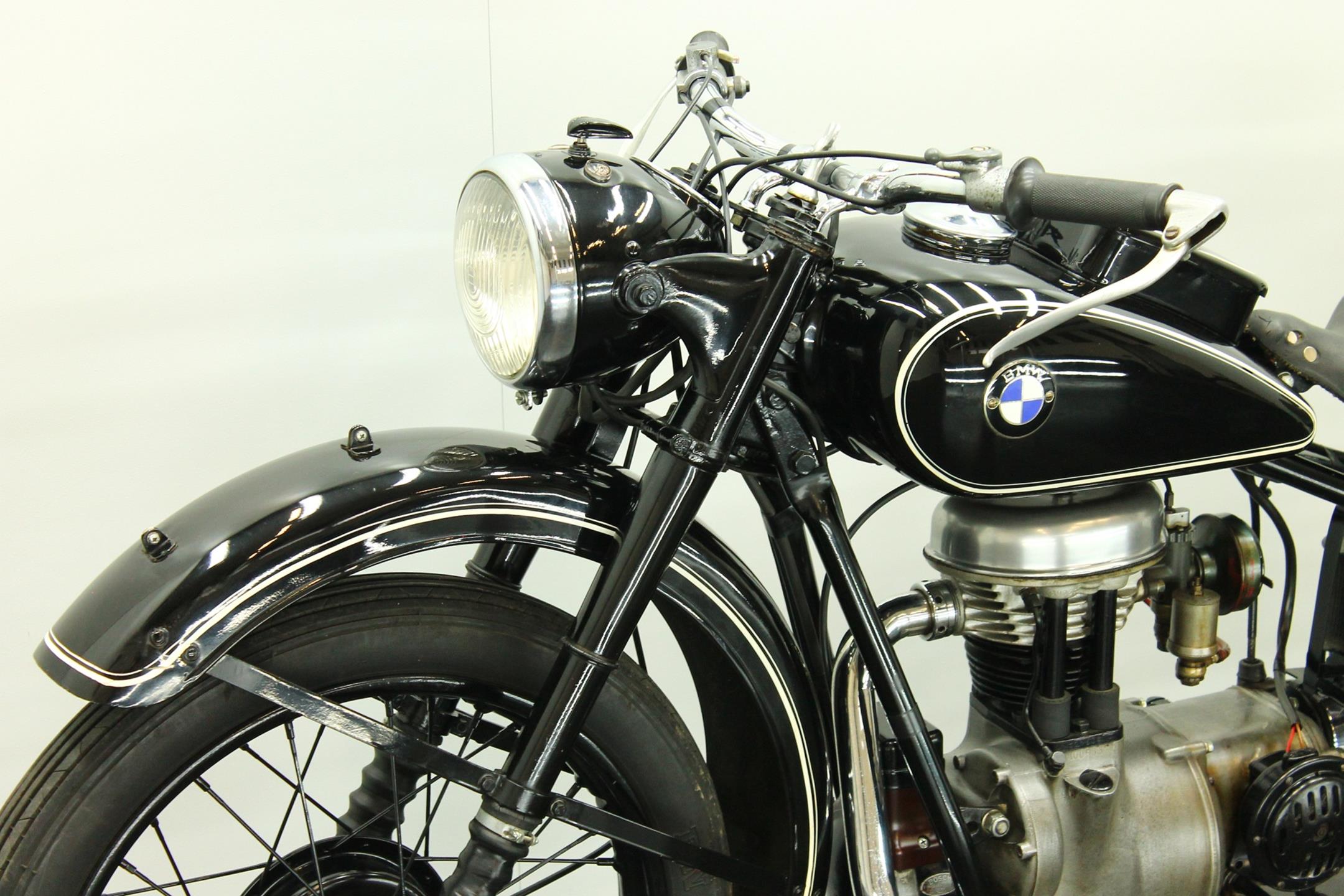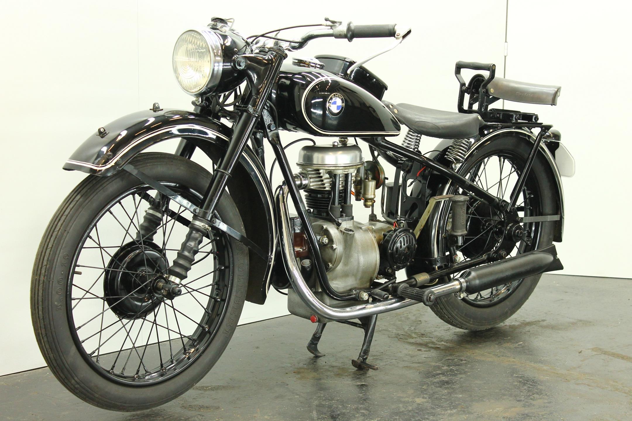 Motorcycles displacing less that 200cc did not have to be licensed in Germany during the early 1930s and thus the category was an important one for all domestic manufacturers. Lightweight two-strokes dominated this sector of the market, which BMW contested with the R2. Launched early in 1931, the relatively expensive four-stroke R2 sold well despite the difficult trading conditions. The 198cc overhead-valve engine was housed in a pressed-steel frame similar in design to that of the twins, and like its larger brethren the single employed shaft final drive. Various improvements were made over the next few years as the R2 progressed through Series 1 to 5. Developed from the best-selling R2, the 192cc R20 was produced during 1937/38, 5,000 examples being sold. The newcomer was powered by a revised 192cc overhead-valve engine producing 8bhp, which was housed in a frame made from bolted-up steel tubes and equipped with an un-damped telescopic front fork.