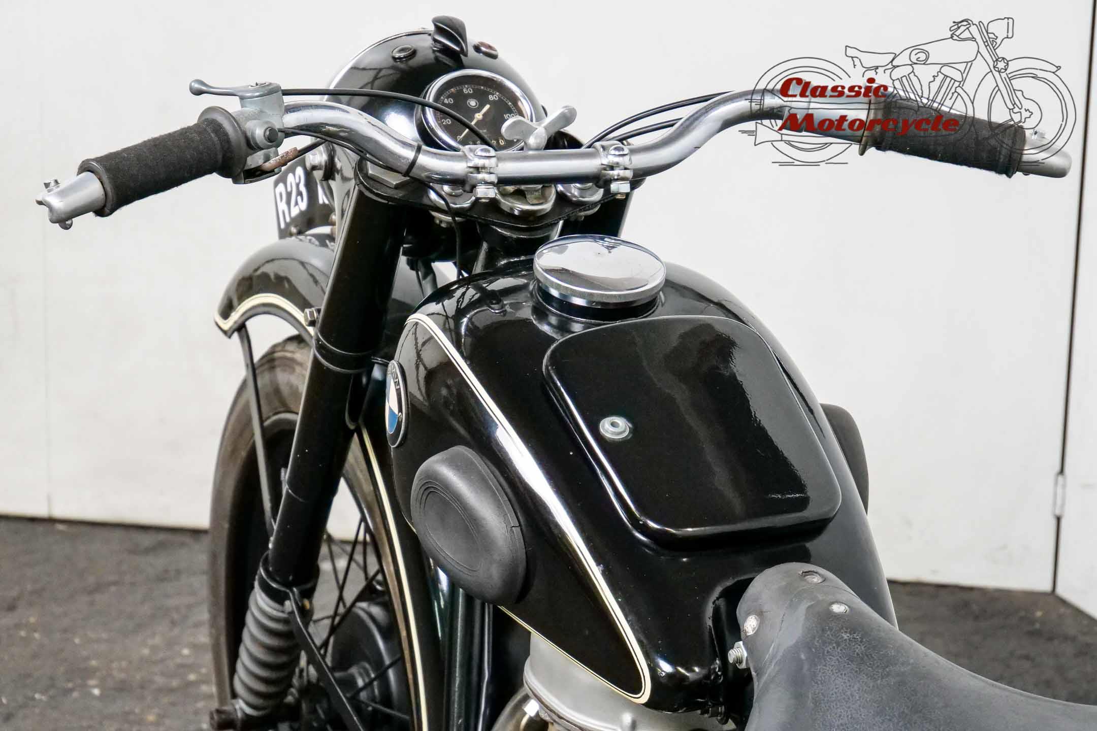 This R23 is an interesting single-cylinder model from the pre-war period. The design is coherent. The 250cc engine with hanging valves fits perfectly with the delicate frame and forms a nice unit. Engine and frame numbers match the type plate. The machine was restored a few years ago and is fully roadworthy.