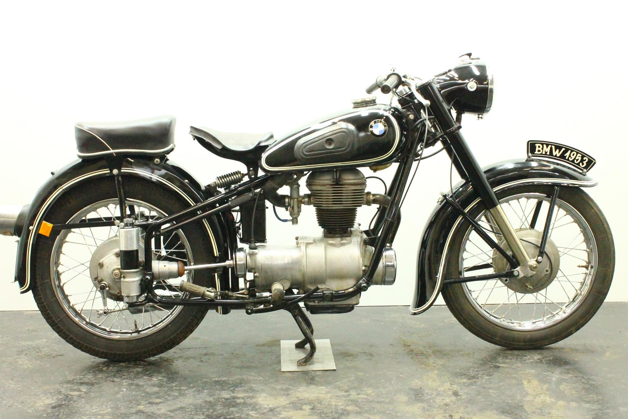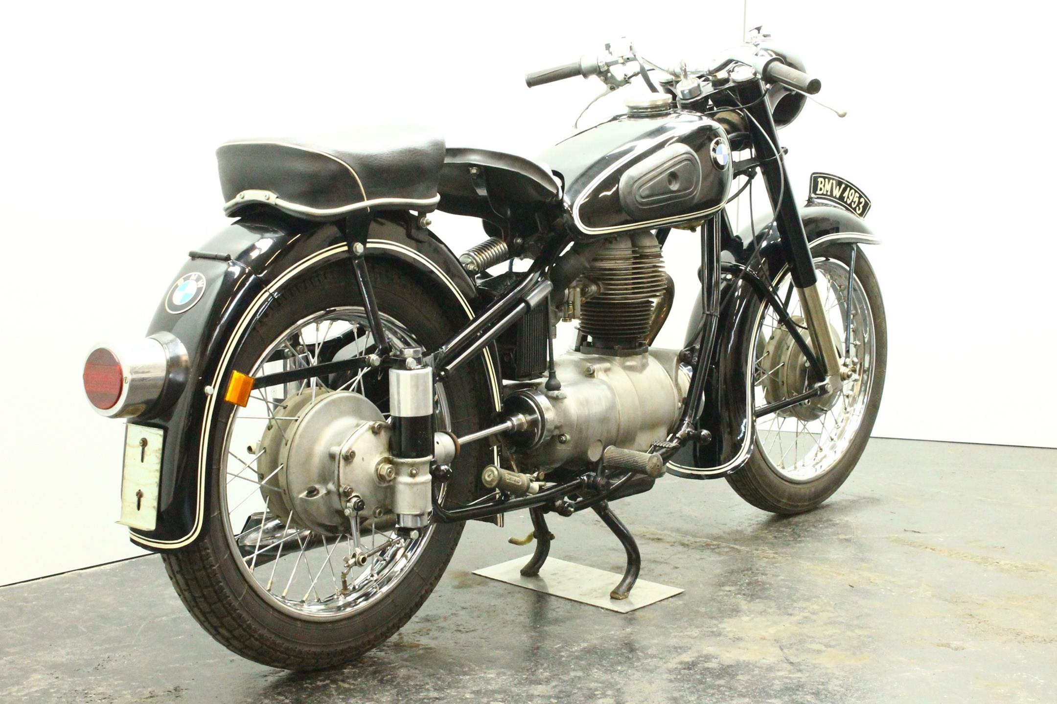 BMW's first new post-war model was a single-cylinder design - the 250cc R24 - which arrived in 1948 looking pretty much like the pre-war R23 but producing an additional 2bhp. It was superseded in 1950 by the R25, which featured plunger rear suspension but was otherwise very similar. An improved R25/2 version was introduced during 1951 incorporating a stronger crankshaft and minor revisions to the front mudguard stays and seat springing. Built between 1953 and 1956, the final R25 variant - R25/3 - featured a new telescopic front fork, full-width alloy hubs and alloy wheel rims as the principal upgrades.