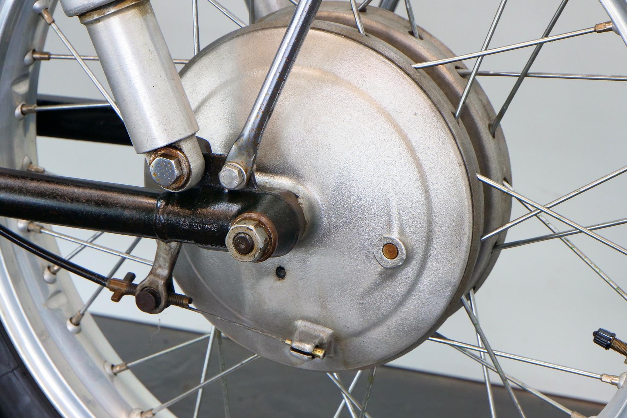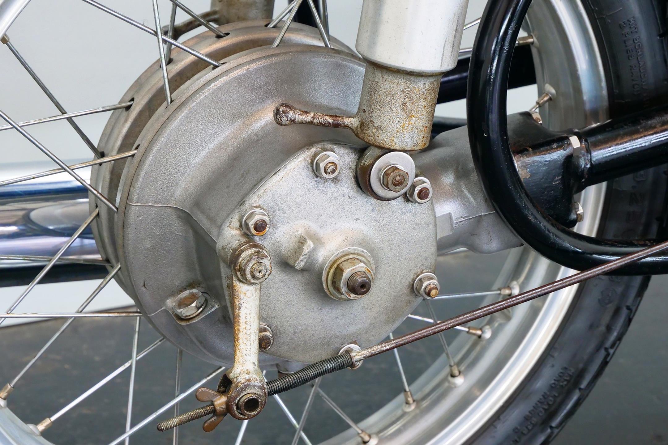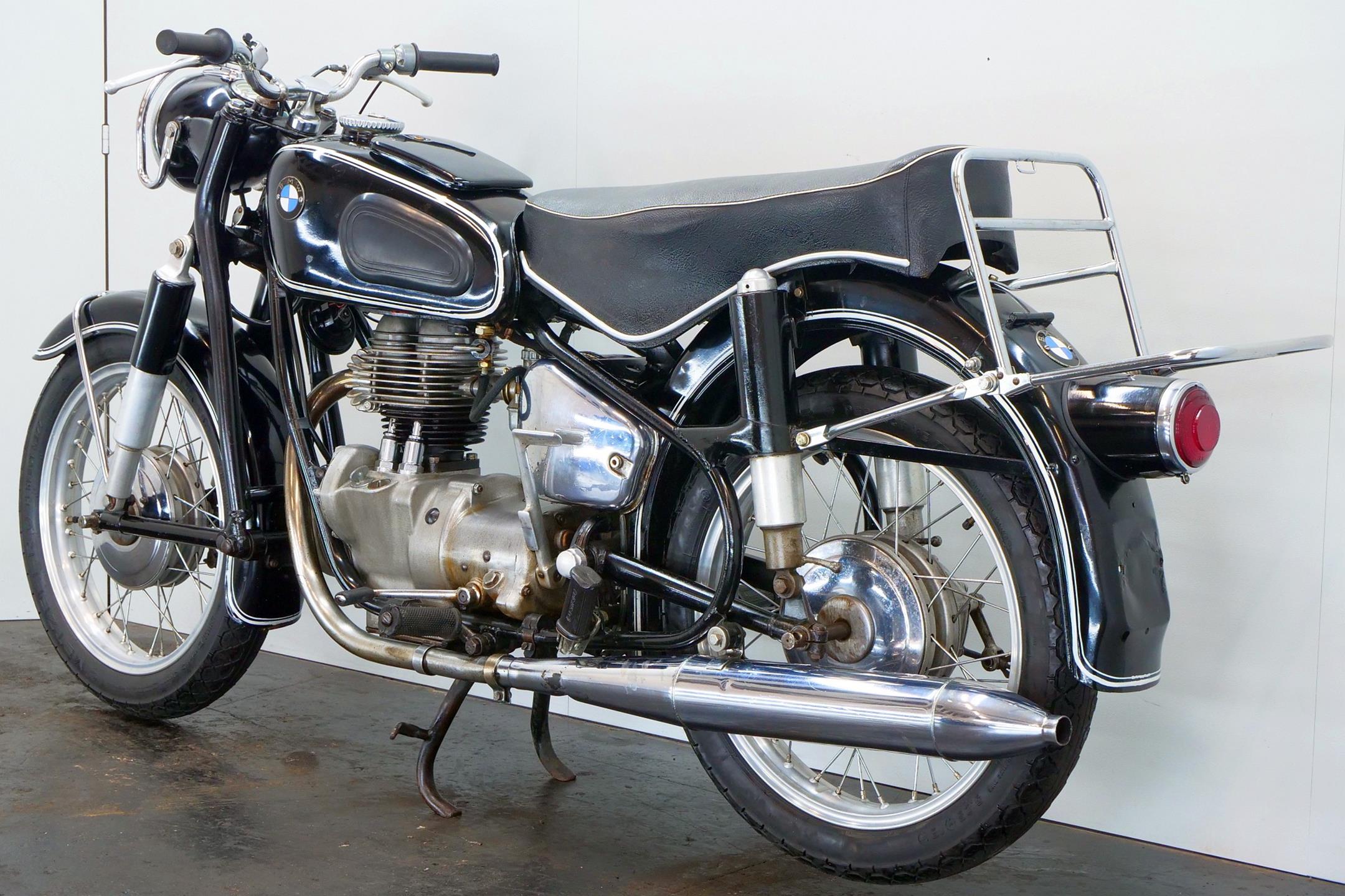Built to the same exemplary standards as the Bavarian company'’ famous flat-twins, the single-cylinder BMW first appeared in pre-war days. Indeed, BMW’s first new post-war model was a single-cylinder design - the 250cc R24 - which arrived in 1948. By 1956, BMW’s quarter-liter luxury lightweight had evolved into the R26 that boasted a more powerful (15ps) engine, Earles-type leading-link front fork and a larger fuel tank among numerous improvements. Considerably more expensive than home-grown 250s, the R26 was appealing to mature, discerning riders for whom quality of construction counted more than mere outright performance.