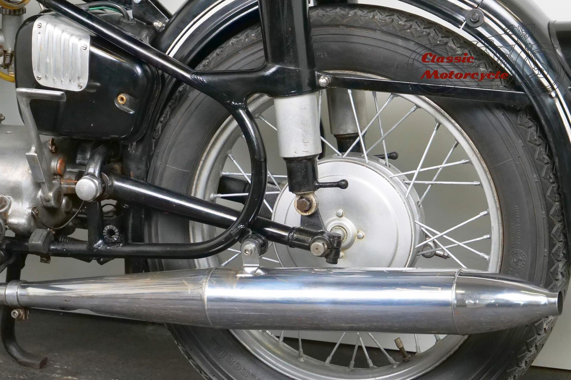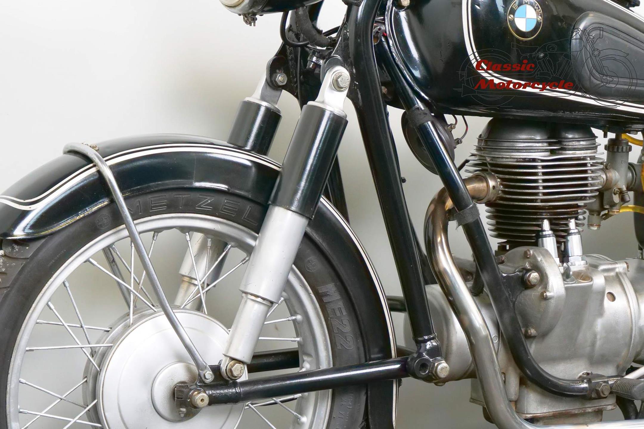 Built to the same exemplary standards as the Bavarian company'’ famous flat-twins, the single-cylinder BMW first appeared in pre-war days. Indeed, BMW’s first new post-war model was a single-cylinder design - the 250cc R24 - which arrived in 1948. By 1956, BMW’s quarter-liter luxury lightweight had evolved into the R26 that boasted a more powerful (15ps) engine, Earles-type leading-link front fork and a larger fuel tank among numerous improvements. Considerably more expensive than home-grown 250s, the R26 was appealing to mature, discerning riders for whom quality of construction counted more than mere outright performance.