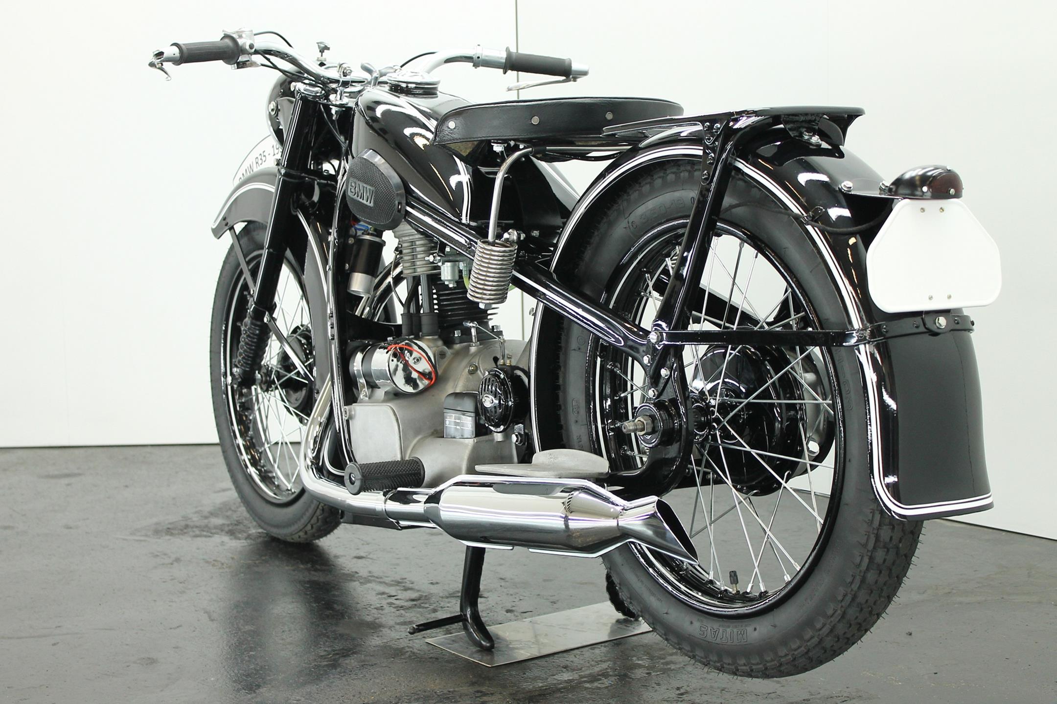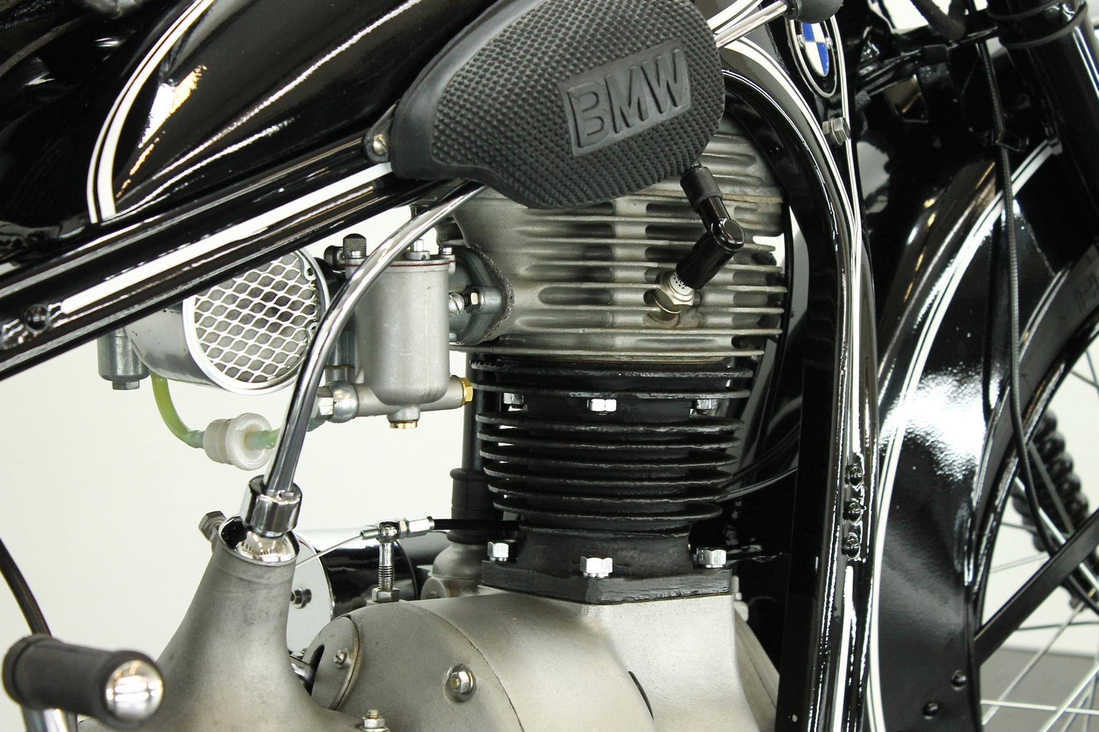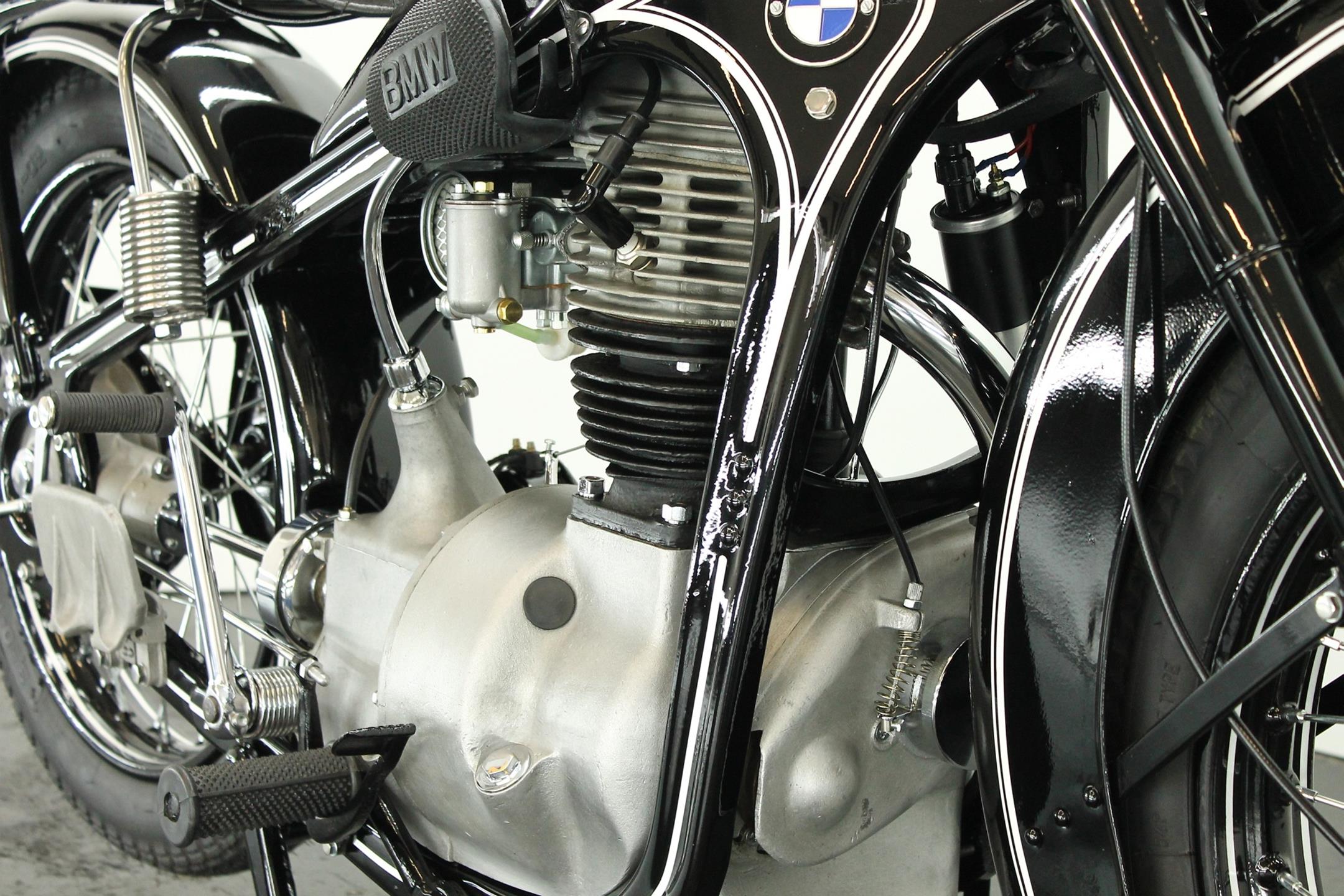 After World War II, BMW no longer made R35 motorcycles. "Eisenacher Motorenwerk" (EMW) was an East German manufacturer of automobiles and motorcycles based in Eisenach, then East Germany. It made R35s essentially identical to the pre-war BMW R35. One of the pre-World-War-II BMW factories was located in Eisenach, which after the war was taken over by the Soviets as it was located in the Soviet occupation zone. The factory continued producing cars and motorcycles using the BMW logo, but after a lawsuit in 1952 it had to change the name to EMW instead. The EMW logo was also similar, but instead of the blue BMW used, EMW used red. After the R3 with its 300cc engine had enjoyed very little commercial success, BMW introduced a new single-cylinder model in 1937, the R35. Its engine was derived from the 400cc R4, but by reducing the bore the displacement was decreased to 350cc. The R35 also developed 14 horsepower and like the R4 had a top speed of 100km/h. The suspension had in the meantime been modernized. The frame was still made from massive-looking pressed steel sections but the antiquated leaf spring at the front was now replaced by a modern telescopic fork. In contrast to the exclusive "Boxer" models, however, there was no hydraulic damping. By the close of production, the R35 was the most successful model in BMW's motorcycle history and when you see the bikes today, it's easy to understand where the appeal lies.