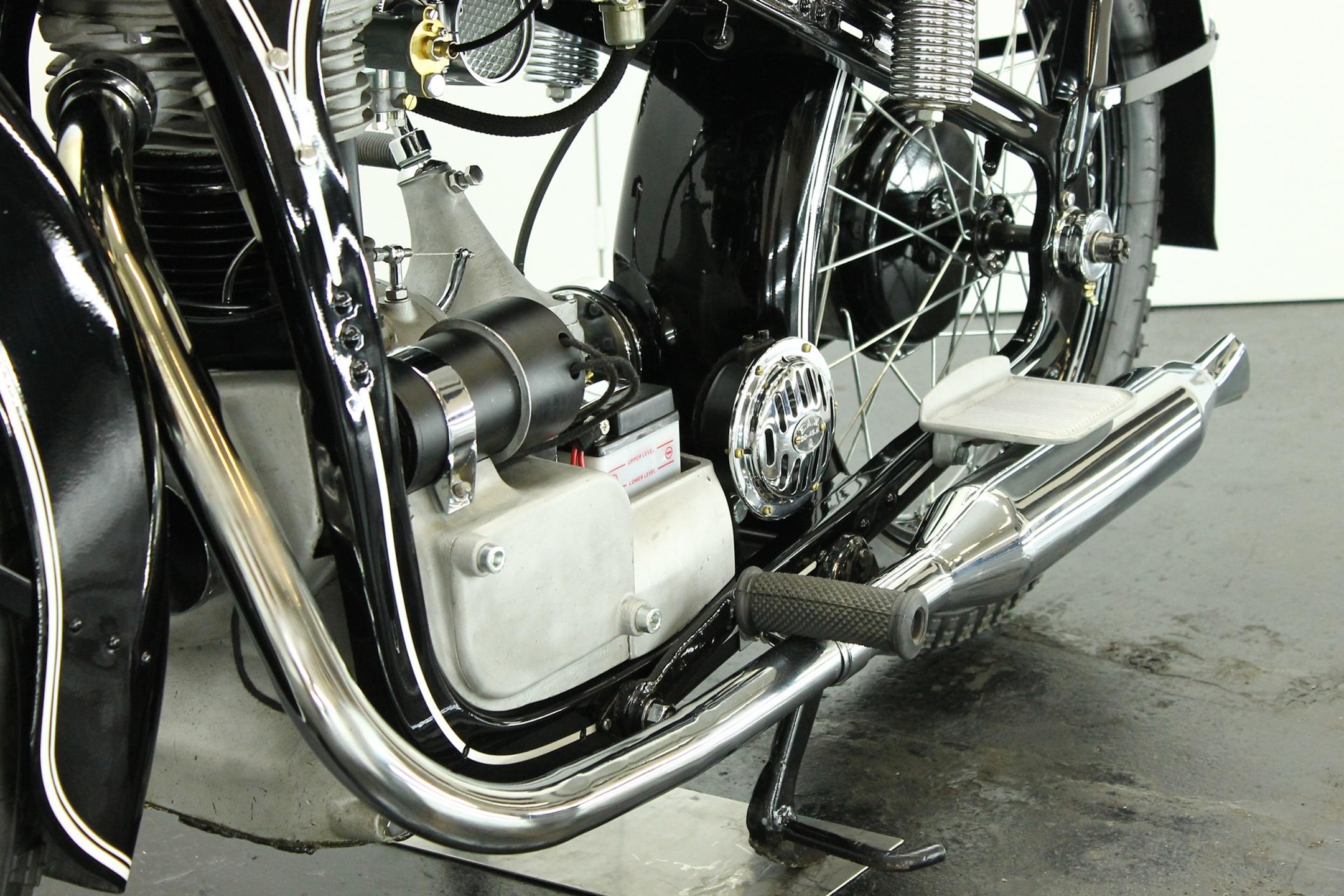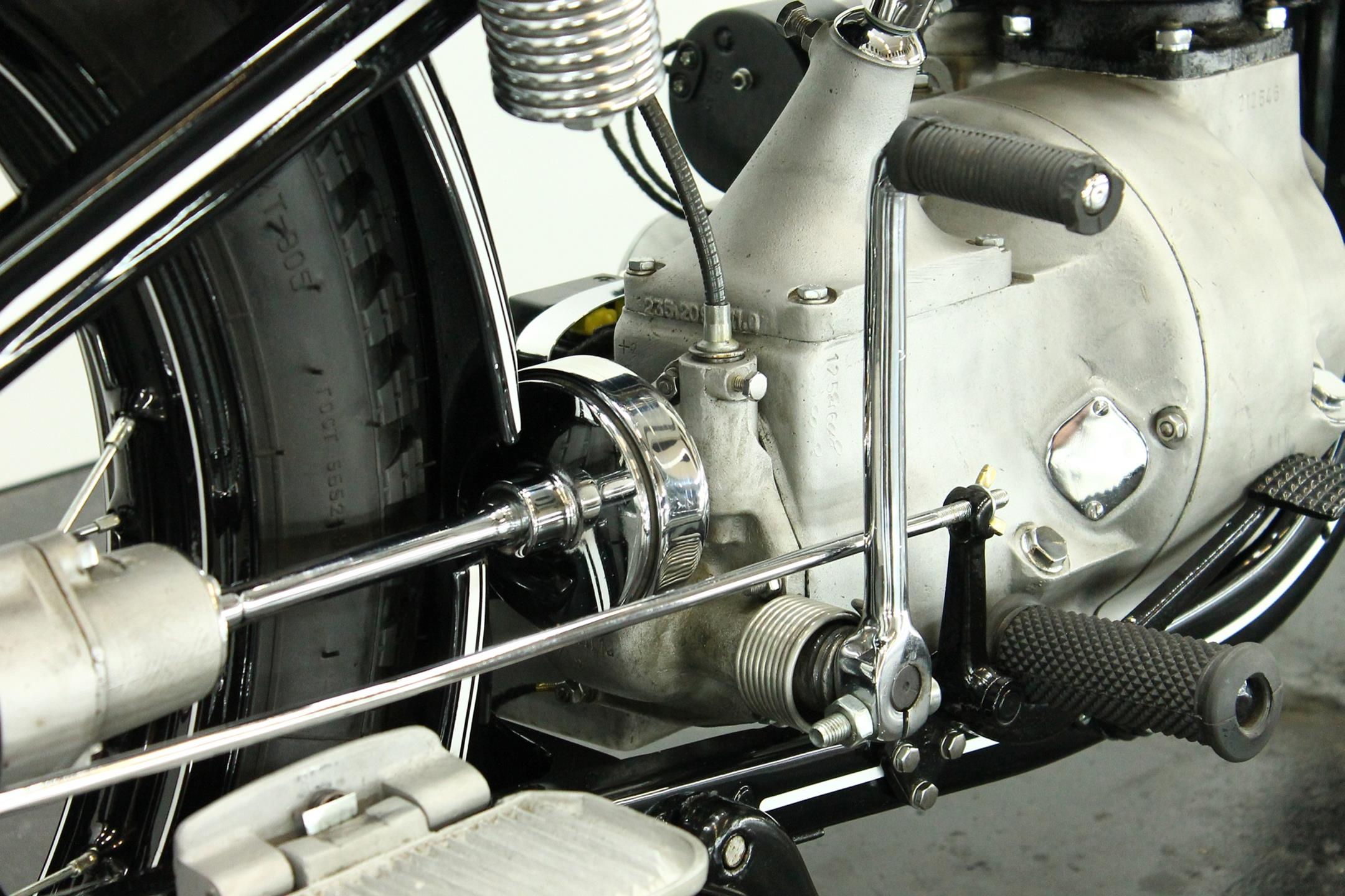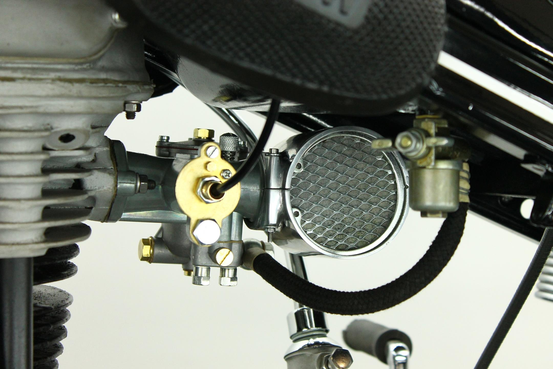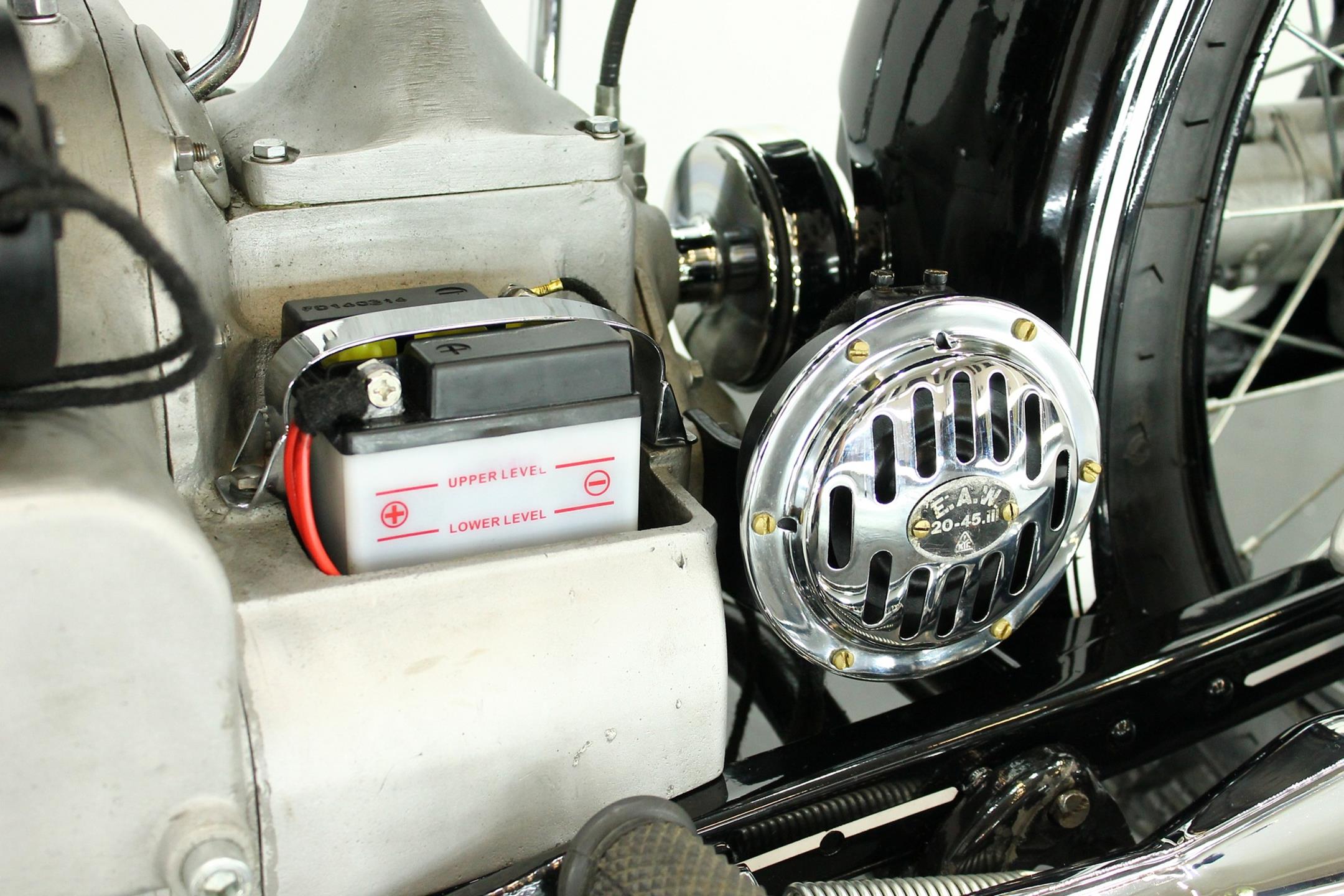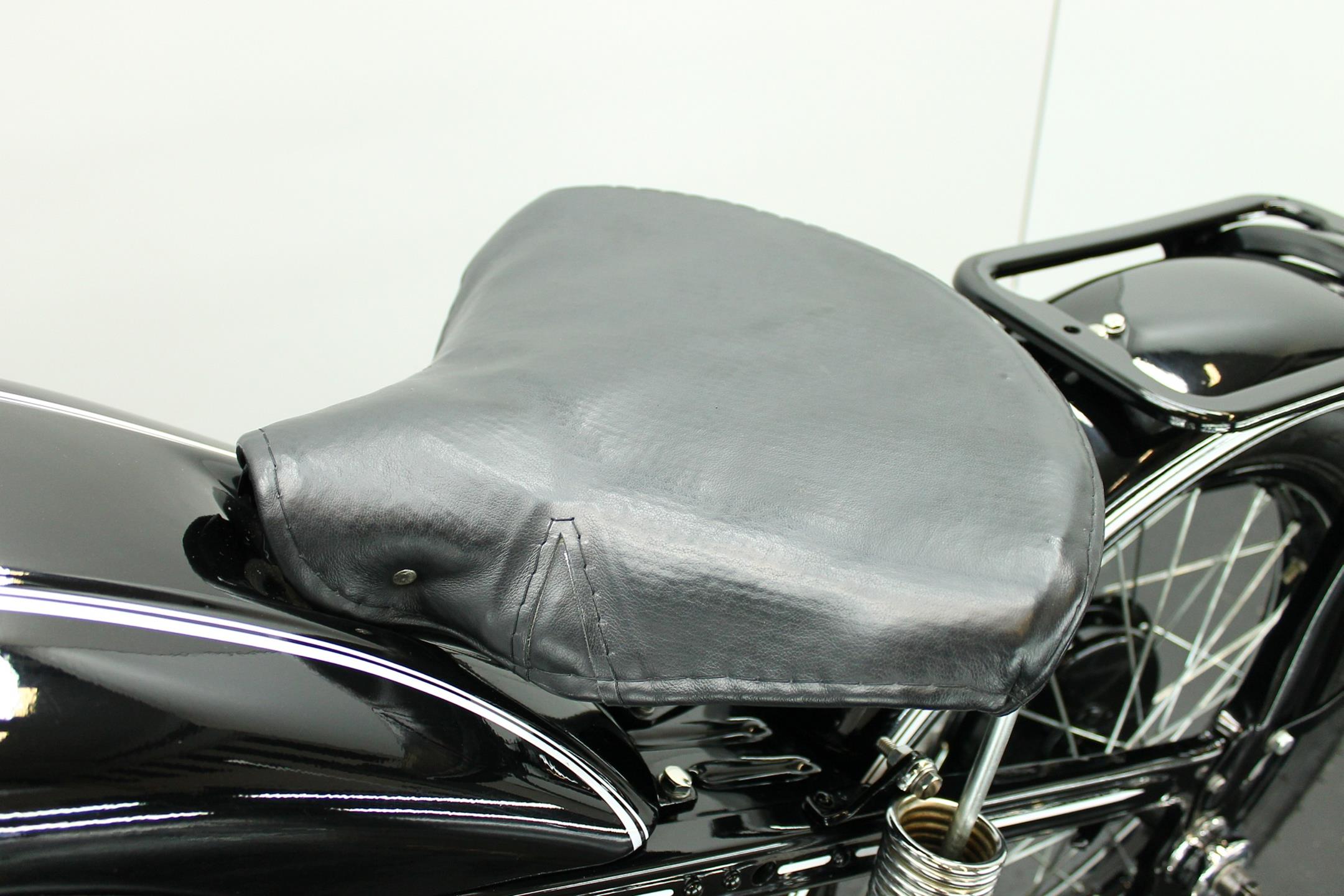 The BMW is a nice older restoration. This well running motorcycle is equipped with a complete Bosch electrics and a Veigel speedo.