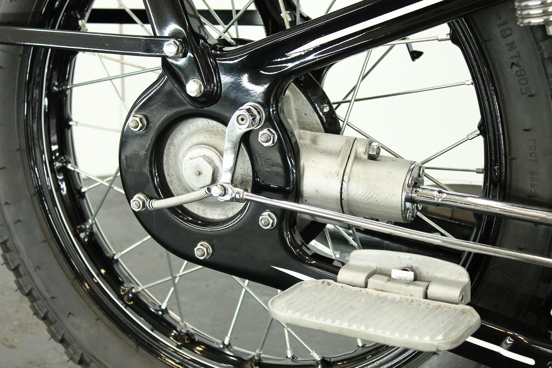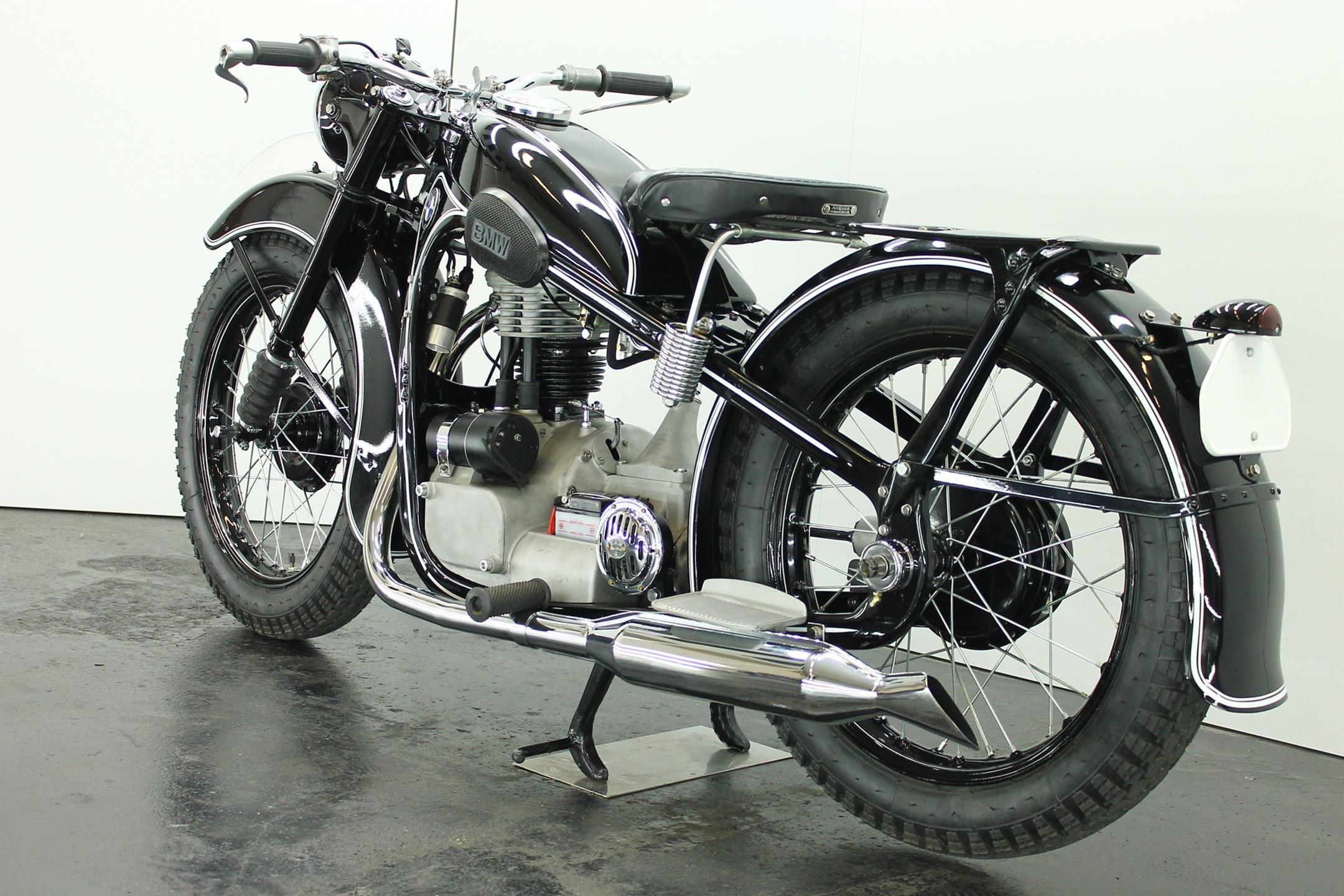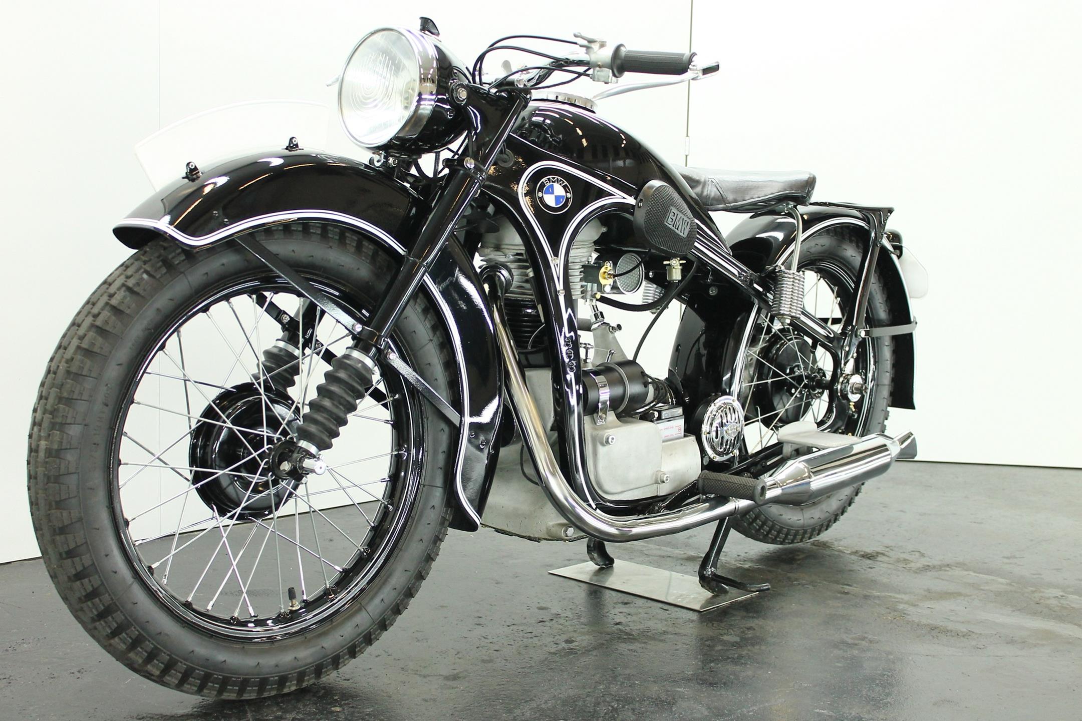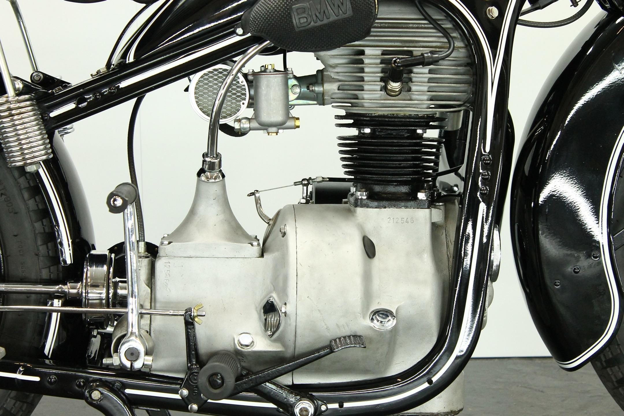 After World War II, BMW no longer made R35 motorcycles. "Eisenacher Motorenwerk" (EMW) was an East German manufacturer of automobiles and motorcycles based in Eisenach, then East Germany. It made R35s essentially identical to the pre-war BMW R35. One of the pre-World-War-II BMW factories was located in Eisenach, which after the war was taken over by the Soviets as it was located in the Soviet occupation zone. The factory continued producing cars and motorcycles using the BMW logo, but after a lawsuit in 1952 it had to change the name to EMW instead. The EMW logo was also similar, but instead of the blue BMW used, EMW used red. After the R3 with its 300cc engine had enjoyed very little commercial success, BMW introduced a new single-cylinder model in 1937, the R35. Its engine was derived from the 400cc R4, but by reducing the bore the displacement was decreased to 350cc. The R35 also developed 14 horsepower and like the R4 had a top speed of 100km/h. The suspension had in the meantime been modernized. The frame was still made from massive-looking pressed steel sections but the antiquated leaf spring at the front was now replaced by a modern telescopic fork. In contrast to the exclusive "Boxer" models, however, there was no hydraulic damping. By the close of production, the R35 was the most successful model in BMW's motorcycle history and when you see the bikes today, it's easy to understand where the appeal lies.