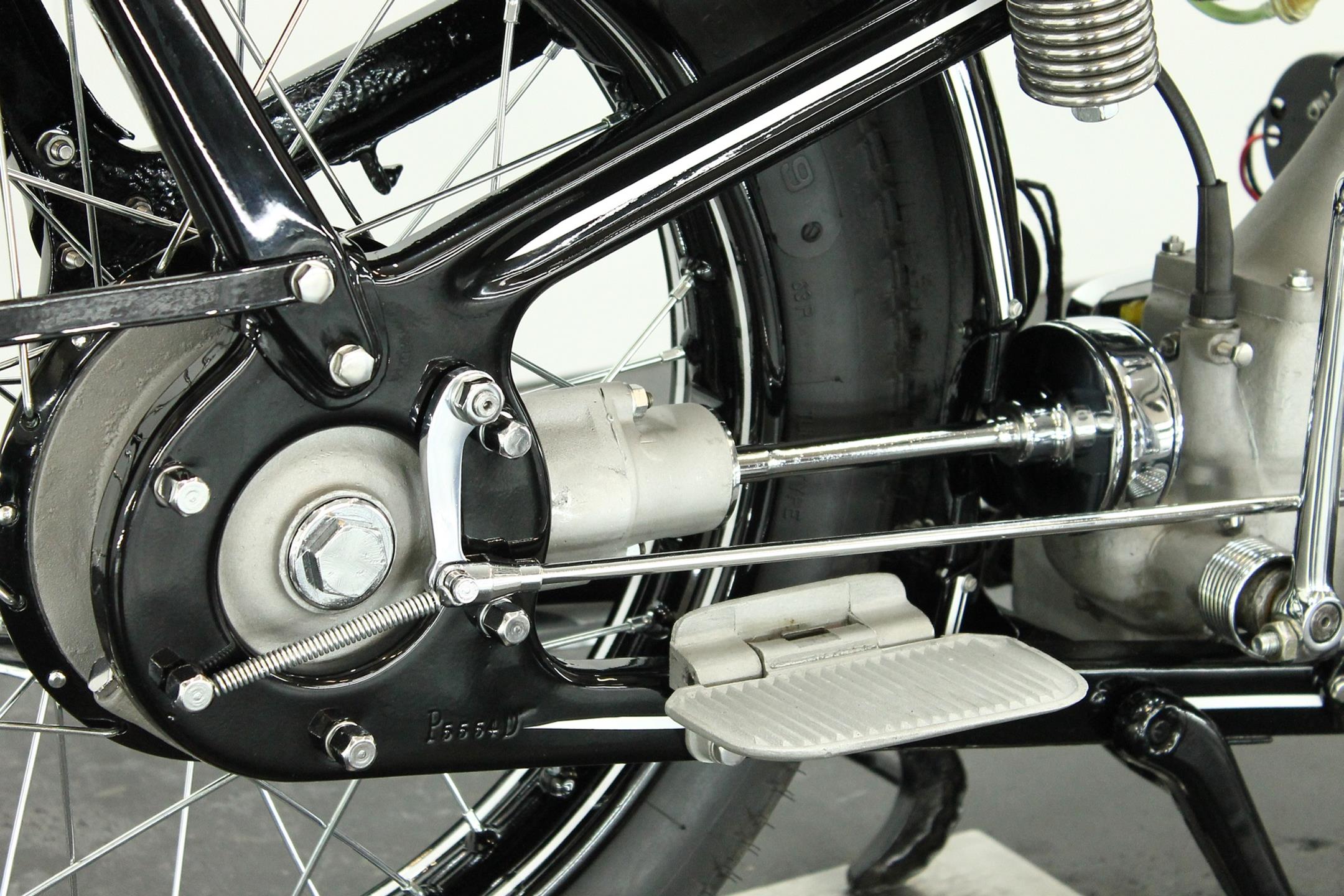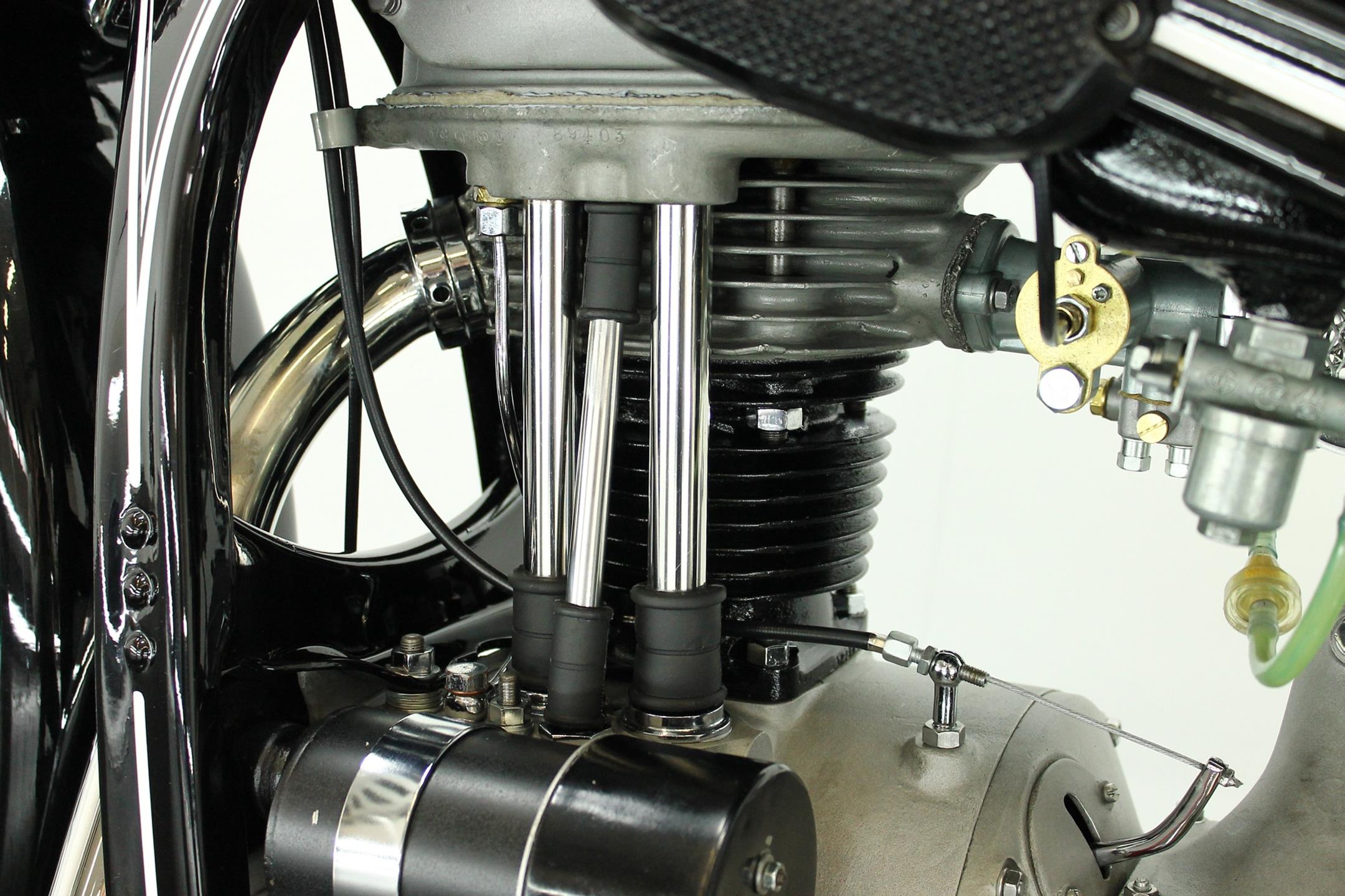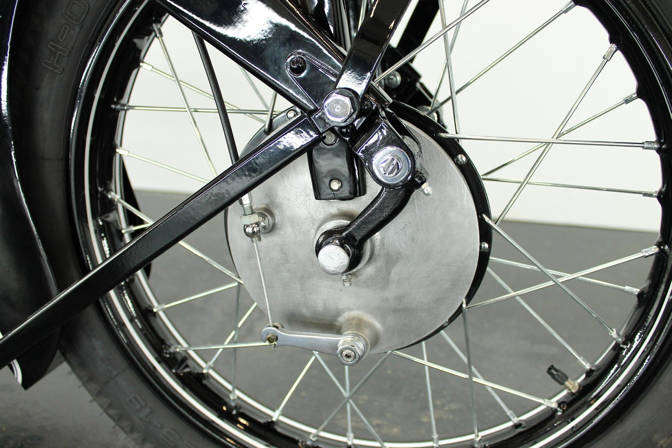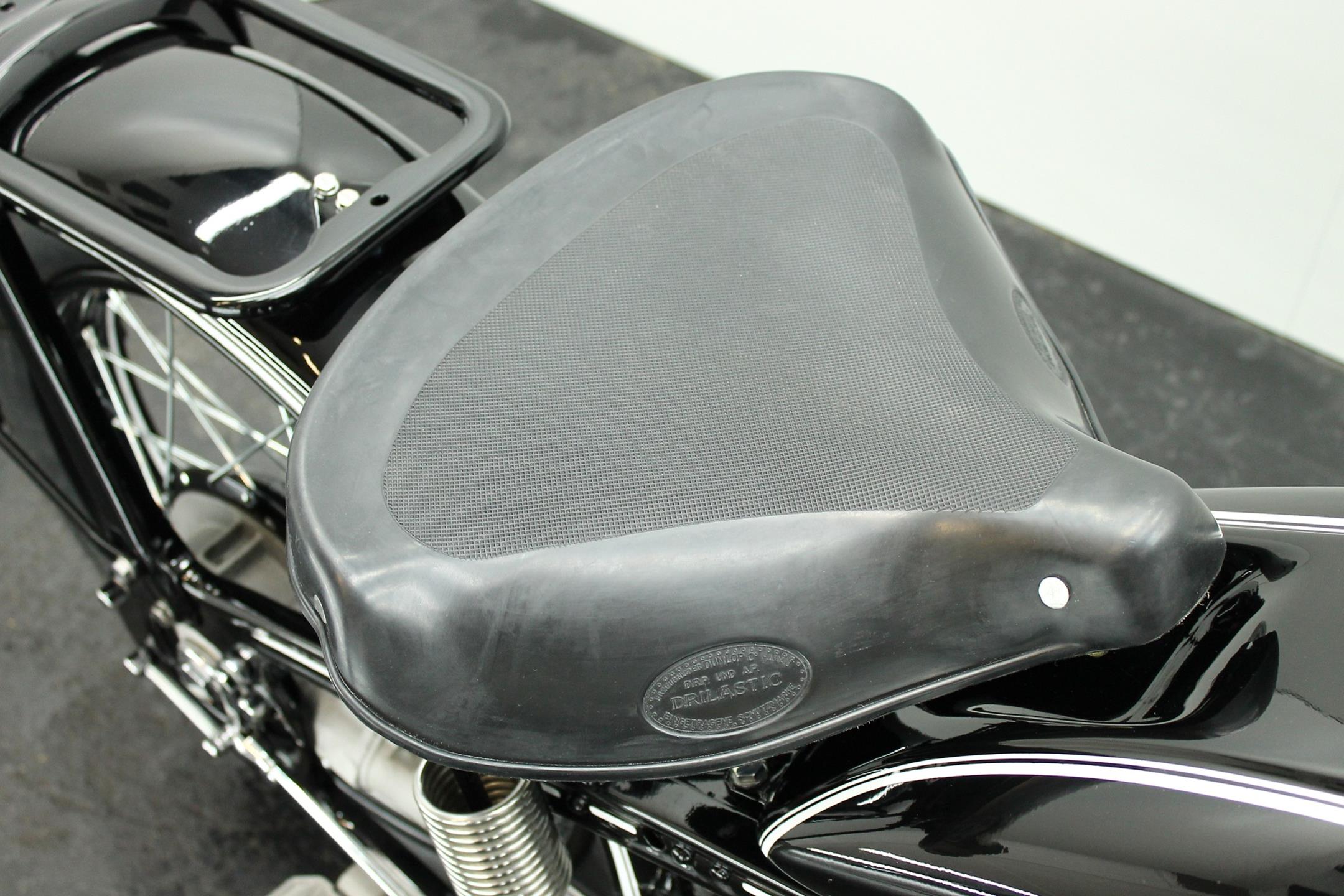 Introduced in 1932 and intended to bridge the gap between the 'budget' BMW R2 198cc single and the expensive twins, the R4 looked much like the former, whose channel-section steel frame and running gear it used almost unaltered. The 398cc overhead-valve engine featured enclosed valve gear and produced 12bhp, gaining an extra two horsepower in 1933 when the BMW R4 was updated to Series 2 specification with revised styling and a four-speed gearbox. A new cylinder head, tidier engine casings and changes to the toolbox and generator locations were introduced as the rugged R4 - a favourite with police forces and the German Army - progressed through to Series 5 before production ceased in 1936. BMW produced 15,295 R4 motorcycles using innovative mass production techniques, setting new standards of design and quality. Pressed steel frame and components were quick and easy to stamp out and assemble, reducing manufacturing costs.