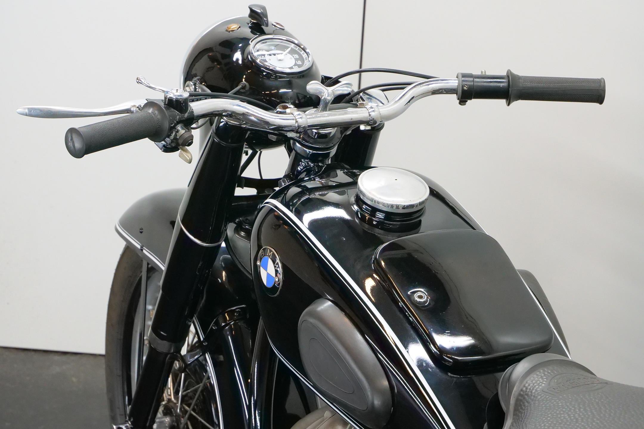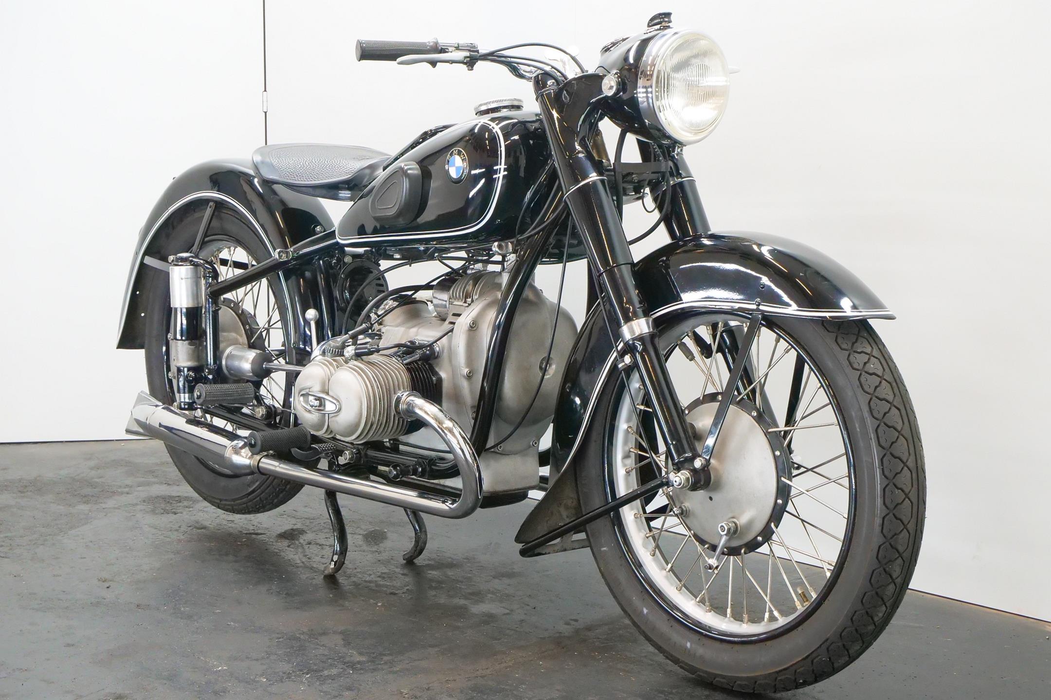 BMW introduced its first post-war twin-cylinder model in 1949. This was the R51/2 based, as its designation suggests, on the pre-war R51. Introduced in 1938, the latter was an updated version of the R5 of 1936, which had represented a new departure for BMW by virtue of its method of valve actuation, adopting two chain-driven camshafts that permitted shorter pushrods and higher revs. The R51 deployed the R5-type engine in new cycle parts that featured a telescopic front fork and plunger rear suspension, while improvements incorporated into the post-war R51/2 included a two-way damped front fork, a gearbox main-shaft damper and a strengthened frame.