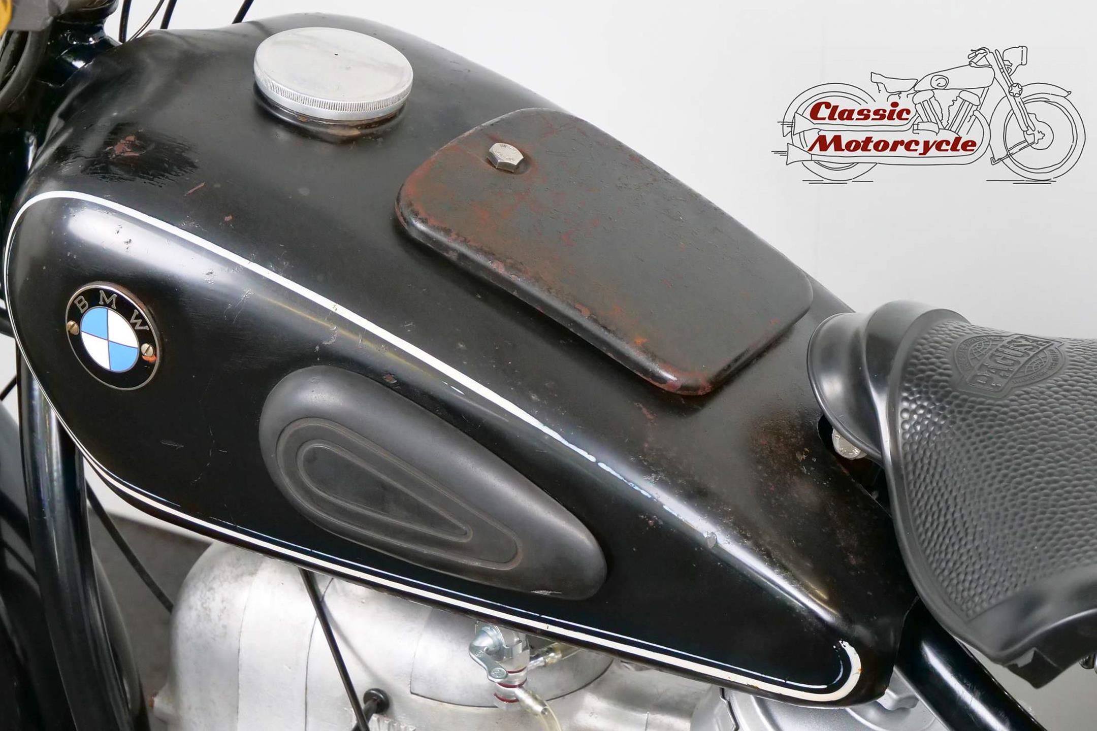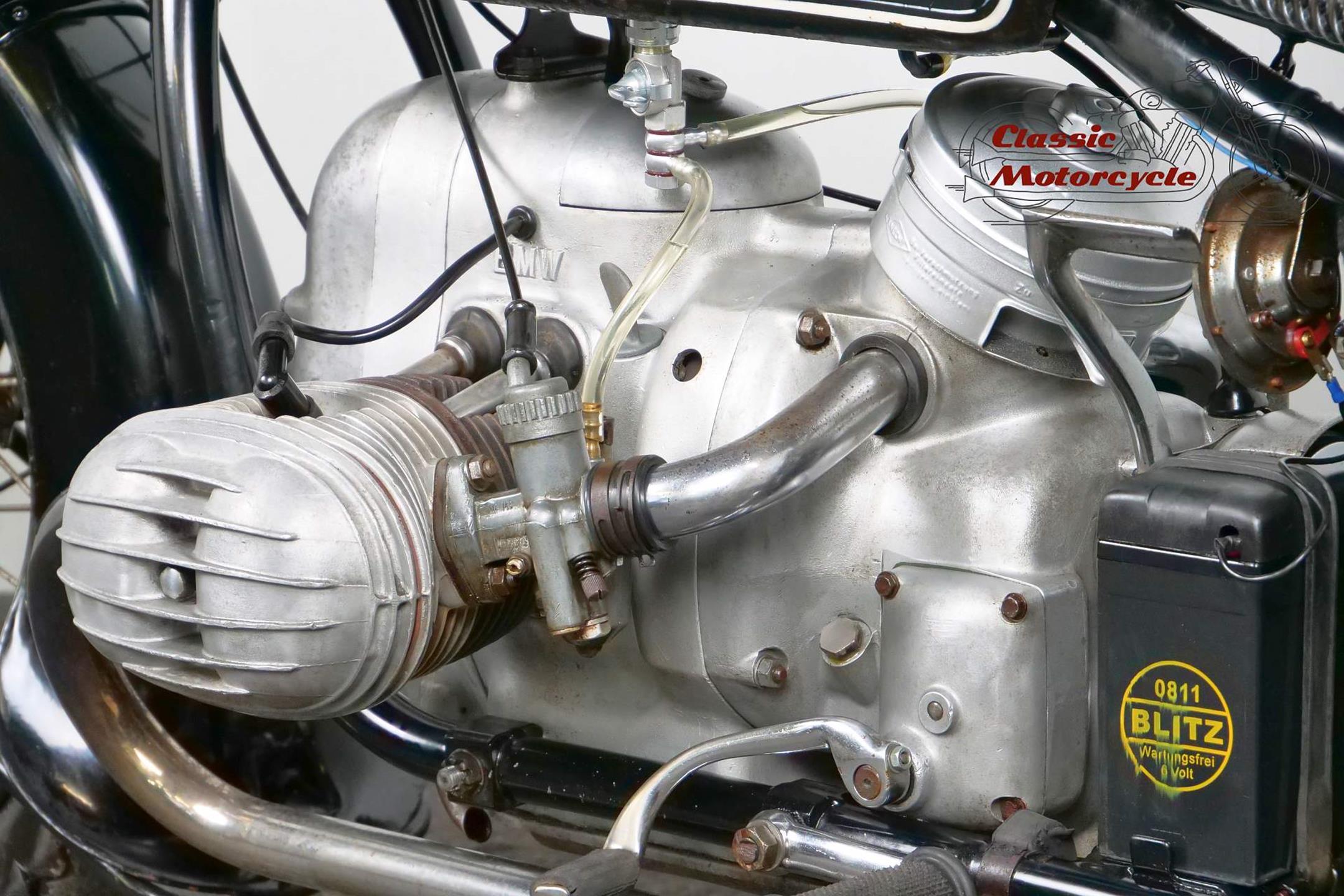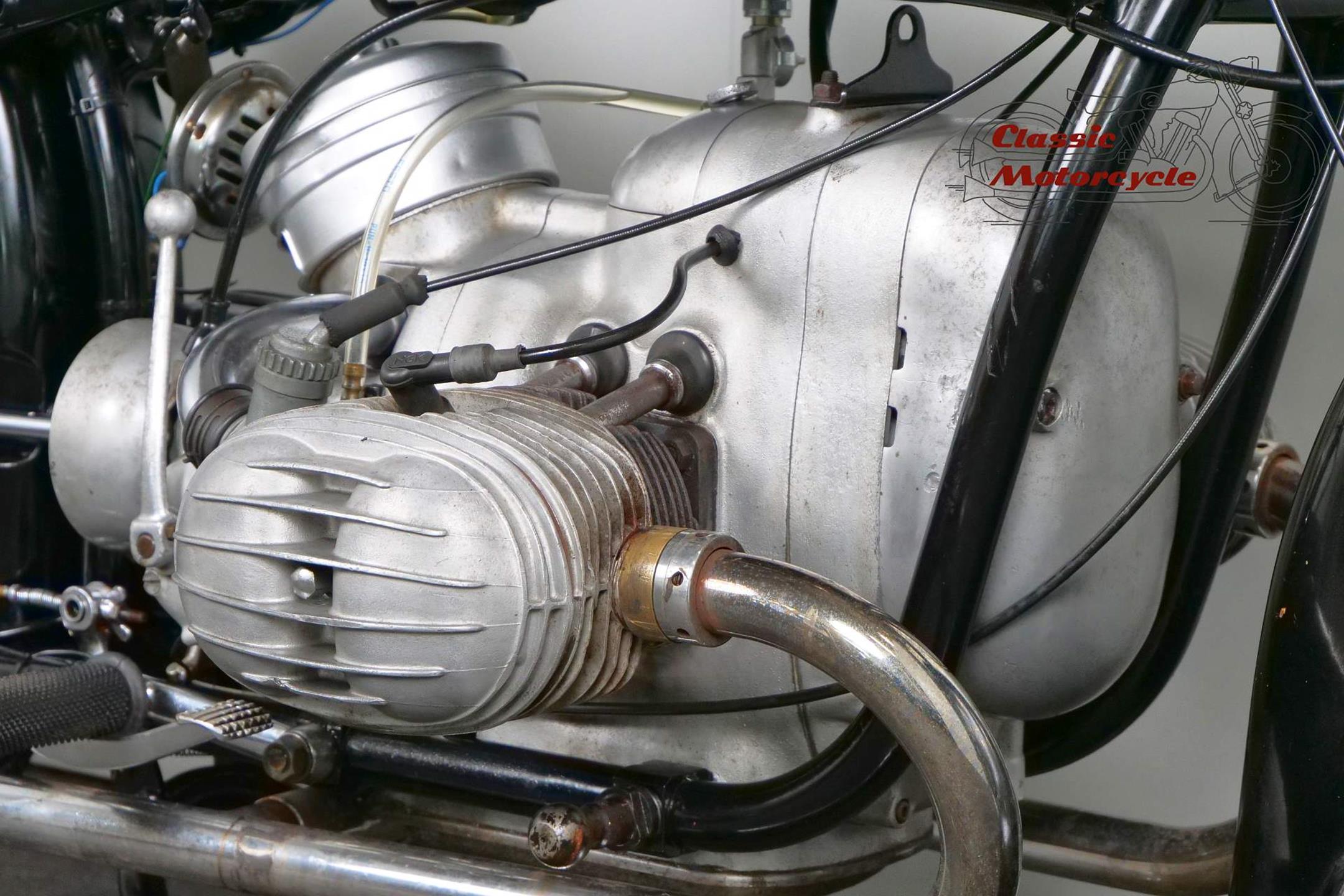 The bike is an original unit with matching engine and frame numbers. The R51 is complete ready to ride and has been partially restored. The tank, headlight bracket and rims still have original paint. The rest of the parts were painted some time ago and already have beginnings of patina again. The bike still has the original dealer plate from Boeser-Motorradhaus, Beckum, Germany on the front fender. A complete old registration document from 1961 from Holland as well as a new registration document from Holland will be handed over with the motorcycle.