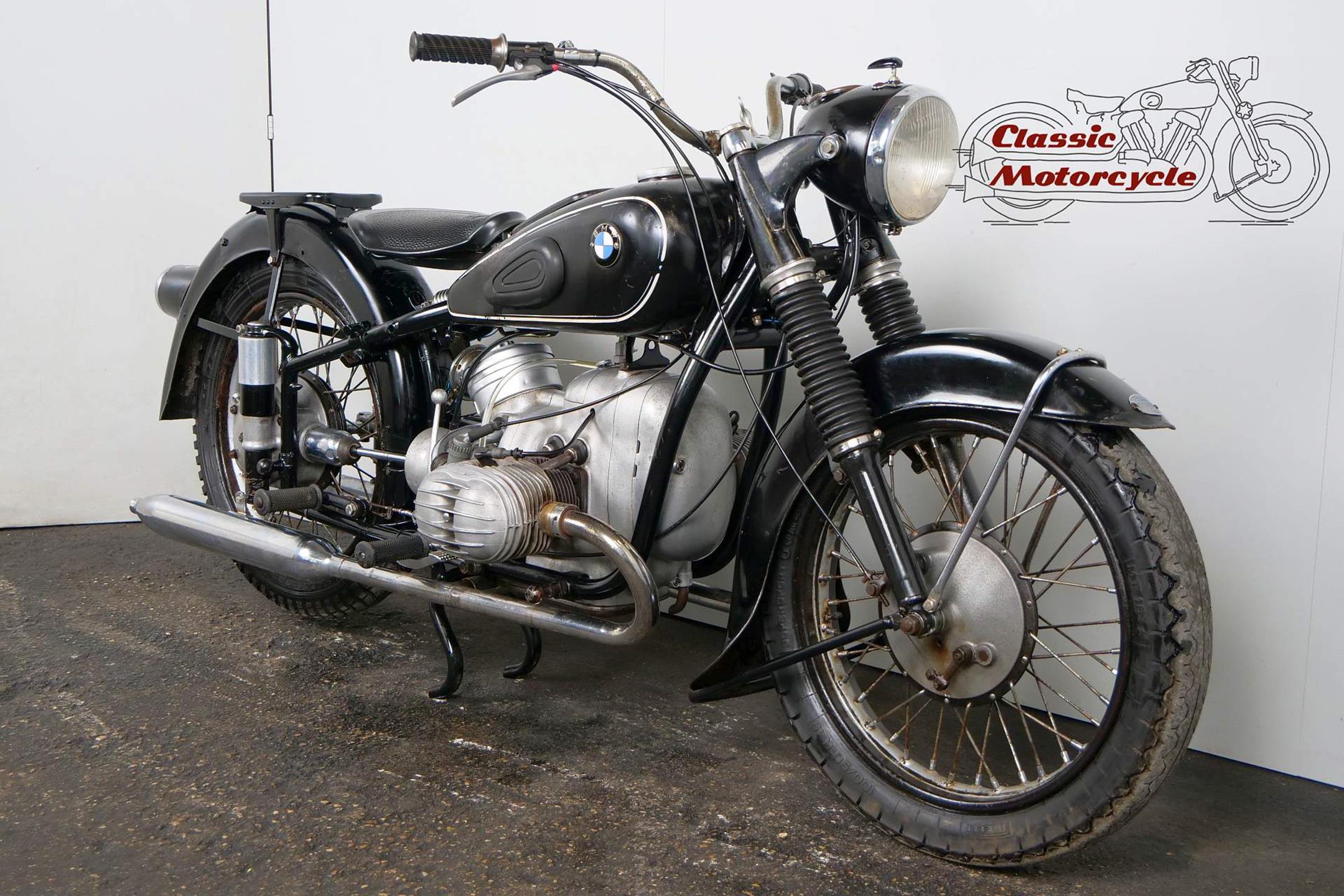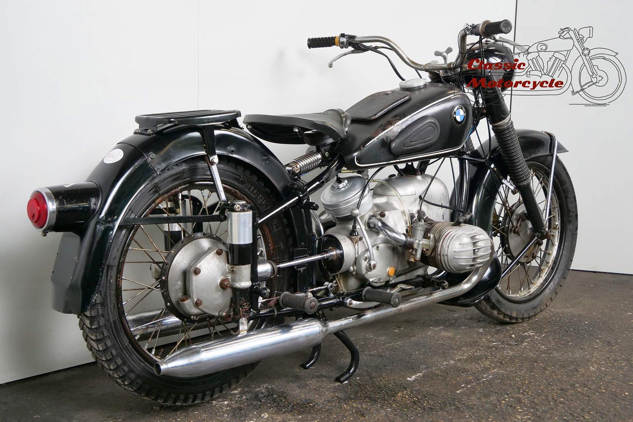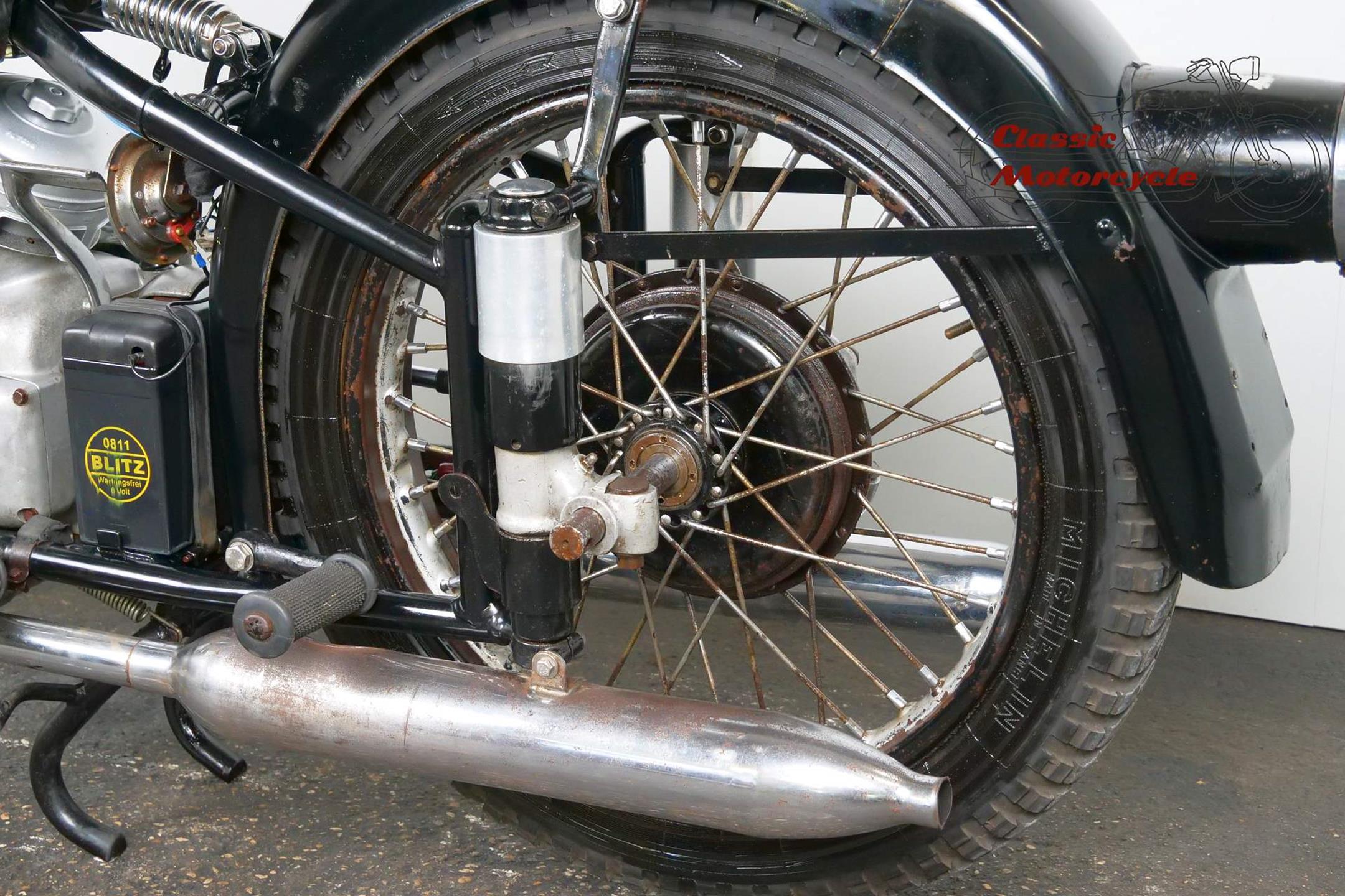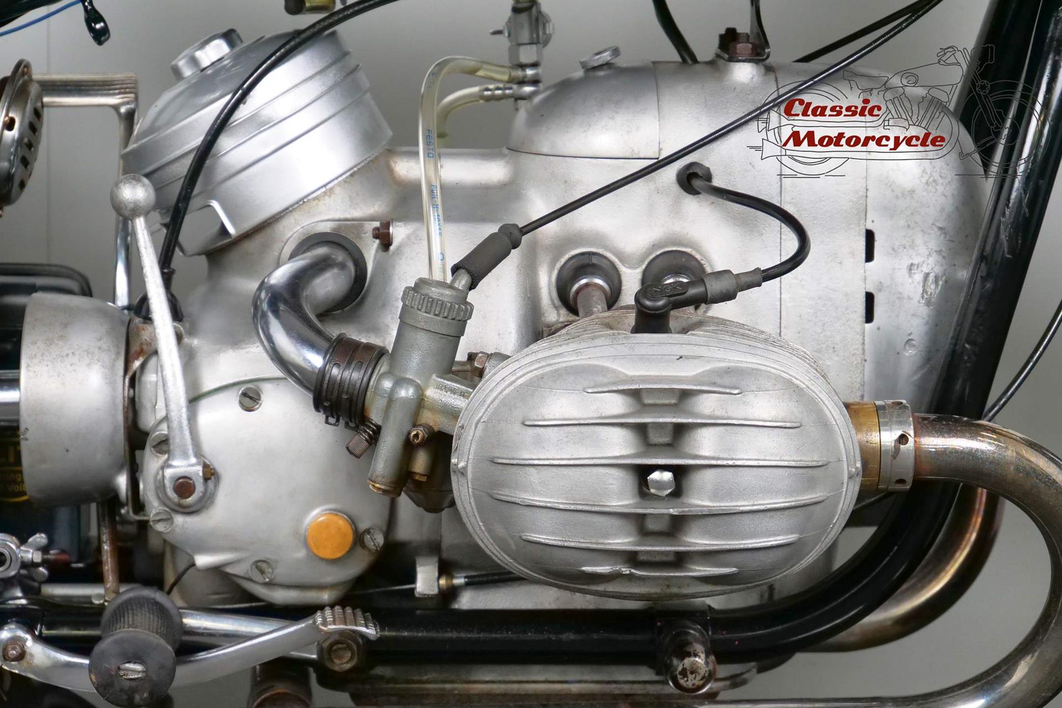 The bike is an original unit with matching engine and frame numbers. The R51 is complete ready to ride and has been partially restored. The tank, headlight bracket and rims still have original paint. The rest of the parts were painted some time ago and already have beginnings of patina again. The bike still has the original dealer plate from Boeser-Motorradhaus, Beckum, Germany on the front fender. A complete old registration document from 1961 from Holland as well as a new registration document from Holland will be handed over with the motorcycle.