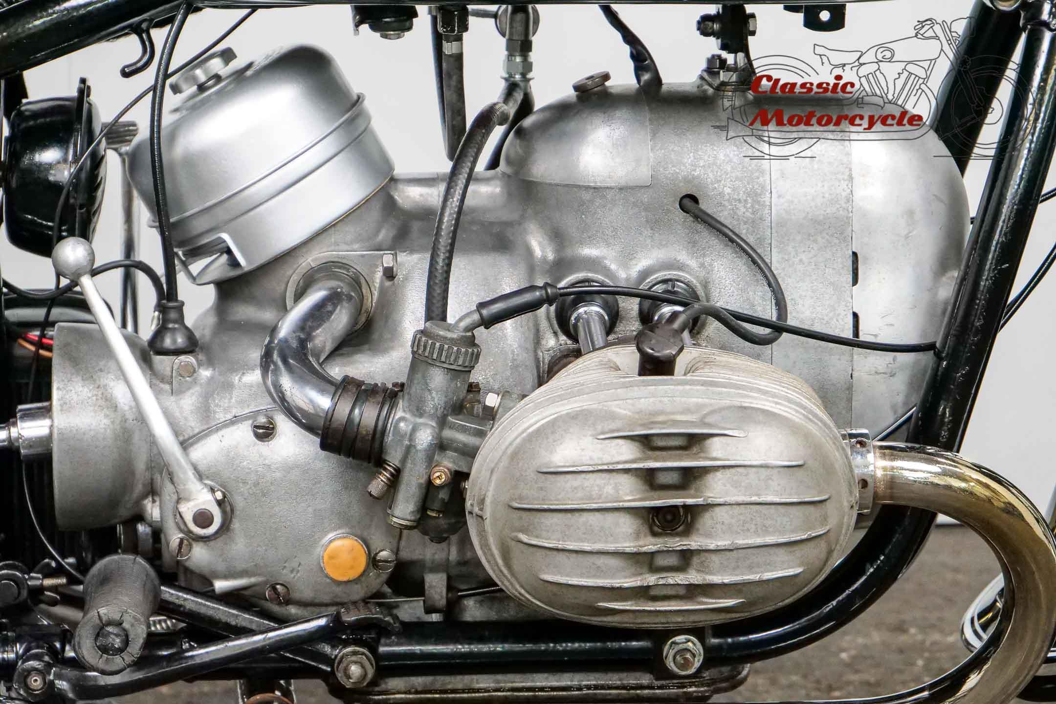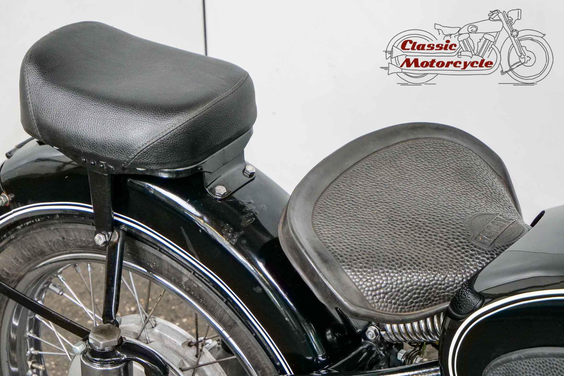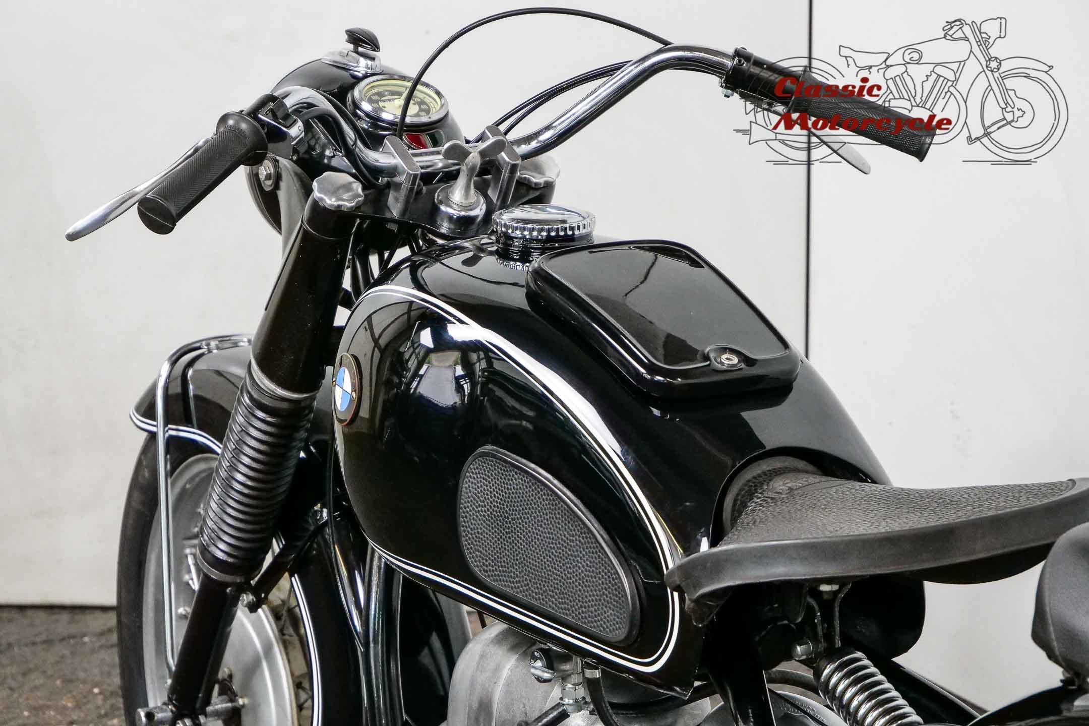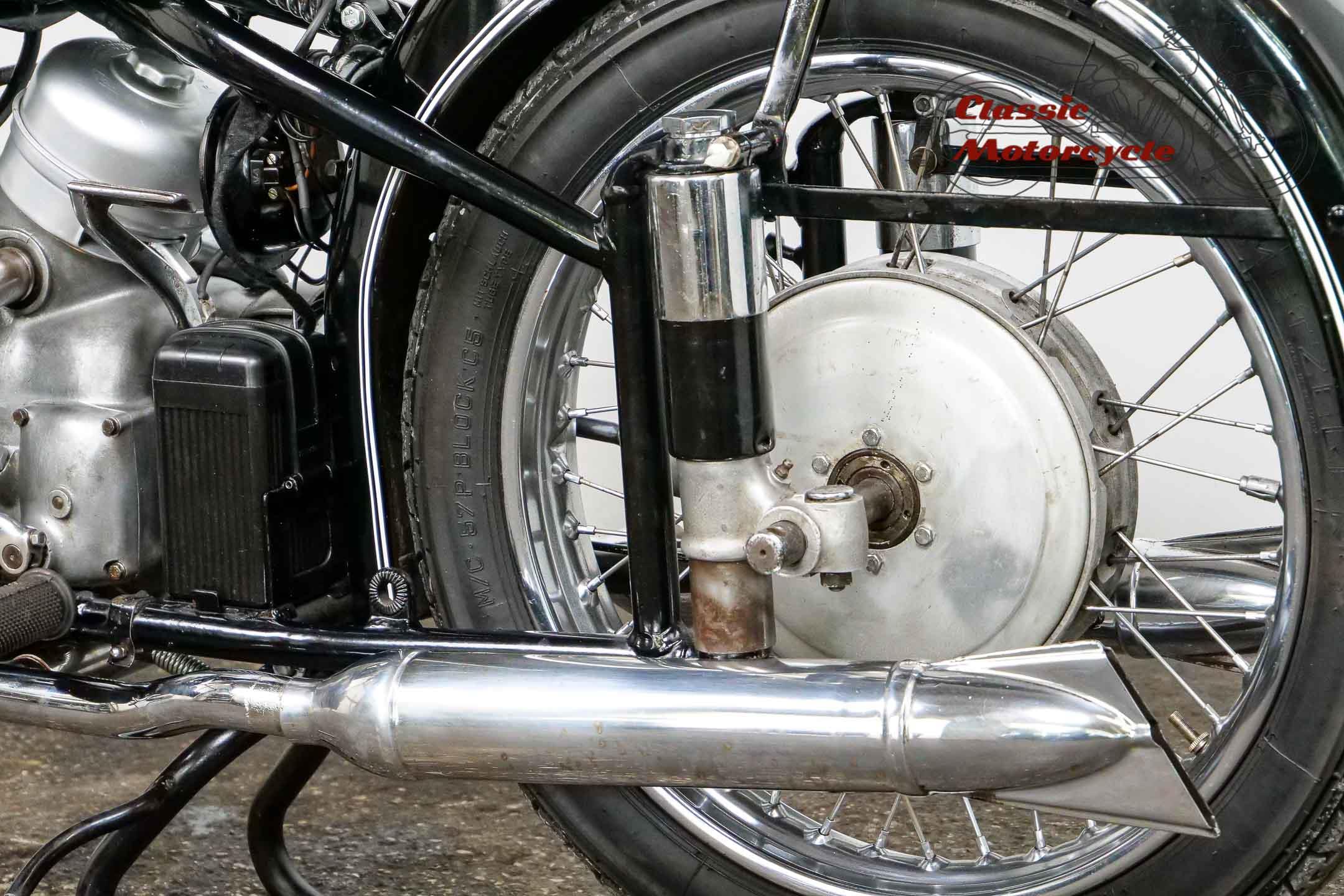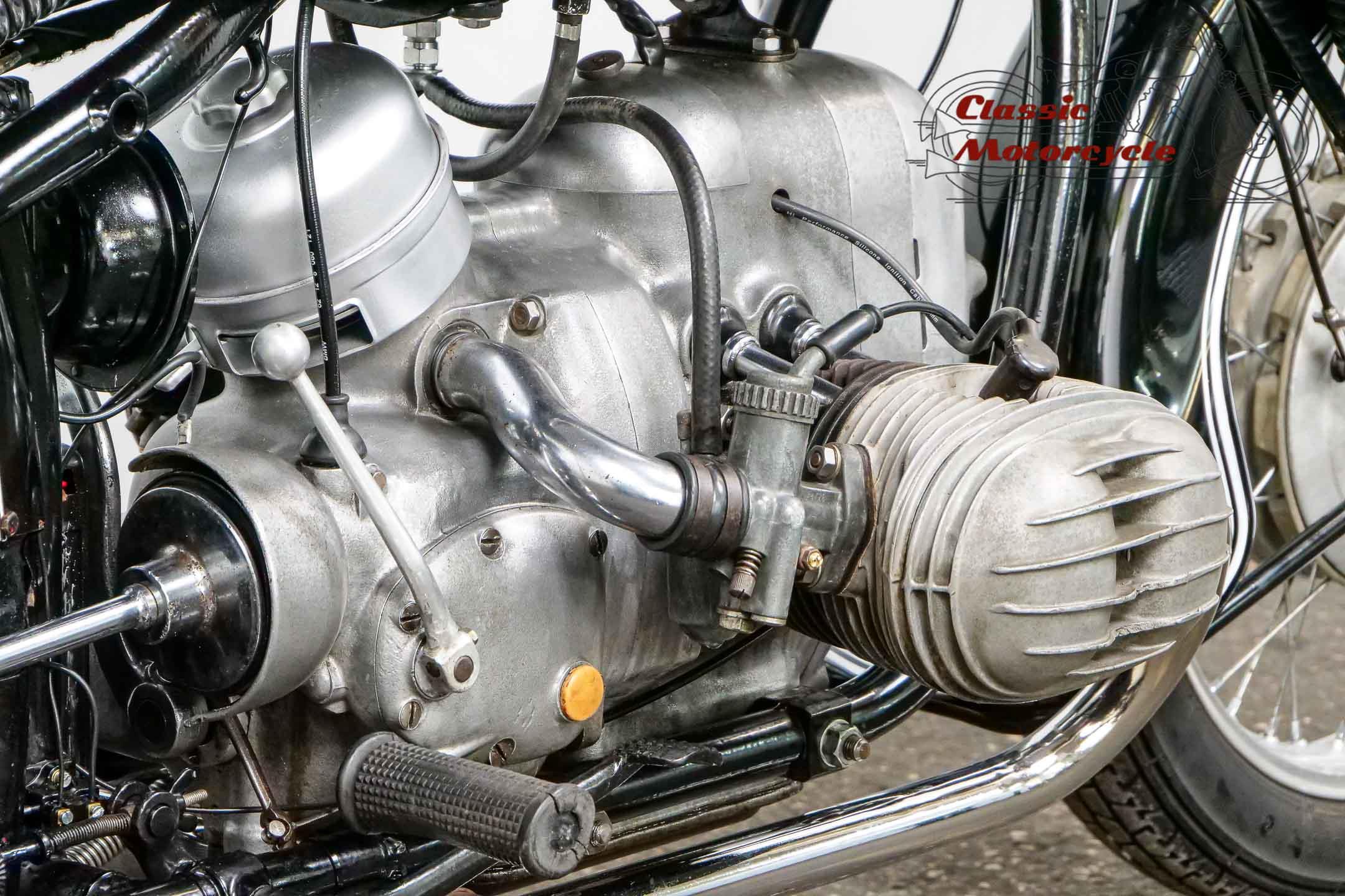 We offer here a BMW R51 from the year 1953. This machine was produced on 11.9.1953 and delivered on 6.11.2023 to the BMW dealer Karl Neuenhagen in Mülheim-Eppinghofer, Germany. Some time ago she was repainted and partially overhauled. A nice detail is the larger Schorsch Maier tank. She is ready to drive and has papers.