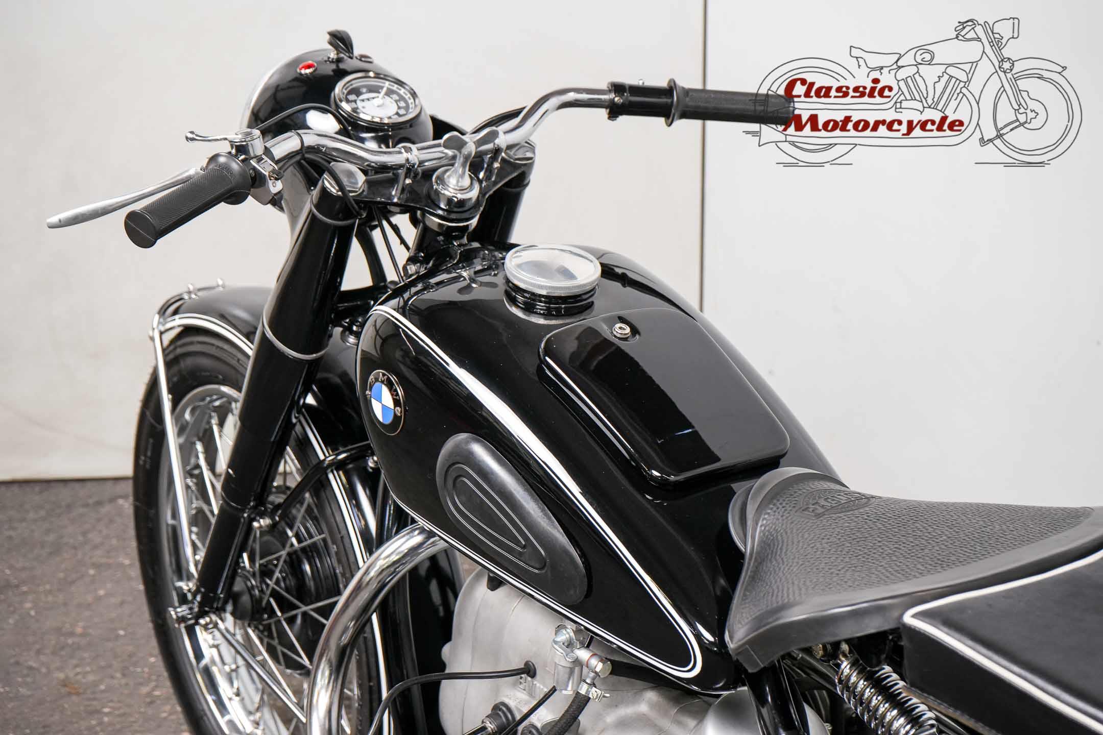We are offering this BMW R68 in perfect collector's condition. The machine has recently been fully restored. A special highlight is the high piped Six Days off-road sports exhaust system. The original type plate matches the frame number and engine number. This R68 is a very early version and was number 86 when it rolled off the production line. An absolute top piece in any collection. The machine is ready to ride and has papers from Germany.