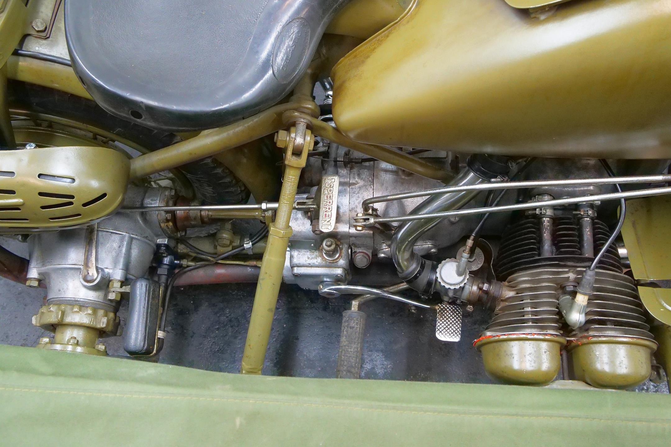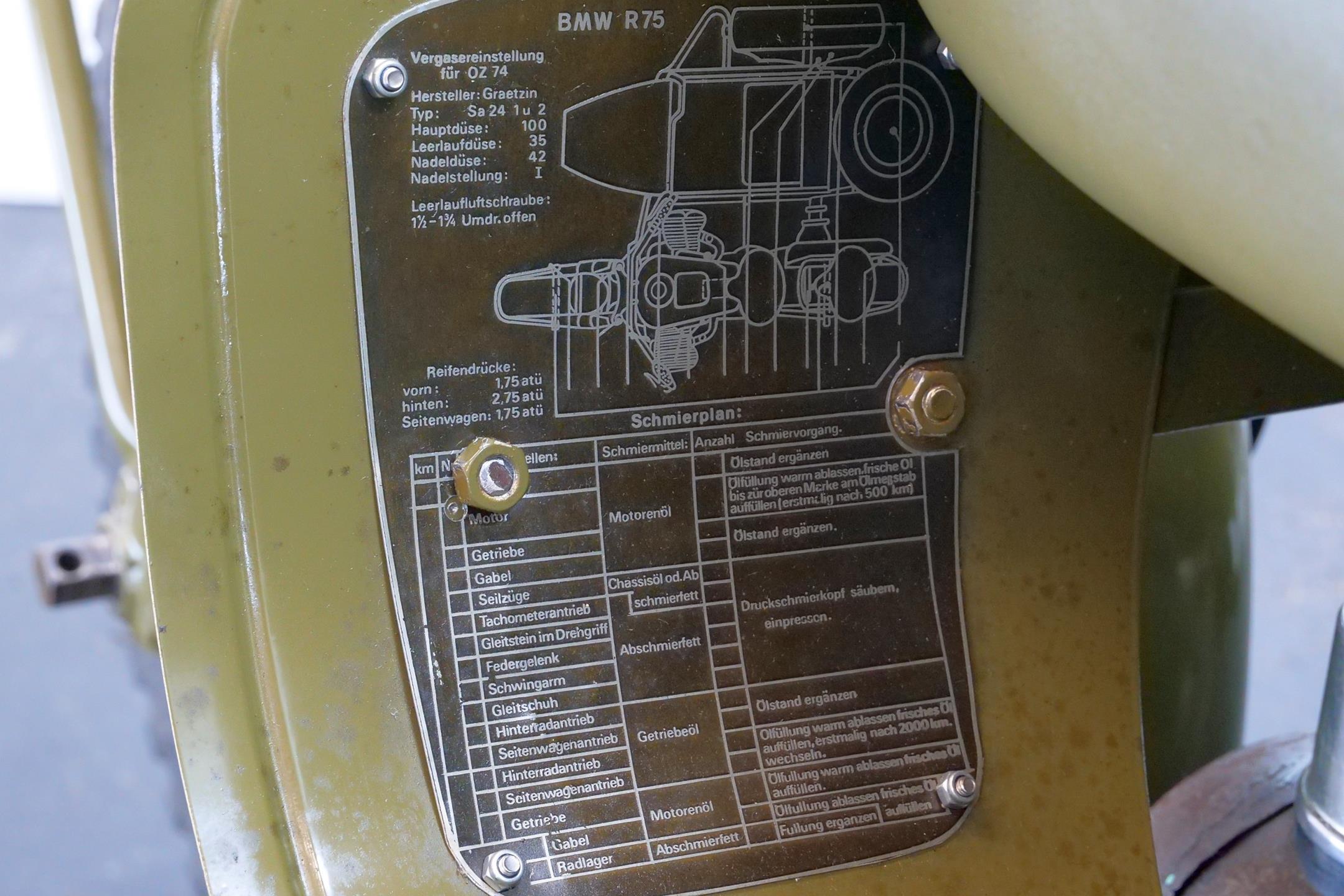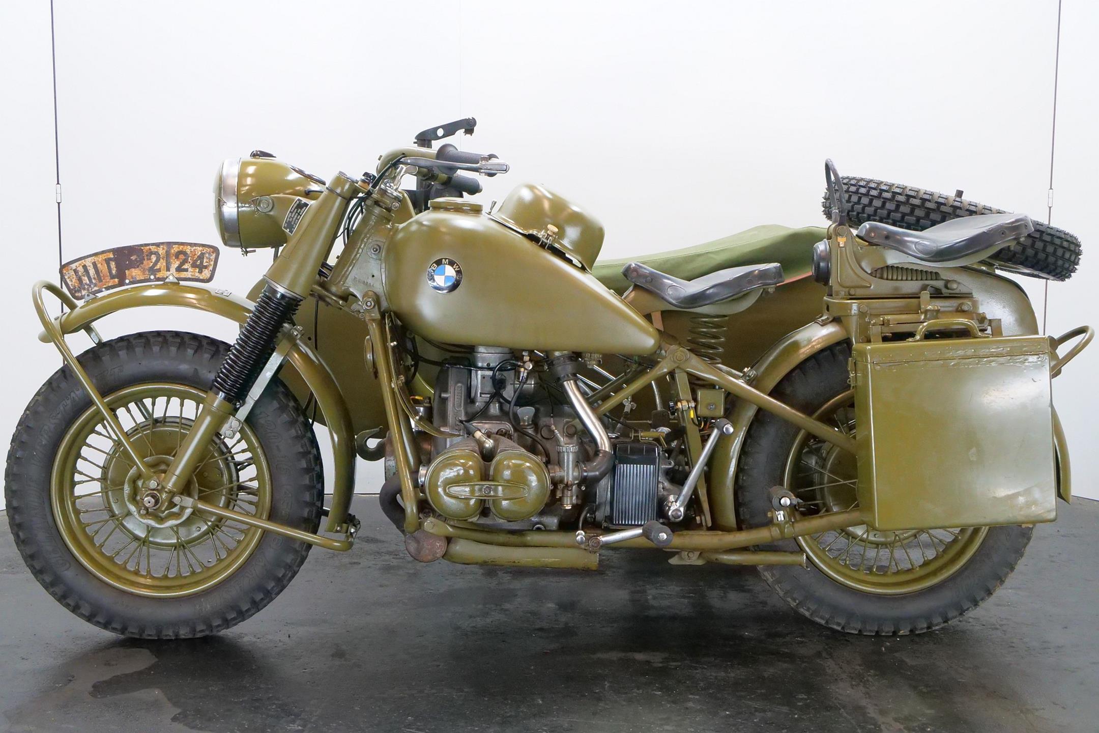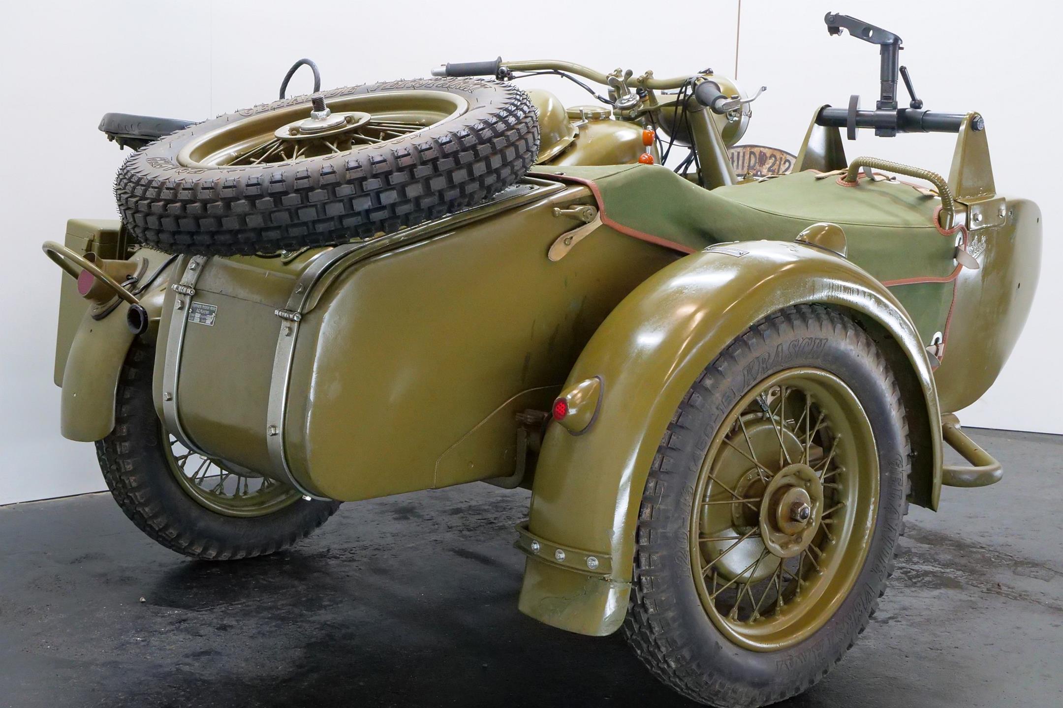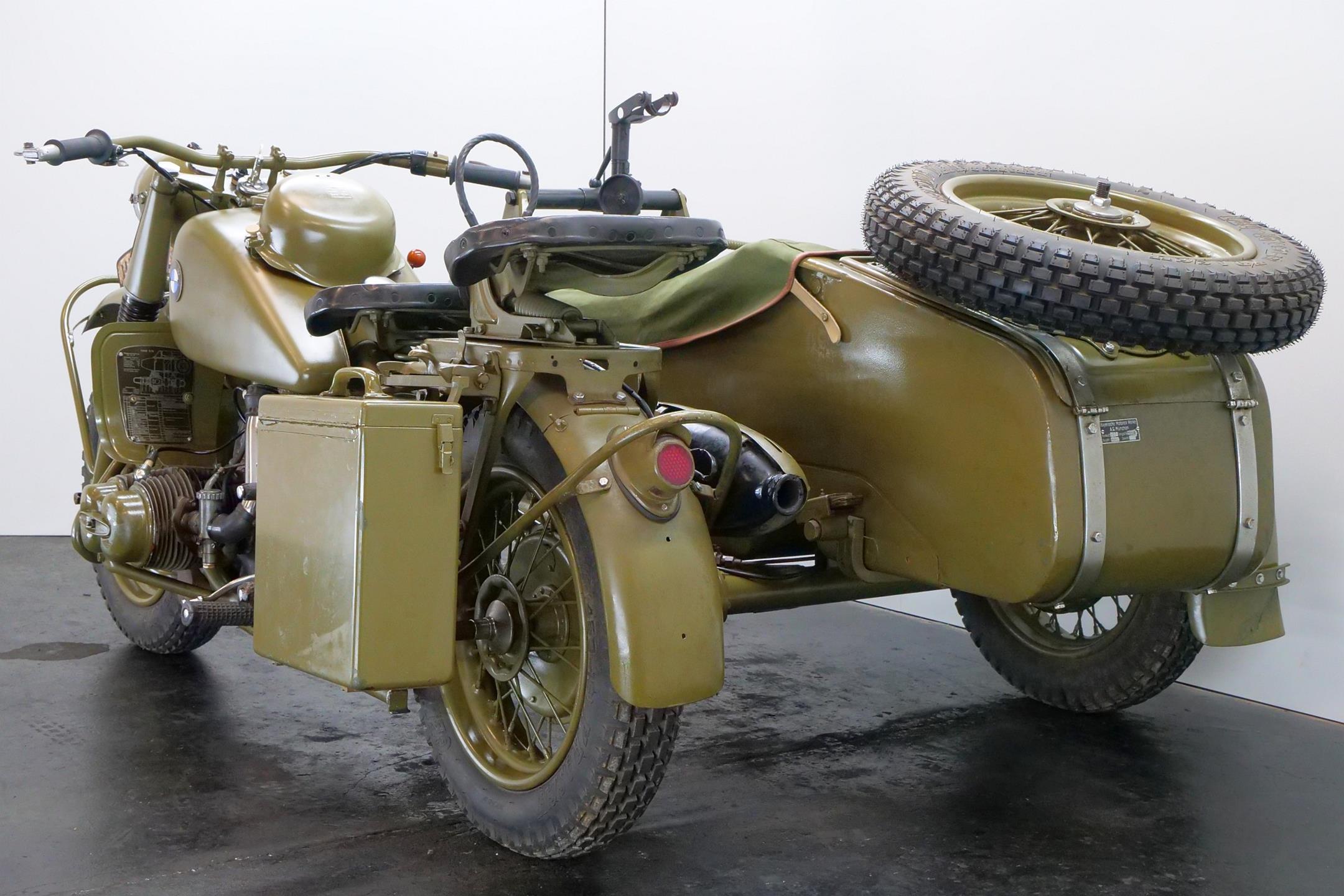 Preproduction models of the R75 were powered by a 750 cc side valve engine, which was based on the R71 engine. However it was quickly found necessary to design an all-new OHV 750 cc engine for the R75 unit. This OHV engine later proved to be the basis for subsequent post-war twin BMW engines like the R51/3, R67 and R68.The third side-car wheel was driven with an axle connected to the rear wheel of the motorcycle. These were fitted with a locking differential and selectable road and off-road gear ratios through which all four and reverse gears worked. This made the R75 highly manoeuvrable and capable of negotiating most surfaces. A few other motorcycle manufactures, like FN and Norton, provided an optional drive to sidecars. The BMW R75 and its rival the Zündapp KS 750 were both widely used by the Wehrmacht in Russia and North Africa, though after a period of evaluation it became clear that the Zündapp was the superior machine. In August 1942 Zündapp and BMW, on the urging of the Army, agreed upon standardization of parts for both machines, with a view of eventually creating a Zündapp-BMW hybrid (designated the BW 43), in which a BMW 286/1 side-car would be grafted onto a Zündapp KS 750 motorcycle. They also agreed that the manufacture of the R75 would cease once production reached 20,200 units, and after that point BMW and Zündapp would only produce the Zündapp-BMW machine, manufacturing 20,000 each year. Since the target of 20,200 BMW R75's was not reached, it remained in production until the Eisenach factory was so badly damaged by Allied bombing that production ceased in 1944. A further 98 units were assembled by the Soviets in 1946 as reparations. However the standardisation programme meant that machines that were produced by BMW and Zündapp used 70% of the same components. This simplifies the supply of spare parts for these vehicles, many of which are still in the hands of historic motorcycle enthusiasts. These vehicles are still highly desirable as collector's items because of their complex and durable technology, and are correspondingly expensive. A well-restored R75 can be still used for everyday purposes, on or off-road without problems.