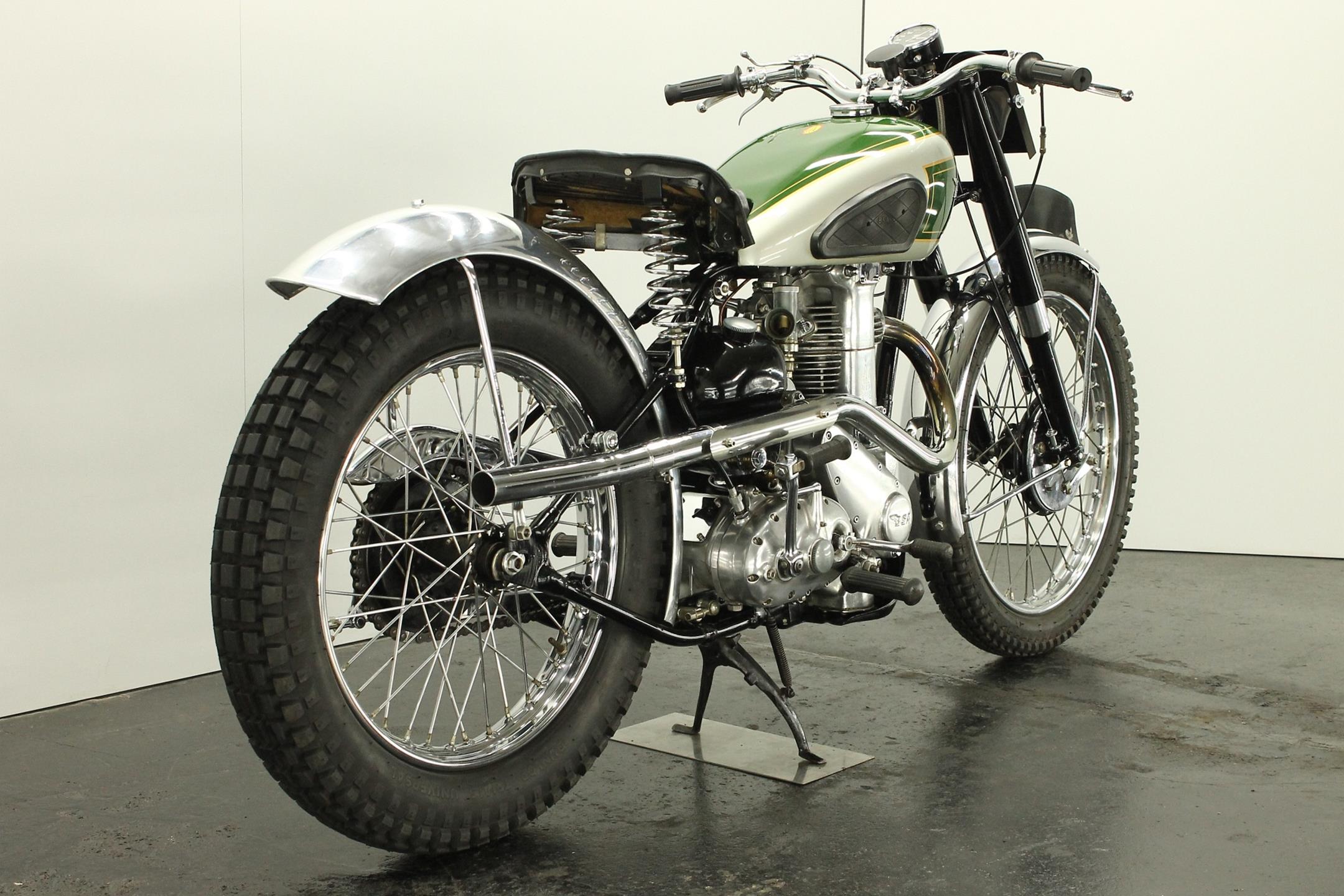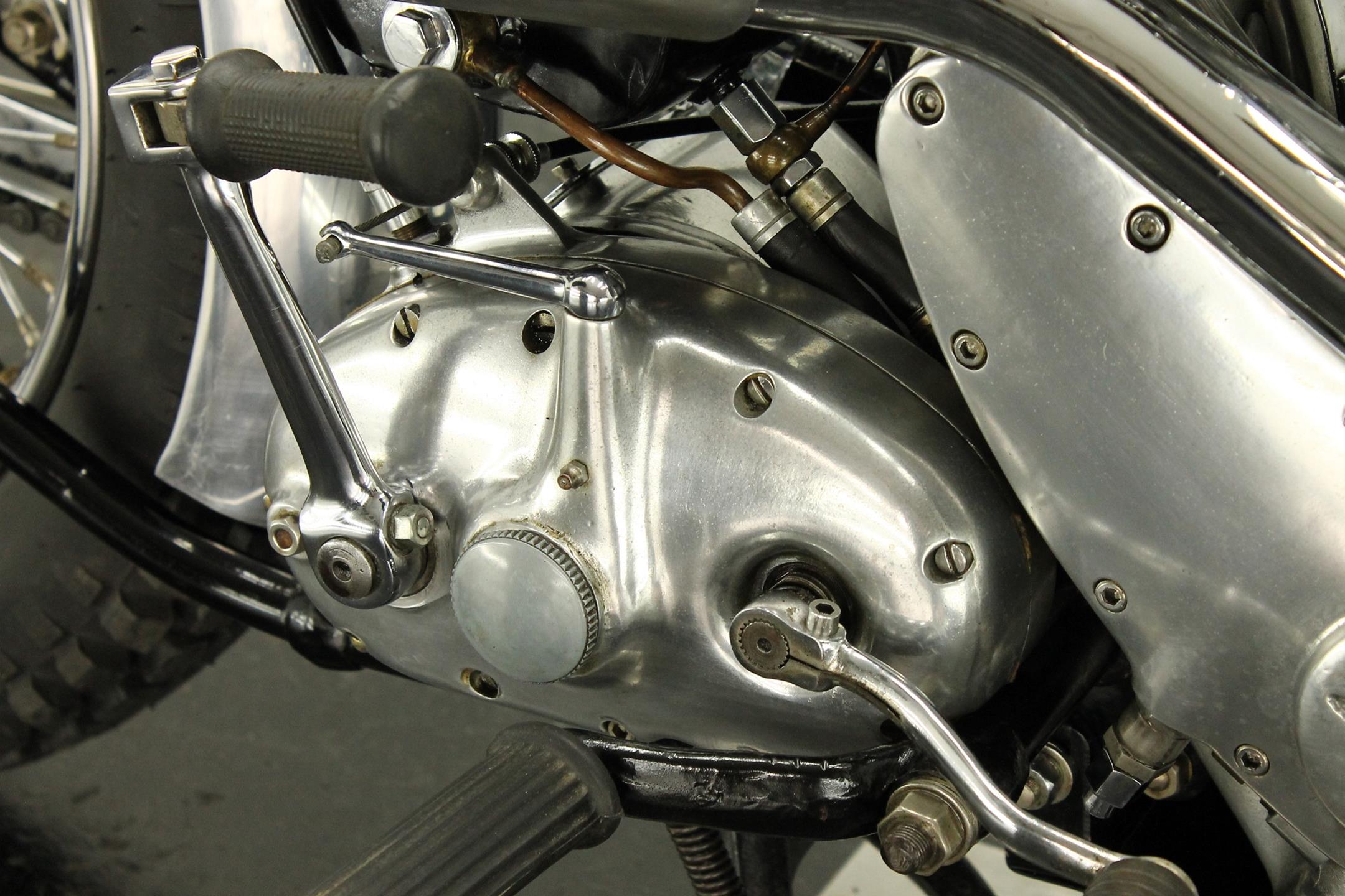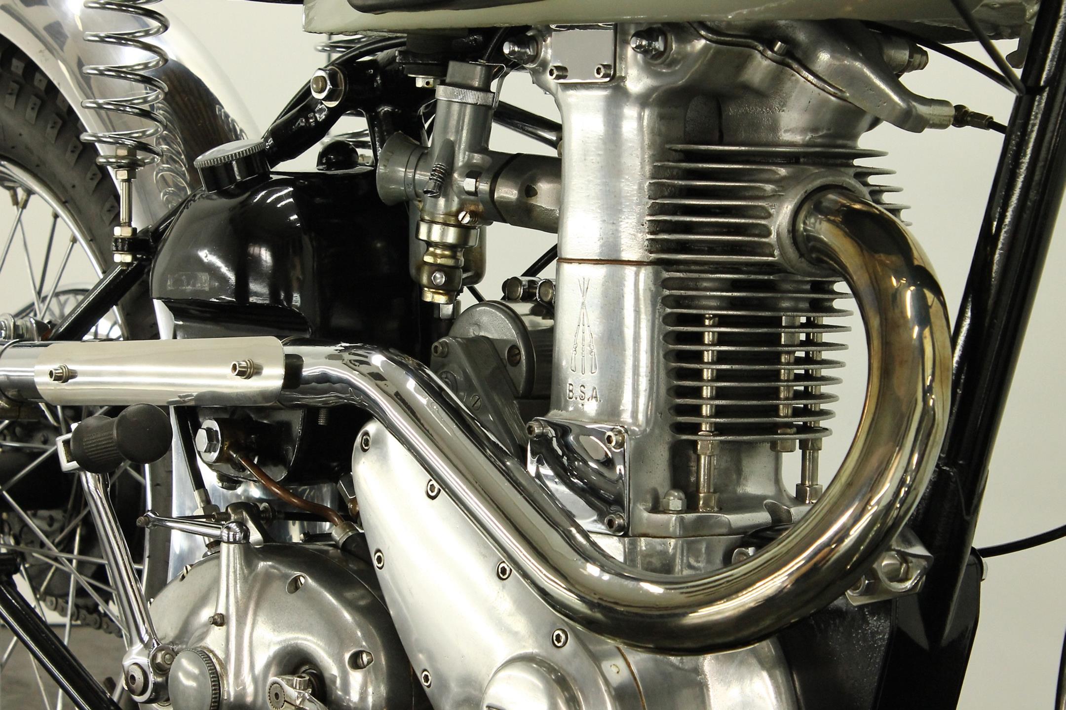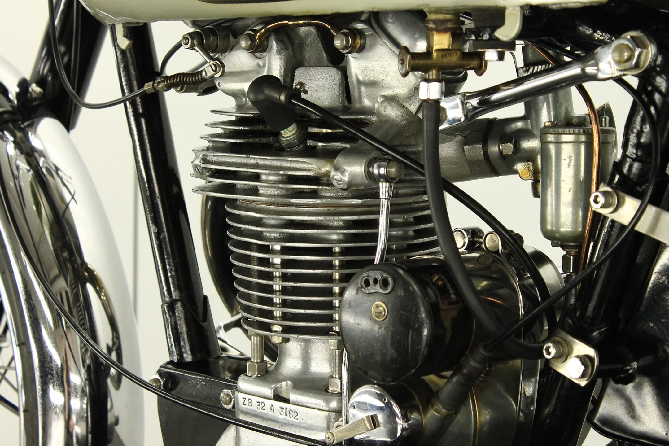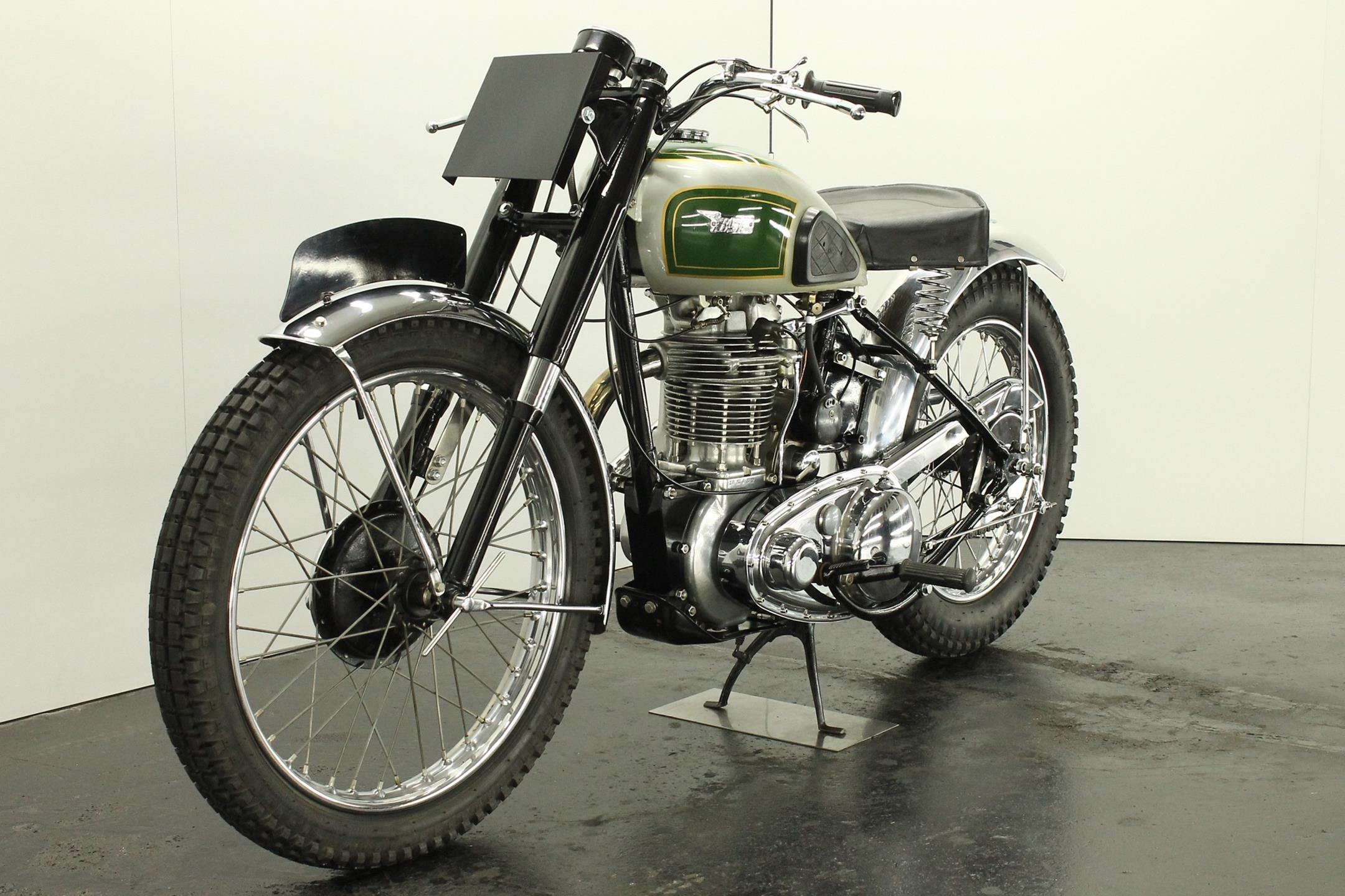 BSA's rugged, workaday B31 was manufactured from 1945 to the end of 1959, its overhead-valve engine providing the basis for the renowned Gold Star sports roadster. At the time of its introduction, the B31 was BSA's sole all-new model, joining the lightweight 'C' and heavyweight 'M' ranges carried over from pre-war days, and was produced initially with rigid frame and telescopic front fork. In January 1946 it was joined by a Competition variant, the B32, which boasted a high-level exhaust system, 21" front wheel, additional chromium plating, a crankcase shield and lowered gearing. An alloy cylinder barrel and head, broadly similar to those used on the contemporary Gold Star but retaining a separate pushrod tunnel, became available as B32 options from 1949 onwards, as did plunger rear suspension in common with the rest of the 'B' singles range.