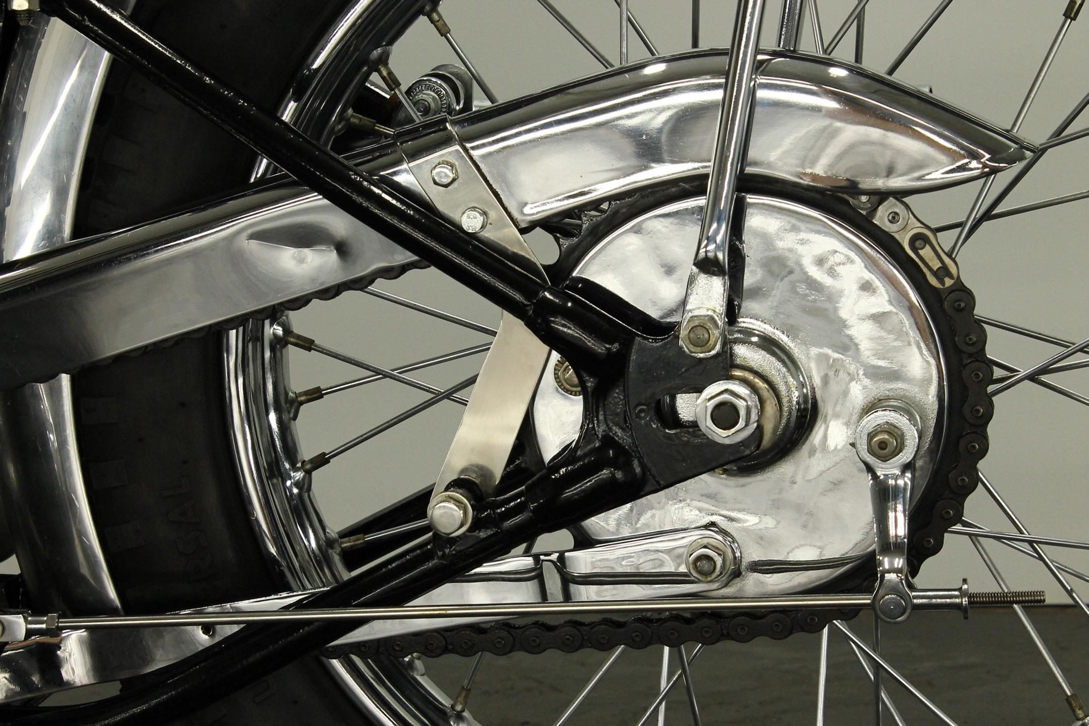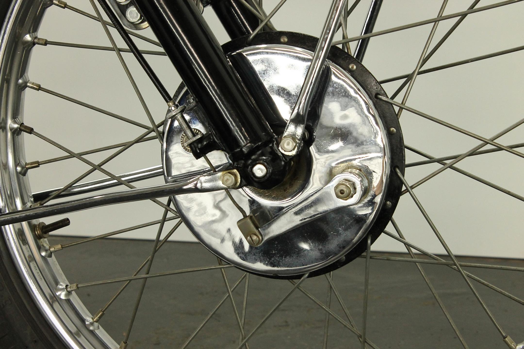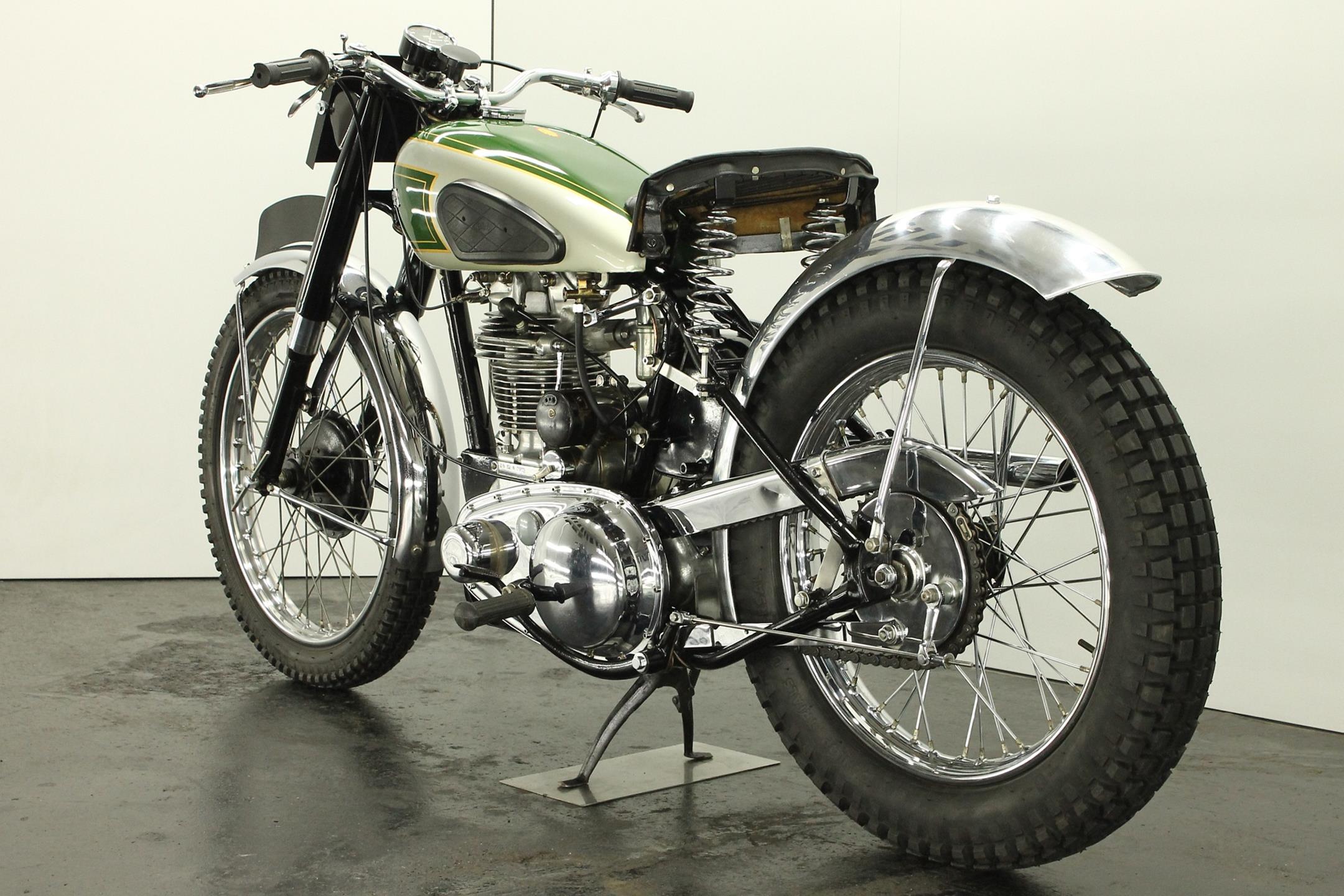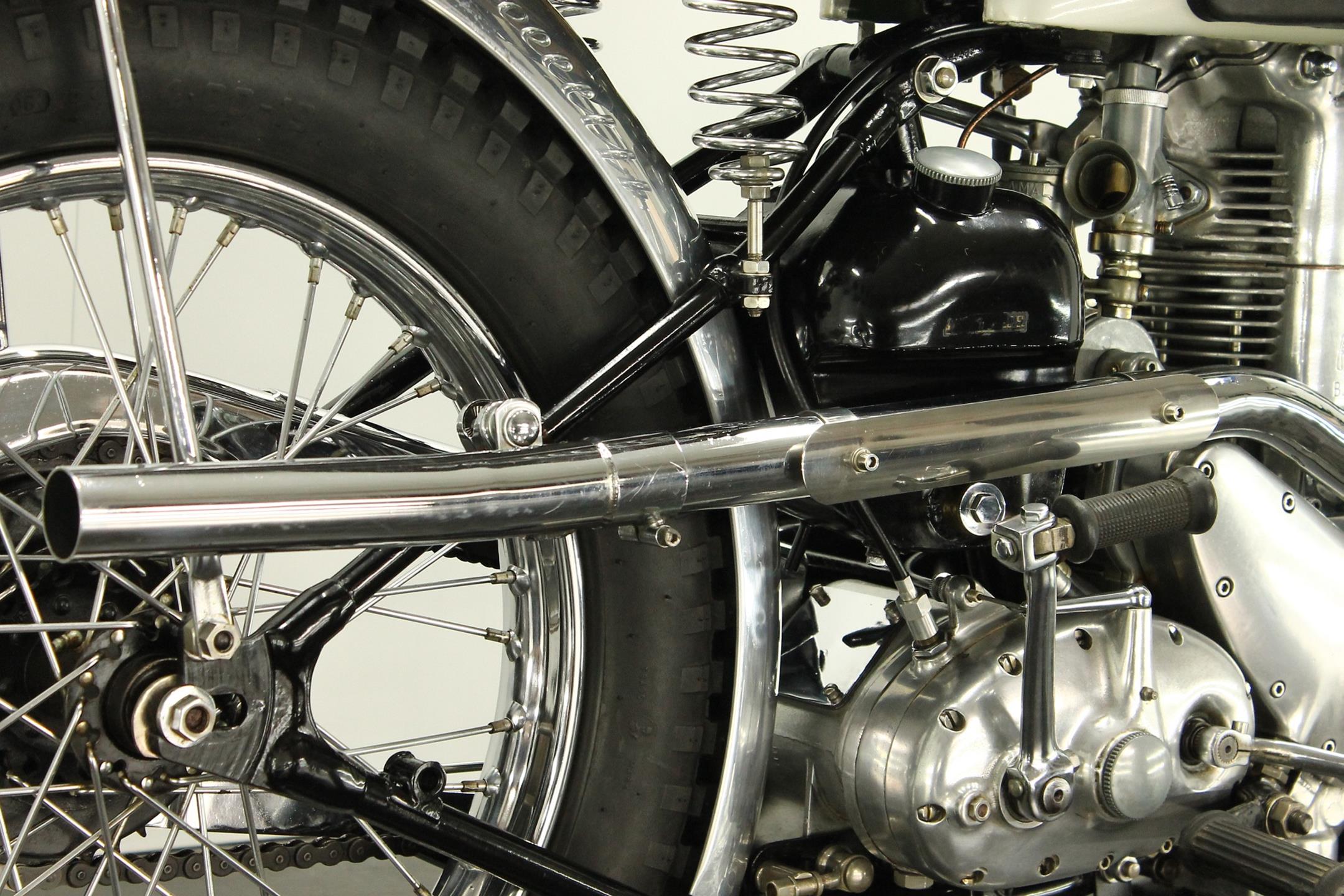 BSA's rugged, workaday B31 was manufactured from 1945 to the end of 1959, its overhead-valve engine providing the basis for the renowned Gold Star sports roadster. At the time of its introduction, the B31 was BSA's sole all-new model, joining the lightweight 'C' and heavyweight 'M' ranges carried over from pre-war days, and was produced initially with rigid frame and telescopic front fork. In January 1946 it was joined by a Competition variant, the B32, which boasted a high-level exhaust system, 21" front wheel, additional chromium plating, a crankcase shield and lowered gearing. An alloy cylinder barrel and head, broadly similar to those used on the contemporary Gold Star but retaining a separate pushrod tunnel, became available as B32 options from 1949 onwards, as did plunger rear suspension in common with the rest of the 'B' singles range.