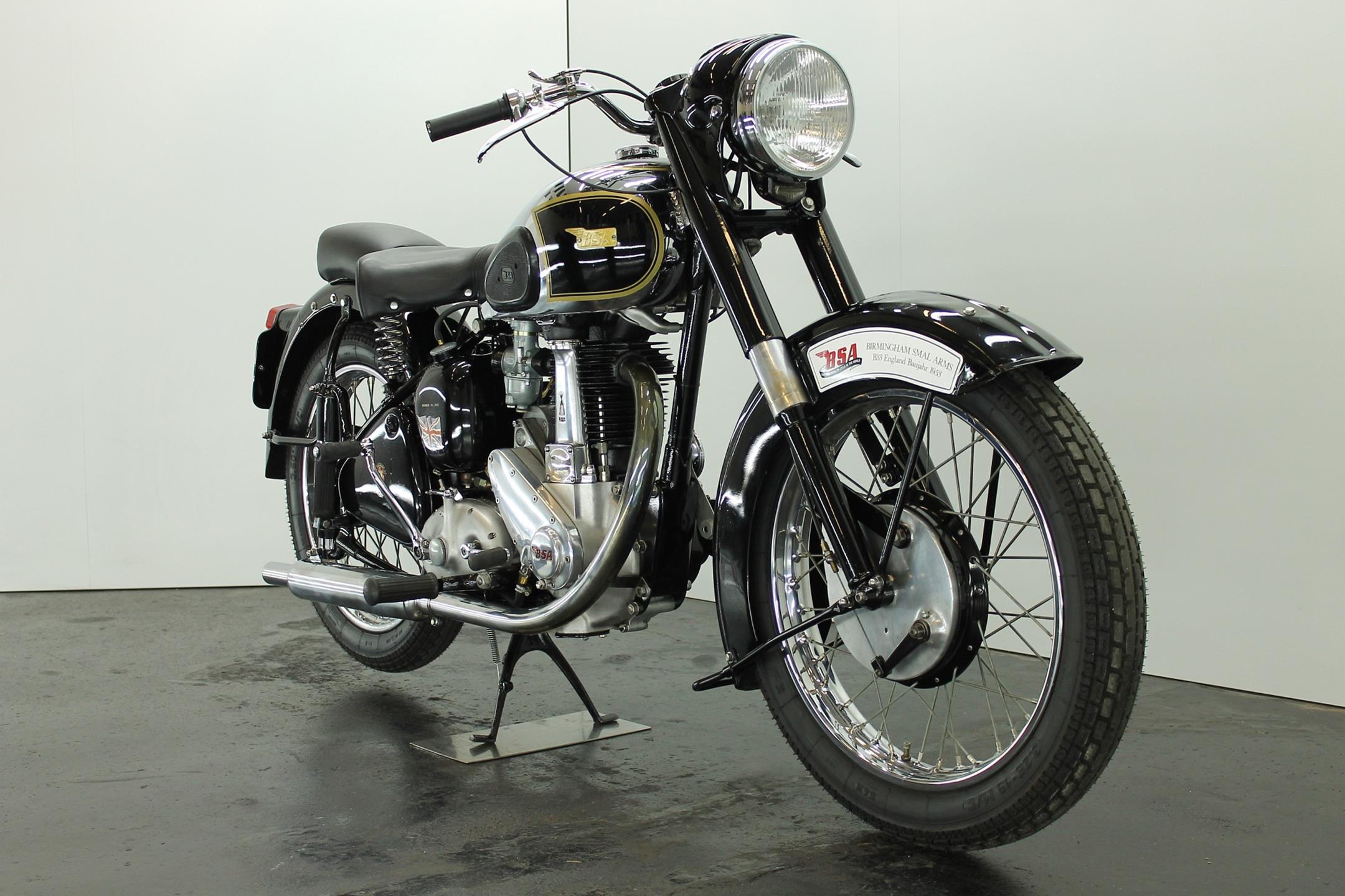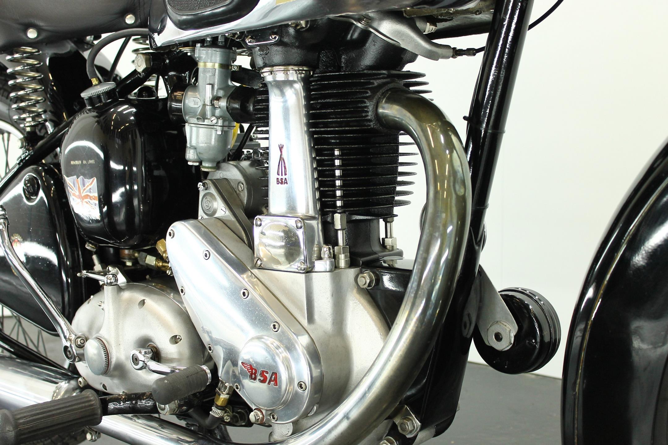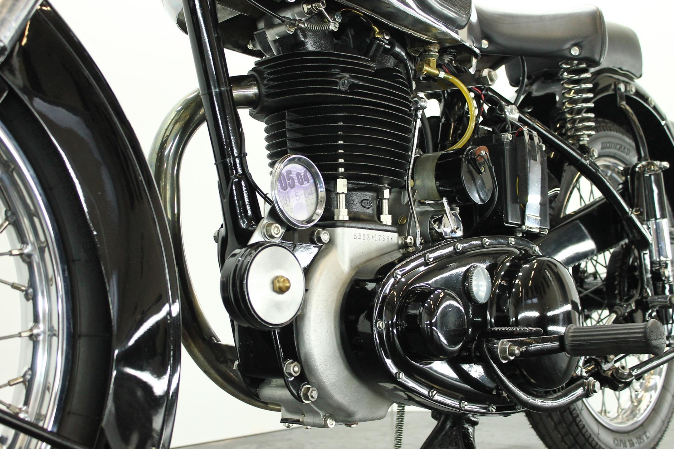 The BSA 350cc B31 and B33 500 cc workhorses originated in immediate post-war years with contemporary modern styling, albeit owing much of their engineering to pre-war progenitors. Always appreciated for their solid and reliable performance these popular models were in the BSA catalogue right up to the end of the fifties, when twins became the fashion and the 'thumper' was seen by the motorcyclist as an anachronism, apart that is from the sidecar-lugging fraternity who hadn't yet got over the demise of rigid frames and girder forks. The motorcyclist himself by this time was almost an anachronism, but most appreciated the simplicity, reliability, economy, power and handling of the last of the big everyday Beesa singles which by 1959 had the benefit of well developed swing arm frame, telescopic forks large fuel tank and copious dual seat. Also by then a fully enclosed rear chaincase, headlamp nacelle, alternator electrics and more effective brakes were standard. As ever the Great British Motorcycle Industry had got it right. Then they stopped making them!