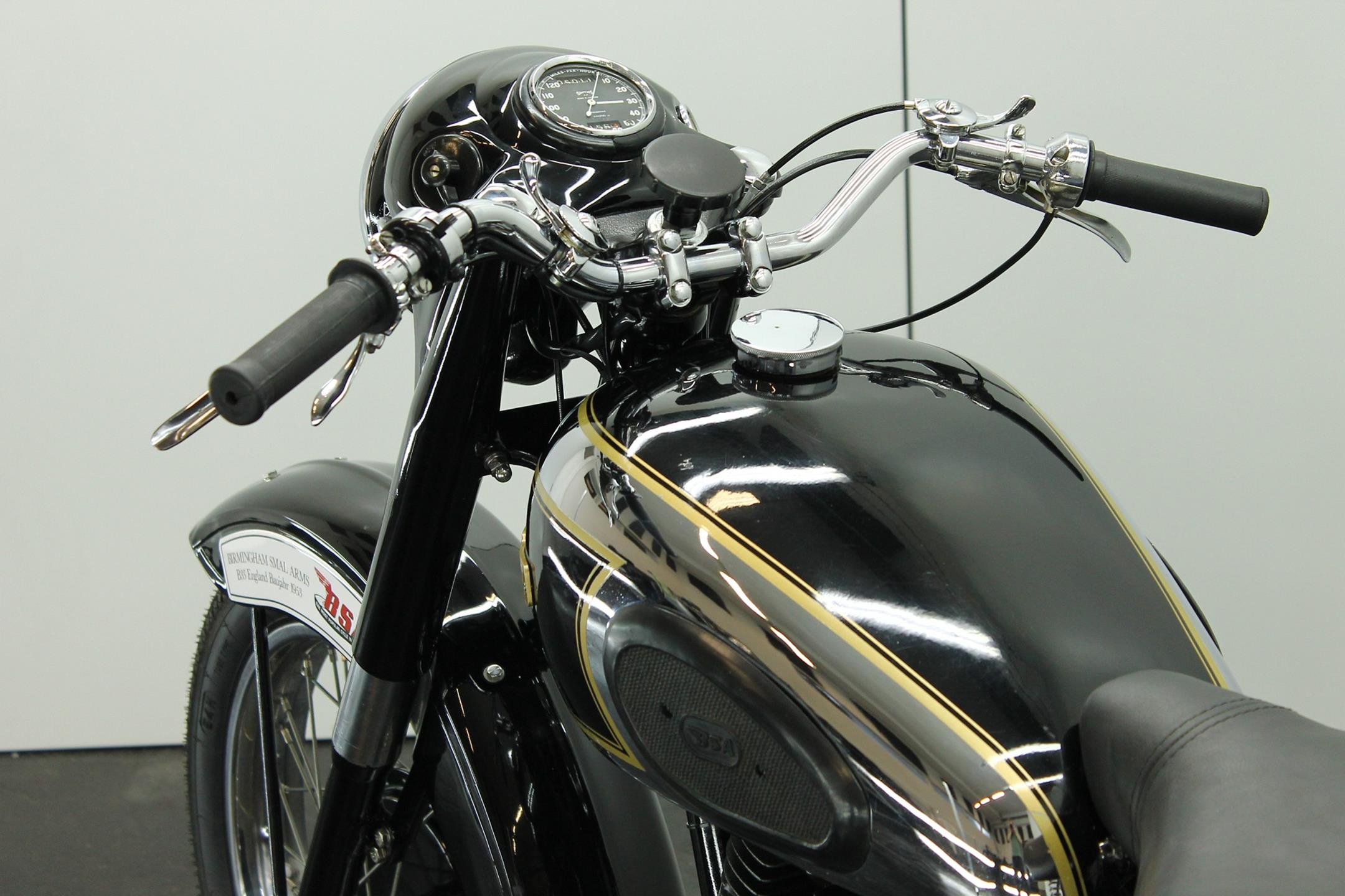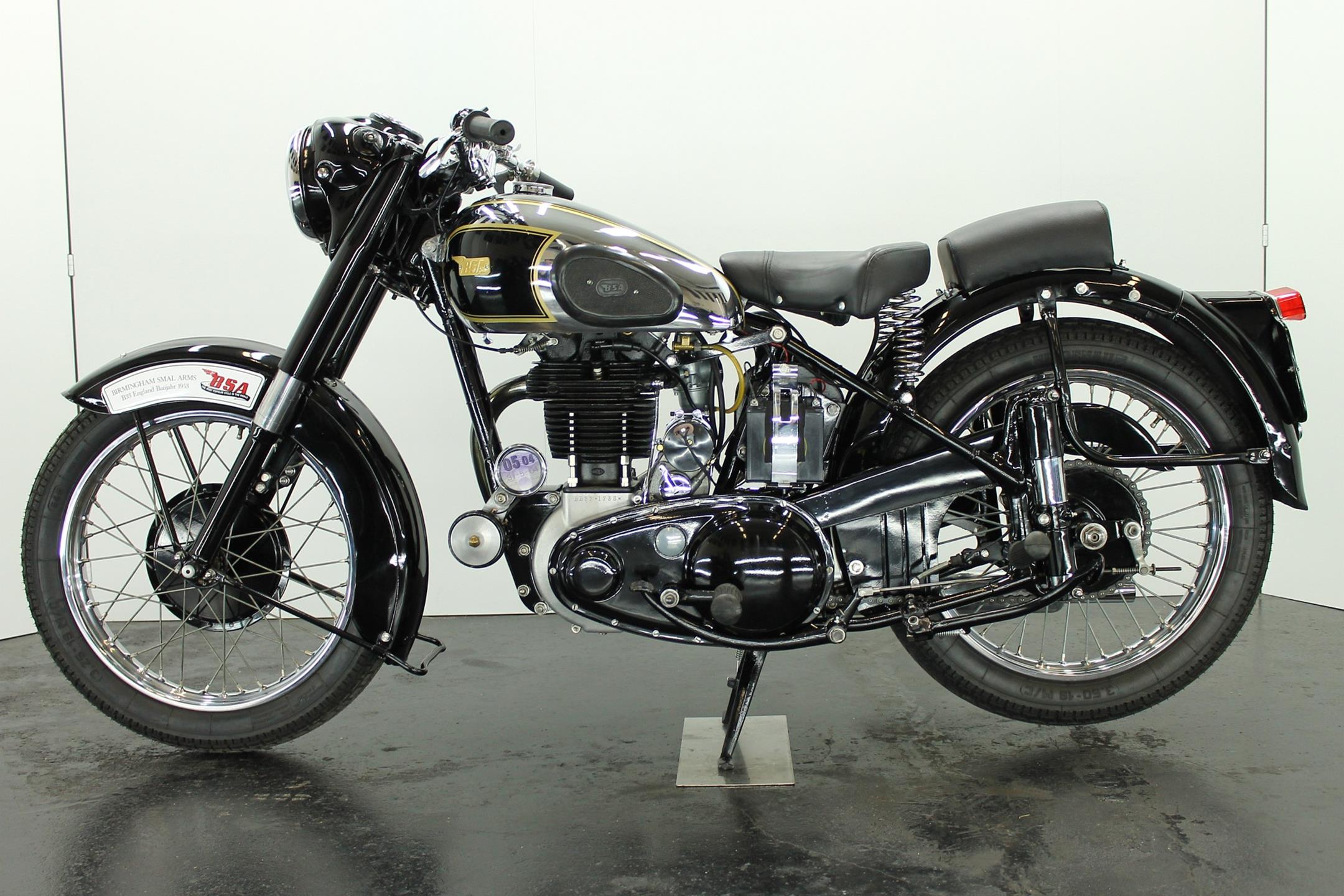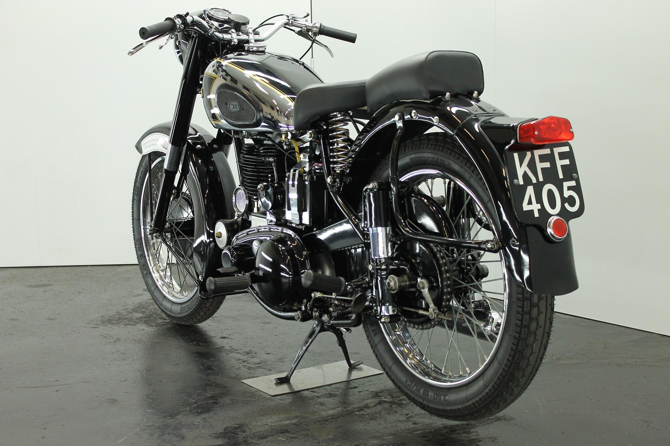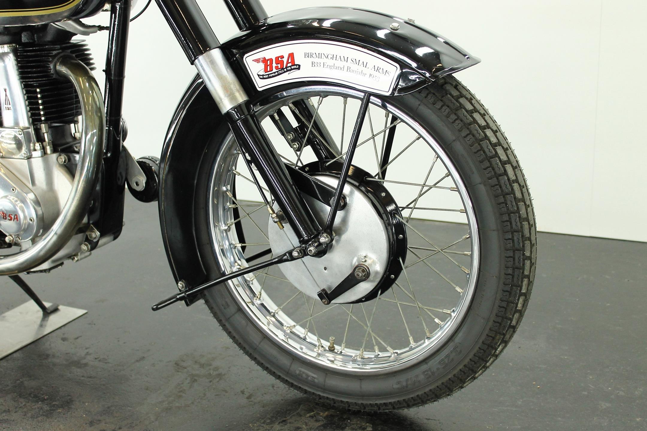 The BSA 350cc B31 and B33 500 cc workhorses originated in immediate post-war years with contemporary modern styling, albeit owing much of their engineering to pre-war progenitors. Always appreciated for their solid and reliable performance these popular models were in the BSA catalogue right up to the end of the fifties, when twins became the fashion and the 'thumper' was seen by the motorcyclist as an anachronism, apart that is from the sidecar-lugging fraternity who hadn't yet got over the demise of rigid frames and girder forks. The motorcyclist himself by this time was almost an anachronism, but most appreciated the simplicity, reliability, economy, power and handling of the last of the big everyday Beesa singles which by 1959 had the benefit of well developed swing arm frame, telescopic forks large fuel tank and copious dual seat. Also by then a fully enclosed rear chaincase, headlamp nacelle, alternator electrics and more effective brakes were standard. As ever the Great British Motorcycle Industry had got it right. Then they stopped making them!