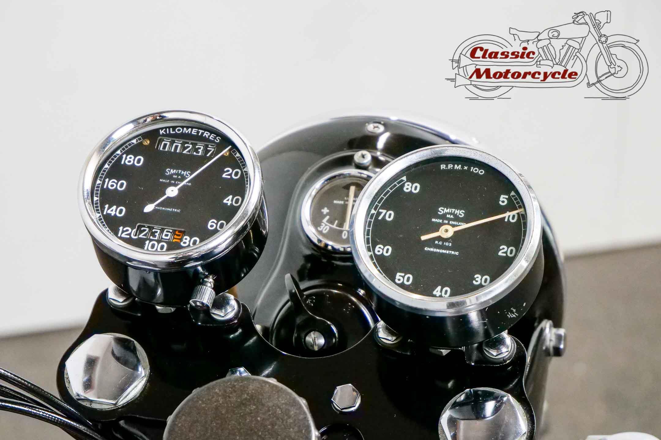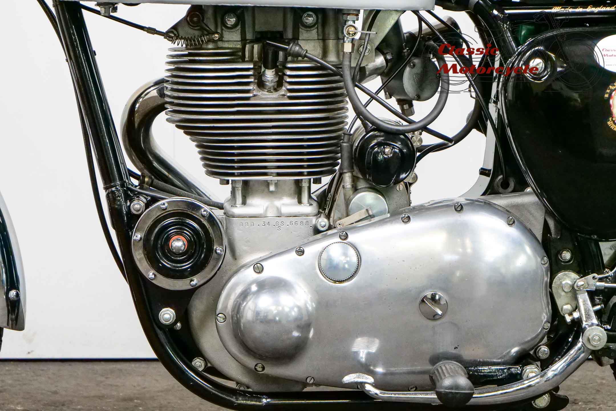 The Gold Star model was the spearhead of the company BSA. The engines were very agile and popular with sporting enthusiasts. This BSA was restored to a high standard some time ago and is fully roadworthy. It was first delivered to Denmark on 20.2.1962 to the dealer Hansen Motors & Cycles. The lucky customer was Mr. Karl Kirscheimer, Hellerup, Denmark. The handover from the dealer to the customer was on 22.3.1962. There is a certificate from the dealer Hansen Motors & Cycles from 1987 with all relevant delivery data including information that the machine left the BSA factory with these numbers.