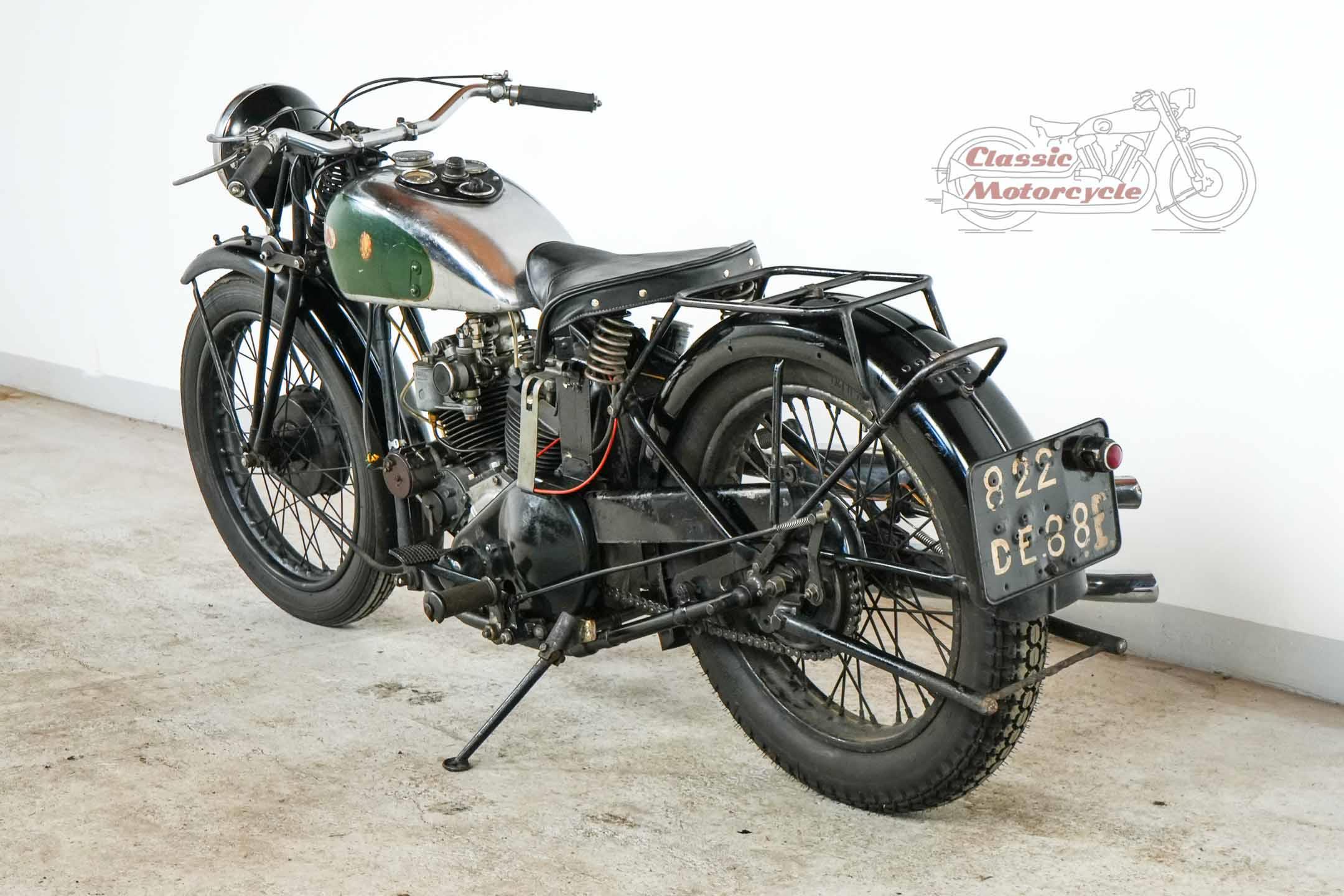 The bike was delivered on October 20th, 1933 to the Paris importer J.H. COX and comes with complete French registration documents, an original maintenance handbook, and a technical description.