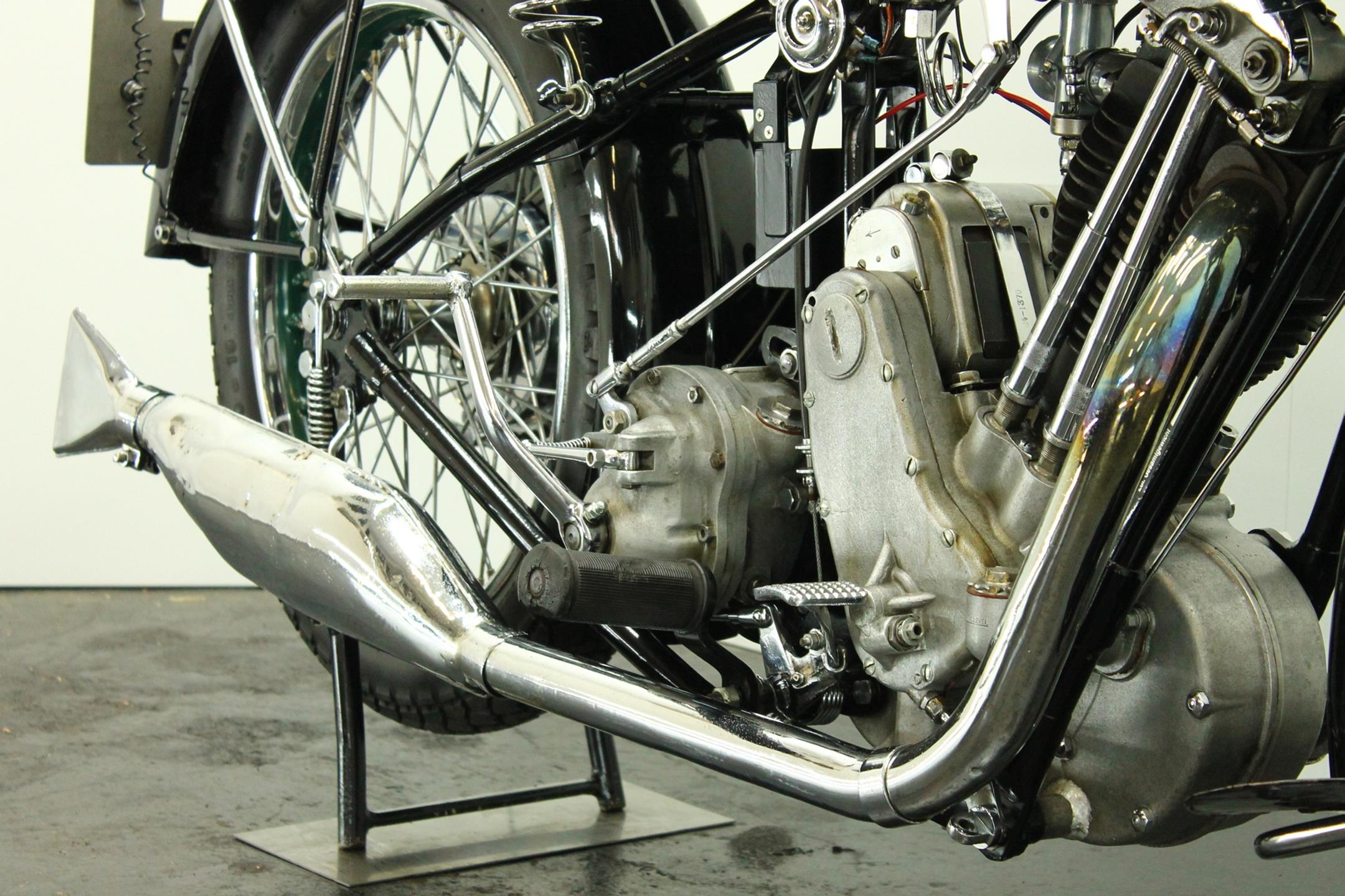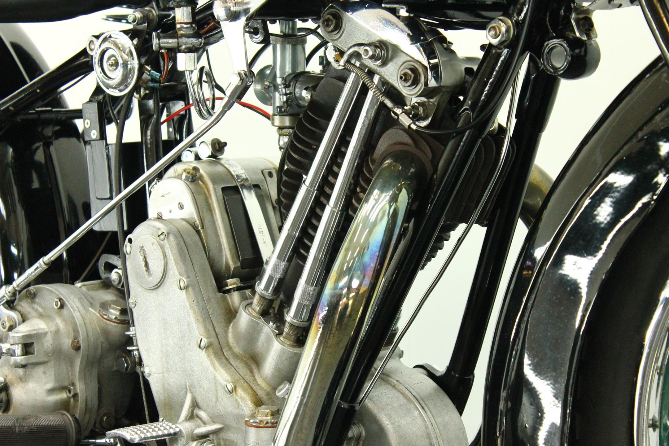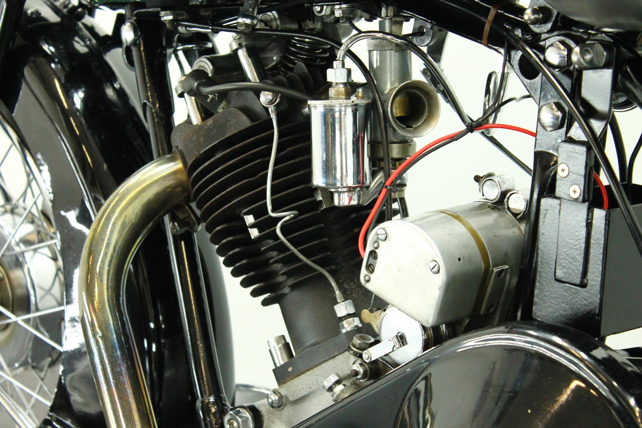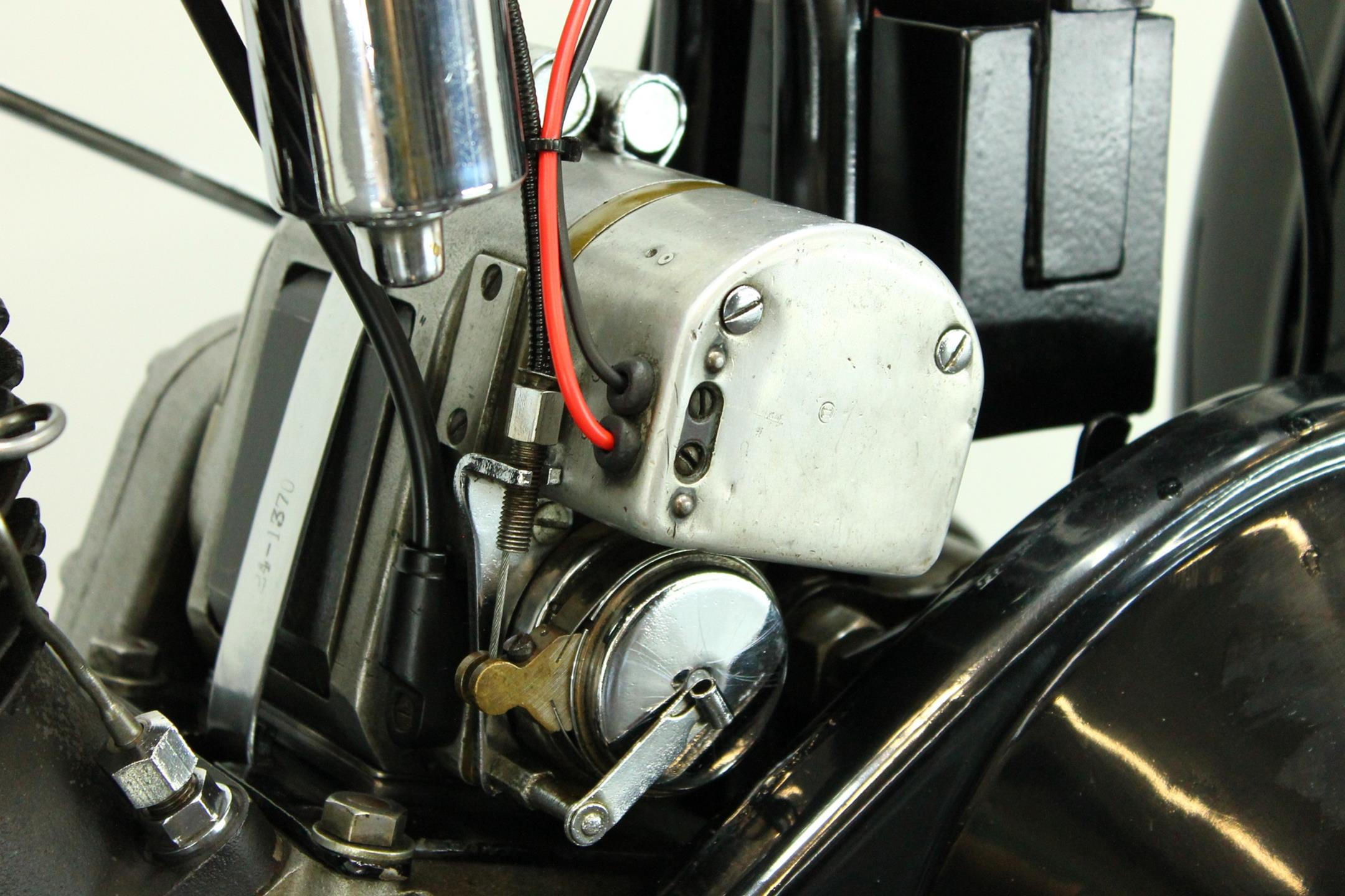 In 1934 it was second powerful bike if includes the V-twins but in the single range it was the most powerful flag ship. This bike has a measure of 104mm! of stroke. It has been restored years ago and is equipped with a Bosch MagDyno, Amal carburetor, BSA gearbox, oil pressure gauge, ammeter, hand operated horn, complete lighting set.