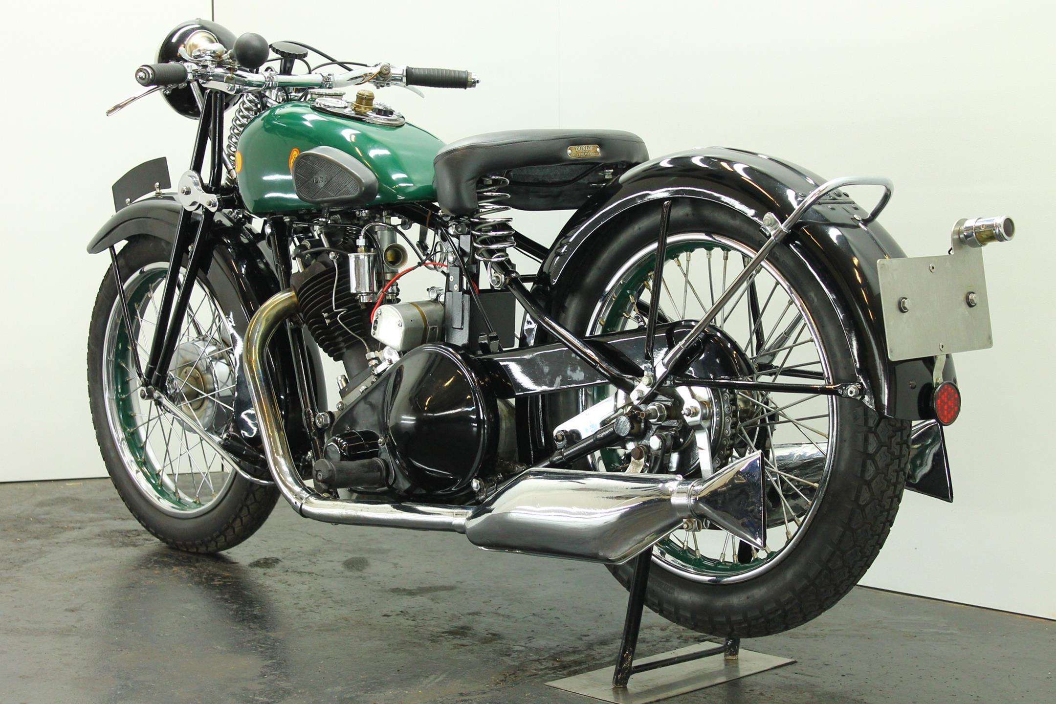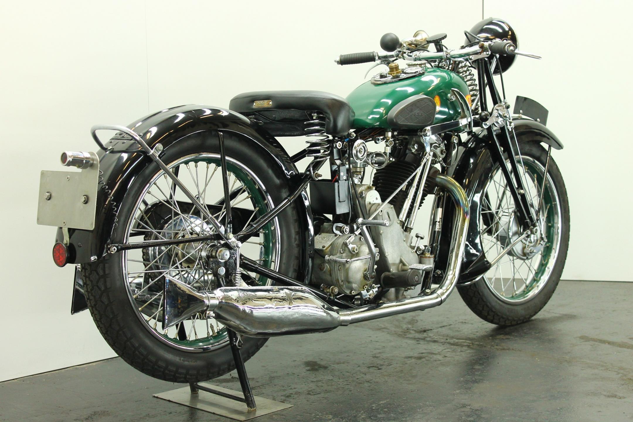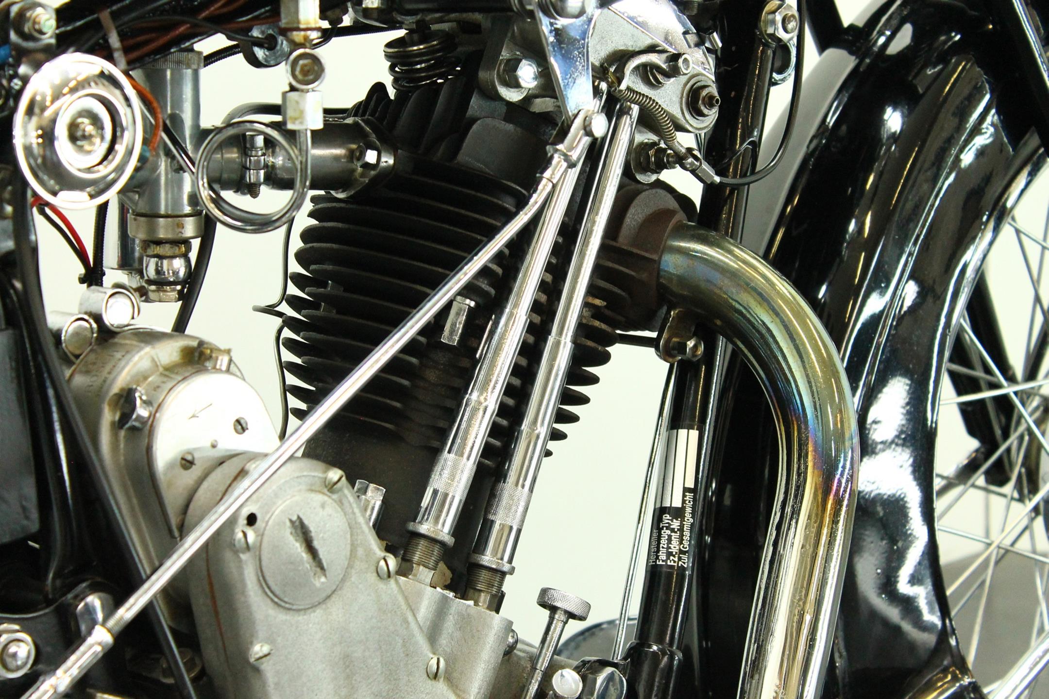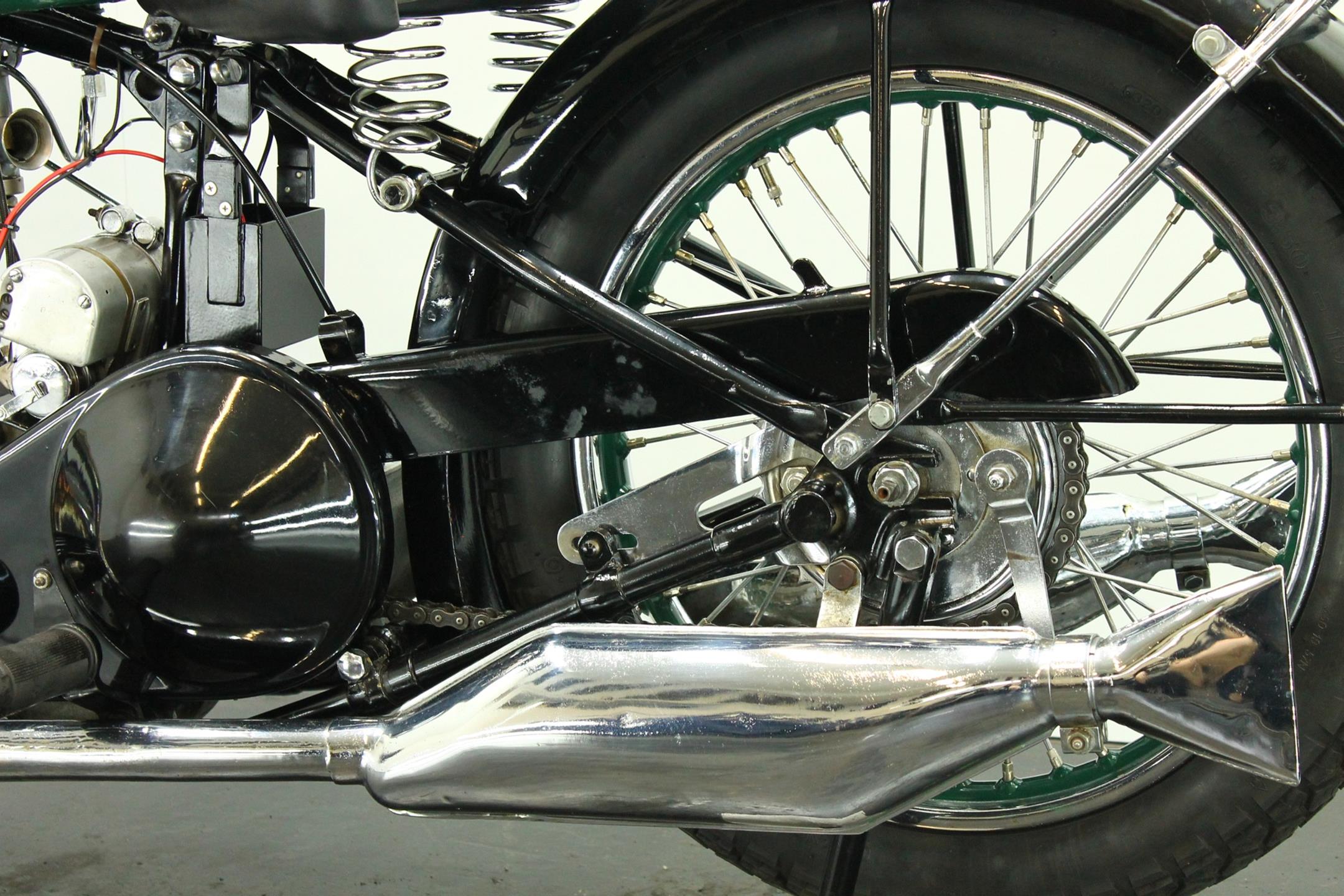 In 1934 it was second powerful bike if includes the V-twins but in the single range it was the most powerful flag ship. This bike has a measure of 104mm! of stroke. It has been restored years ago and is equipped with a Bosch MagDyno, Amal carburetor, BSA gearbox, oil pressure gauge, ammeter, hand operated horn, complete lighting set.