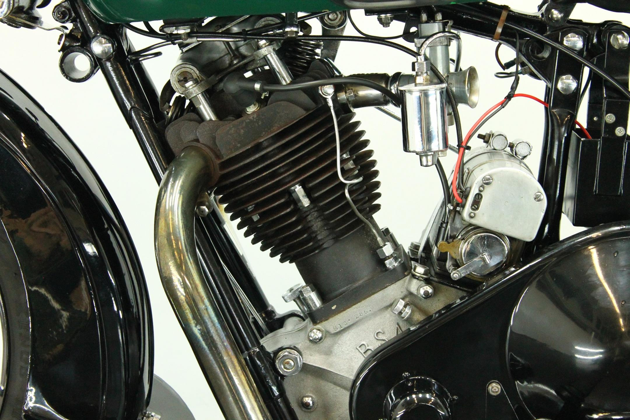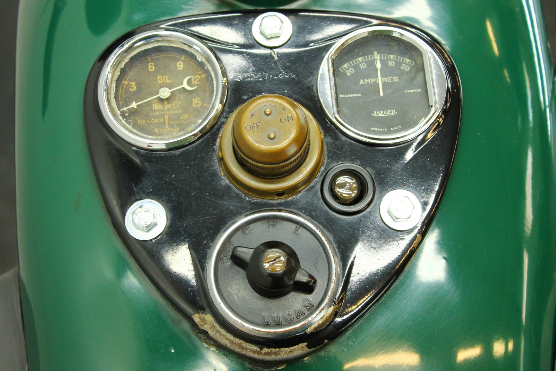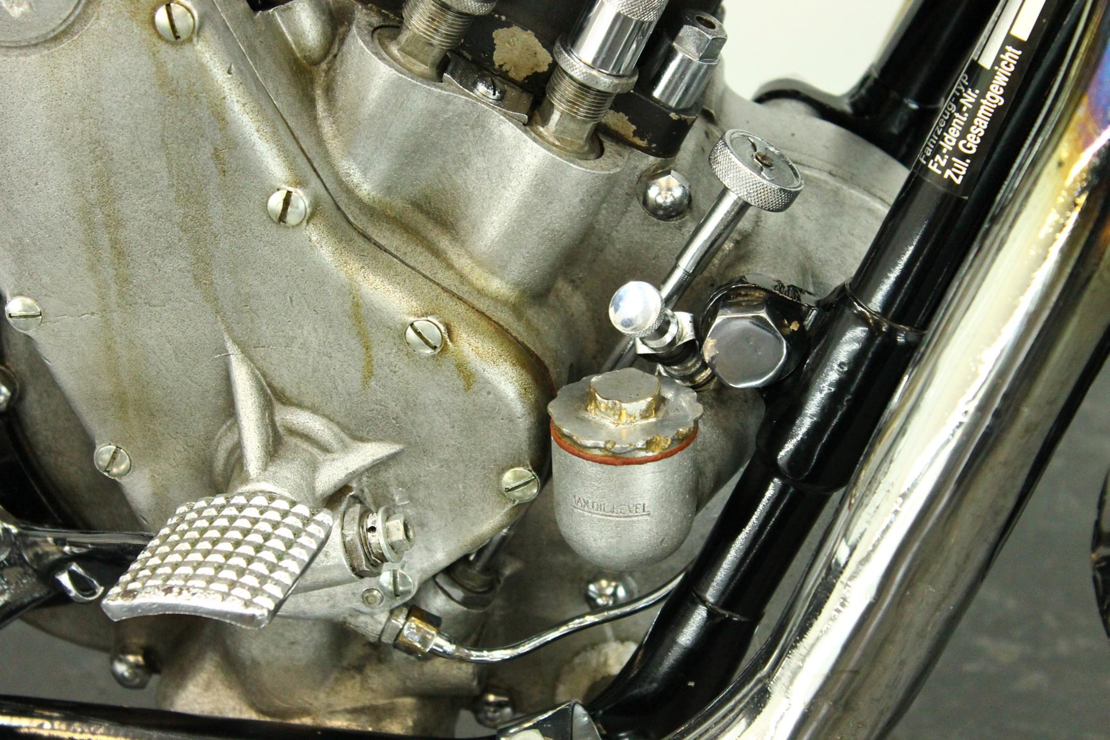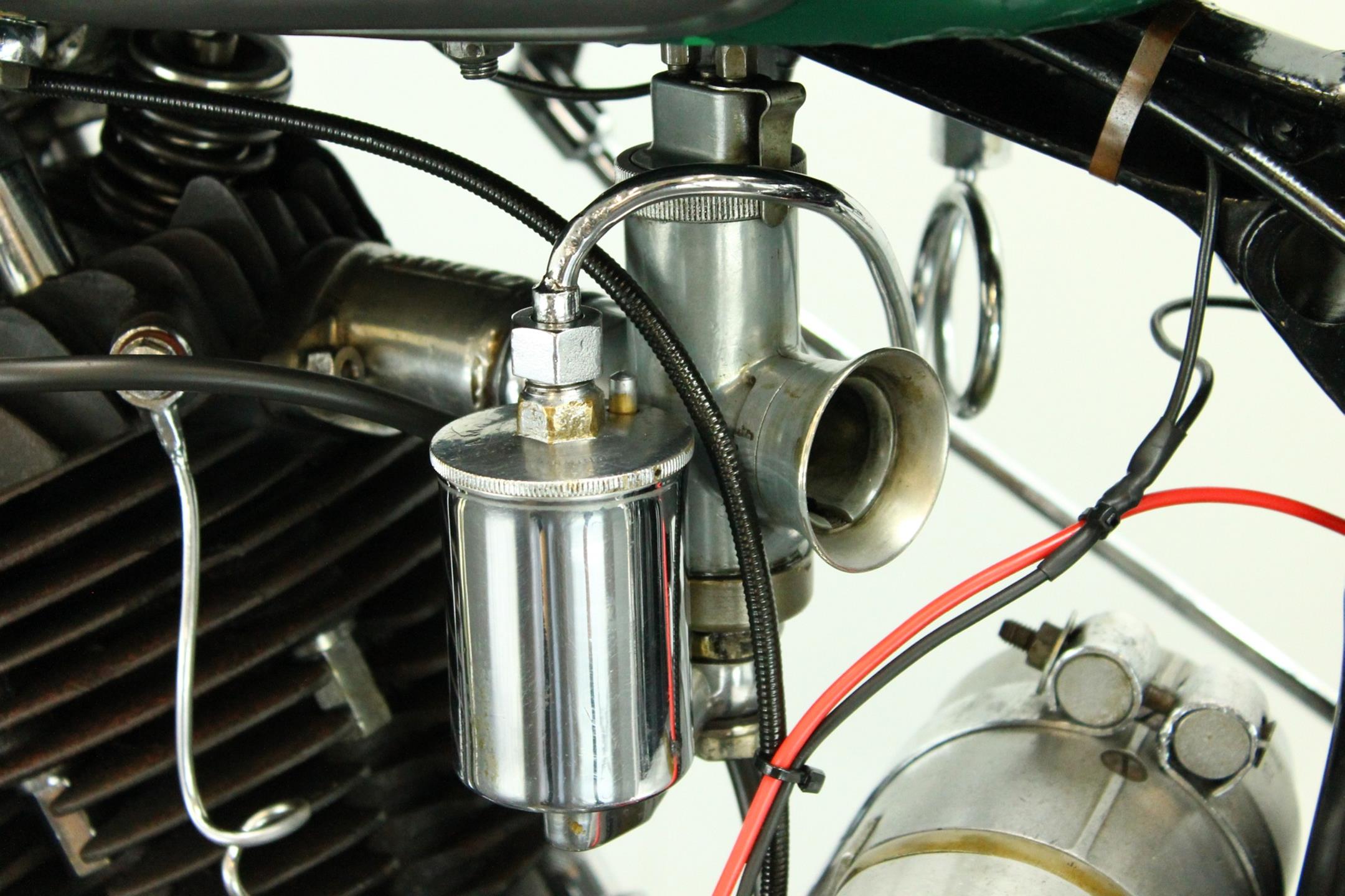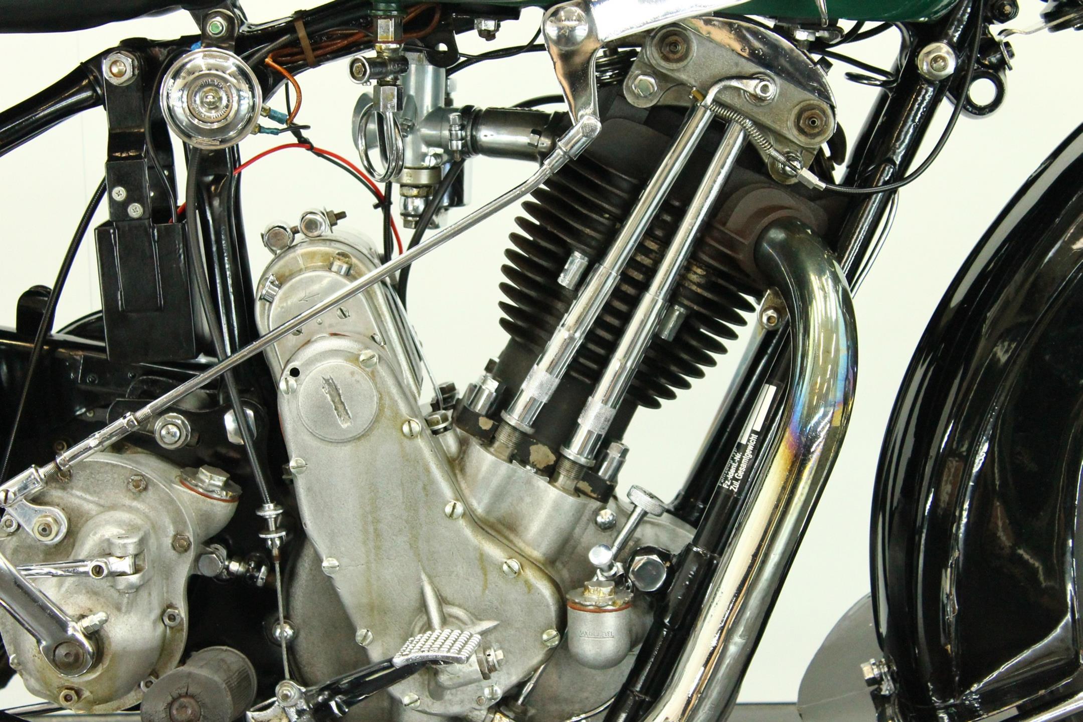 In 1934 it was second powerful bike if includes the V-twins but in the single range it was the most powerful flag ship. This bike has a measure of 104mm! of stroke. It has been restored years ago and is equipped with a Bosch MagDyno, Amal carburetor, BSA gearbox, oil pressure gauge, ammeter, hand operated horn, complete lighting set.