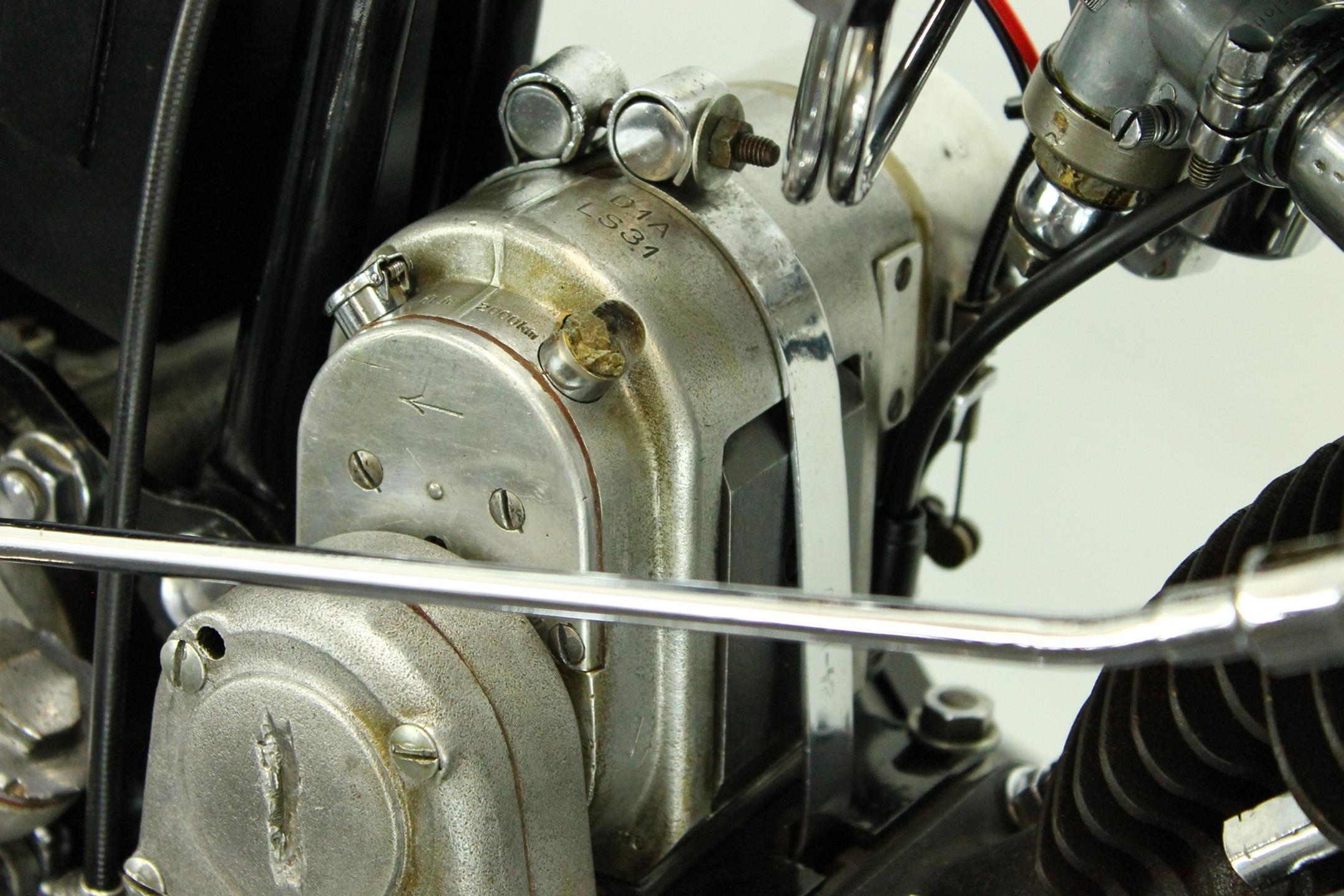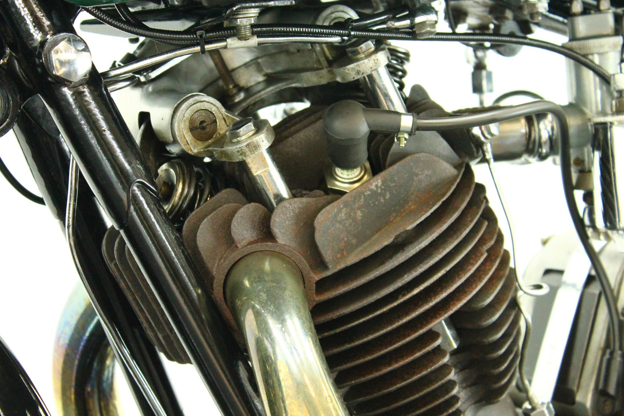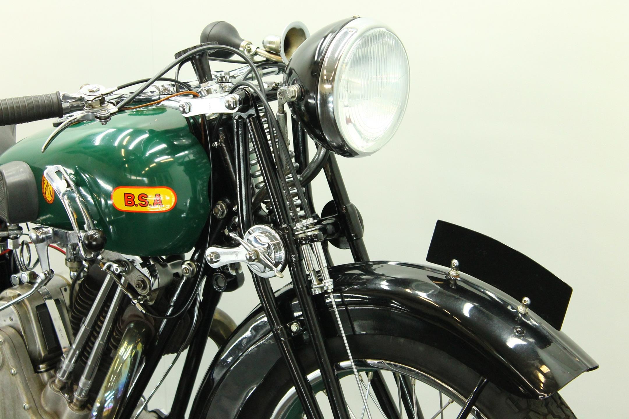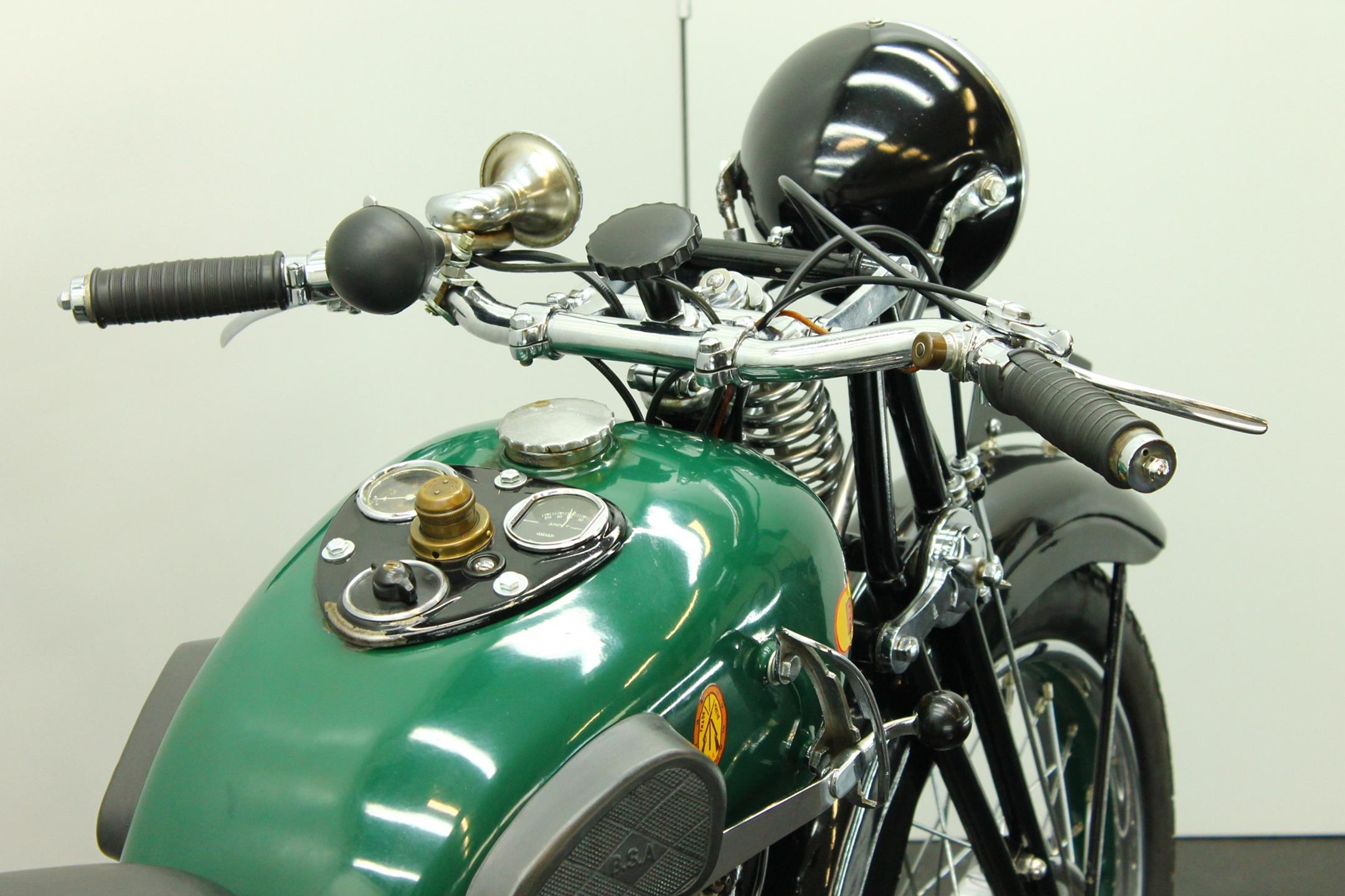 In 1934 it was second powerful bike if includes the V-twins but in the single range it was the most powerful flag ship. This bike has a measure of 104mm! of stroke. It has been restored years ago and is equipped with a Bosch MagDyno, Amal carburetor, BSA gearbox, oil pressure gauge, ammeter, hand operated horn, complete lighting set.