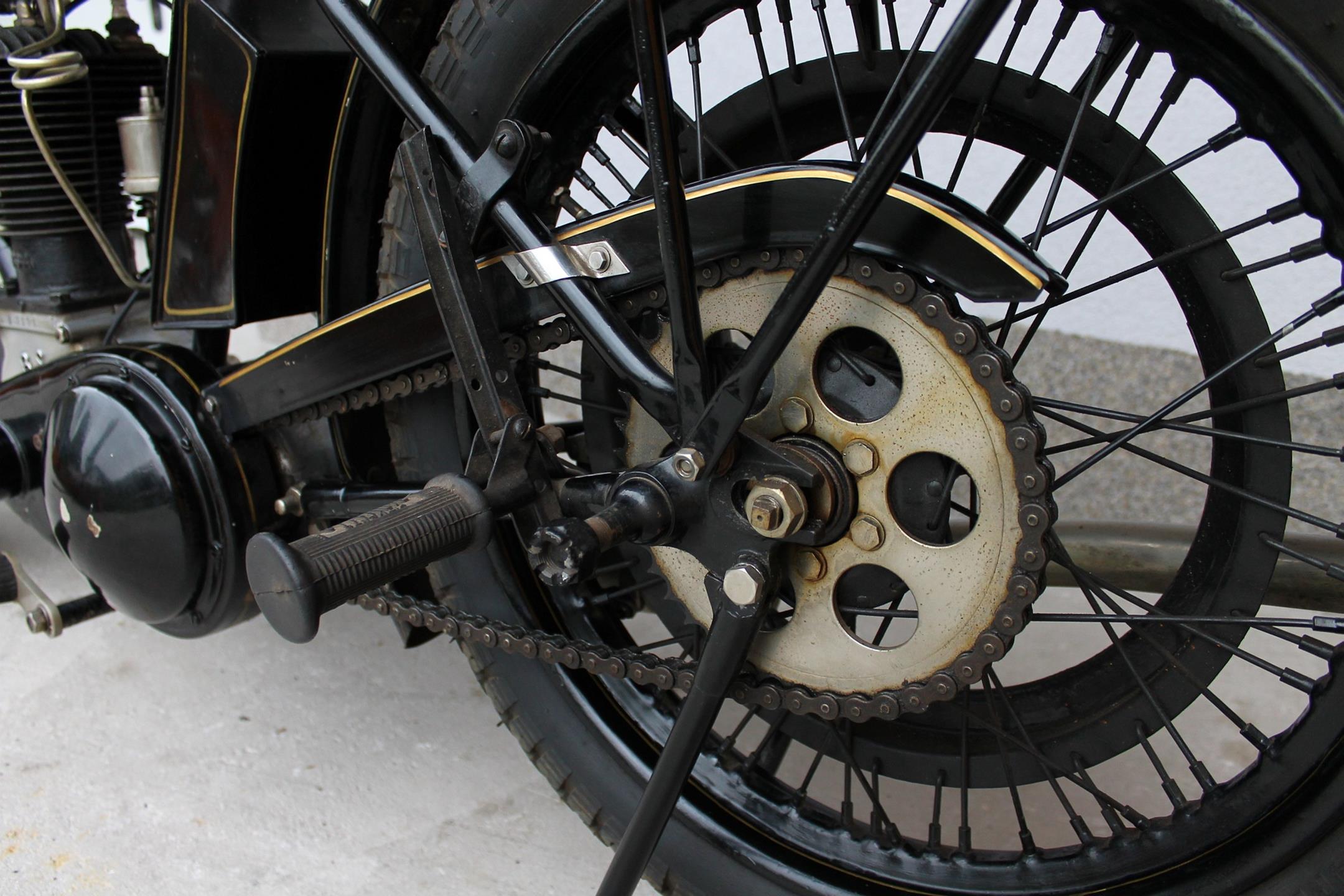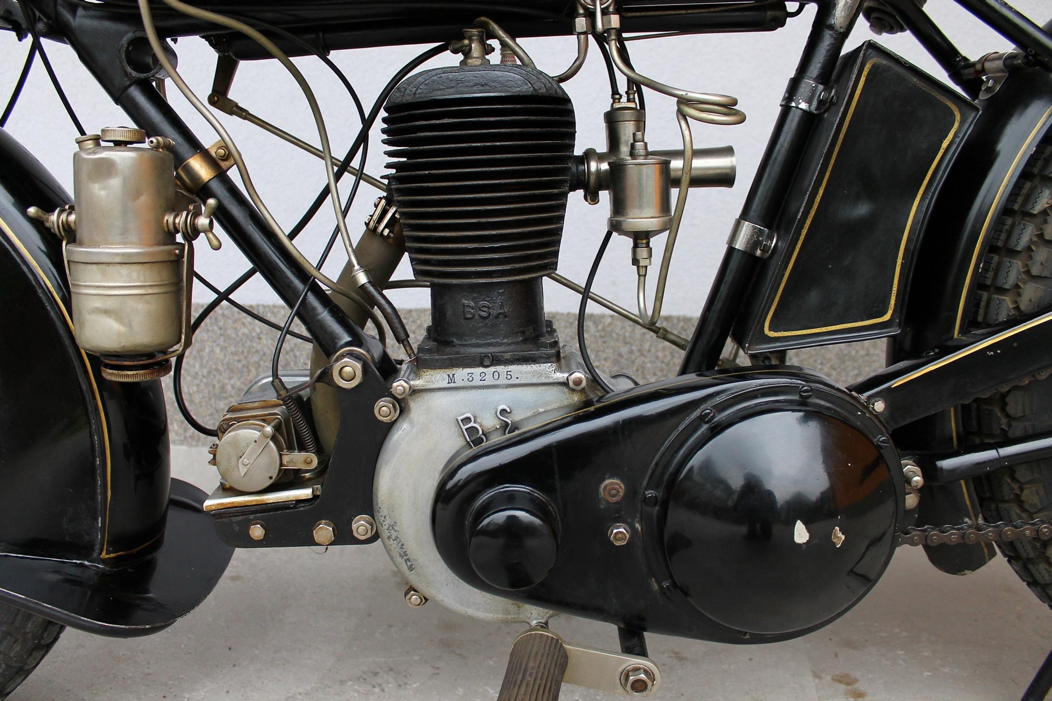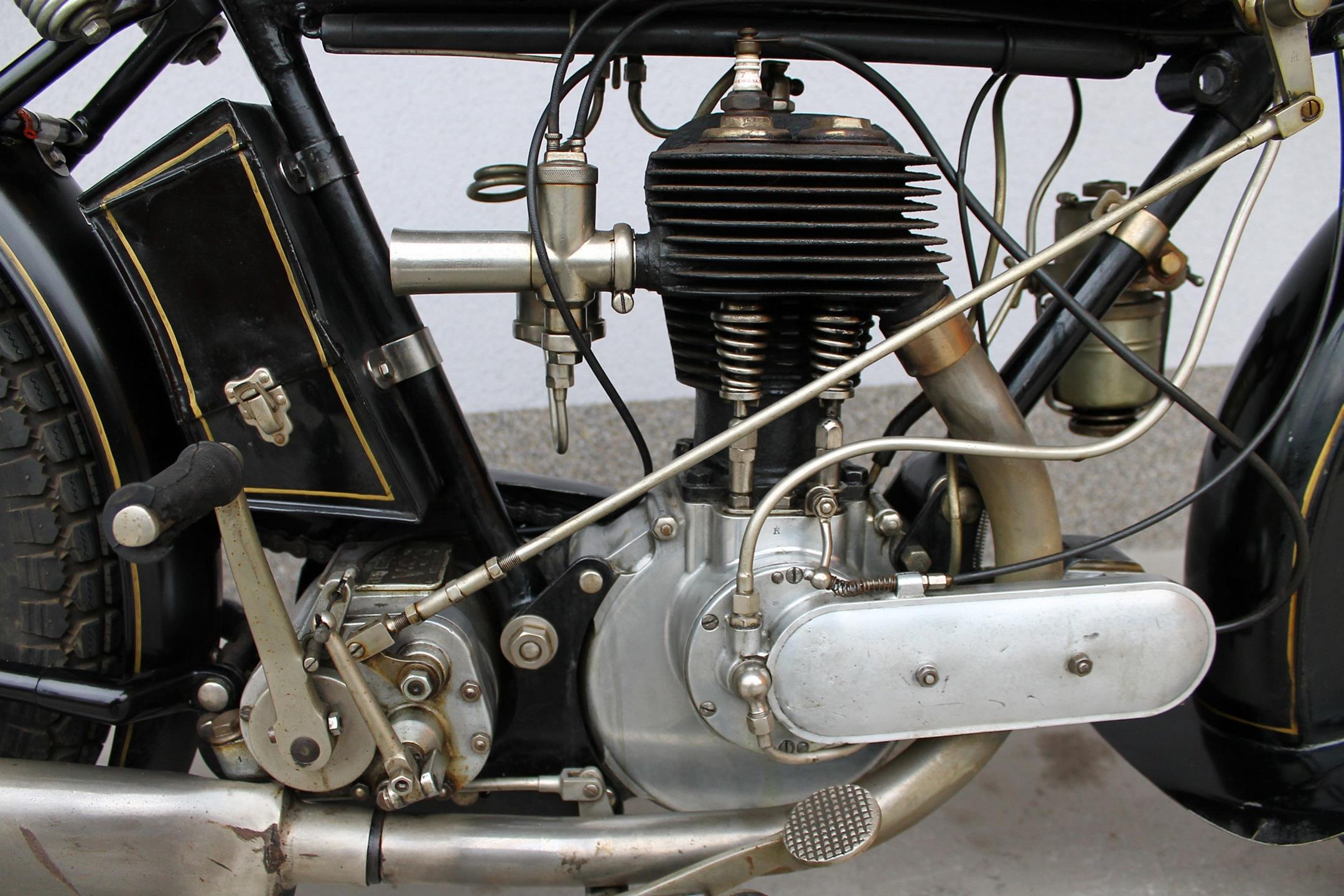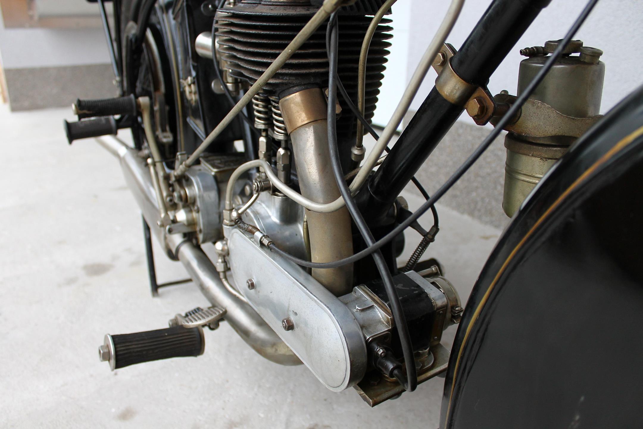 At the end of the nineteen twenties the Motorcycle Industry grew immensely quick, in Britain. Resulting from this, a price competition established between the motorcycle manufacturers. At this time the cheaper Triumph Model P and the BSA model S26, were competing. You were able to choose between 15 solo models and 11 combinations. The solo machines ranged from a 249 cc side valve single to the 986 cc “Colonial” V-twin model. The 493cc was the most noted model and listed at about 45 pounds. This motorcycle is equipped with a BSA three-speed gearbox and with acetylene lighting.