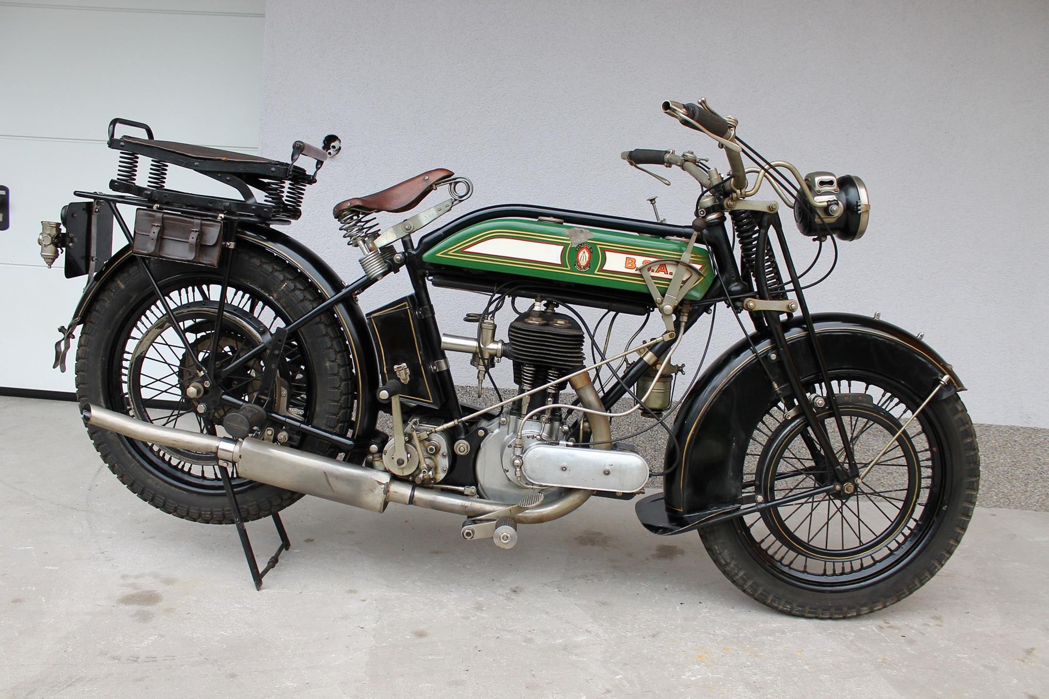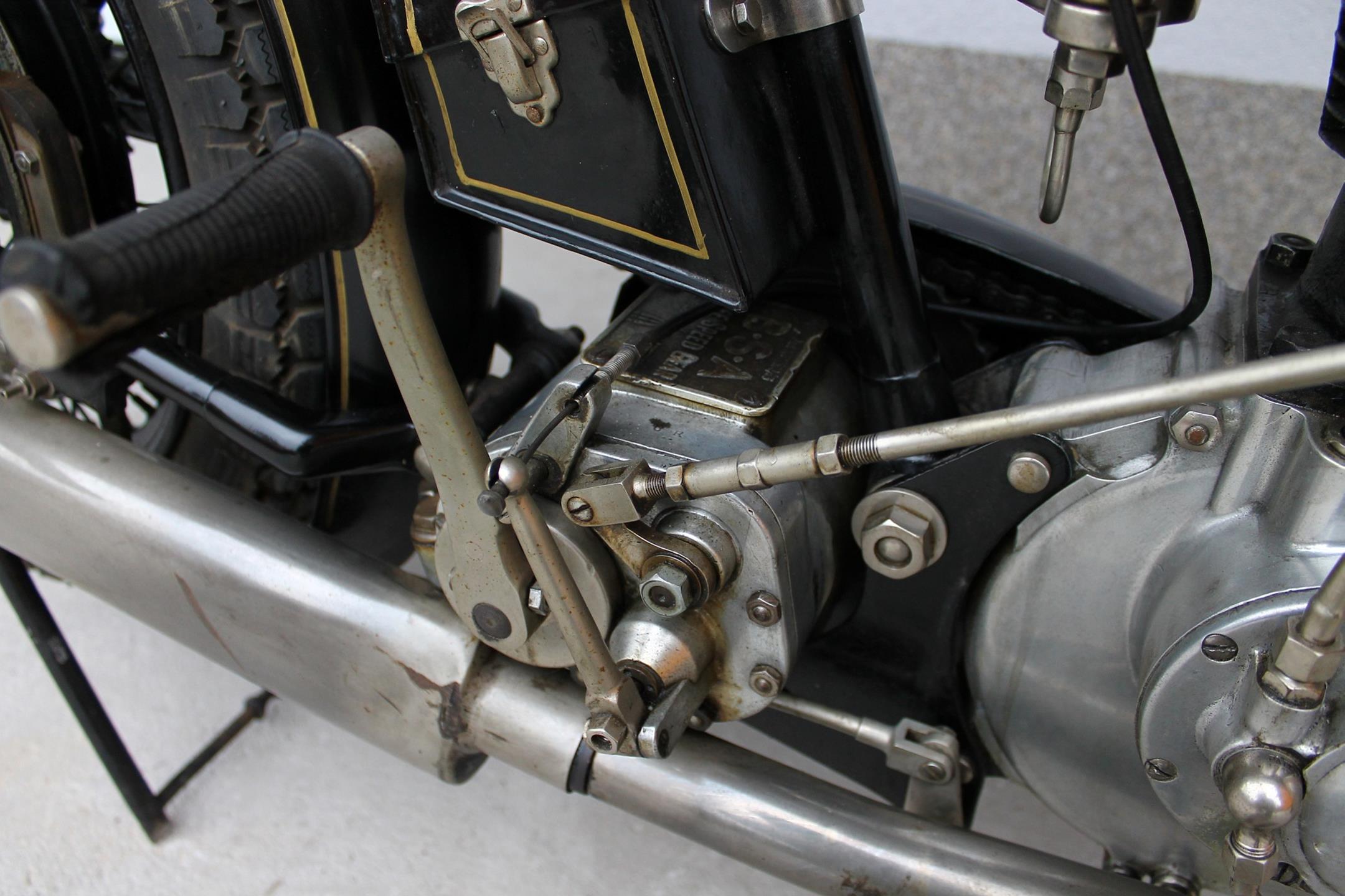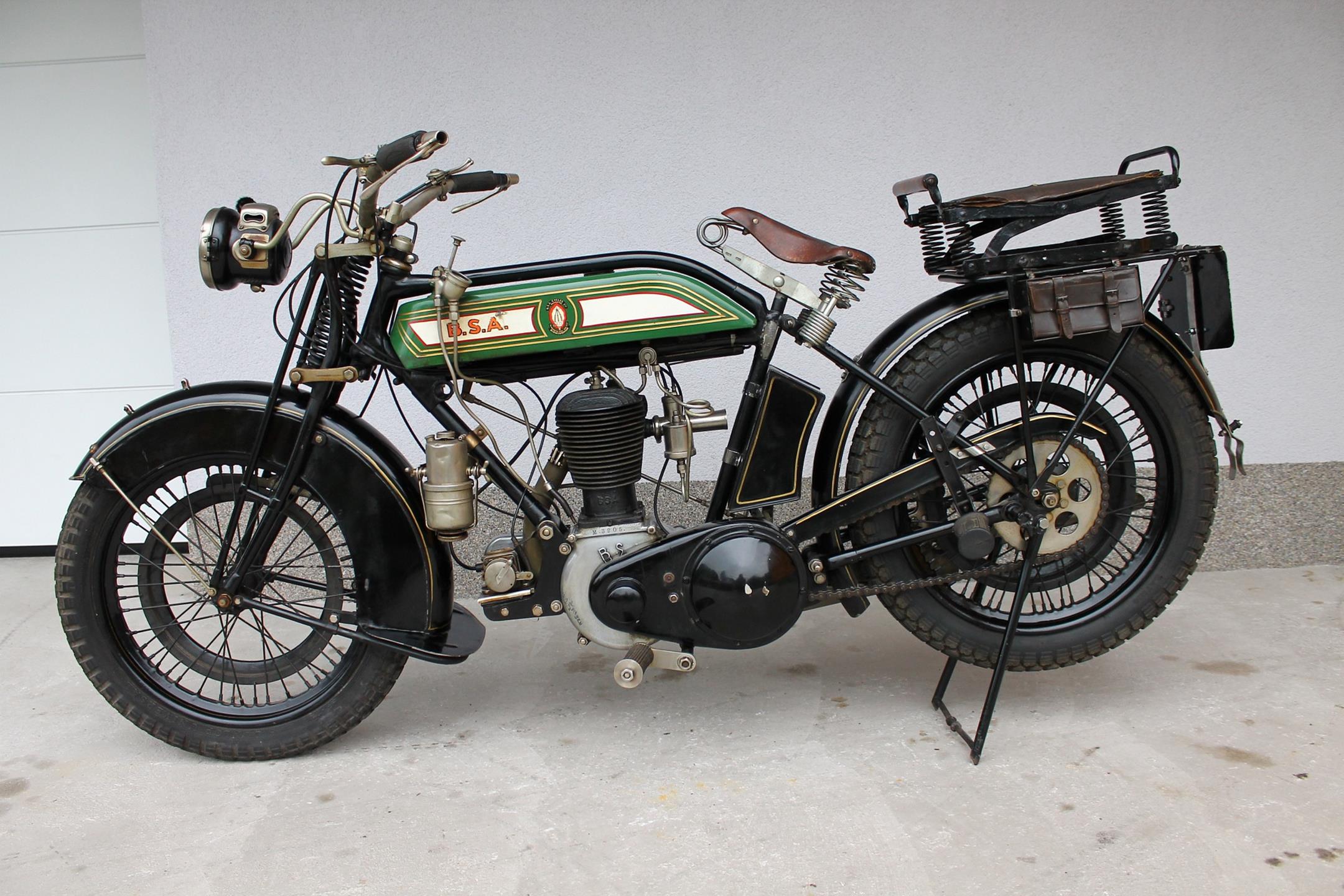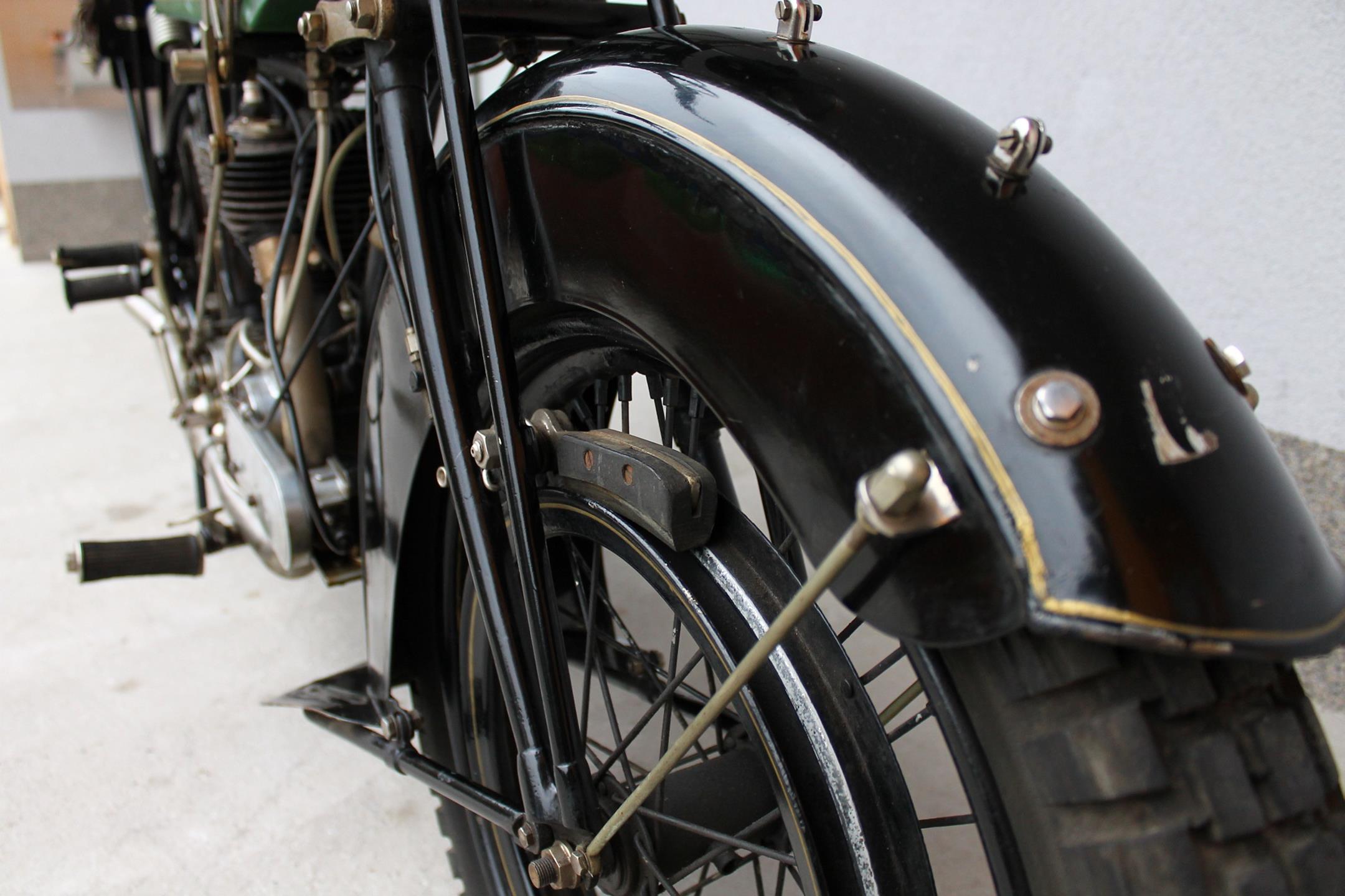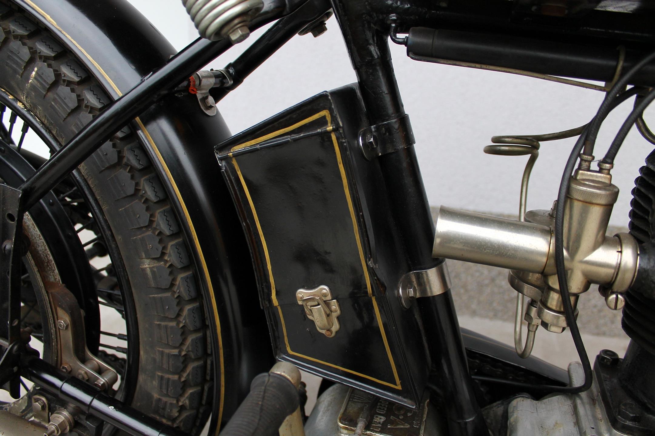 At the end of the nineteen twenties the Motorcycle Industry grew immensely quick, in Britain. Resulting from this, a price competition established between the motorcycle manufacturers. At this time the cheaper Triumph Model P and the BSA model S26, were competing. You were able to choose between 15 solo models and 11 combinations. The solo machines ranged from a 249 cc side valve single to the 986 cc “Colonial” V-twin model. The 493cc was the most noted model and listed at about 45 pounds. This motorcycle is equipped with a BSA three-speed gearbox and with acetylene lighting.
