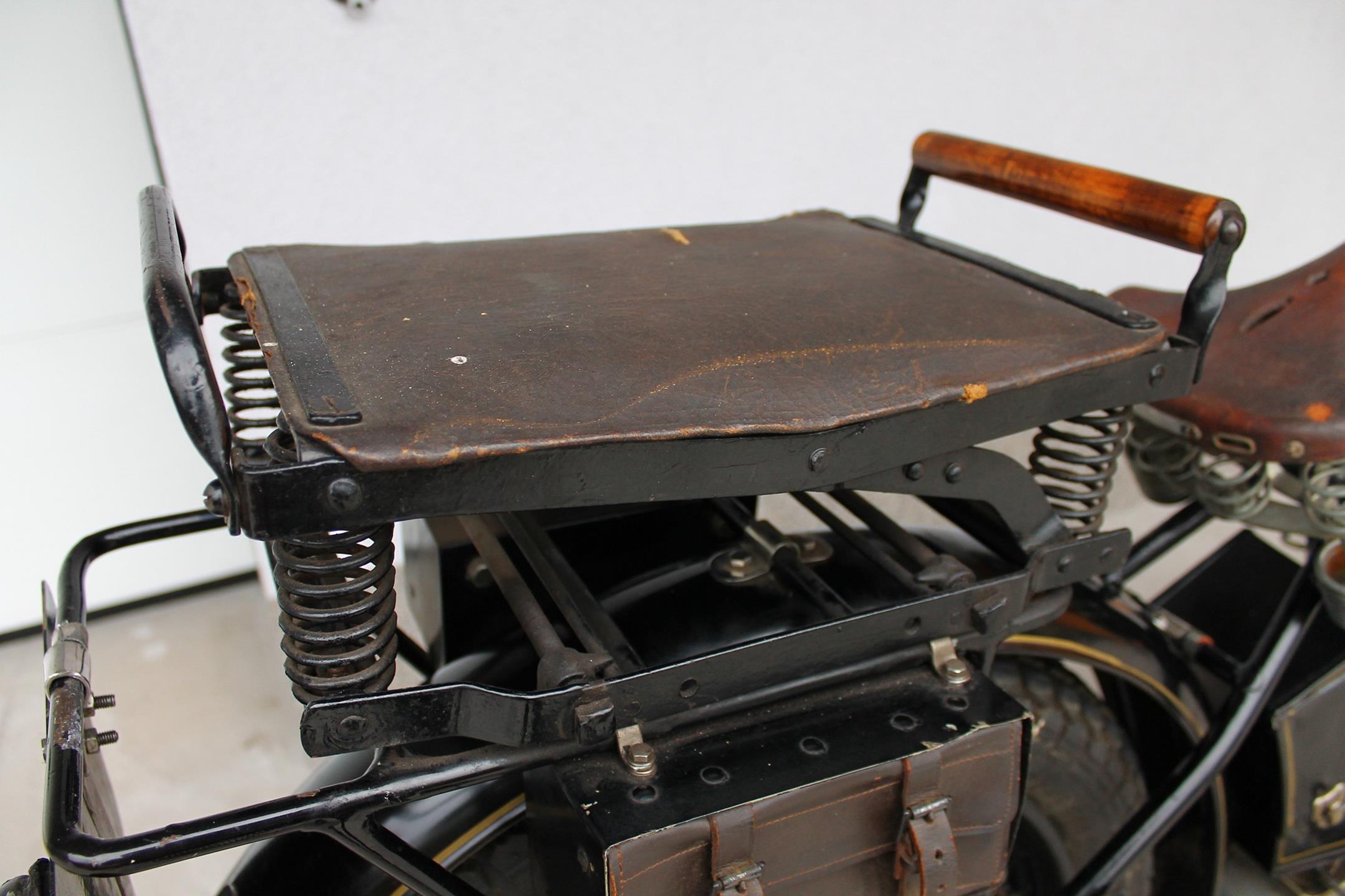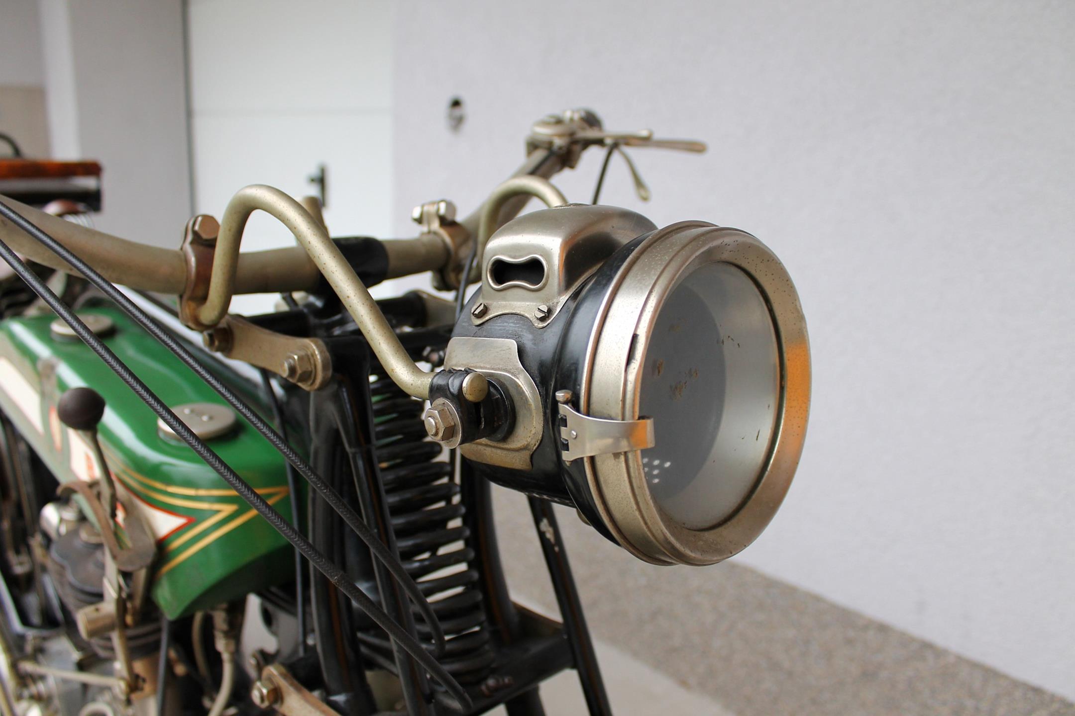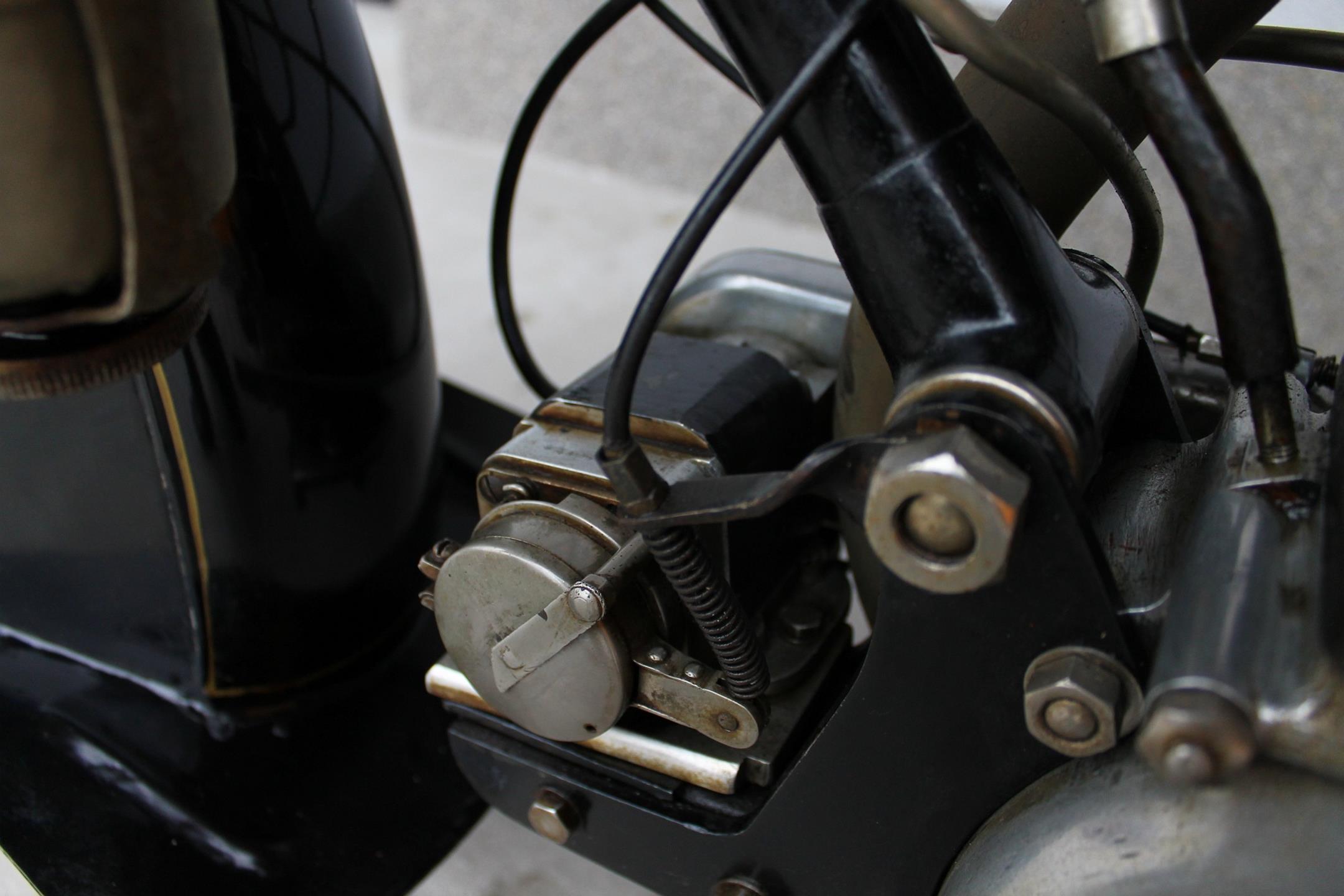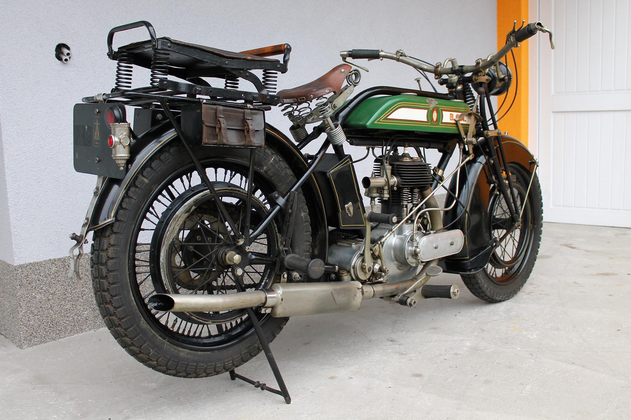 At the end of the nineteen twenties the Motorcycle Industry grew immensely quick, in Britain. Resulting from this, a price competition established between the motorcycle manufacturers. At this time the cheaper Triumph Model P and the BSA model S26, were competing. You were able to choose between 15 solo models and 11 combinations. The solo machines ranged from a 249 cc side valve single to the 986 cc “Colonial” V-twin model. The 493cc was the most noted model and listed at about 45 pounds. This motorcycle is equipped with a BSA three-speed gearbox and with acetylene lighting.