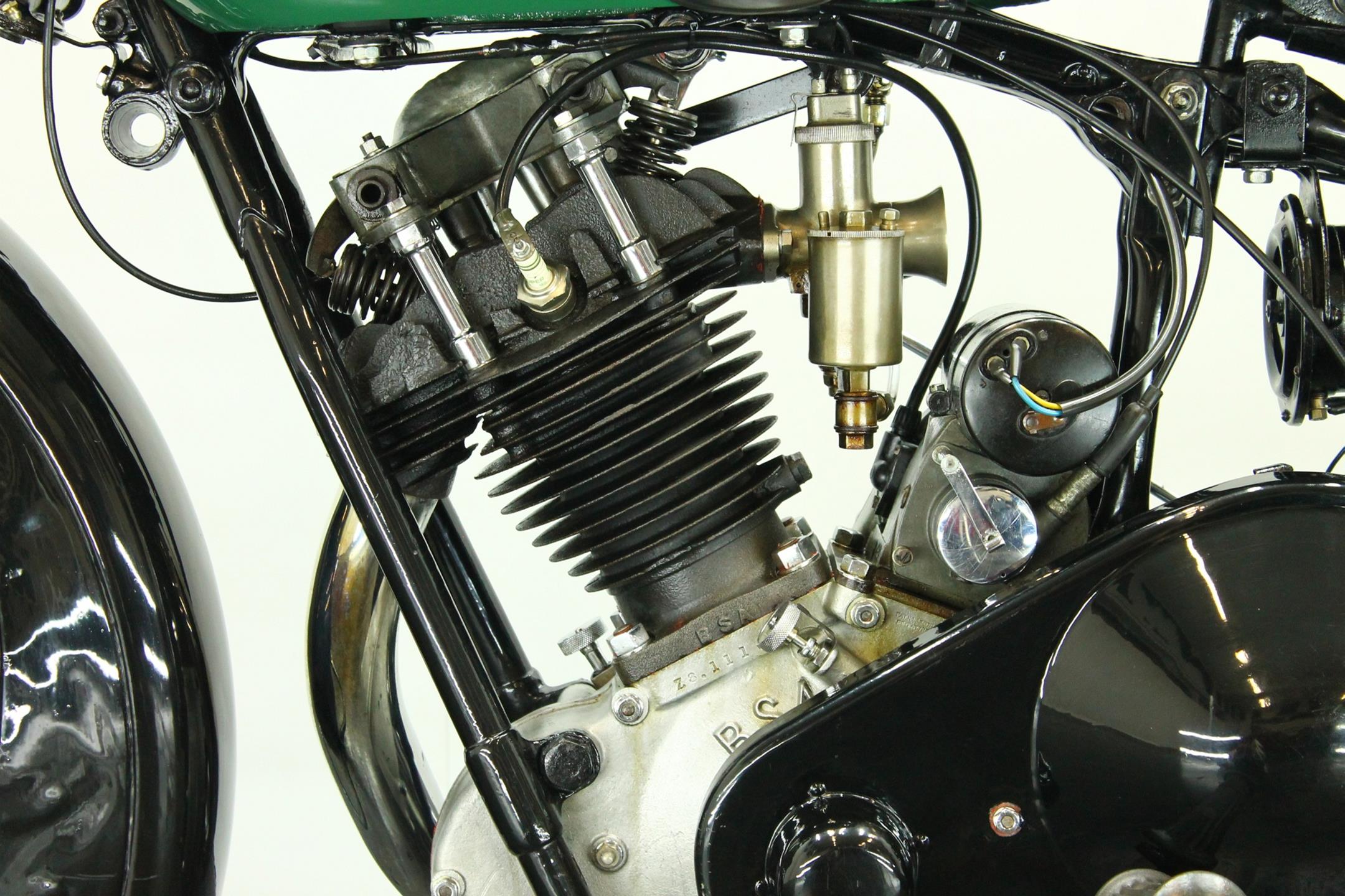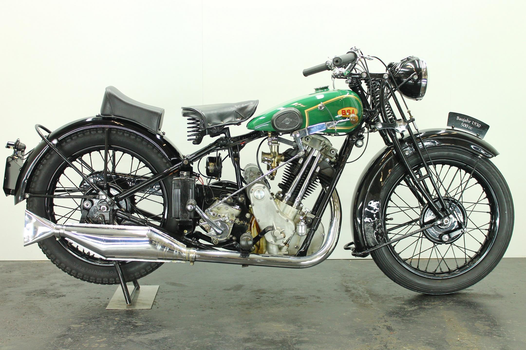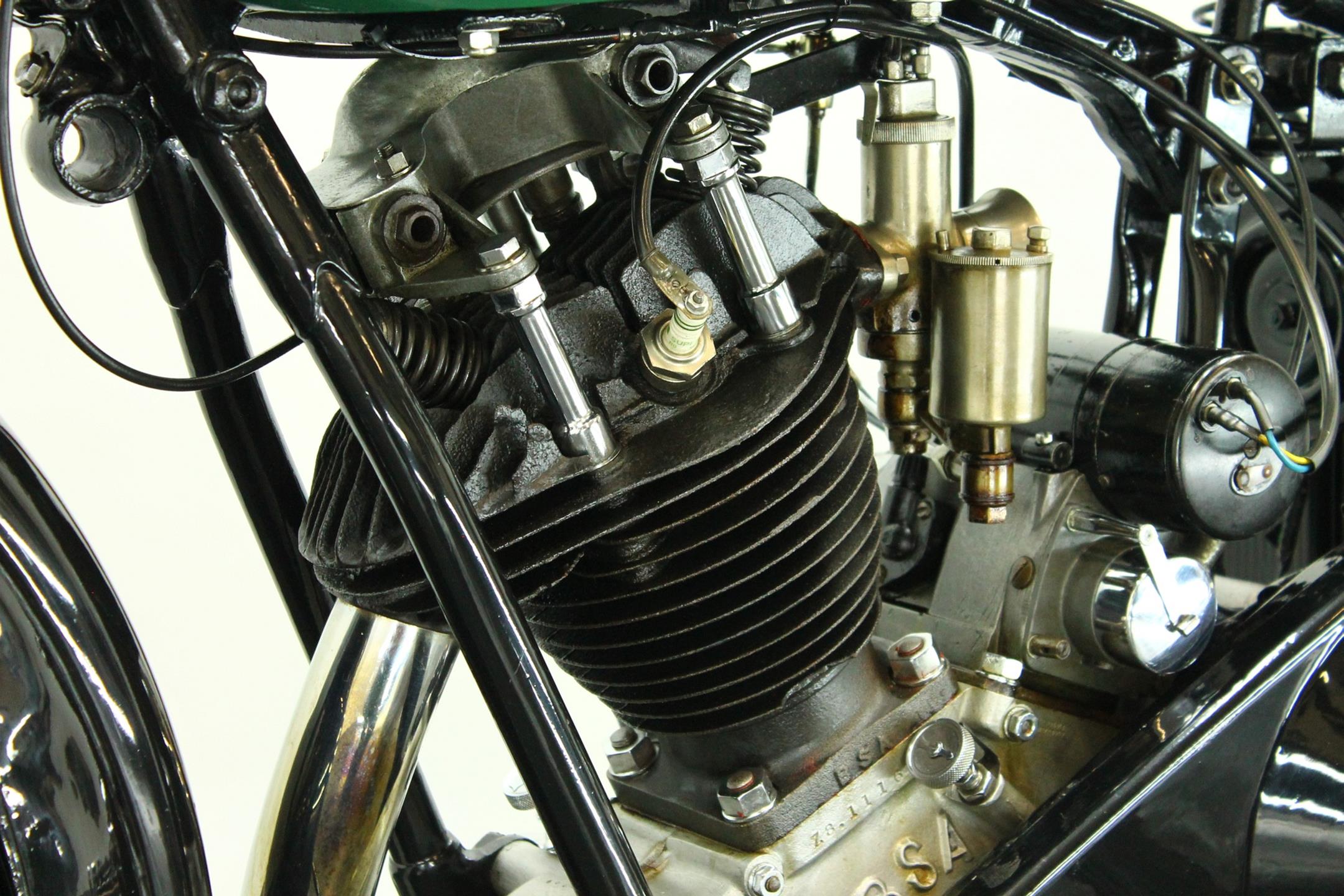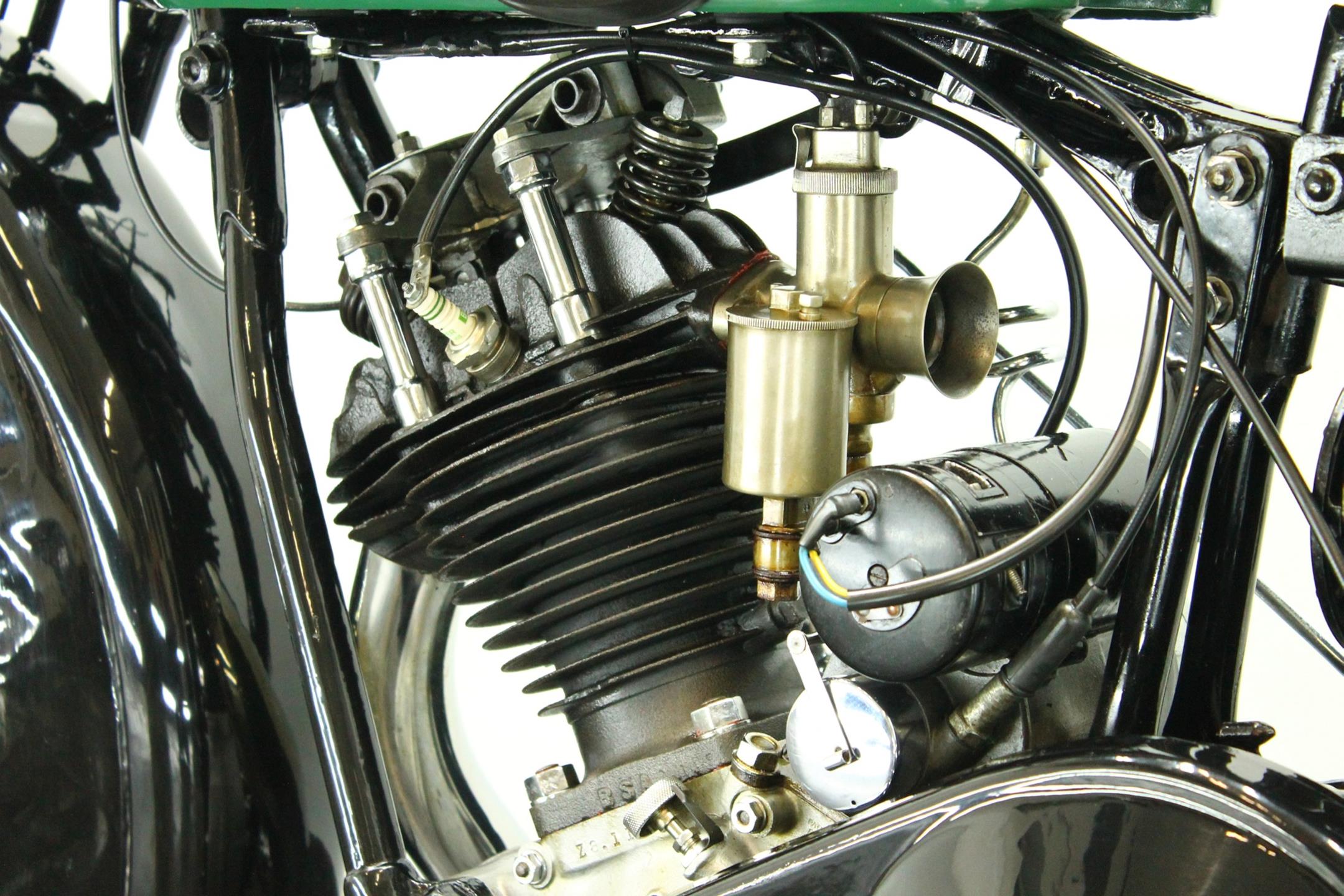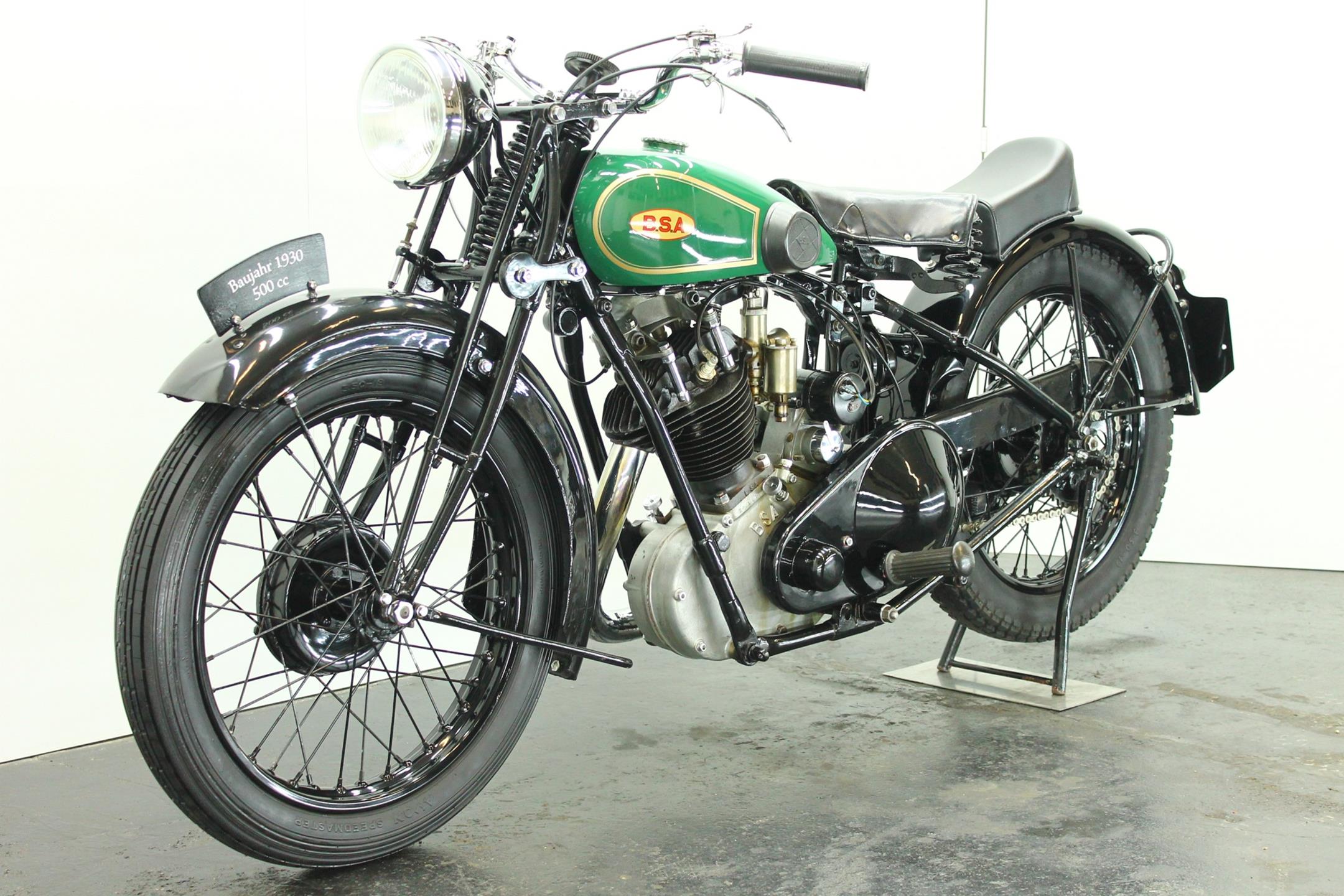 The Birmingham Small Arms Company first experimented with powered two-wheelers in the latter years of the 19th Century and then again in 1905. These first motorcycles made by BSA used proprietary engines such as the Belgian Minerva, and it was not until 1910 that the firm introduced a BSA designed and built machine. The first series-production model to feature the marque's distinctive green and cream tank colours was a 499cc (3½hp) side-valve single. Well engineered and equally well made, this first BSA proved an enormous success and effectively established the company's reputation as a maker of high quality motorcycles. Introduced for the 1927 season, the influential ‘Sloper’ started a trend which saw many of BSA’s competitors adopt inclined motors. The Sloper featured a trend-setting saddle tank that afforded a low seating position, and for 1930 gained chromium-plated brightwork and a new frame with forged steel spine. Models with the 493cc overhead-valve engine came with twin-port cylinder heads. For 1930 the Birmingham firm offered no fewer than 18 models, six of which had inclined engines. The Sloper range remained essentially vintage in character until its demise in 1935, by which time the line-up had shrunk to just two models: one overhead-valve, the other sidevalve, both of 595cc.