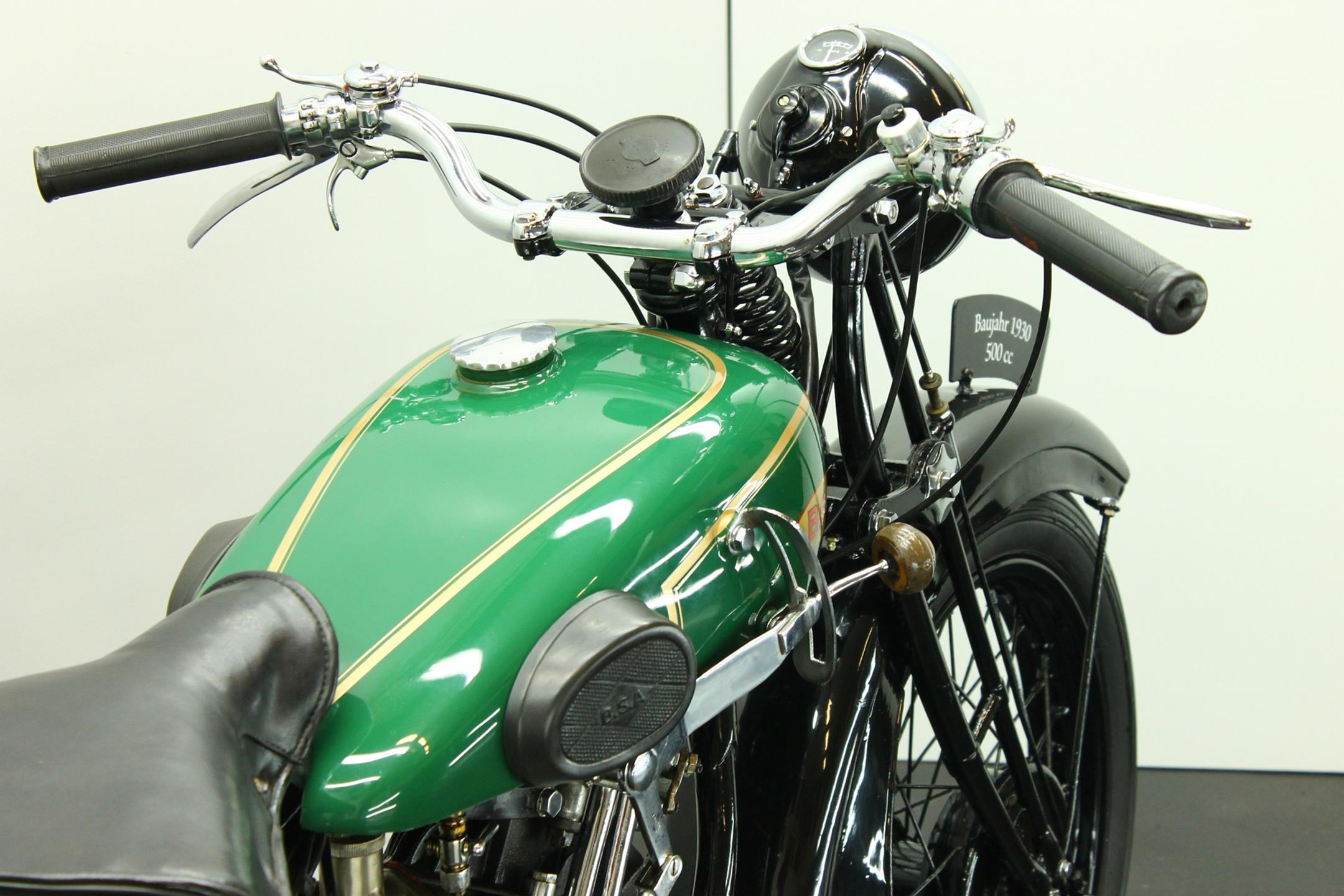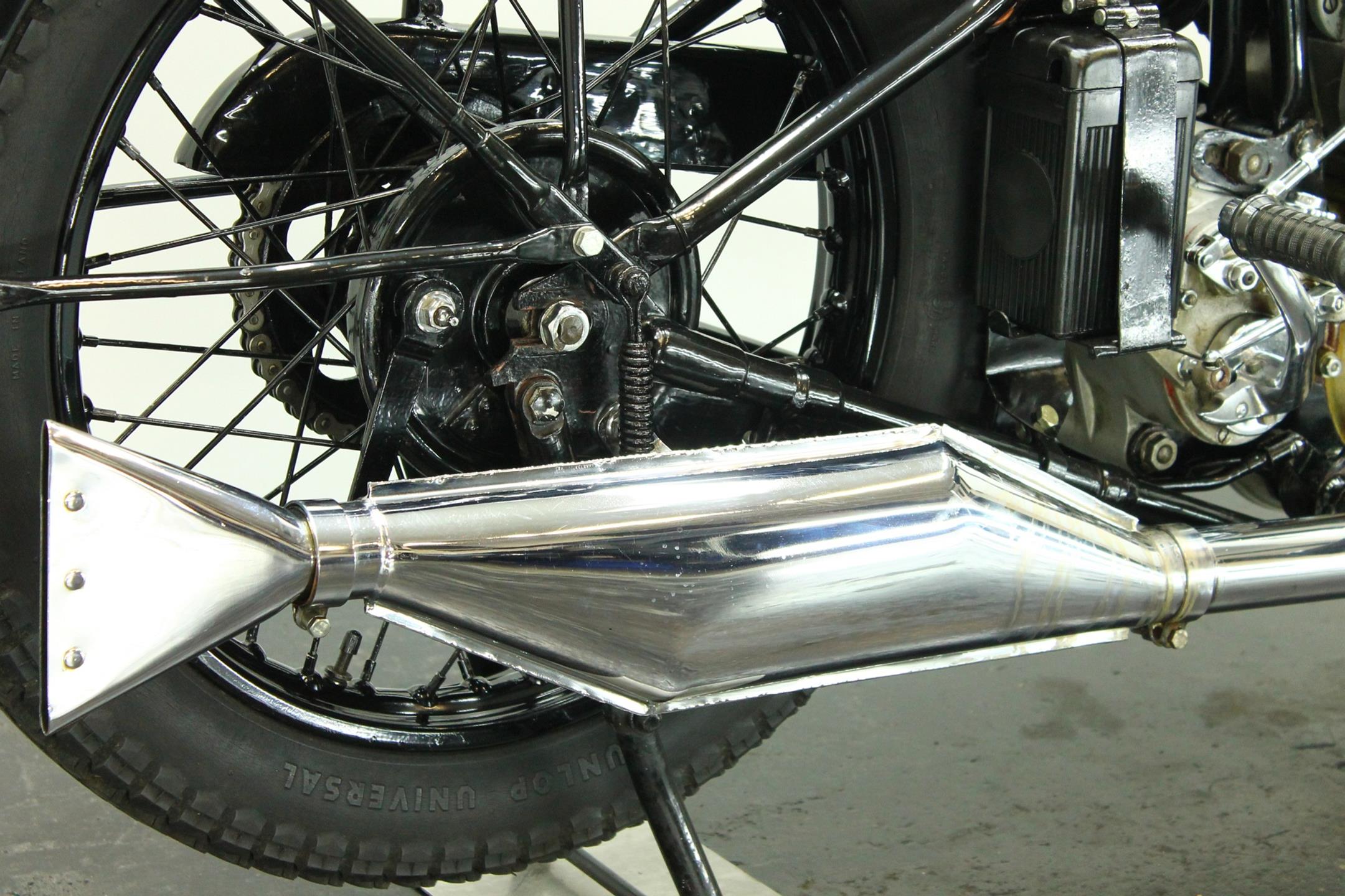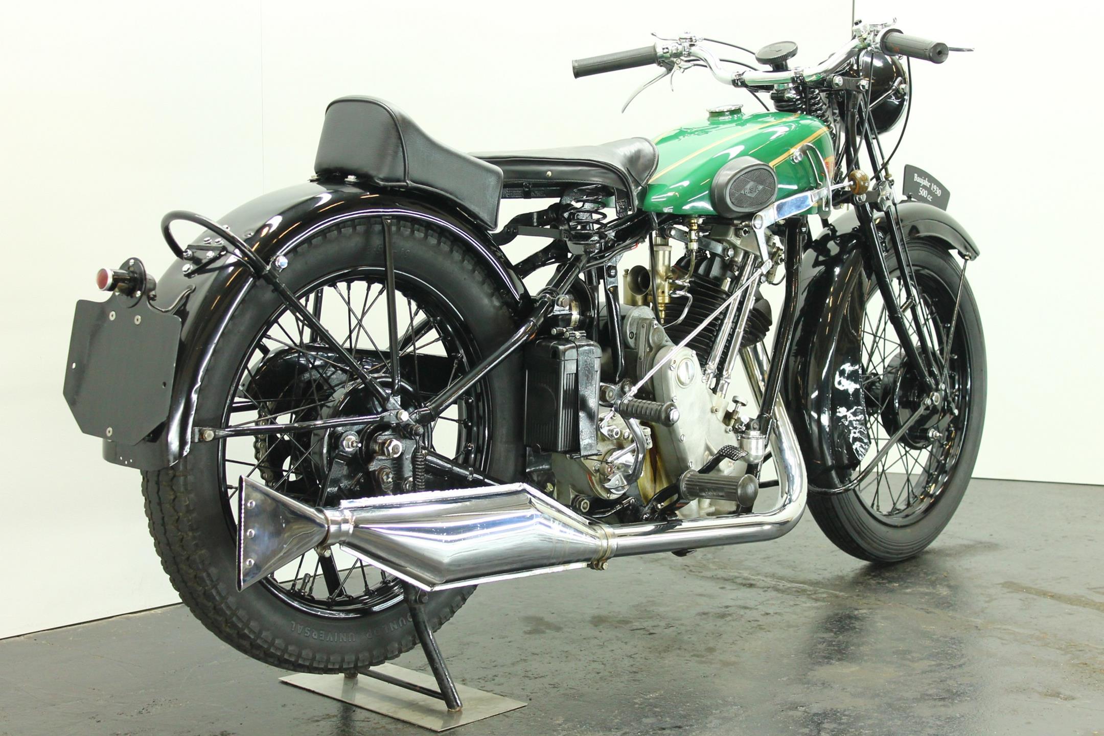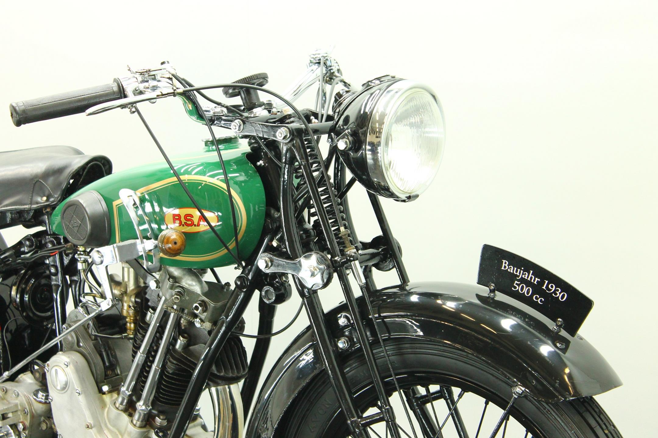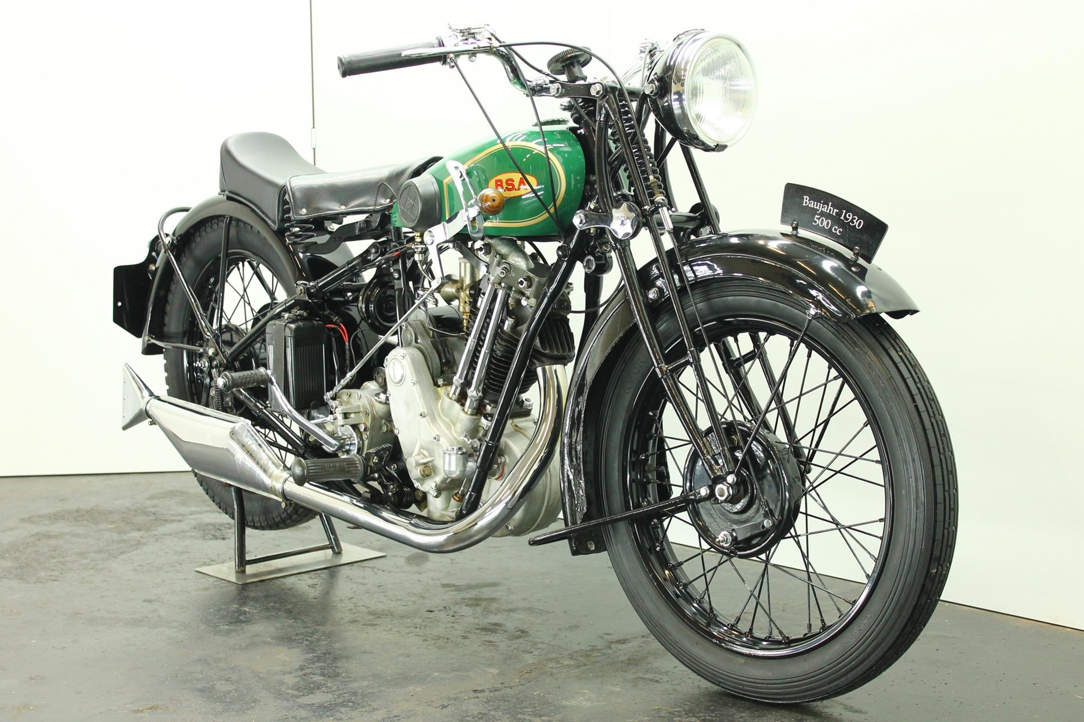 The Birmingham Small Arms Company first experimented with powered two-wheelers in the latter years of the 19th Century and then again in 1905. These first motorcycles made by BSA used proprietary engines such as the Belgian Minerva, and it was not until 1910 that the firm introduced a BSA designed and built machine. The first series-production model to feature the marque's distinctive green and cream tank colours was a 499cc (3½hp) side-valve single. Well engineered and equally well made, this first BSA proved an enormous success and effectively established the company's reputation as a maker of high quality motorcycles. Introduced for the 1927 season, the influential ‘Sloper’ started a trend which saw many of BSA’s competitors adopt inclined motors. The Sloper featured a trend-setting saddle tank that afforded a low seating position, and for 1930 gained chromium-plated brightwork and a new frame with forged steel spine. Models with the 493cc overhead-valve engine came with twin-port cylinder heads. For 1930 the Birmingham firm offered no fewer than 18 models, six of which had inclined engines. The Sloper range remained essentially vintage in character until its demise in 1935, by which time the line-up had shrunk to just two models: one overhead-valve, the other sidevalve, both of 595cc.
