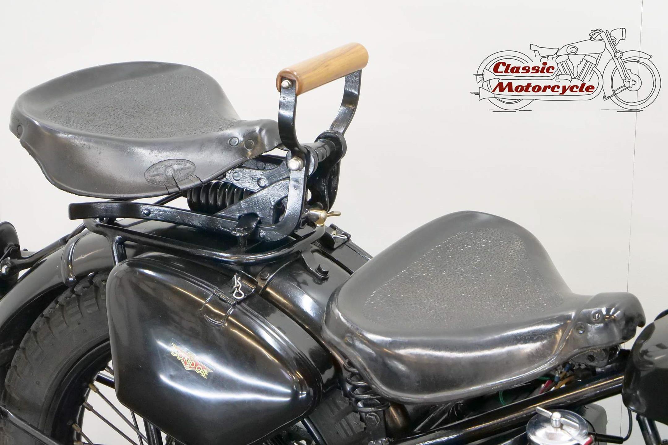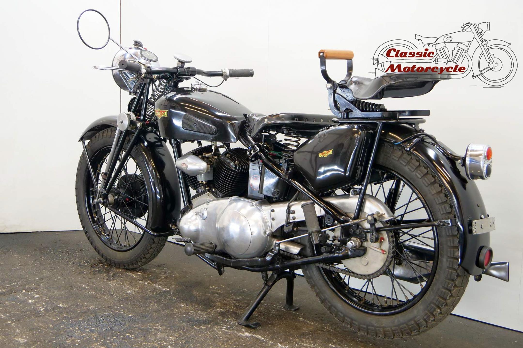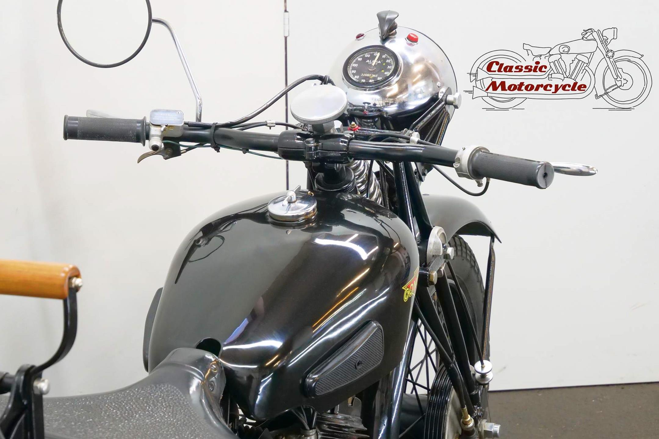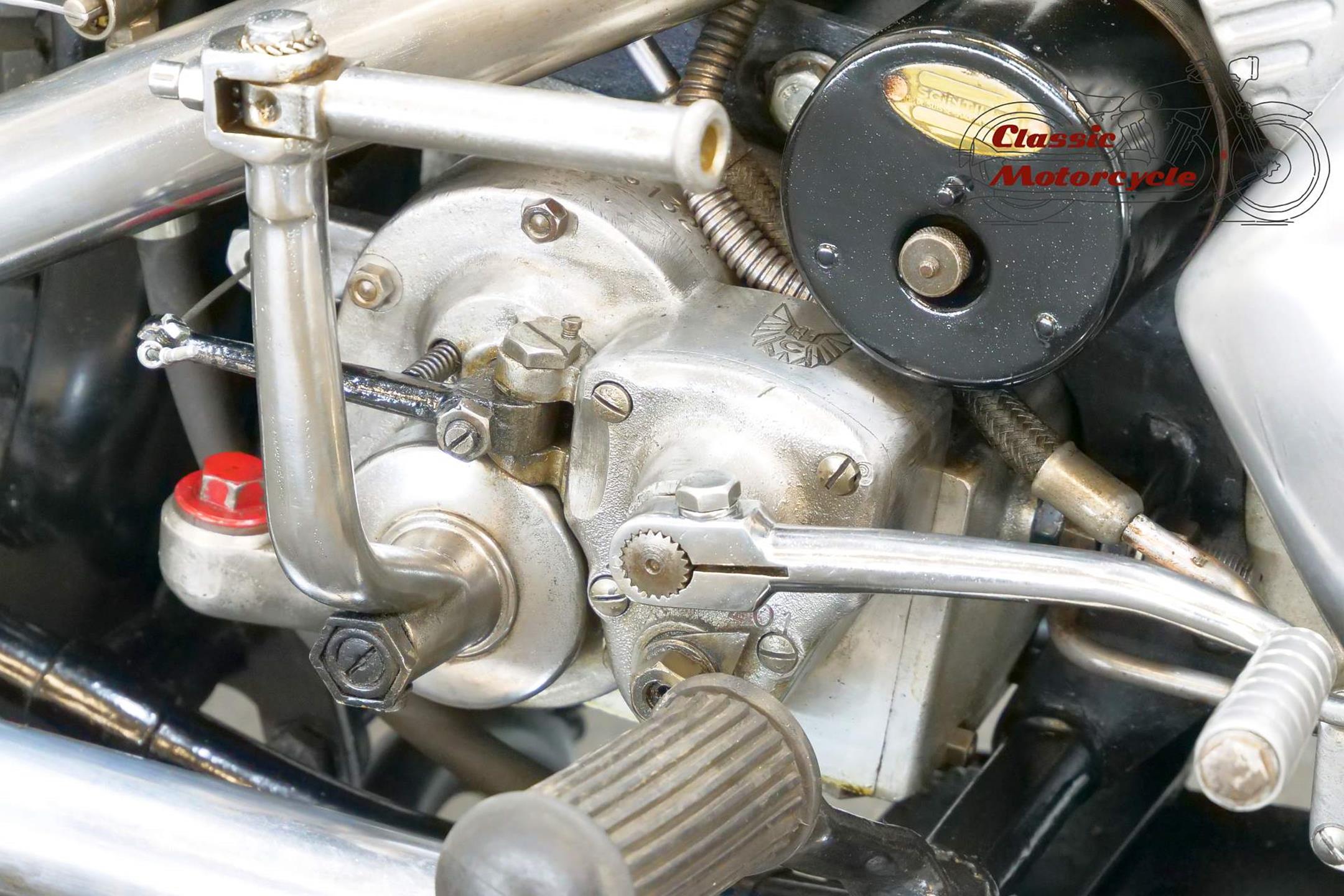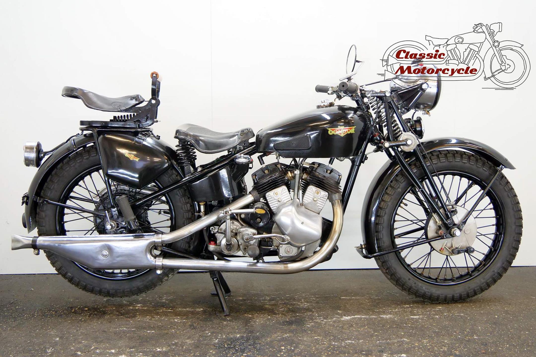 Despite the scarcity of raw materials, bicycles and motorcycles were built during the First World War. After the end of the war, things got off to a hesitant start again, with cheap foreign machines being sold. Condor reacted to this with new technology, the 250cc moto chassis with MAG engine and 3-speed gearbox was sold 3000 times in the 1920s. In 1925 there were eleven different models with different engines. Condor produced gearboxes, hubs and frames. The engine and the ignitions were purchased. The 249, 349 and 497cc singles and the 449, 749 and 998cc 45 degree V-twins were manufactured by MAG. The 2-stroke engines for the small motorcycle "Condorette" came from Zedel and Villiers, with 147, 172 and 198ccm. The Second World War complicated production. A single-cylinder machine, the A540, and the V2-A680 in cooperation with Universal/Oberrieden were built in small numbers for the army. The larger Universal A 1000 was built in Oberrieden without the involvement of Condor.