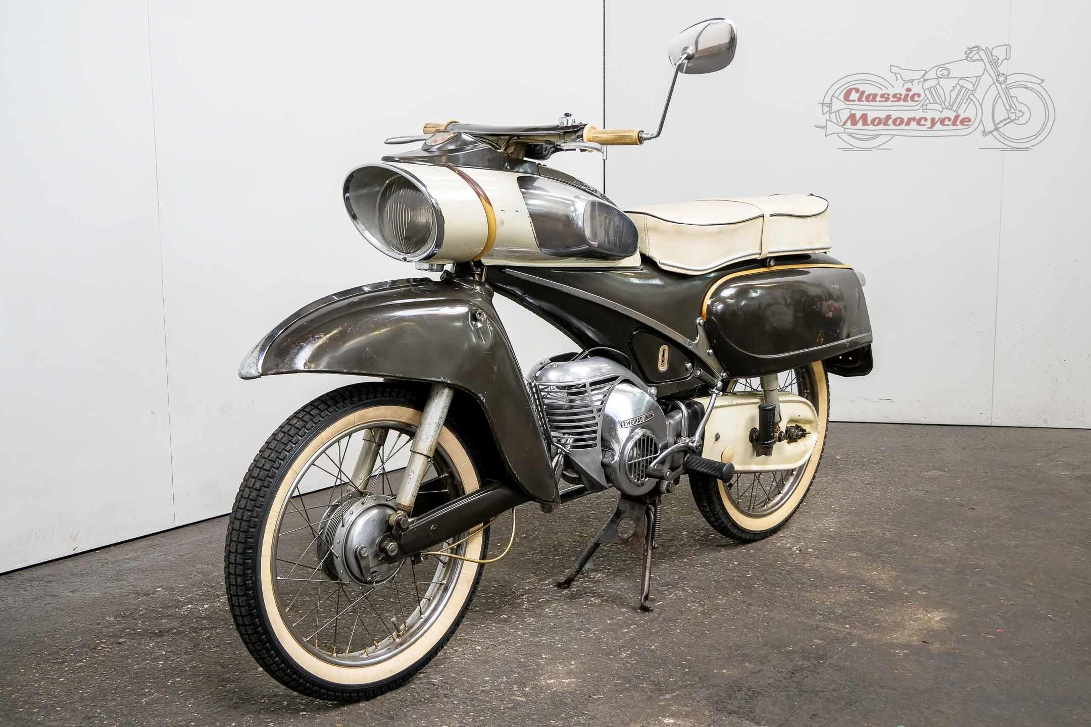 This DKW Sputnik is called “Tin Banana”. She bears its original paint and is in fine running condition with papers from Germany.