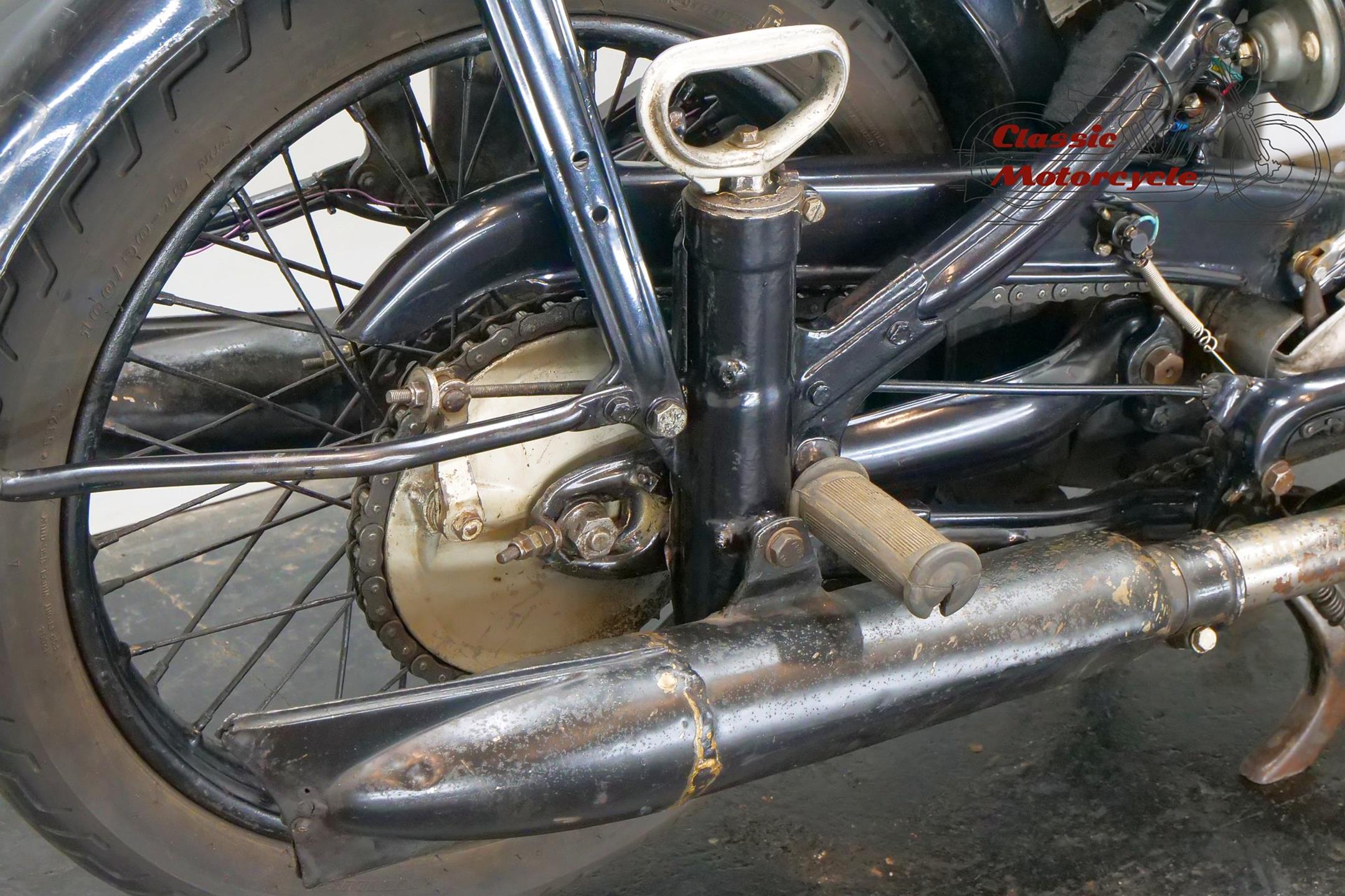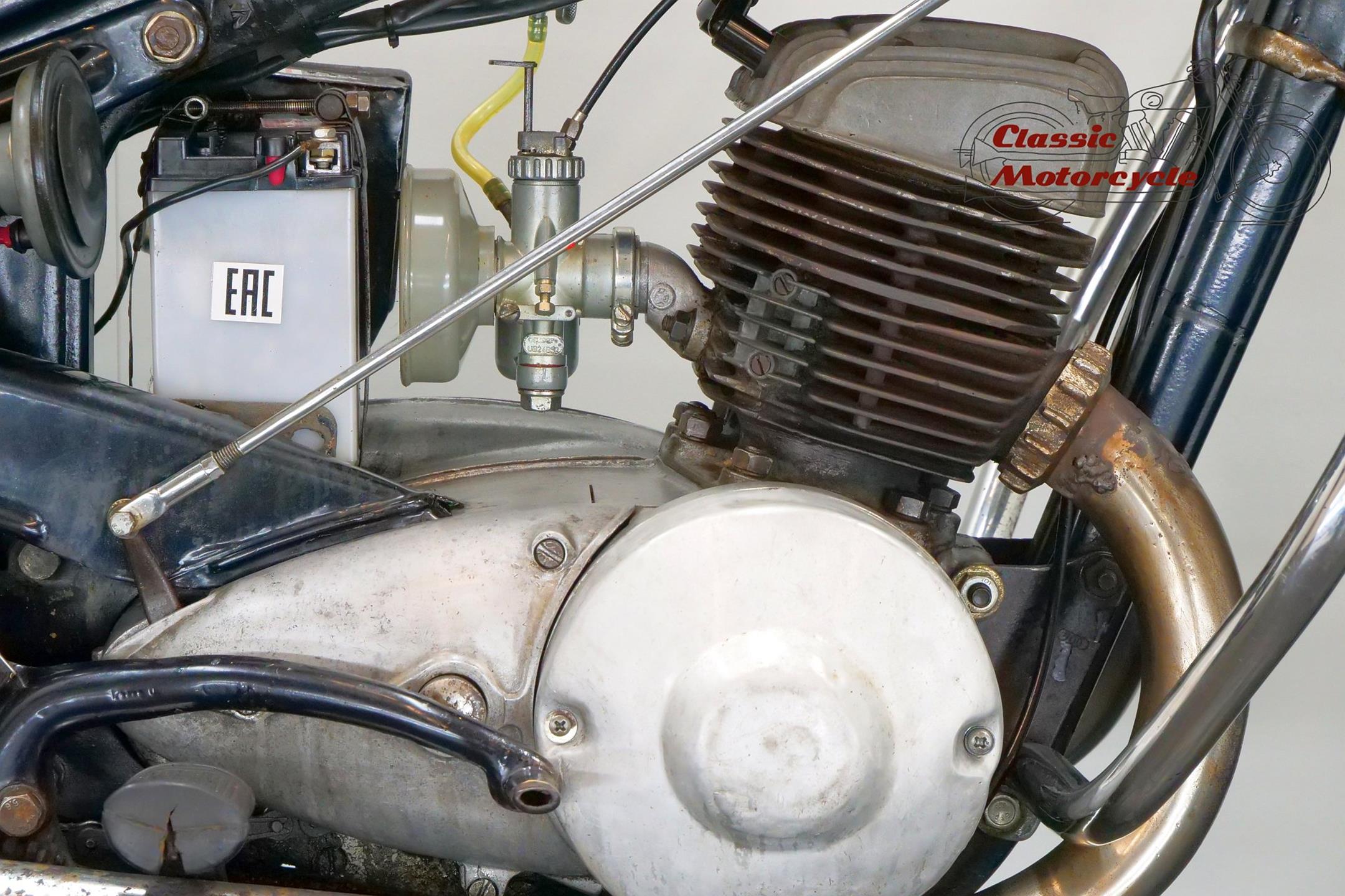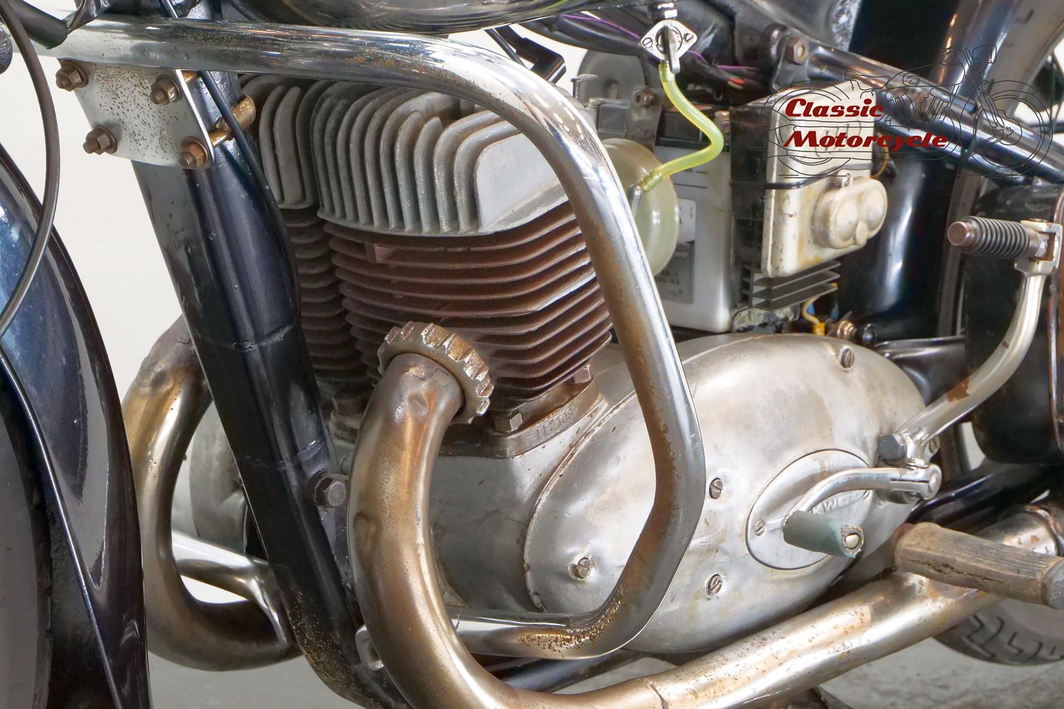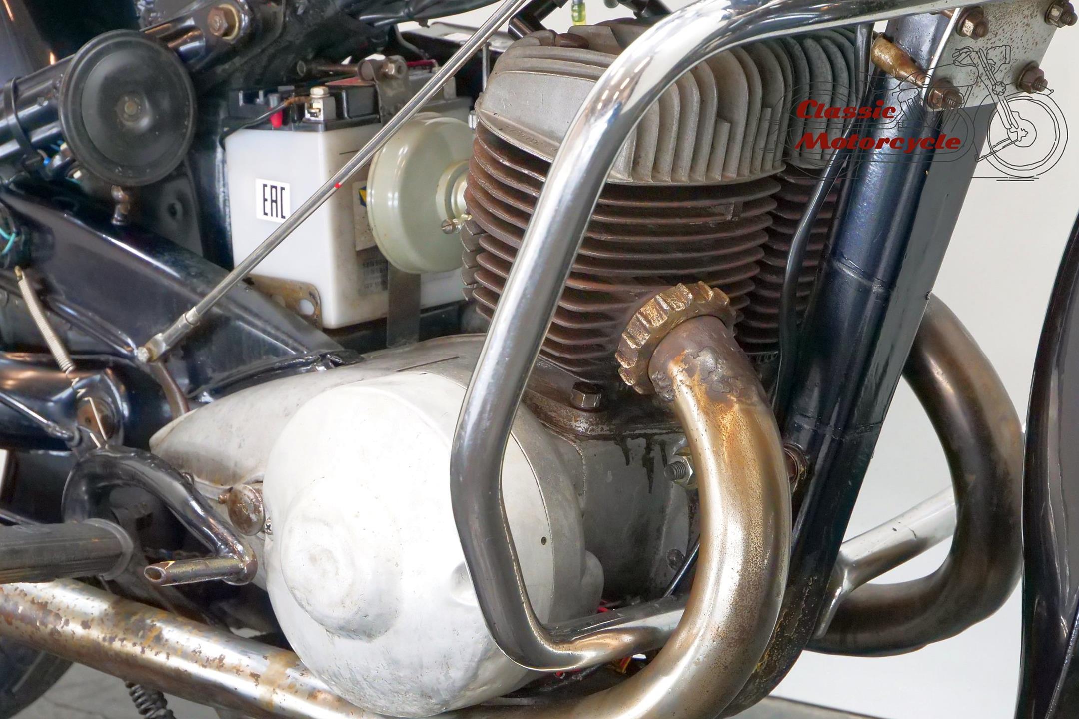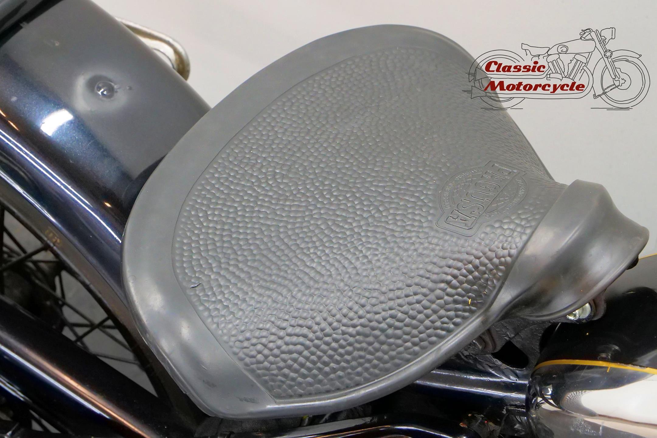 DKW was founded in Zschopau in 1919 by Danish engineer Jorgen Rasmussen and built its first motorcycle power unit, a single-cylinder, clip-on engine for bicycle attachment, in 1921. Designed by Hugo Ruppe, this 122cc motor was a two-stroke, and DKW would remain faithful to this engine type from then on, becoming world leaders in two-stroke design in the 1930s thanks to the prescient adoption of the Schnuerle loop-scavenge system. The latter used flat-topped pistons rather than the then-conventional deflector-crown type, relying on carefully angled transfer ports to direct the incoming charge around the cylinder. DKW was Continental Europe’s largest motorcycle maker at this time, manufacturing a huge and diverse range of road bikes during the 1930s, the NZ500 being one of the fastest and most powerful. An air-cooled twin of advanced design featuring swinging-arm rear suspension, the NZ500 employed engine dimensions of 64x76mm bore/stroke (for a capacity of 489cc) and produced 18.5bhp. Representing the pinnacle of pre-war DKW motorcycle design, approximately 4,200 of these rare and desirable models were made between 1939 and 1942, almost all of which were supplied to Hitler’s SS.