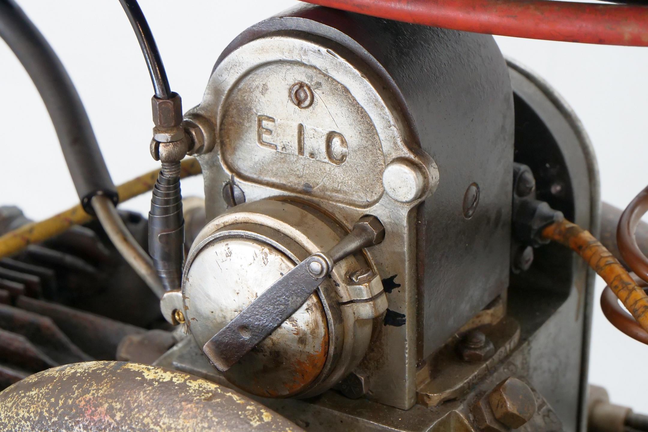 This reliable Douglas bears its first paint and runs fine. The front brake is dismantled -> the front belt rim brake parts are included. It is equipped with an acetylene lighting set, BTH magneto, AMAC carburetor and a practical clutch.