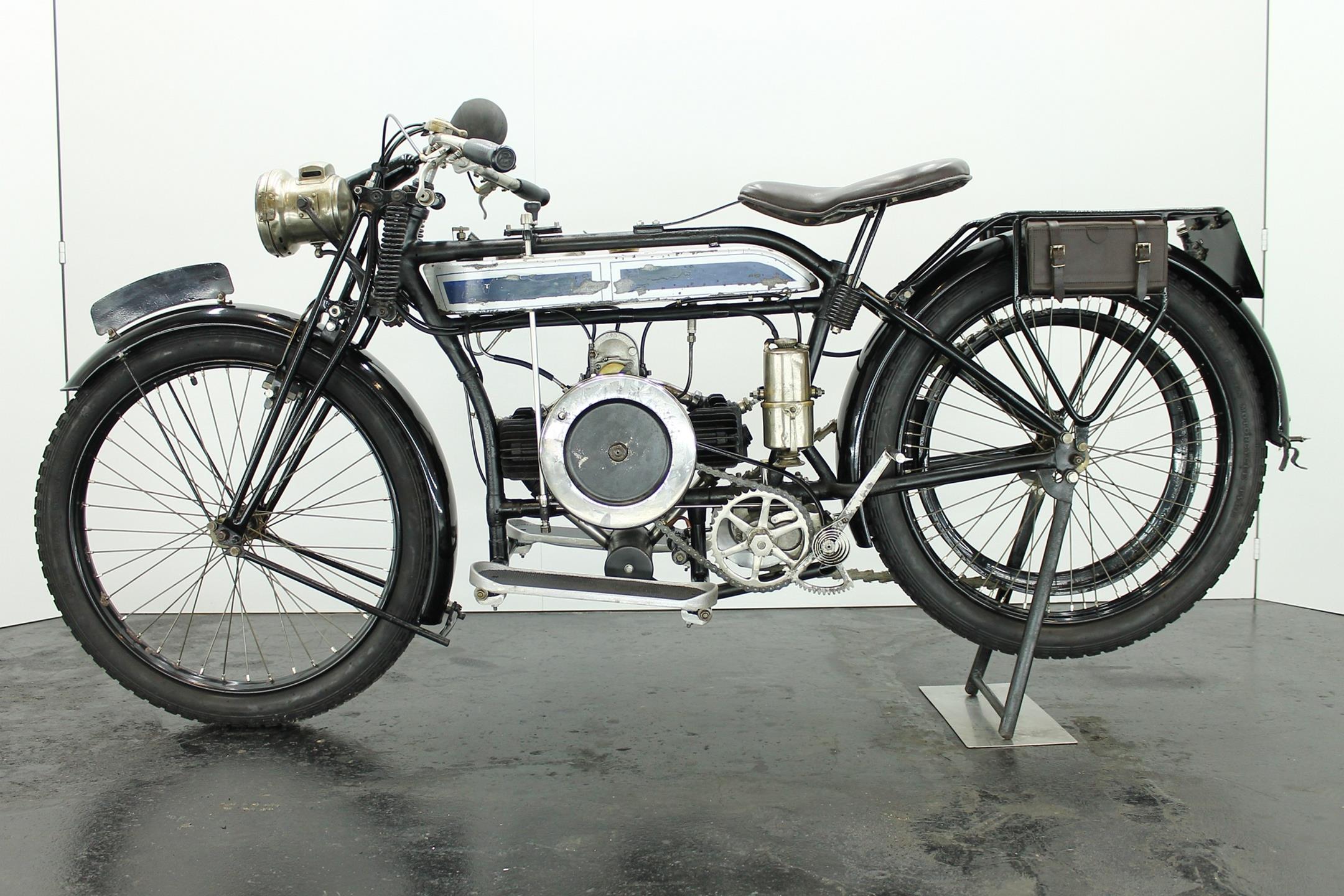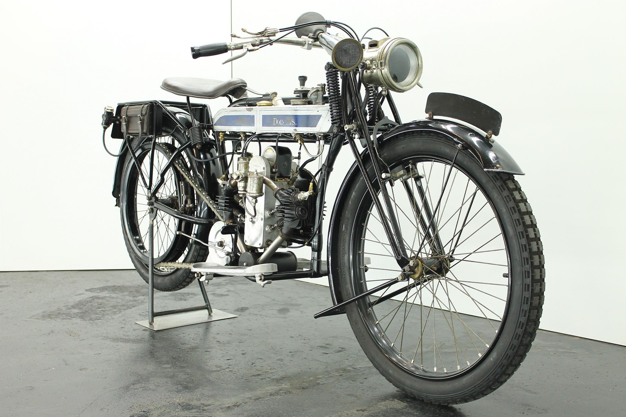The Bristol-based Douglas Foundry took up motorcycle production in 1907 with a machine powered by a horizontally-opposed, twin-cylinder engine, and the company would keep faith with this layout until it ceased motorcycle production in 1957. Fore-and-aft installation made for a slim machine with a low centre of gravity, and the design's virtues were soon demonstrated in competition, 2¾hp Douglas machines taking 1st, 2nd and 4th places in the 1912 Junior TT in the Isle of Man. Douglas were quick to realise the advantages of the countershaft gearbox, its three-speed entries gaining the Team Prize in the 1914 Six Days Trial, a conspicuous success that resulted in the firm obtaining a wartime contract for the supply of military machines. Douglas' success continued after The Great War. In its publicity announcing the 1924 models the company claimed that 'well over 75,000 Douglas 2¾hp machines are giving satisfaction every day to their owners.' No need was seen for major changes: 'For many years now it has not been found necessary to alter the main design, which incorporated the vibrationless twin-cylinder engine, because, as a mount world famous for economy, ease of control and great comfort, it had withstood the buffeting and battering of every clime since 1908, under all conditions, in the hands of riders of both sexes and all ages.' It would be another two years before a wholesale revision by Chief Designer Cyril Pullin saw the new EW model emerge.