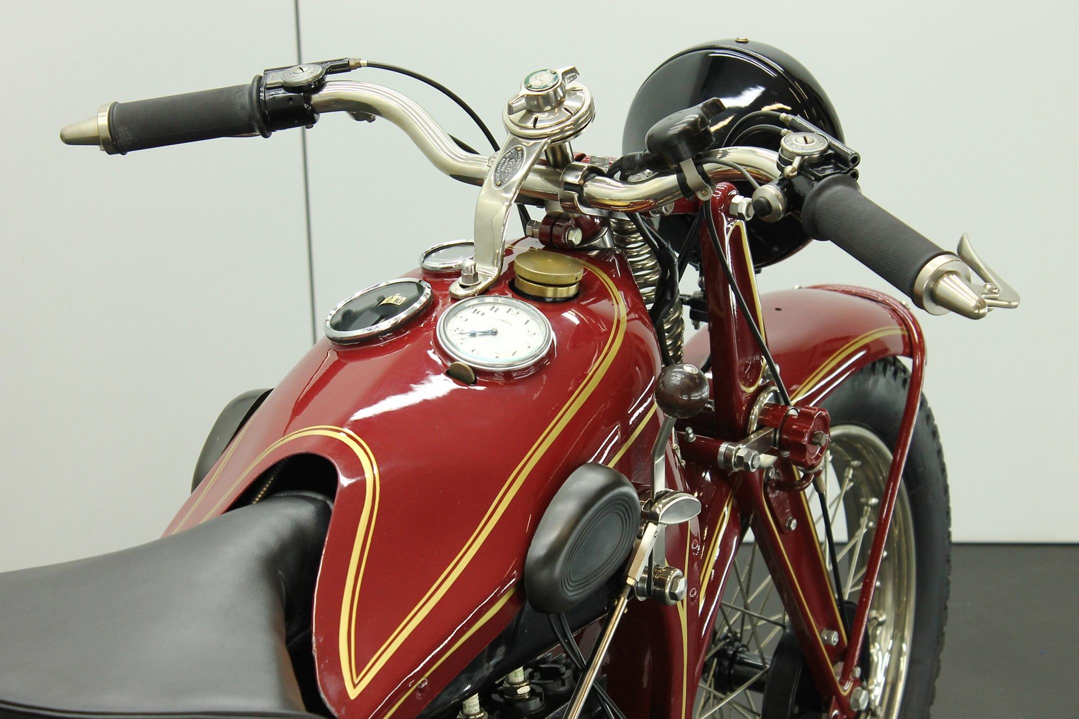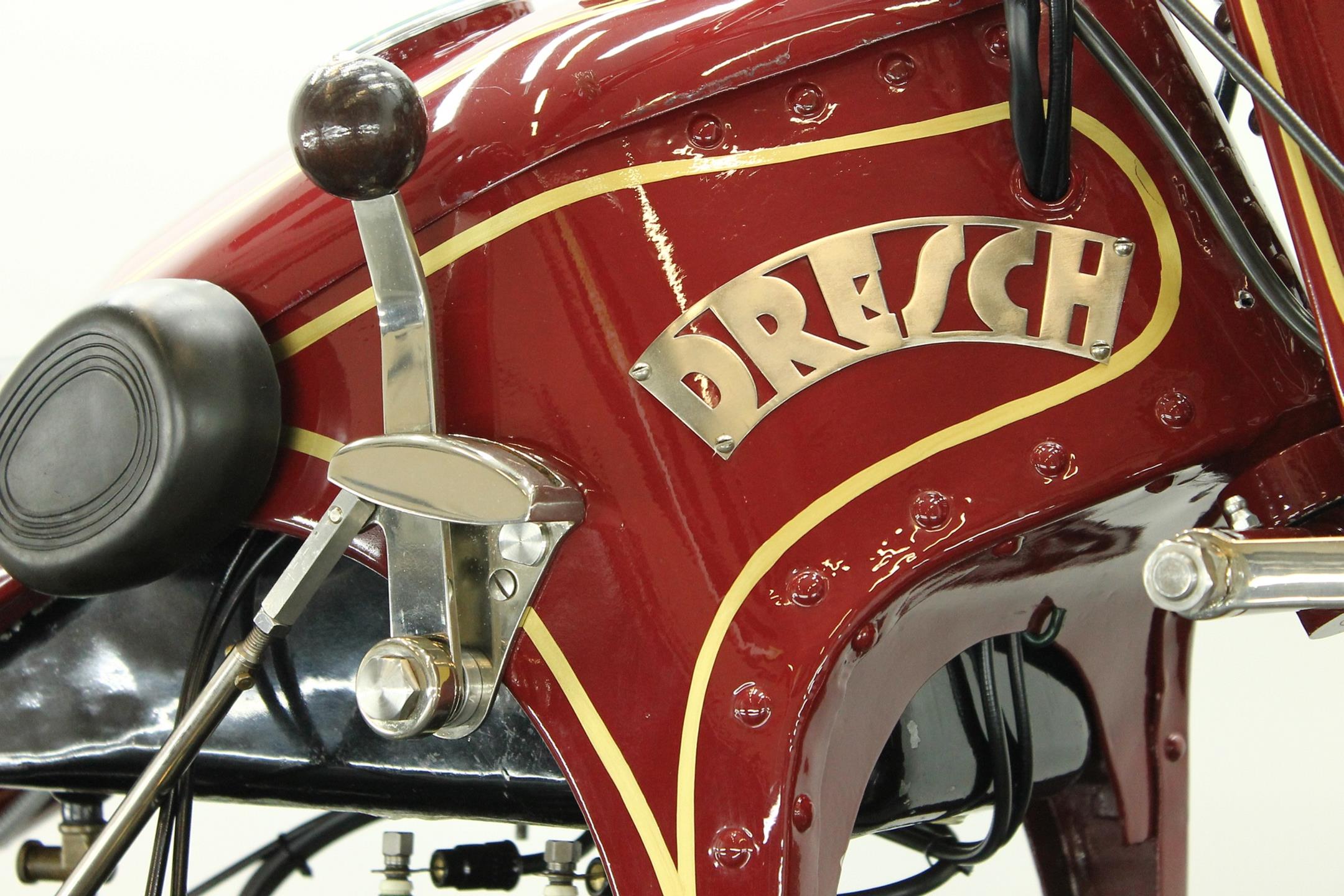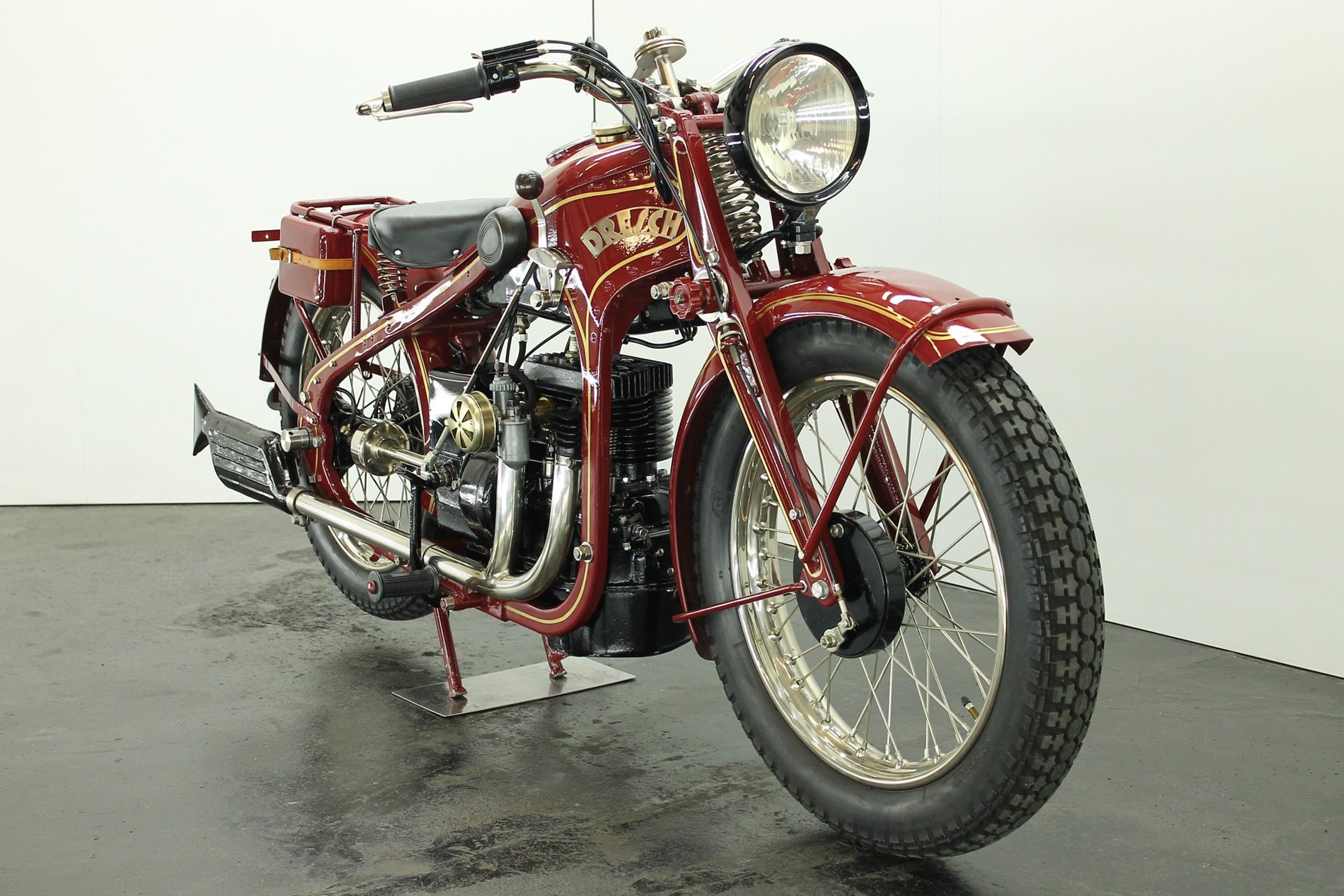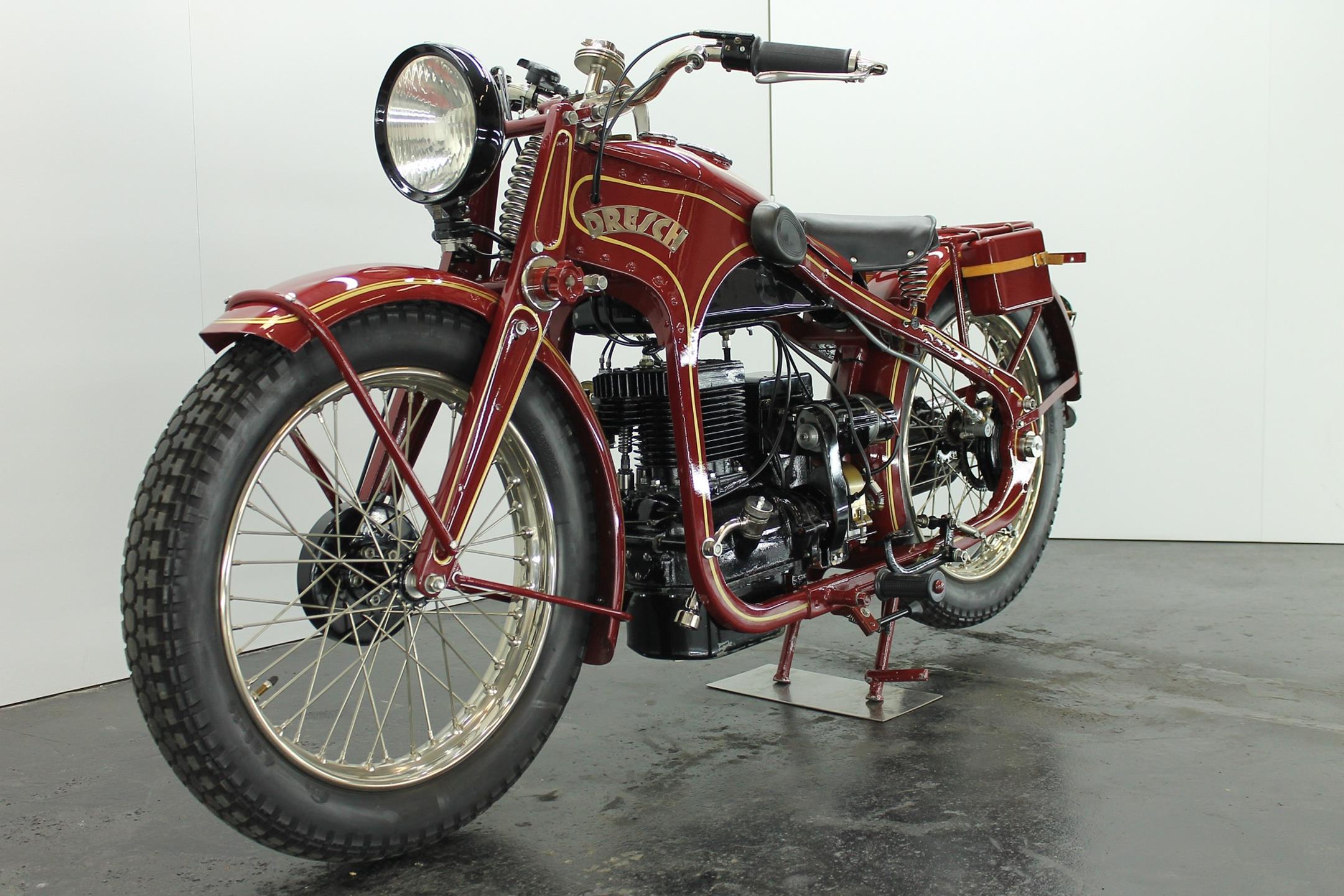 Herni Dresch was the founder of this make and produced motorcycles from 1923 till 1948. Till 1928 he was involved with the make “ le Grimpeur” (“ the climbing bird “) and from 1928 he built machines under his own name. The Dresch models ranged from 175cc - 500cc. Dresch used a wide variety of engines from small two strokes to the top model engine vertical twin and four-in-line configurations. The model Monobloc was very popular of the Parisian gendarmerie. The civilian motorcycle enthusiast like also this bikes as well. The model "P.S." was the smallest and the "Monobloc" was the top model of the Dresch range. The typical feature of this model are the pressed steel front forks, the shaft drive and the exceptional frame layout. The engine produced 14hp and transmit it´s power with the 3 speed gear box to the rear wheel. Dresch produced this model from 1930 till 1938.