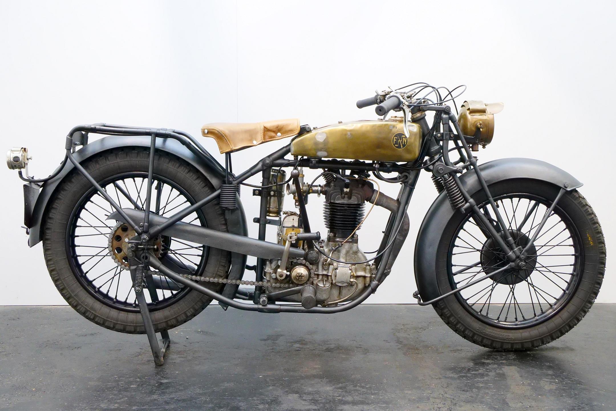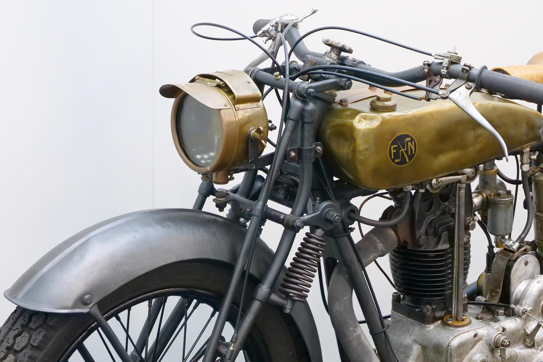 FN was founded in the city of Herstal in 1899 in order to manufacturer Mauser Model 89 rifles for the Belgian government. The company began a profitable relationship with a firearms designer called John Moses Browning in 1897. In the 1900s, FN diversified by producing cars and motorbikes, with the latter receiving a large amount of development. FN experimented with single-cylinder machines, producing their first motorbike in 1901. This was followed by a shaft-driven 188 cc in 1903. It led to the development of the 1907 FN Four, the world’s first production four-cylinder motorbike. Designed by Paul Kelecom, the Four came with a 350 cc or 362 cc engine. By 1906 the displacement had increased to 410 cc. The FN Four was revolutionary and led to the development of future models.