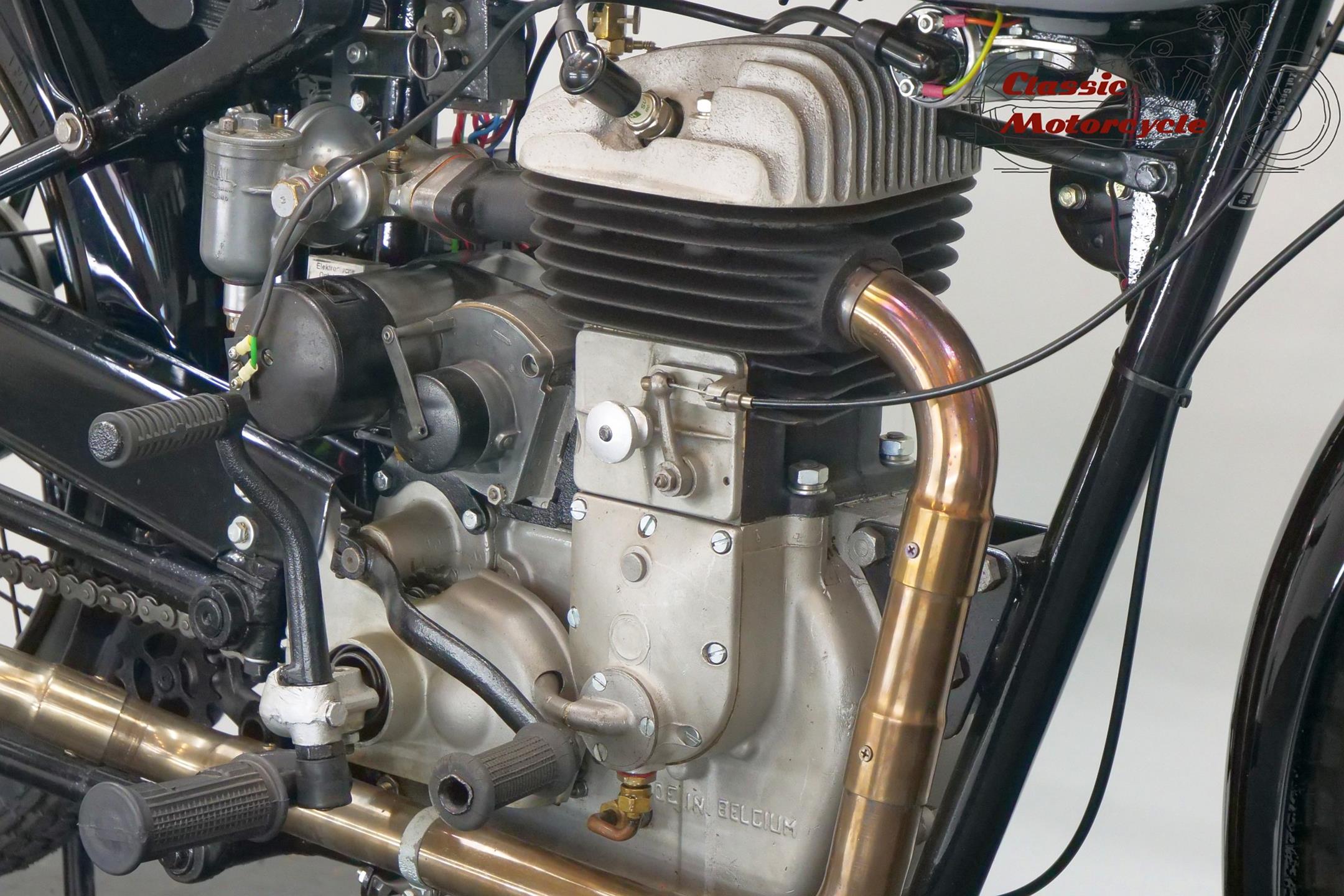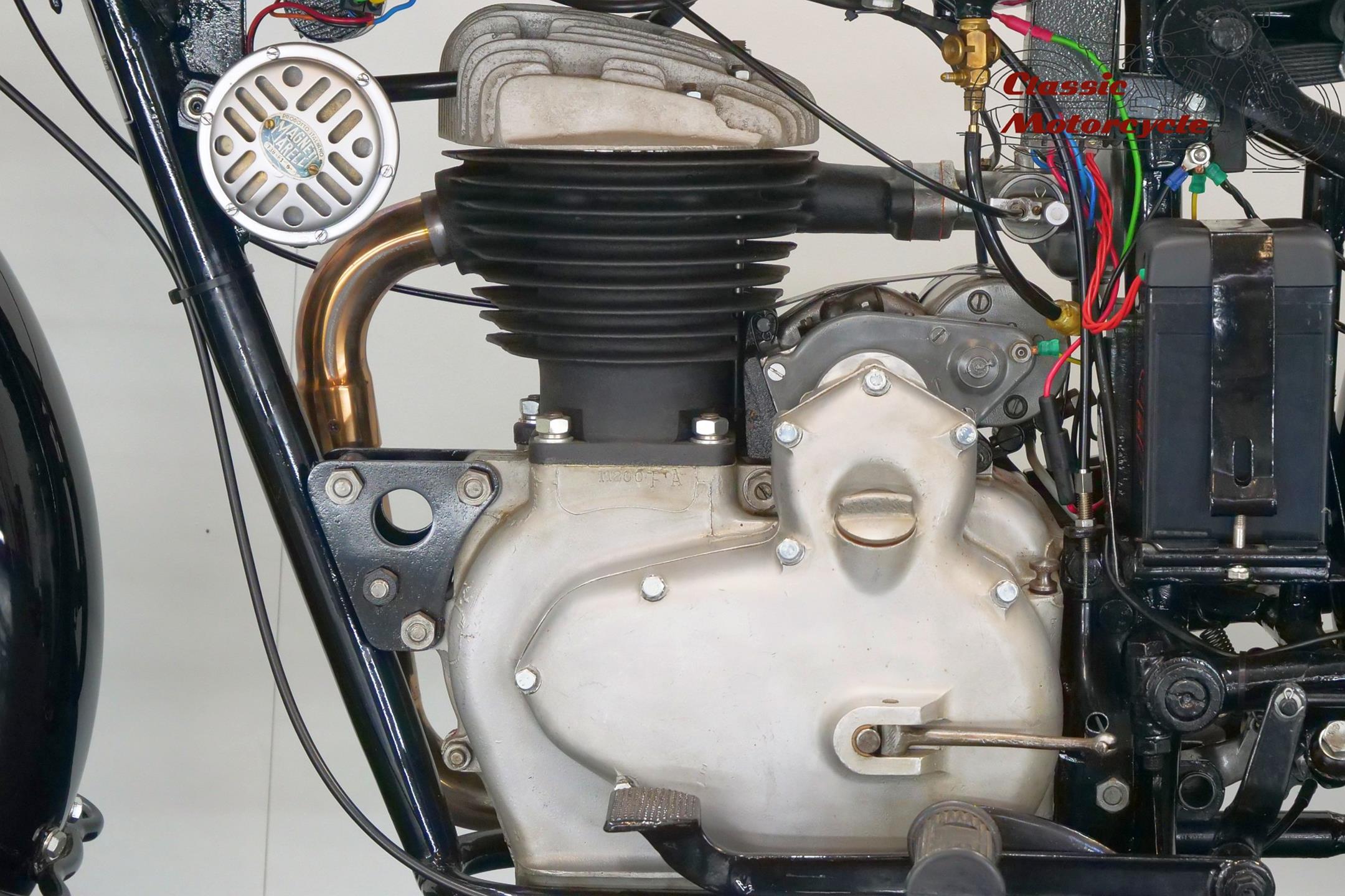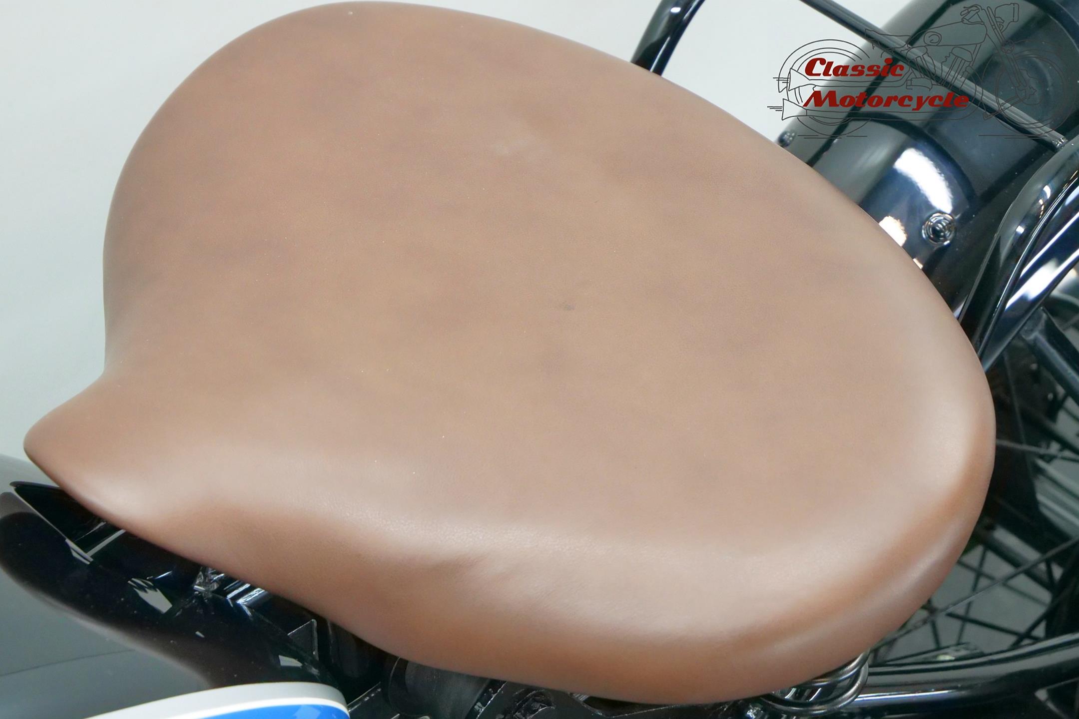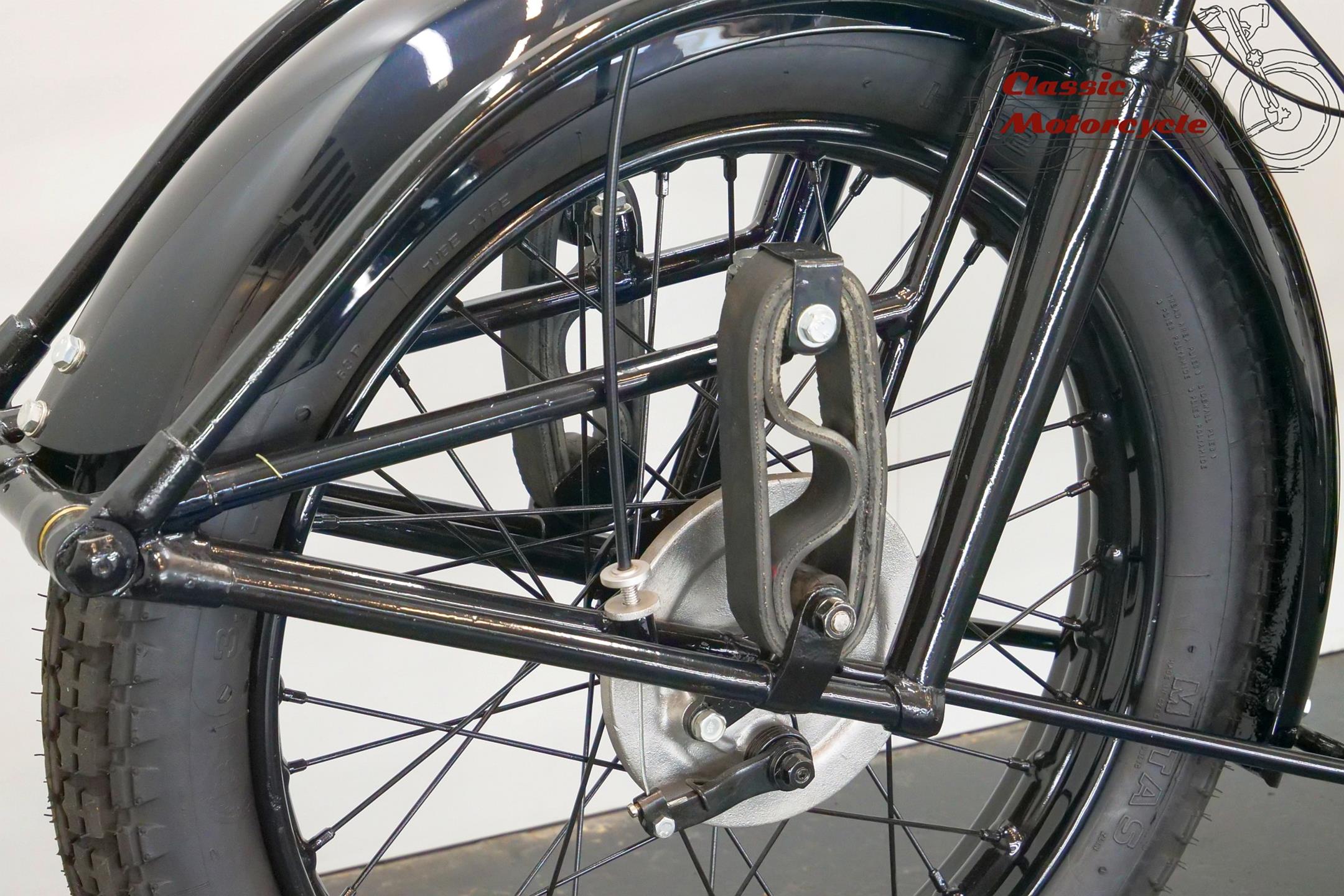 Fabrique Nationale d’Armes de Guerre, S.A., of Herstal, Belgium, had a long history with military organisations as suppliers of arms, notably guns, and only later did they achieve similar renown as manufacturers of military motorcycles. This example, believed to be the Model 13, which was introduced in 1947, is powered by a 448cc, side-valve engine which developed 11hp and drove through a four-speed, unit construction, foot-change gearbox. The distinctive rubber band suspension system, which this example features, was retained until 1951 when it was replaced by more conventional telescopic front suspension and trailing rear forks.